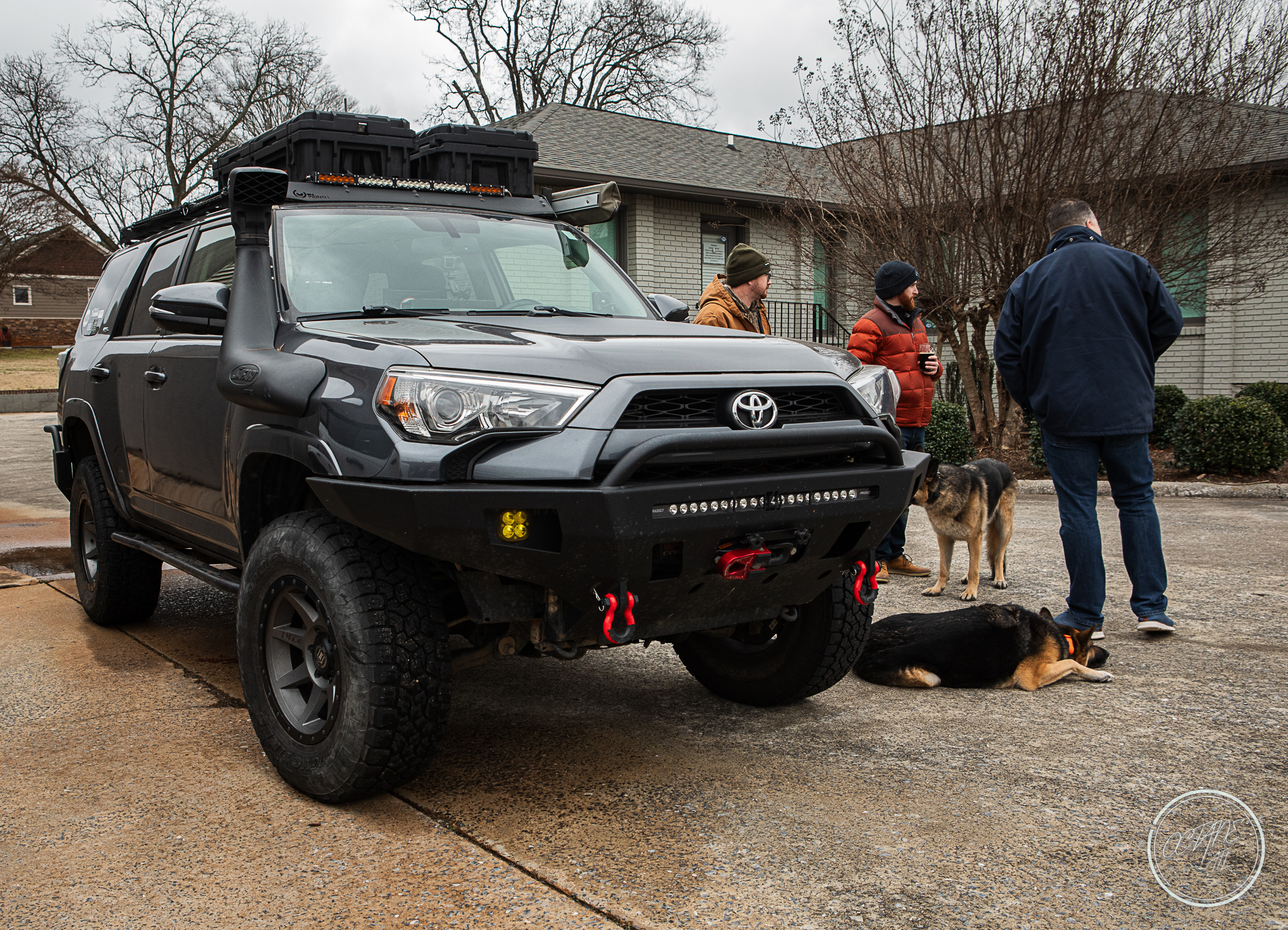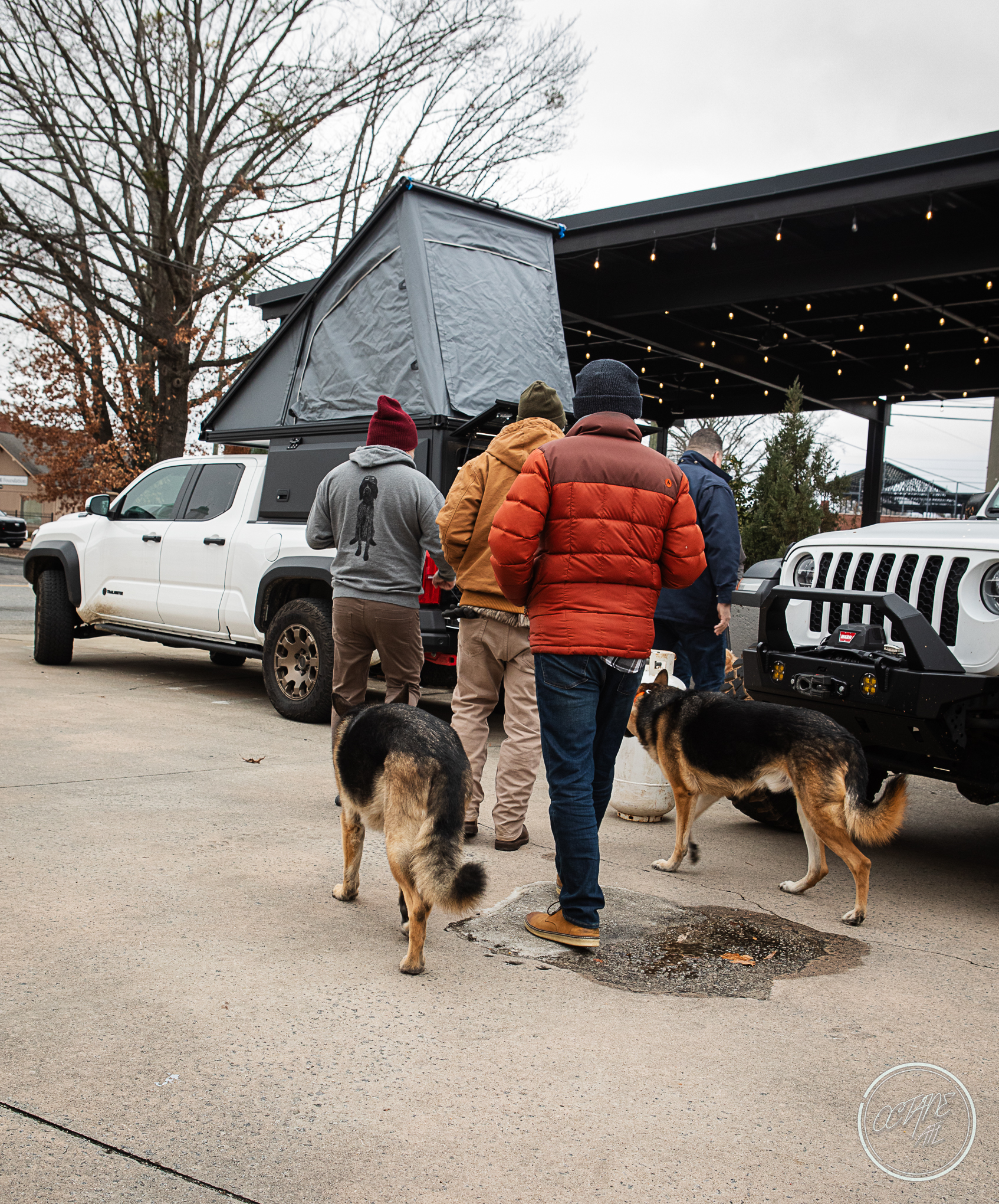 Tucked away OTP Northwest in Cartersville there’s a monthly meet for the off-road inclined called Lifts and Lagers. Hosted at a brewery nestled at the edge of downtown you might expect the meet to be small, but despite the uncommon snow flurries in the air and the cold weather, quite a few rigs were parked in the lots next to and behind the brewery. A quick introduction to the host, Hill, confirmed what we had already noticed- everyone was welcome. There were no brand specifics or preferences, no requirements of experience or build- just come and hang out with some familiar and new faces, talk cars, life, camping, whatever fit the mood. We knew a few of the folks in attendance that week, and it was nice to also meet new people as well. Perhaps it was the weather, but this meet definitely felt more about the people (and the dogs) than the rigs, feeding that warm community feeling we love.