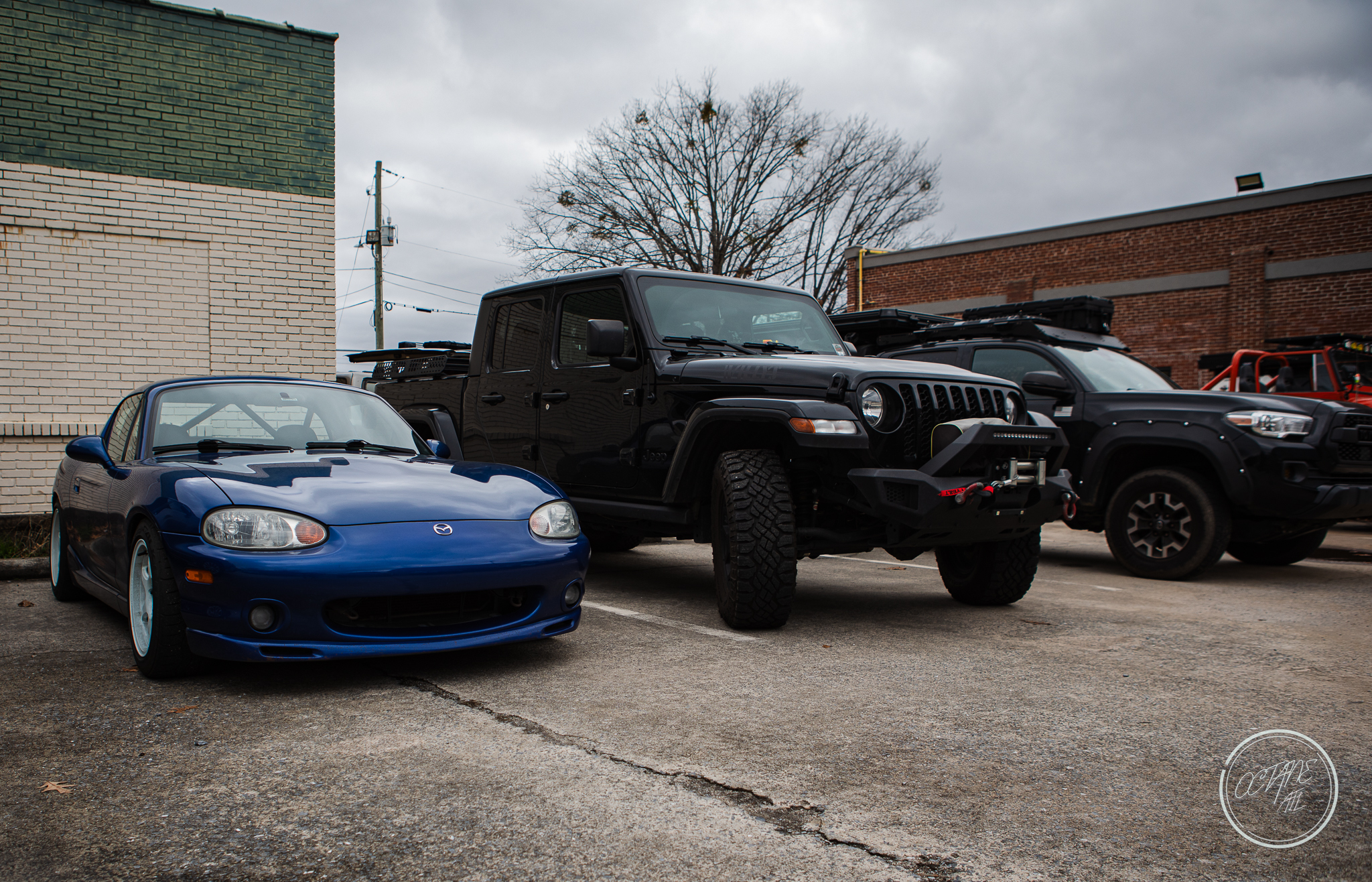 Our first visit to this meet last month was so welcoming we did it again. This time we encouraged a few local friends to join us and despite the cold weather again, the turn out was great. There were a few different faces this month and those who we had met last month were welcoming to us again. I know I said it last time but I’ll say it again, this group does not care about make, model, level of modification or gear. My husband was encouraged to park his very not off-road Miata in the lot with the others and folks embraced it.