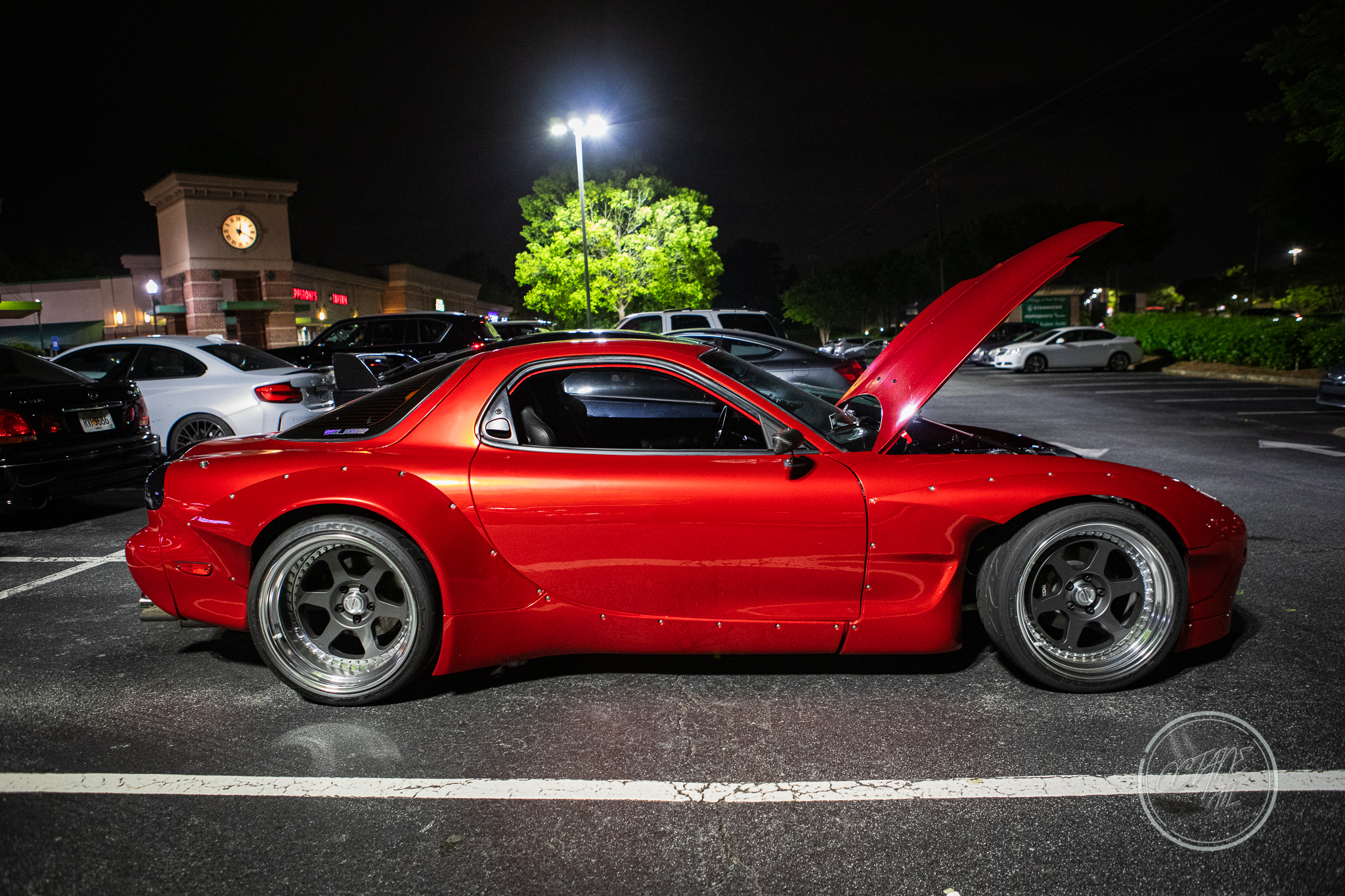 After we stuffed our faces we mingled with some old friends and new. Then the wind kicked up, and I quickly realized I had not shot anything other than our food and a few cars, so I set about trying to capture as many cars as I possibly could before the inevitable drenching rain began. Like always there was a large showing of Lexus options, ranging from the new GX to a full Pandem kit fitted to an RC, but there were also some fun older Hondas, a widebody FD and a very well known Skyline, not to mention Sean’s classic Mustang available for viewing. Unfortunately while I was still working my way through the rain did start, initially just a light shower of thick fat raindrops, but quickly turning into a full out downpour, which if you’re familiar with the weather in Georgia, is par for the course.