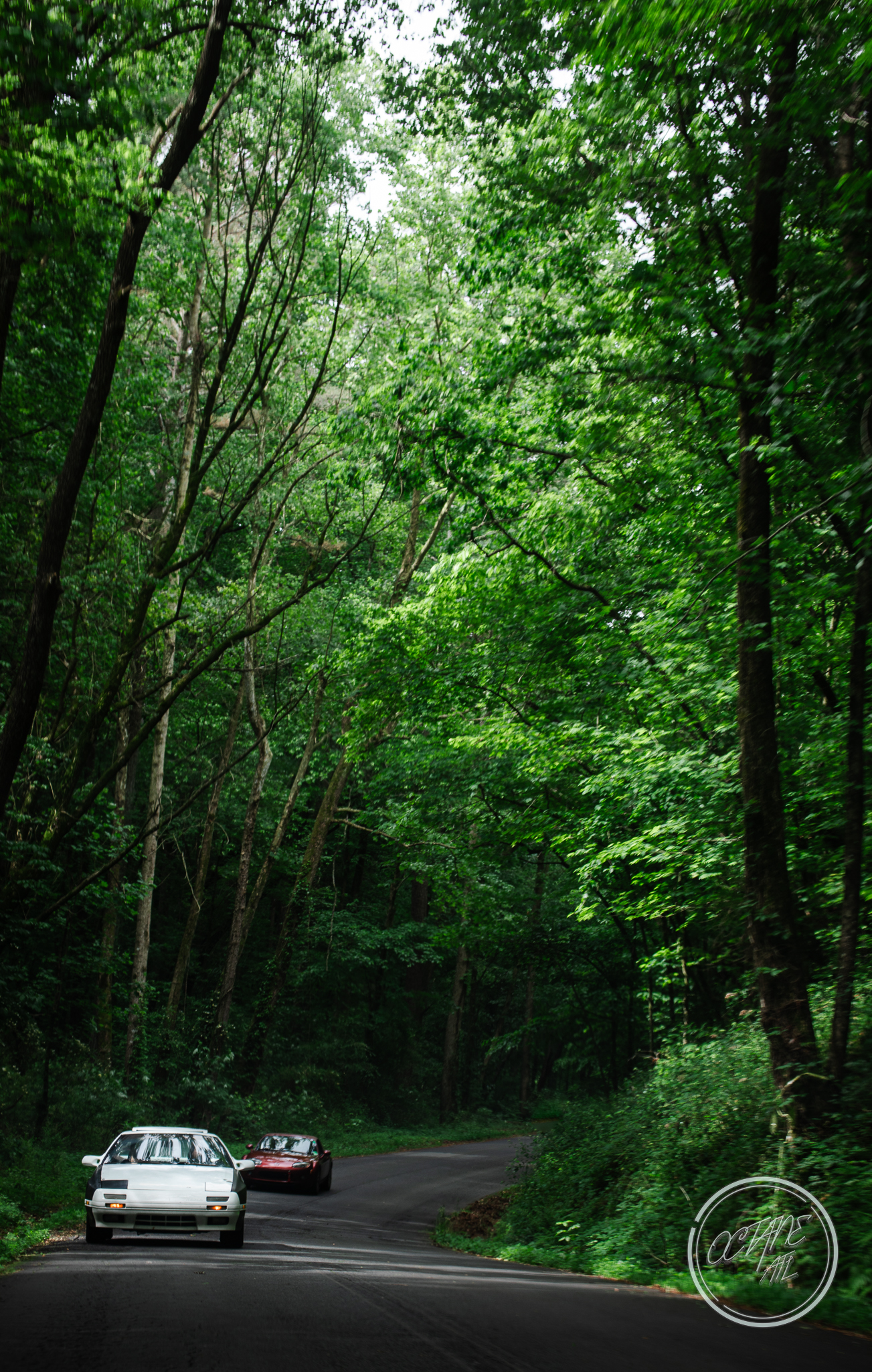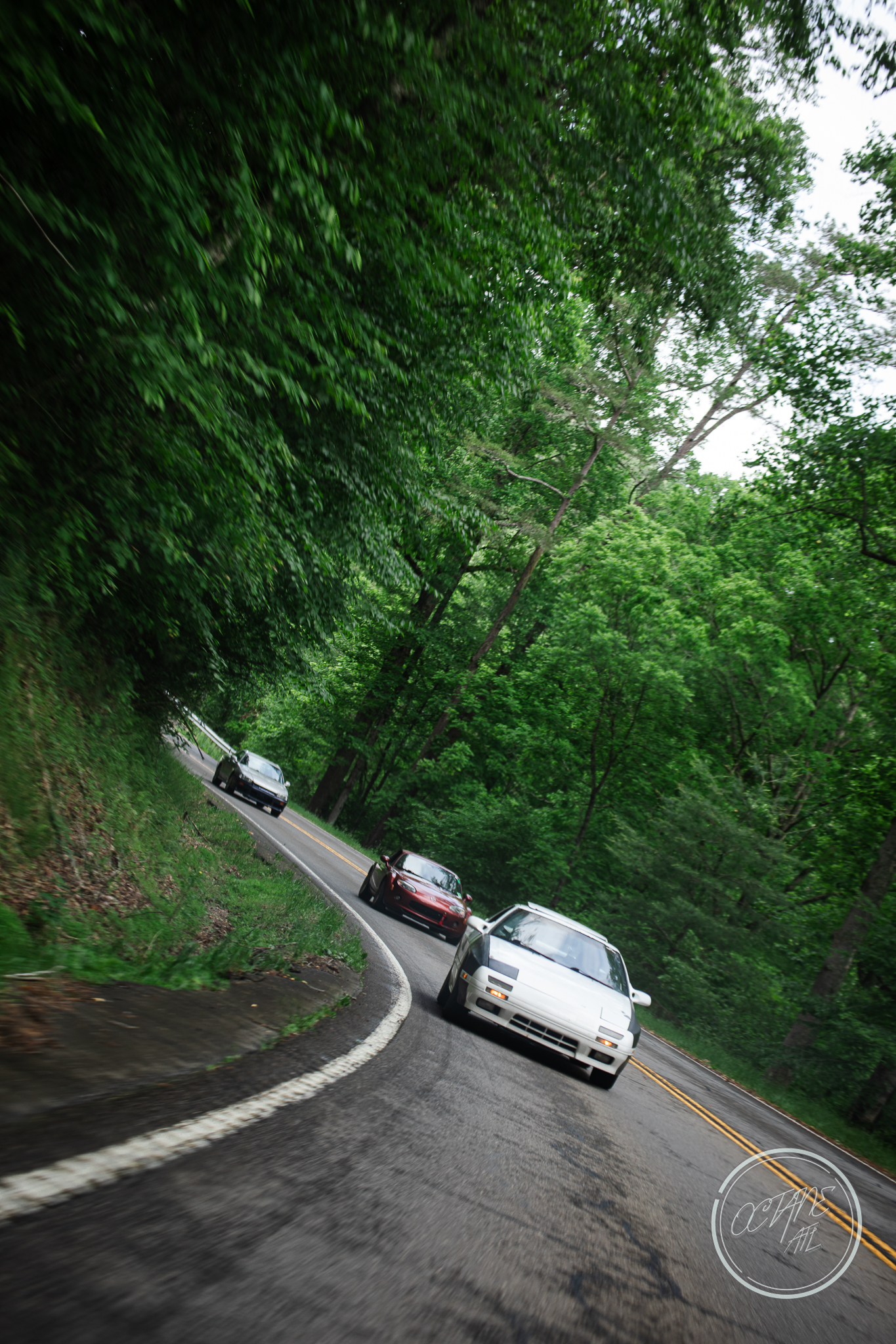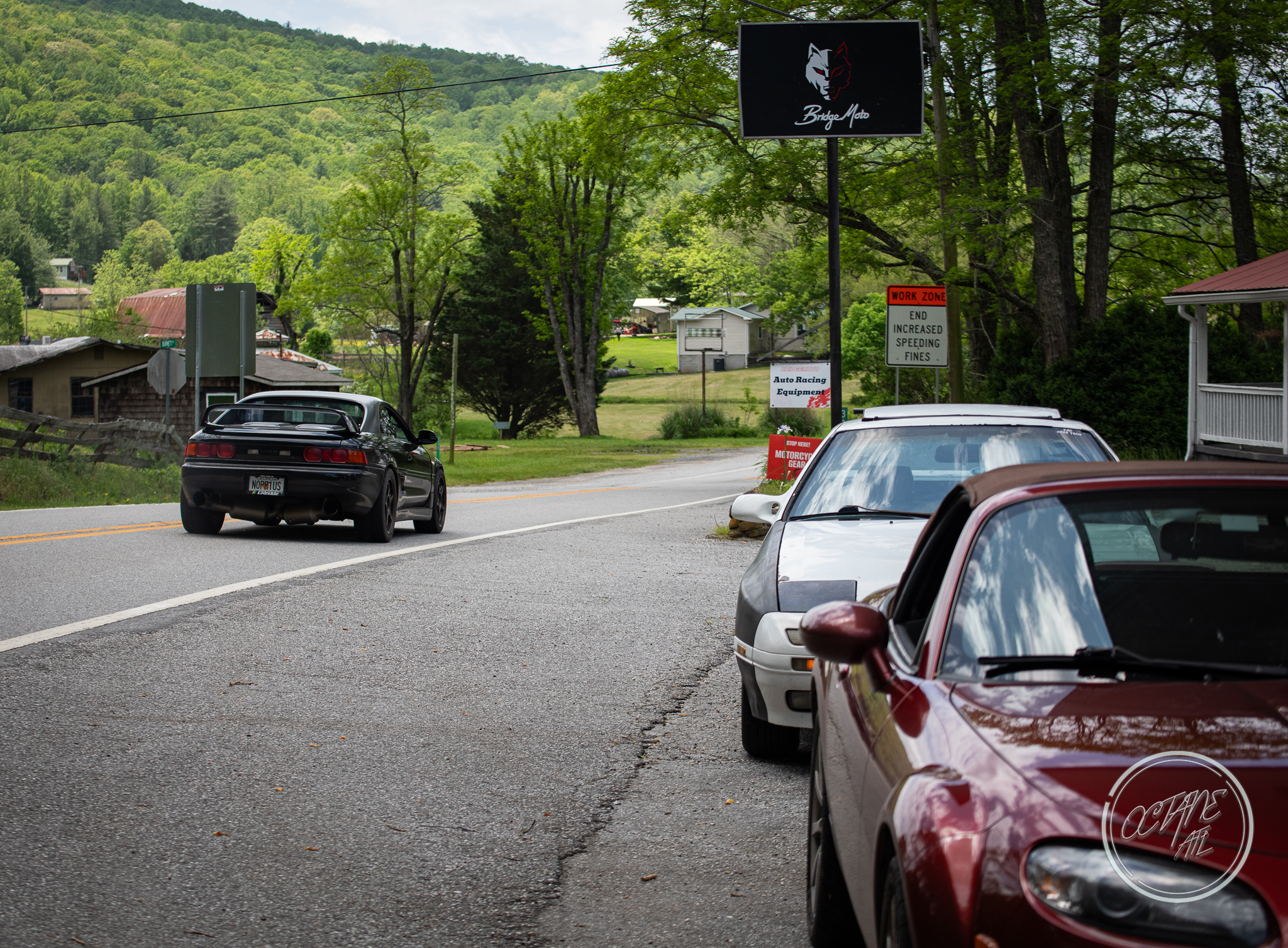 From Blue Ridge we picked up another friend at a quick stop, then wound across the top of the state heading toward Suches to drive one of his absolute most favorite roads in the state, Wolfpen Gap Road, which is where you’ll find Alan and Rachel’s fantastic store- Bridgemoto. If you’ve not checked out Bridgemoto yet, either in person or online, you’re missing out. Ranging from clothes to seats and steering wheels as well as all your safety gear, they’re not only a provider of goodies for the car community, they’re also very involved and are drivers themselves. We spent some time in the store chatting with the whole family and picking out our next purchases, playing initial d and enjoying some coffee before starting back across Wolfpen, then split to head towards Clarksville.