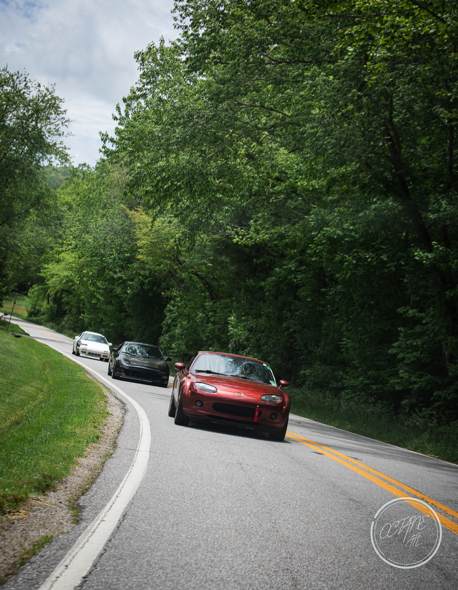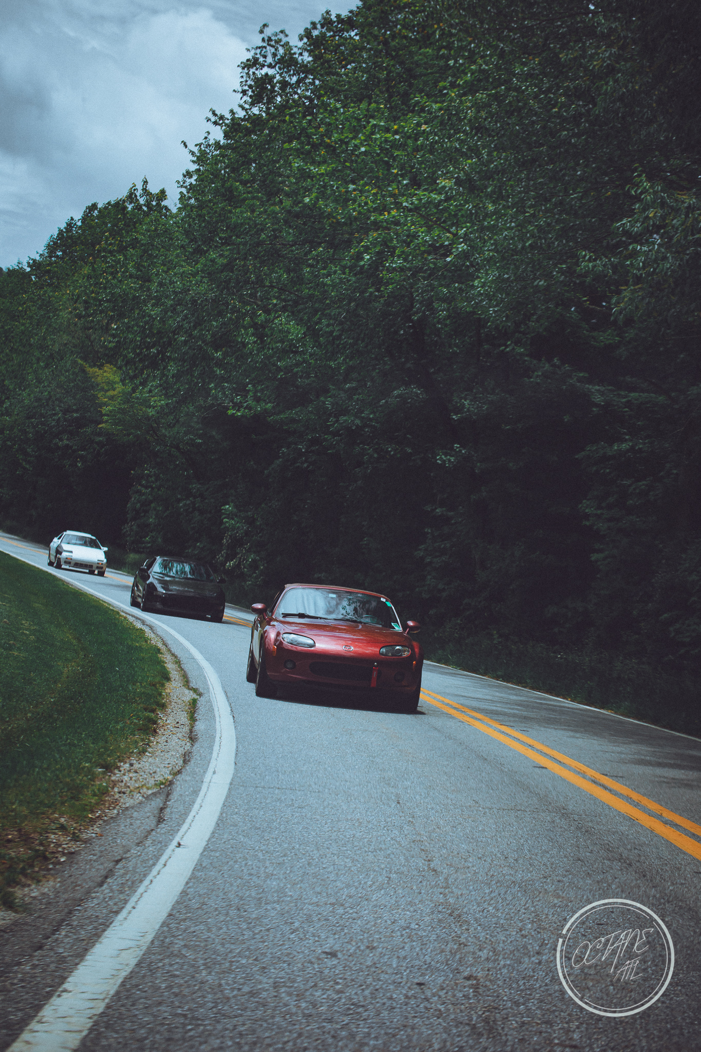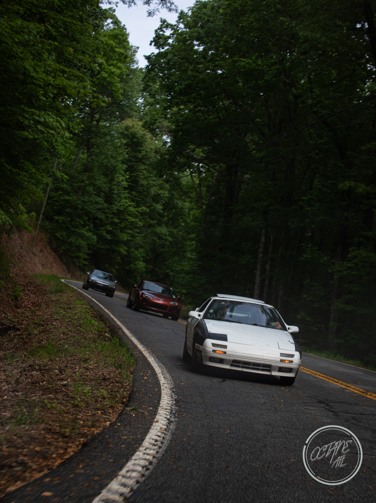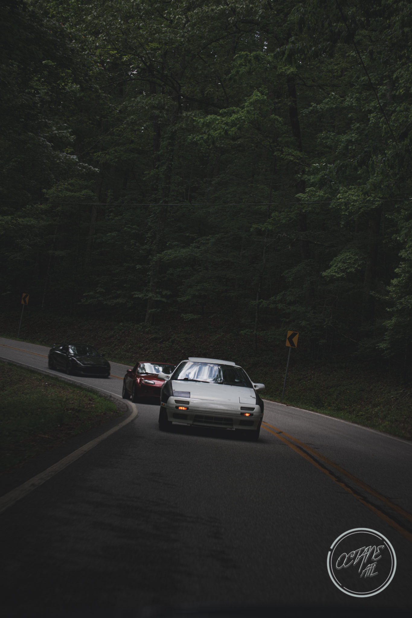 From Blue Ridge we picked up another friend at a quick stop, then wound across the top of the state heading toward Suches to drive one of his absolute most favorite roads in the state, Wolfpen Gap Road, which is where you’ll find Alan and Rachel’s fantastic store- Bridgemoto. If you’ve not checked out Bridgemoto yet, either in person or online, you’re missing out. Ranging from clothes to seats and steering wheels as well as all your safety gear, they’re not only a provider of goodies for the car community, they’re also very involved and are drivers themselves. We spent some time in the store chatting with the whole family and picking out our next purchases, playing initial d and enjoying some coffee before starting back across Wolfpen, then split to head towards Clarksville.