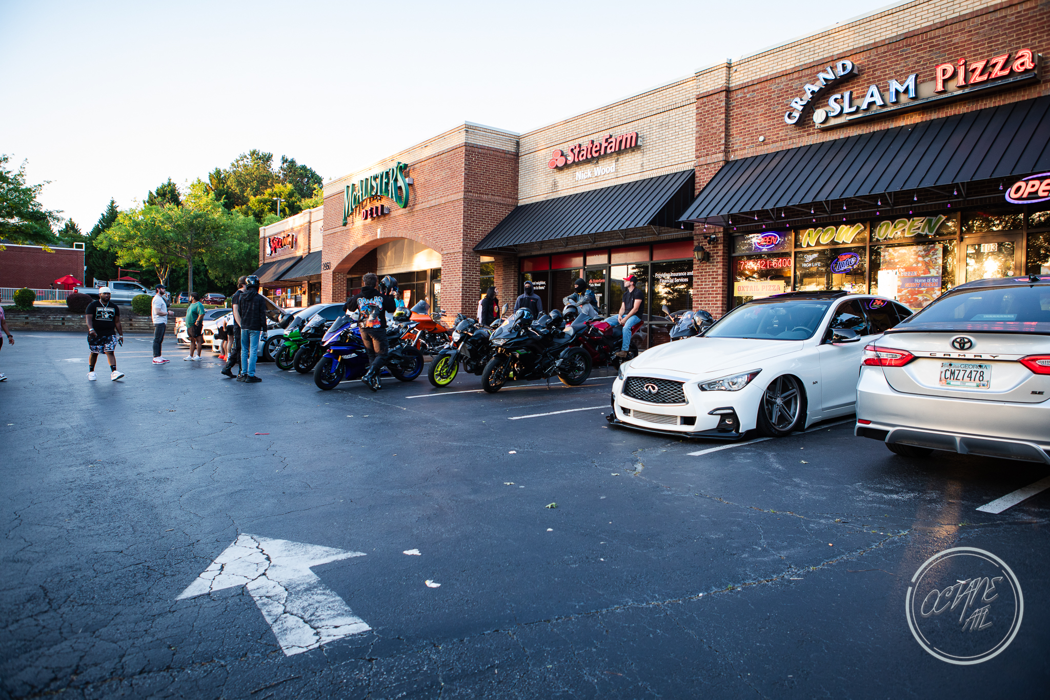 I had never been to an anonymous meet, nor any meets the other co-hosts had thrown (Stealth, M Addicts, Eurofed), so I wasn’t sure what to expect other than lots of euro cars based on the co-hosts listed. The meet had lots of BMWs, a few Porsches and VWs, then a good handful of bikes, JDM cars and a few examples of American muscle. There was a DJ booth on the patio of Grand Slam and folks were mostly, initially, respecting the rules of only subtle revving, no burnouts and no hooning. There did seem to be some confusion regarding where to park, but my hunch is this happened due to more folks showing up than anticipated- though this did lead to other businesses having to ask folks to move their cars.