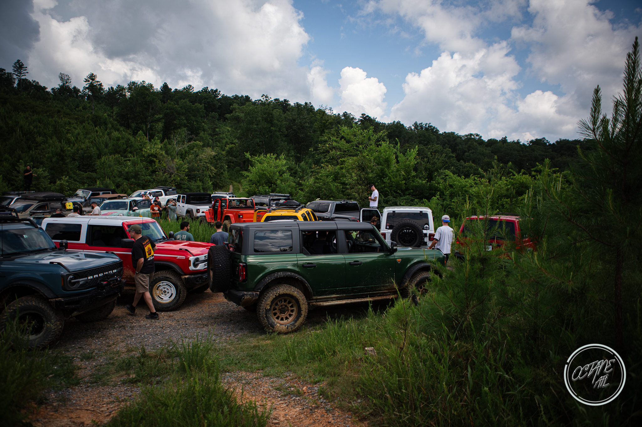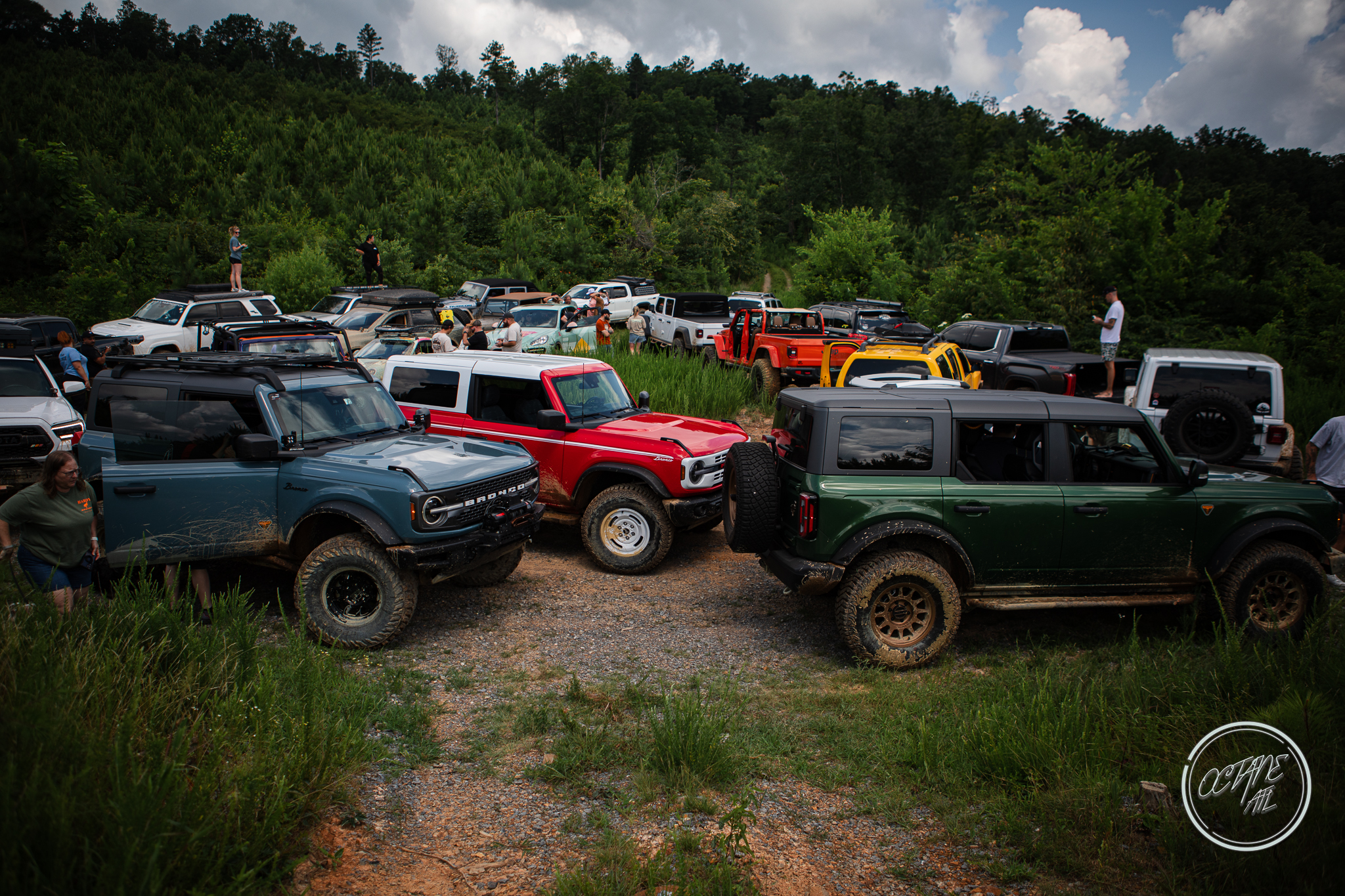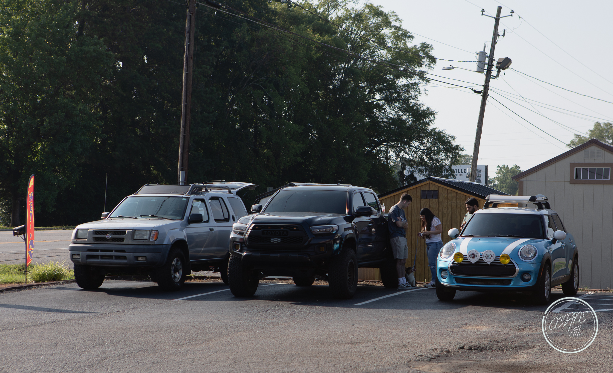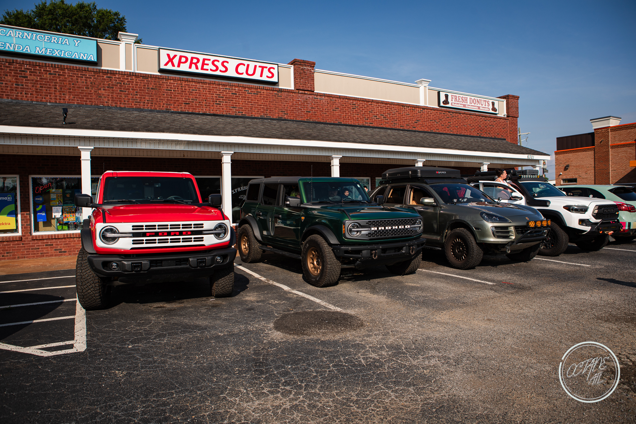 For the June event Atlanta Breakfast Rally partnered up with soon-to-be launched apparel brand Antrieb and local meet event Lifts and Lagers to promote a big public meet and forest service road ride. Starting at Fresh Donuts in Adairsville for breakfast and staging, the event already had a buzz of excitement as folks enjoyed their sugary treats and mingled through the parking lots, looking at the builds getting ready to embark on the journey. Unexpectedly, a gentleman in a Bronco showed up with his therapy animals, a lovely border Collie and a mini horse, both of whom were a huge hit with the entire group.