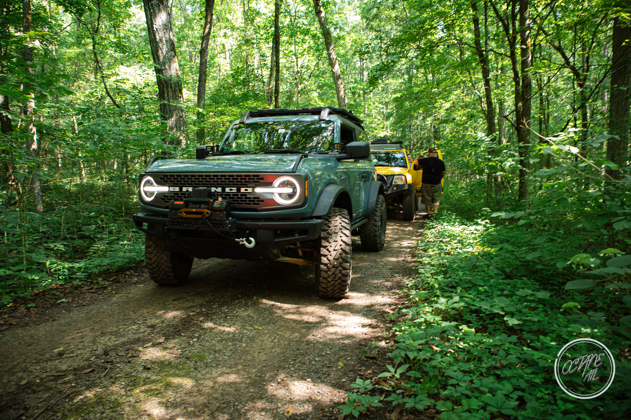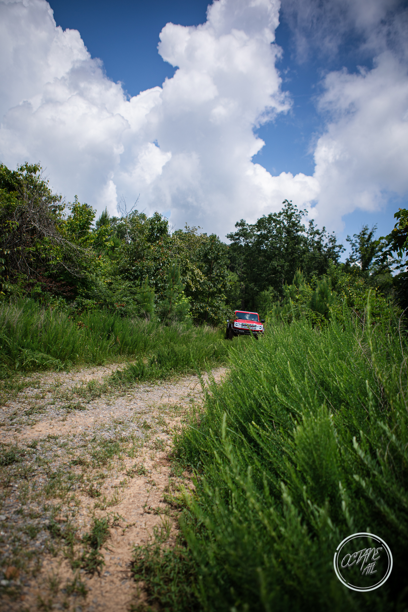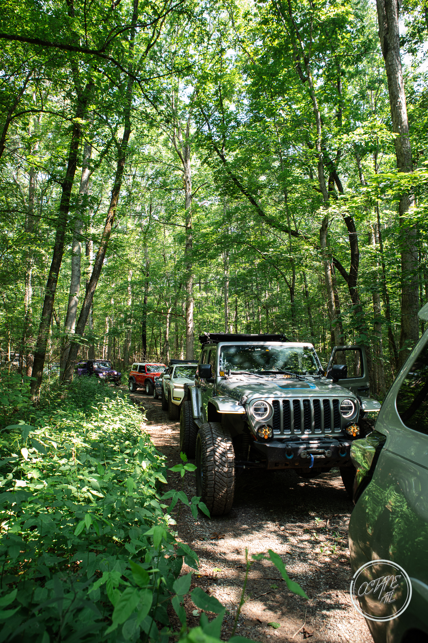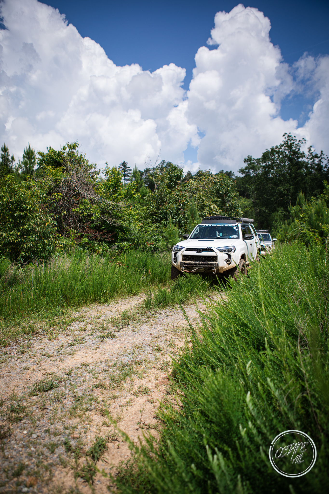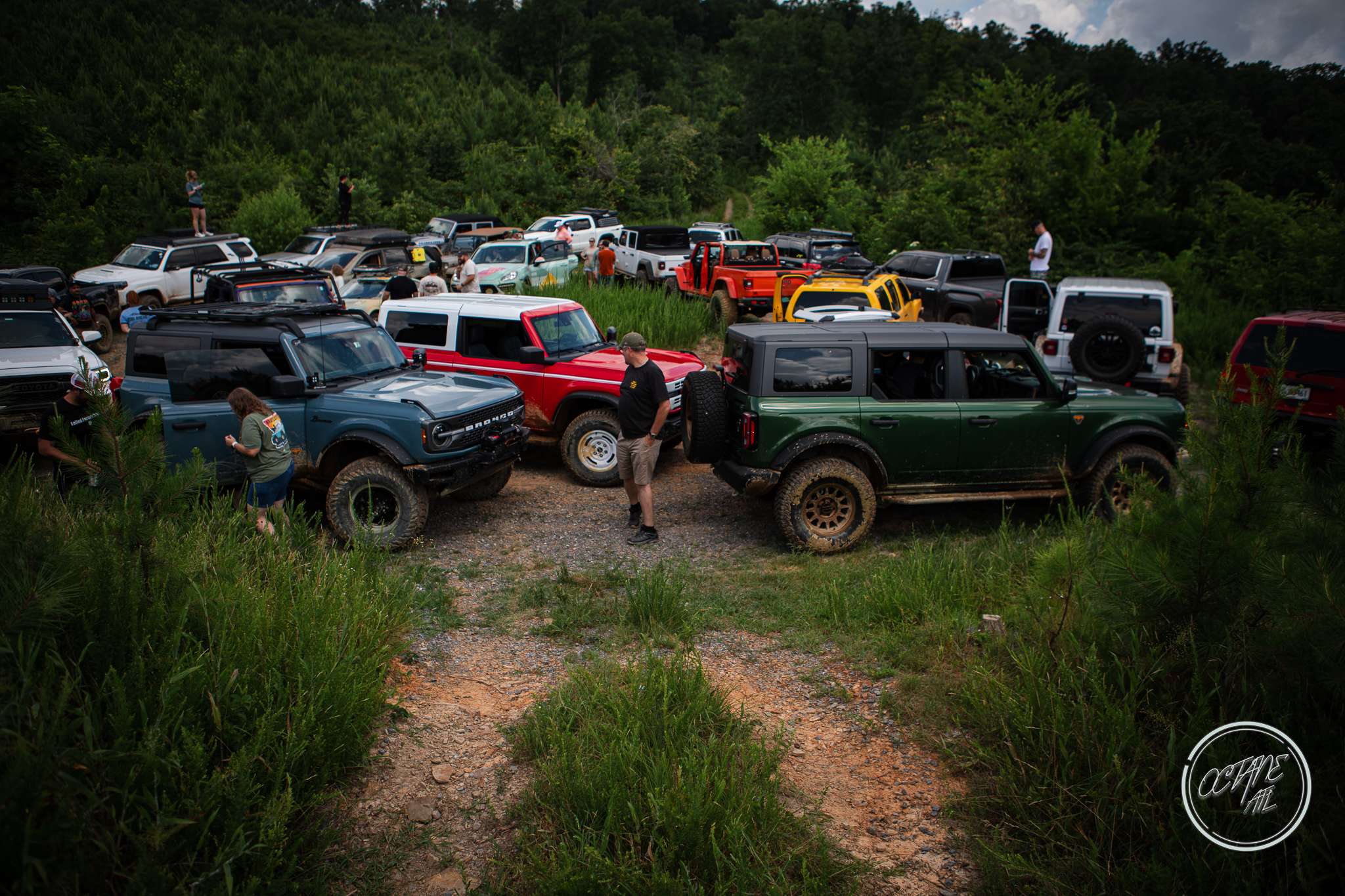 For the June event Atlanta Breakfast Rally partnered up with soon-to-be launched apparel brand Antrieb and local meet event Lifts and Lagers to promote a big public meet and forest service road ride. Starting at Fresh Donuts in Adairsville for breakfast and staging, the event already had a buzz of excitement as folks enjoyed their sugary treats and mingled through the parking lots, looking at the builds getting ready to embark on the journey. Unexpectedly, a gentleman in a Bronco showed up with his therapy animals, a lovely border Collie and a mini horse, both of whom were a huge hit with the entire group.