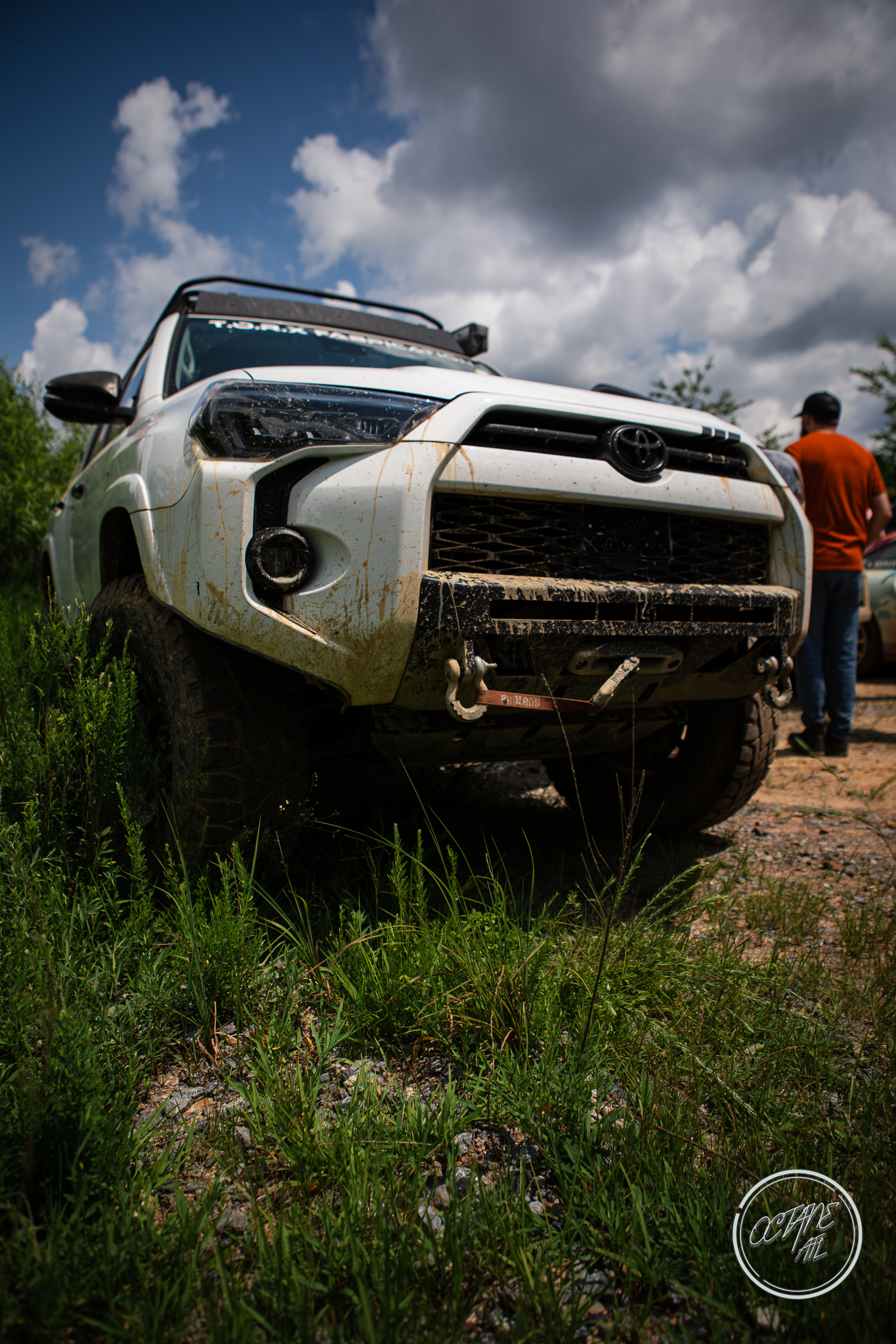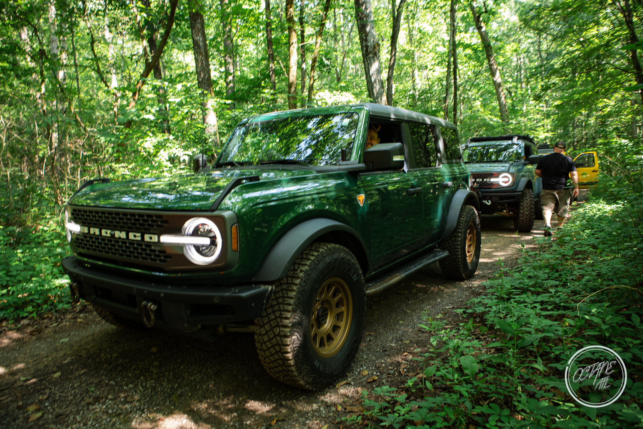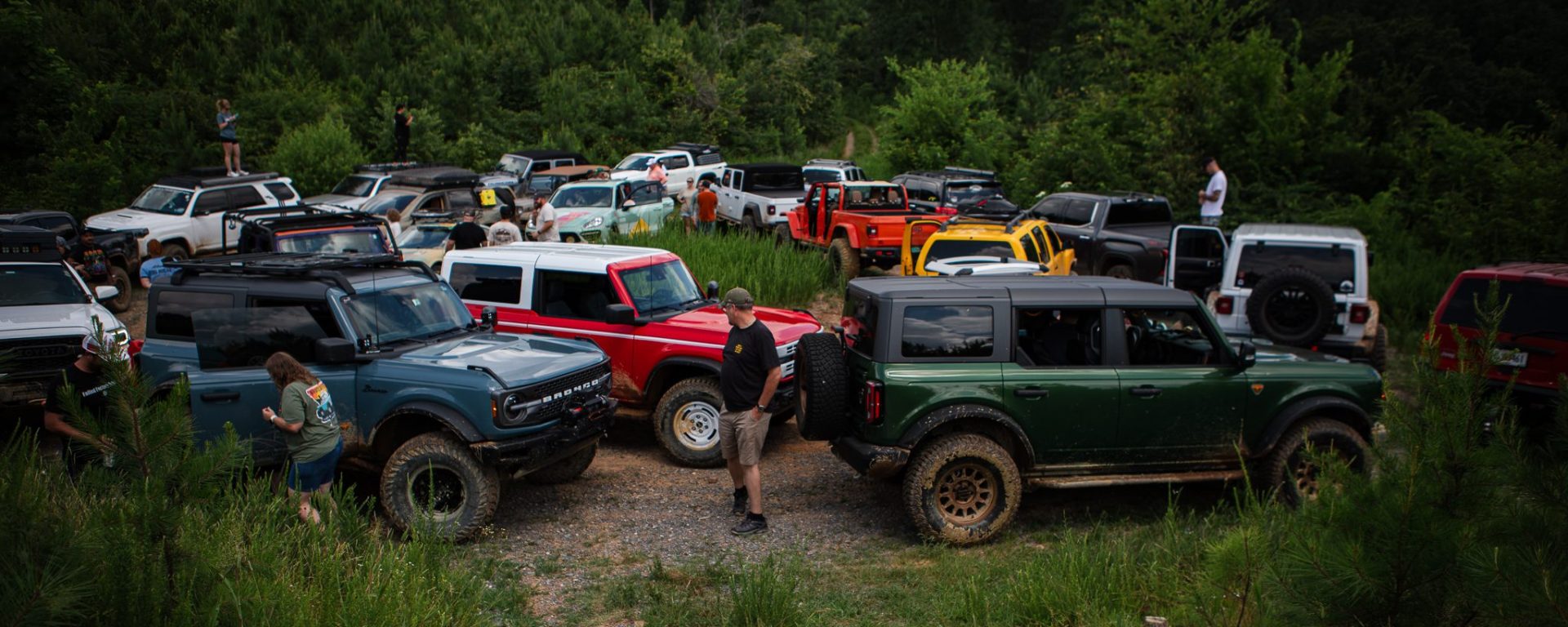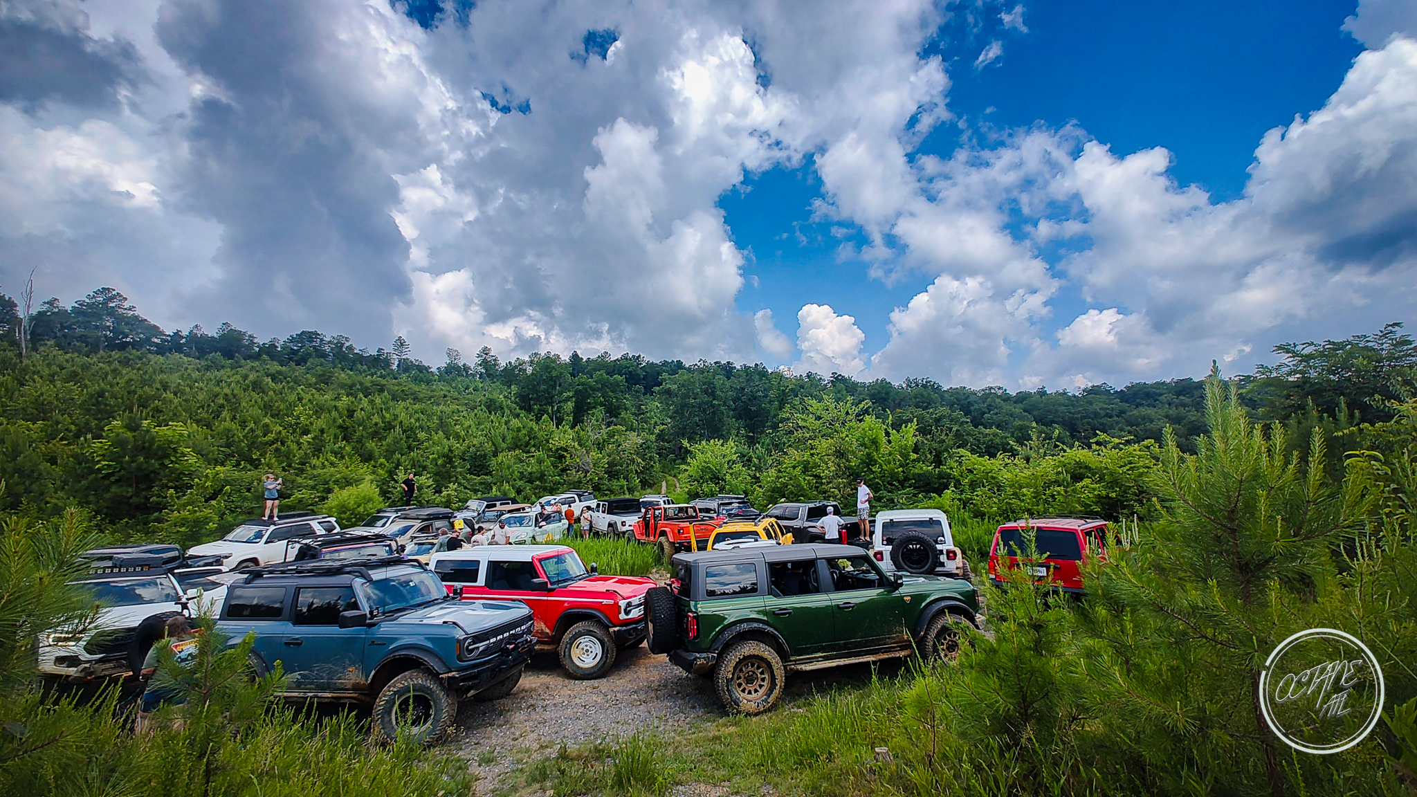 For the June event Atlanta Breakfast Rally partnered up with soon-to-be launched apparel brand Antrieb and local meet event Lifts and Lagers to promote a big public meet and forest service road ride. Starting at Fresh Donuts in Adairsville for breakfast and staging, the event already had a buzz of excitement as folks enjoyed their sugary treats and mingled through the parking lots, looking at the builds getting ready to embark on the journey. Unexpectedly, a gentleman in a Bronco showed up with his therapy animals, a lovely border Collie and a mini horse, both of whom were a huge hit with the entire group.