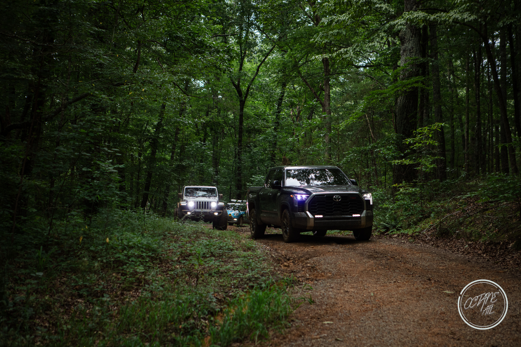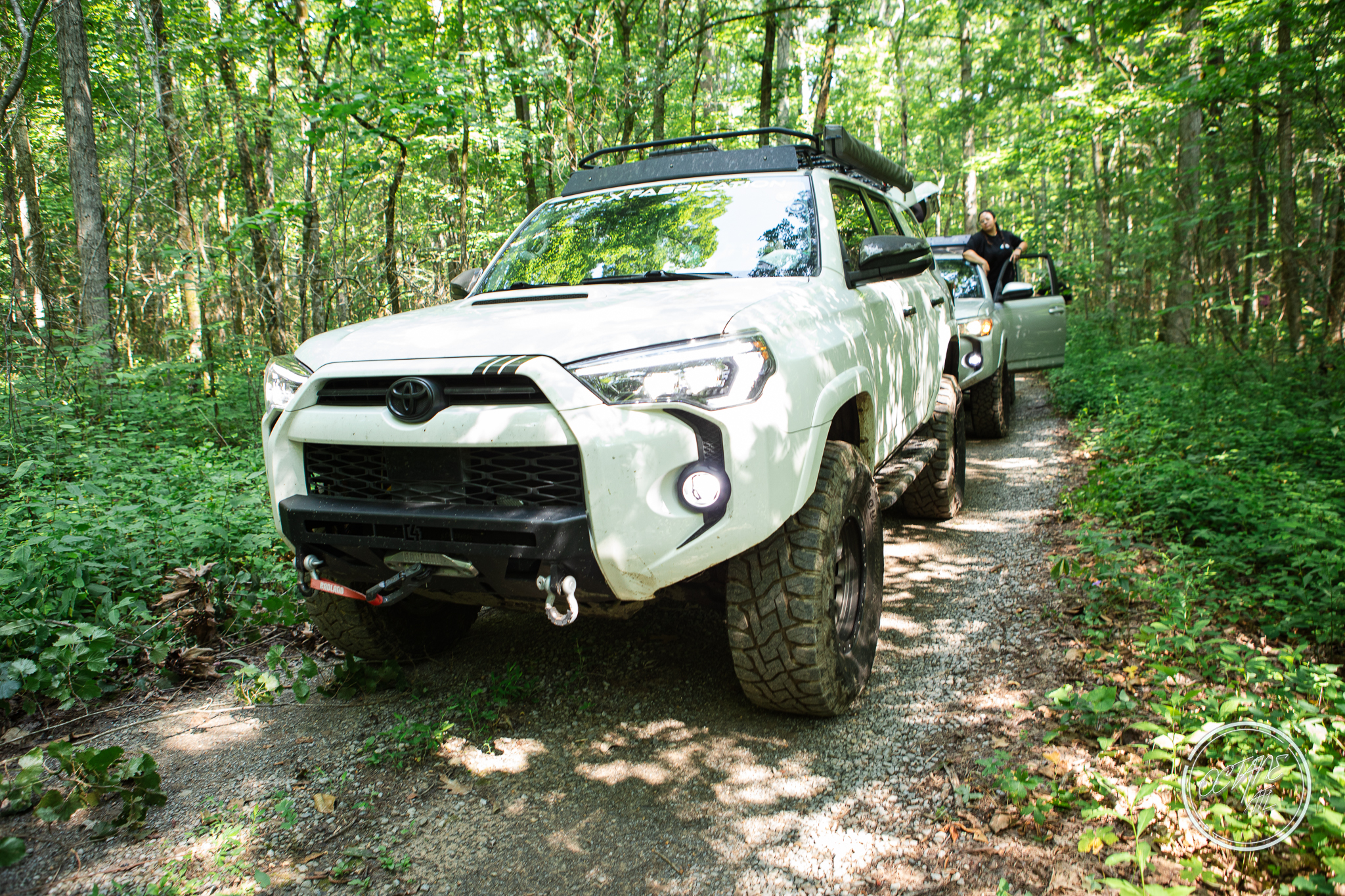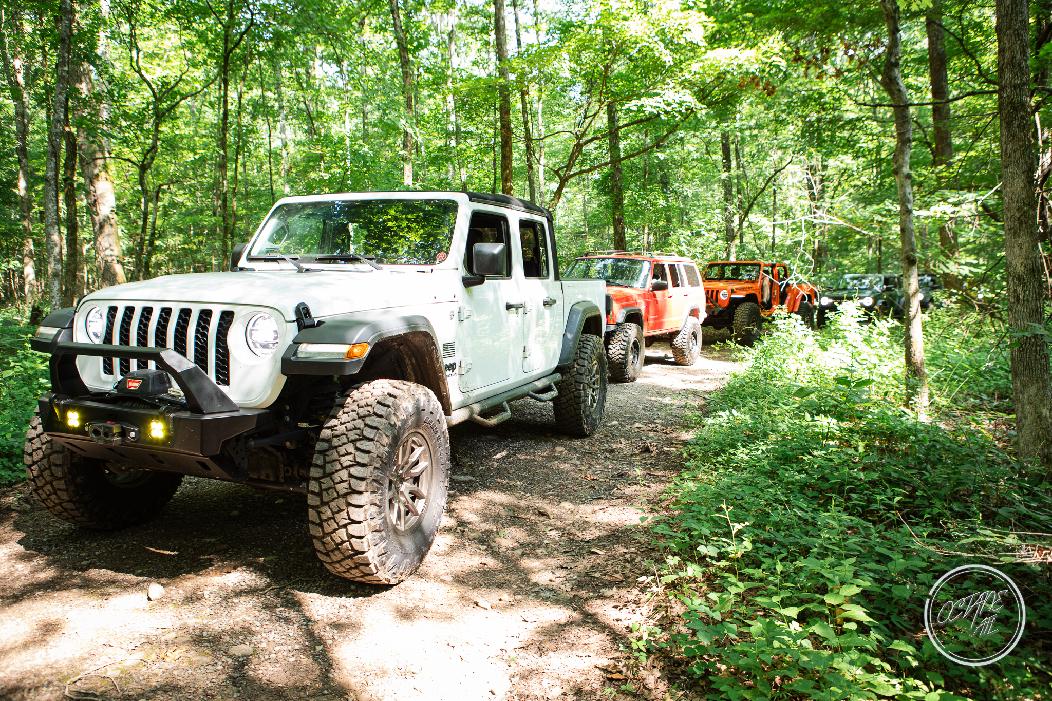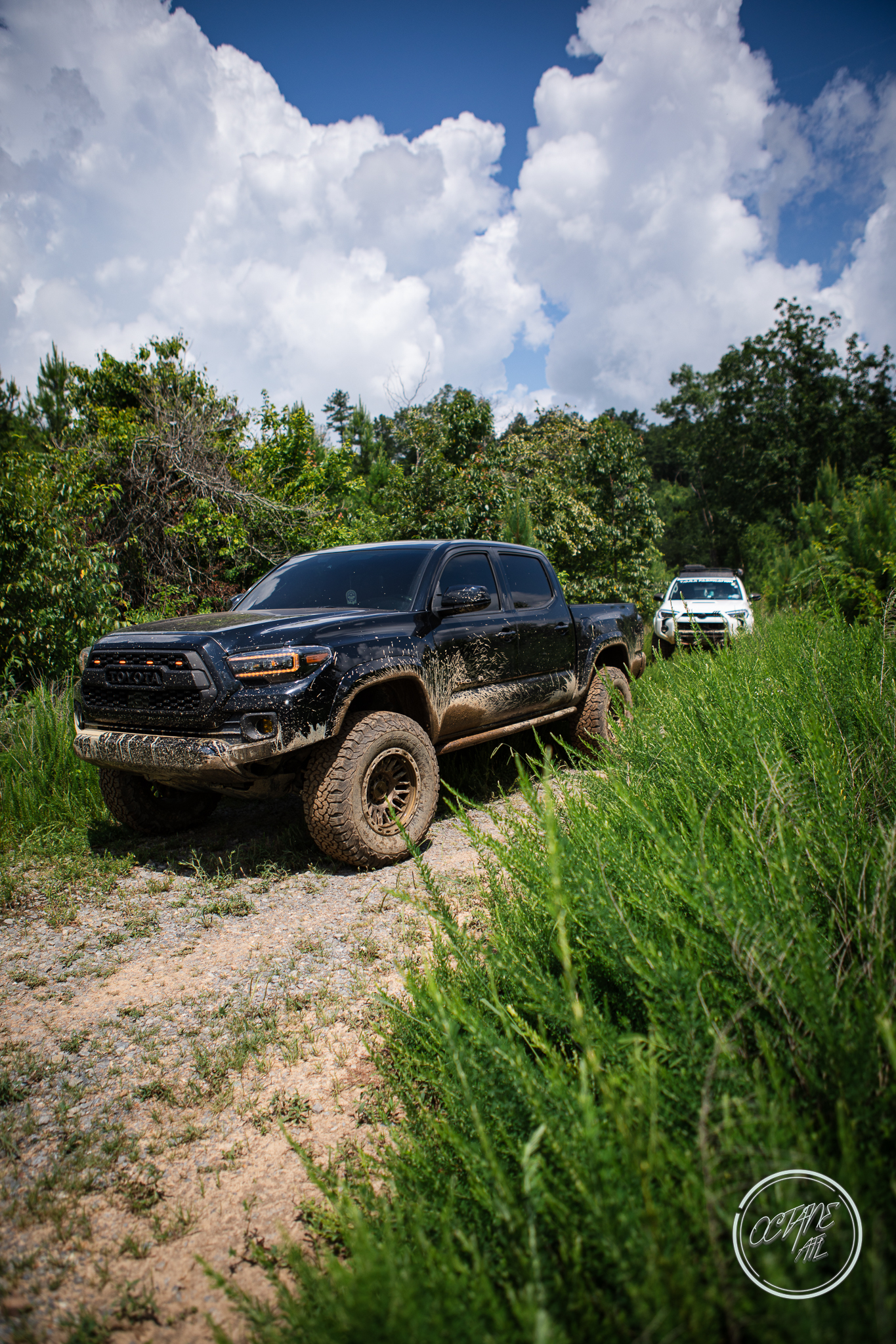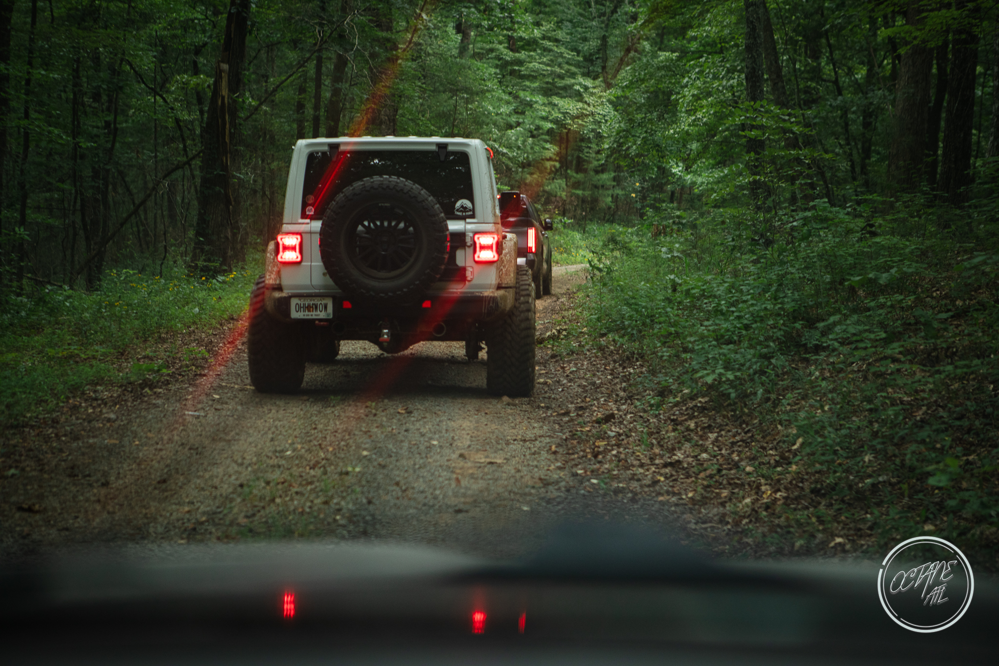 For the June event Atlanta Breakfast Rally partnered up with soon-to-be launched apparel brand Antrieb and local meet event Lifts and Lagers to promote a big public meet and forest service road ride. Starting at Fresh Donuts in Adairsville for breakfast and staging, the event already had a buzz of excitement as folks enjoyed their sugary treats and mingled through the parking lots, looking at the builds getting ready to embark on the journey. Unexpectedly, a gentleman in a Bronco showed up with his therapy animals, a lovely border Collie and a mini horse, both of whom were a huge hit with the entire group.