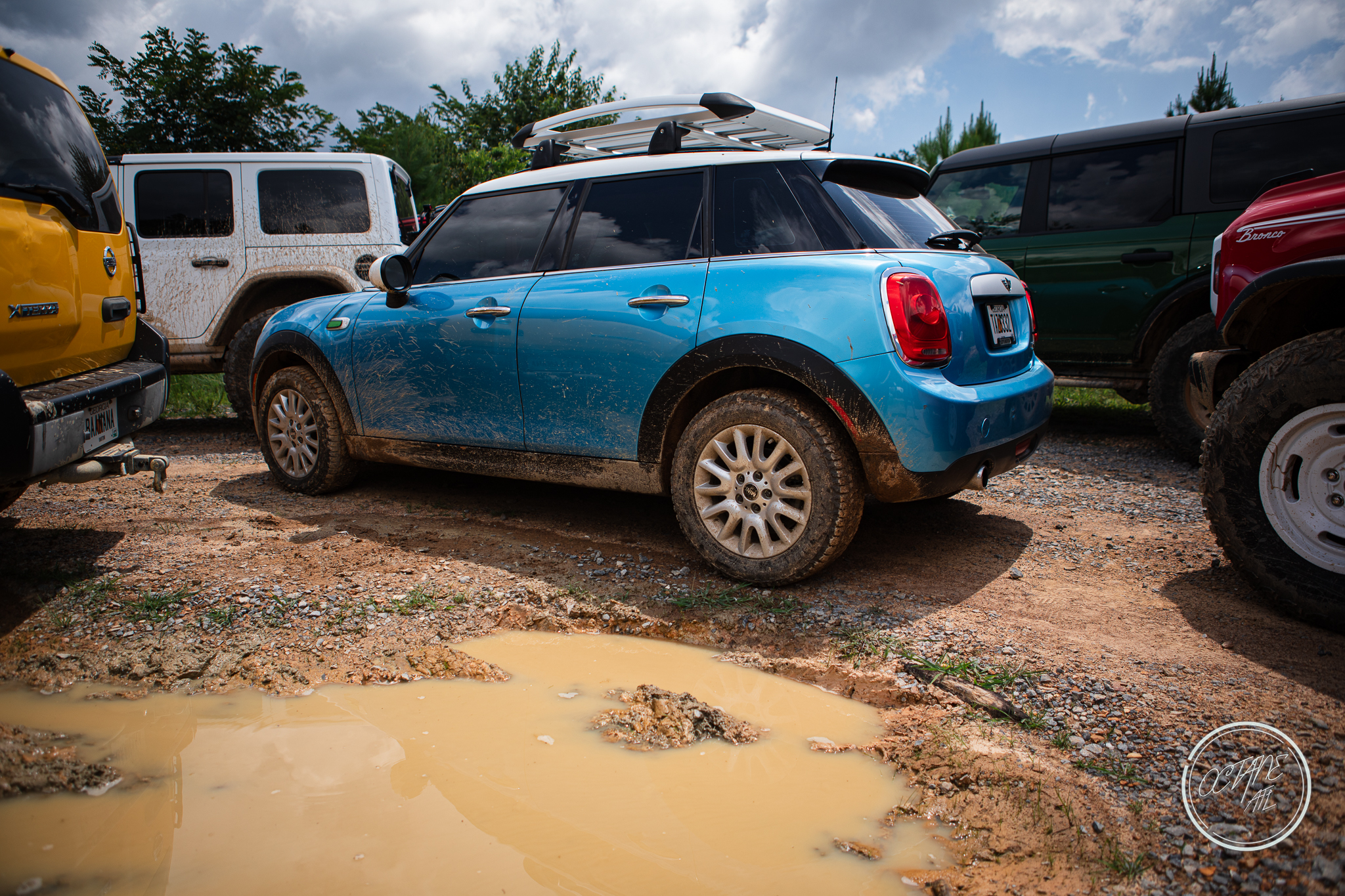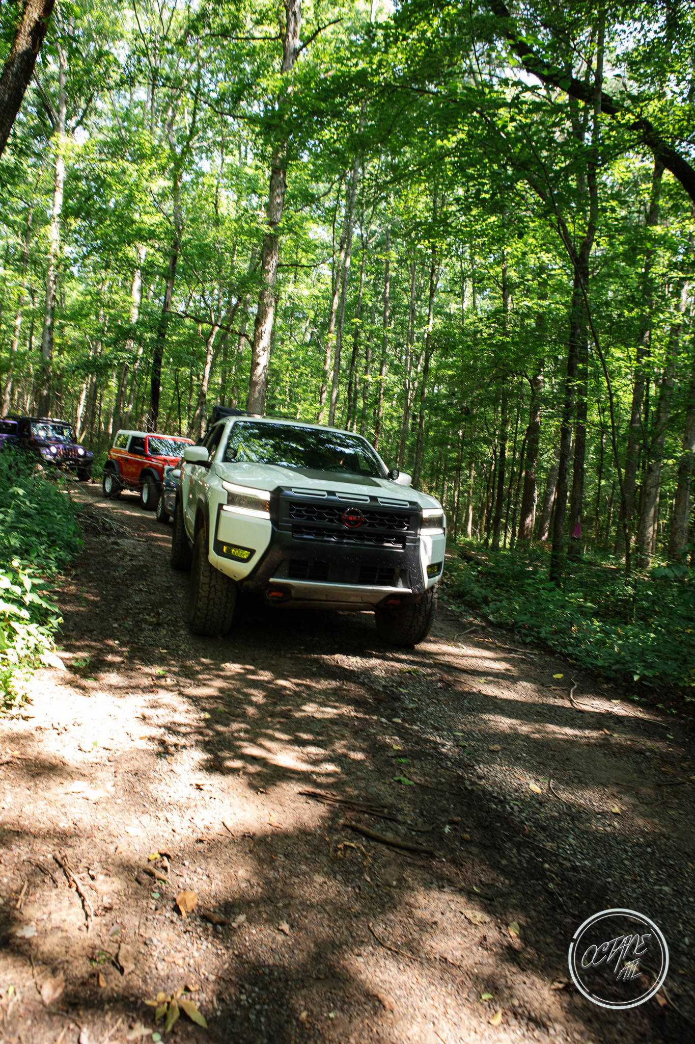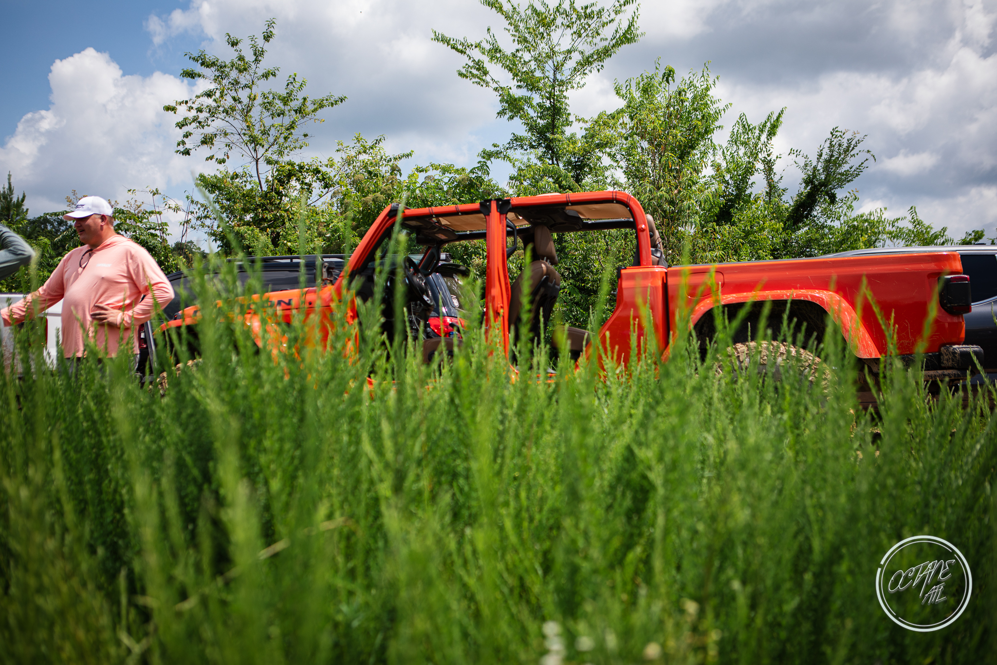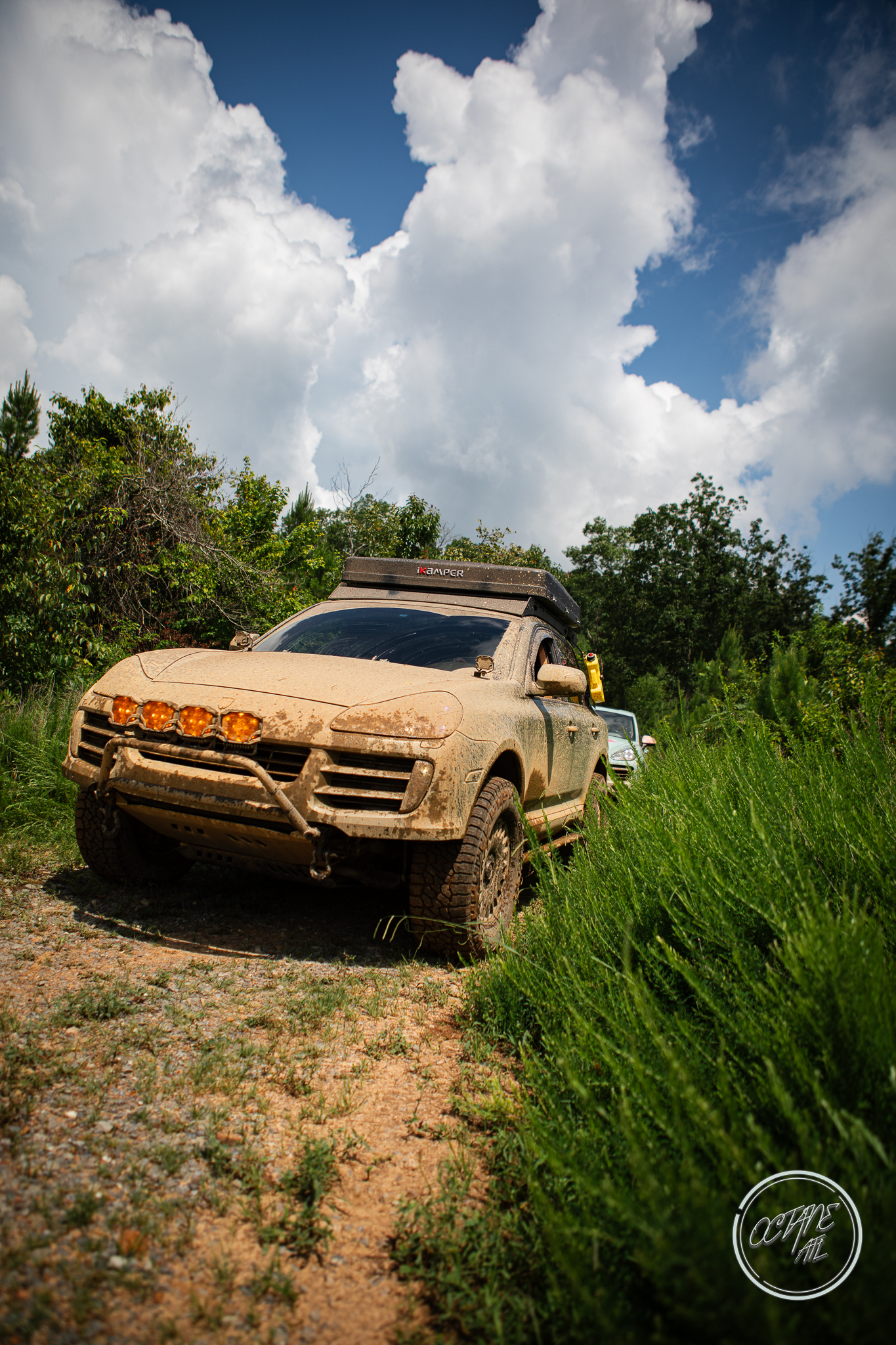 One of the drivers didn’t quite nail the line through a particularly deep and misleading mud pit so some folks got to break out the recovery gear and we helped to ensure the depth in multiple spots of the area, then it was back to the drive up to the clearing. It was a scorcher once the sun heated up the forest and the air was dense with the threat of a summer shower looking in the distance. As we proceeded up towards the end of the path the vegetation shifted from lush forest to shorter brush and tall grasses, giving way to peeps of the surrounding foothills before the road dead ends at a horseshoe.