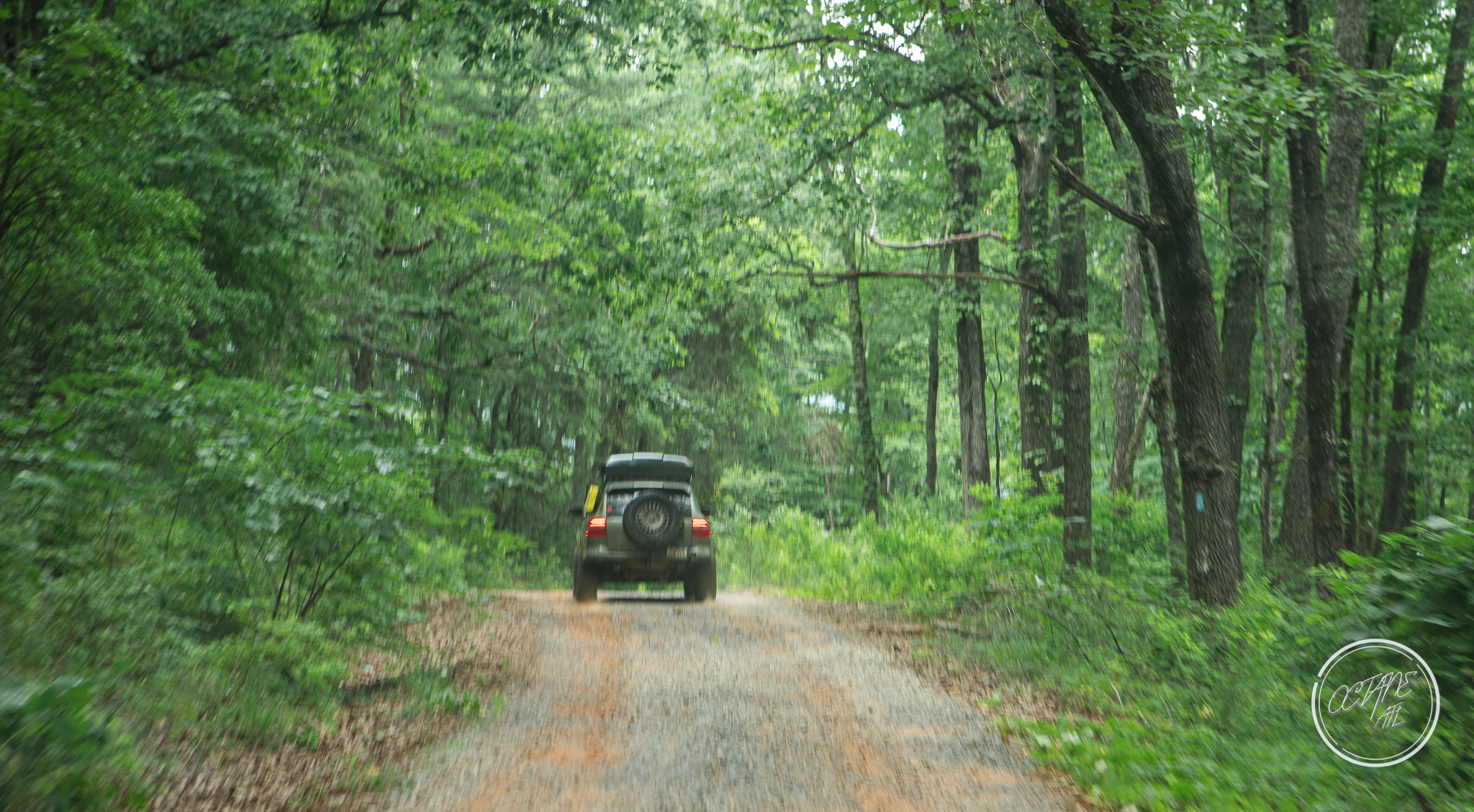 The Johns Mountain WMA is over 23,000 acres of forest service roads, hiking trails, hunting areas and dense wooded land providing home to bear, bobcat, turkeys and a large variety of birds. We didn’t see much in the way of wildlife aside from some of those species of birds, and we only explored a few of the forest service roads, but the beauty tucked away in these lesser traveled spaces of Georgia is hard to beat. After a short stop in the campground to regroup we headed out along the main route to head up to a large open space, traversing multiple large mud puddles, lots of ruts and bumps and a few narrow spots where trees got to be a little friendly with the cars.