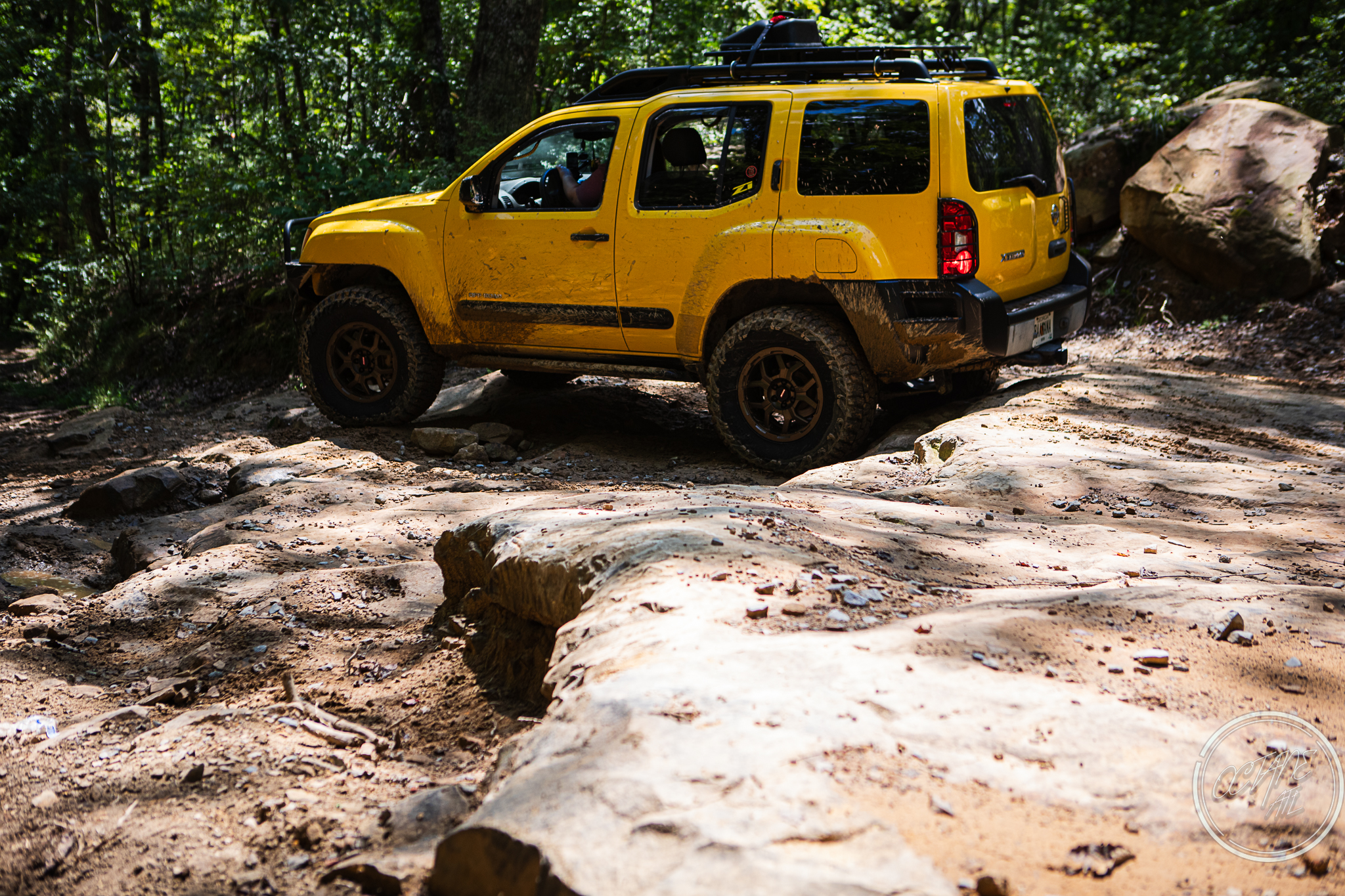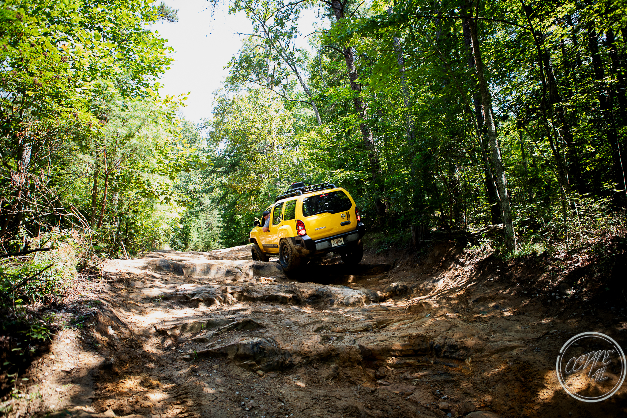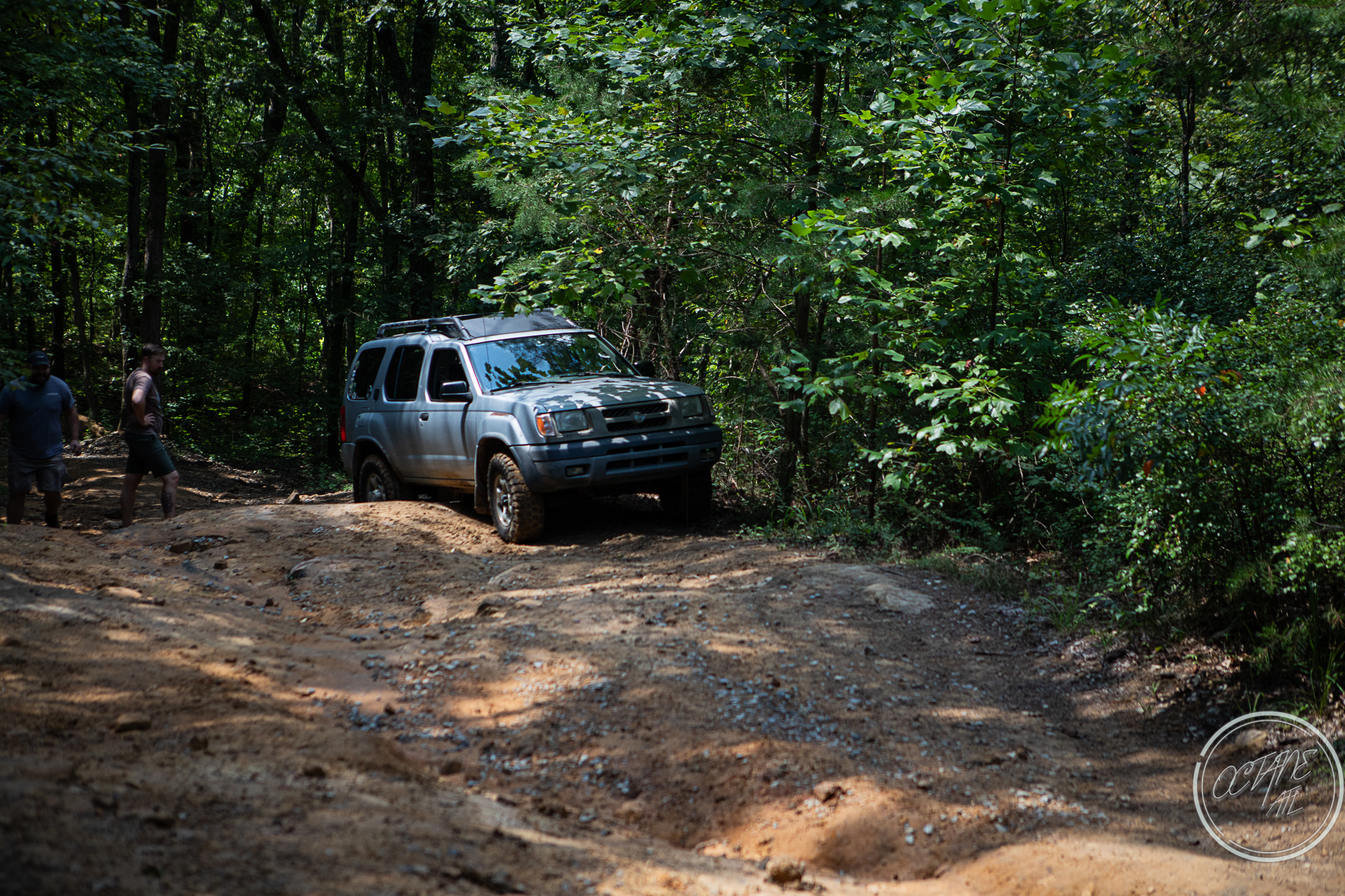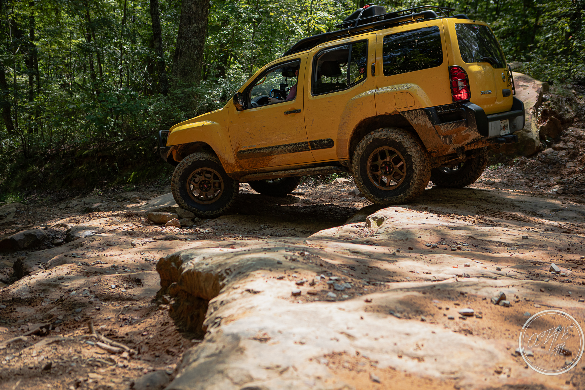 From there we headed north crossing the state line and heading just outside of Chattanooga. We started off heading to a road that, at the entrance, looks like a residential road that would be pretty simple, but the friends who had done the trail quickly reminded us they recommended airing down, which we all did and were almost immediately grateful for. The road leads in with some simple dips and small rocks to journey over but soon leads to some more technical paths. There are options to bypass the harder spaces, and a few of our group opted to bypass the more rocky, challenging spot at the beginning of the road while others gave it their best shot, navigating large climbs and drops, especially for my nearly-stock first gen Xterra.