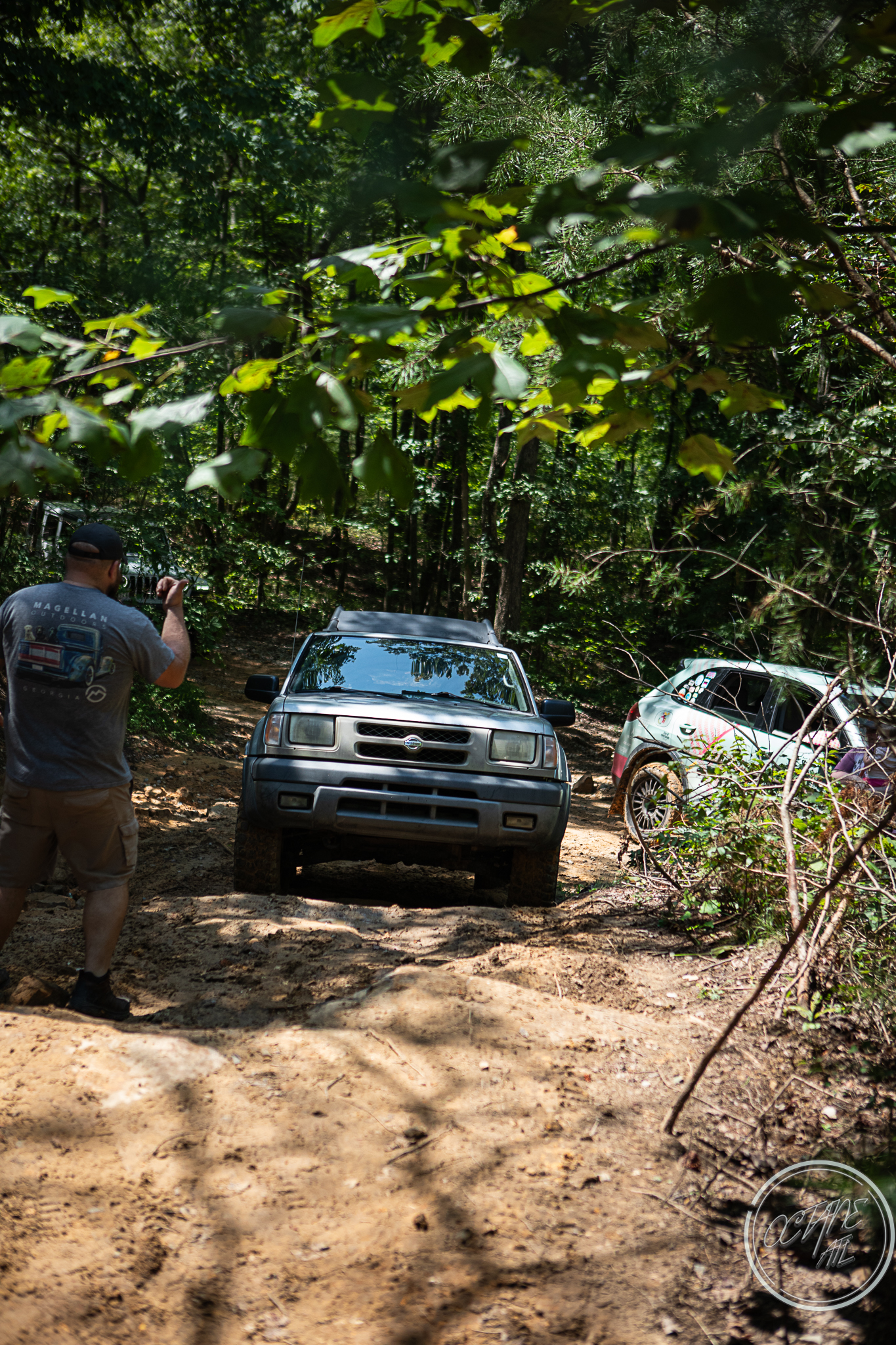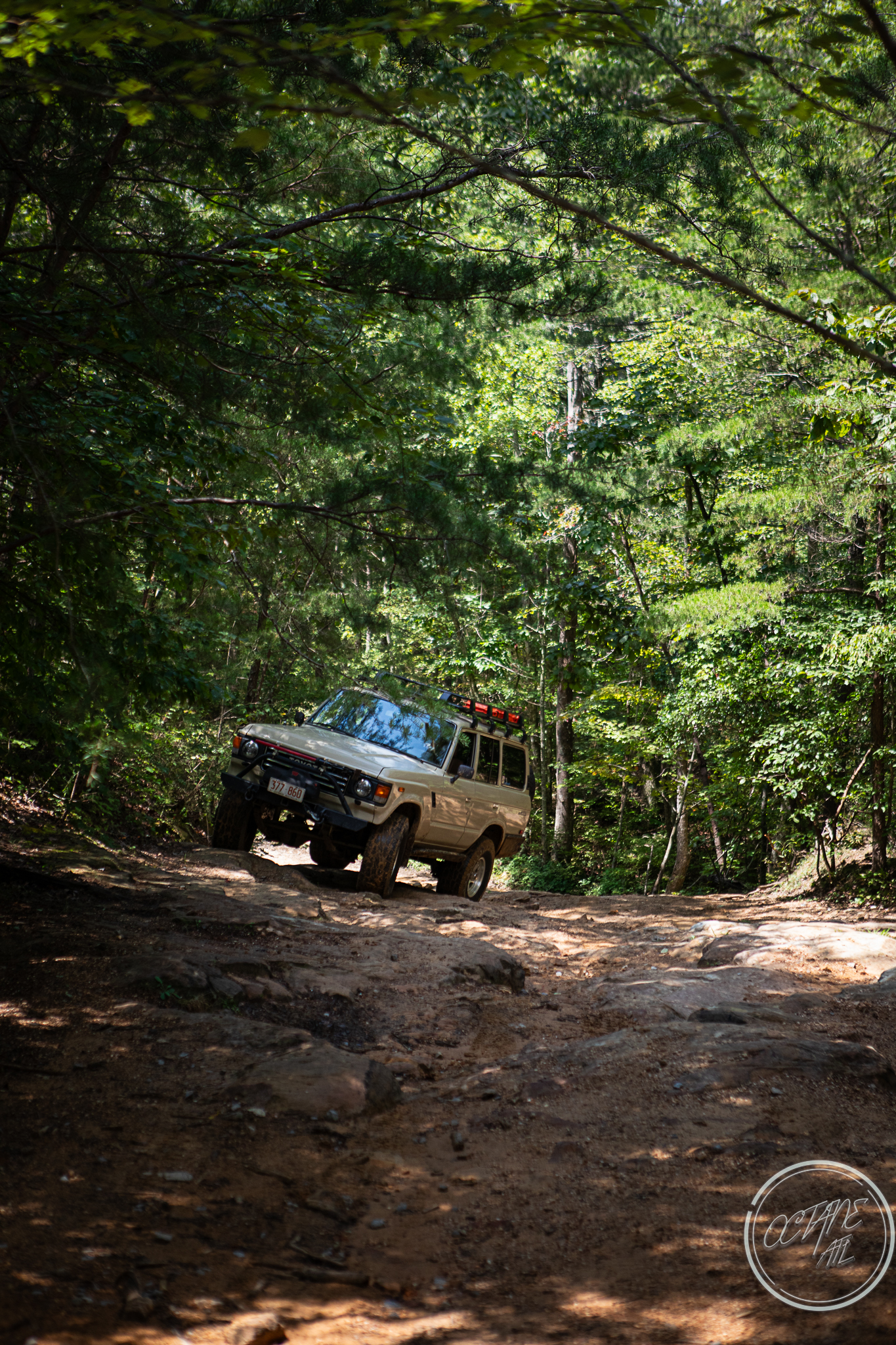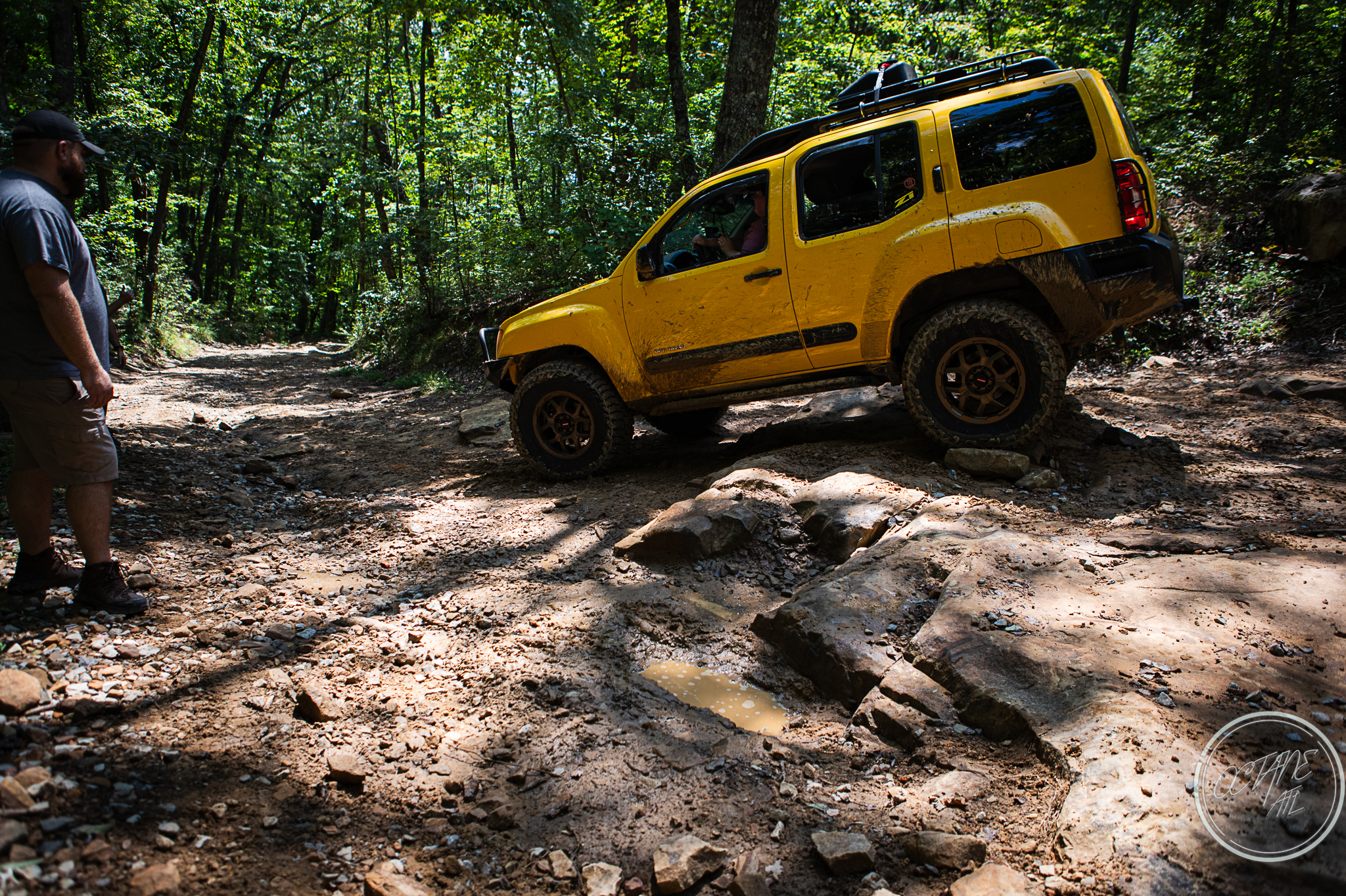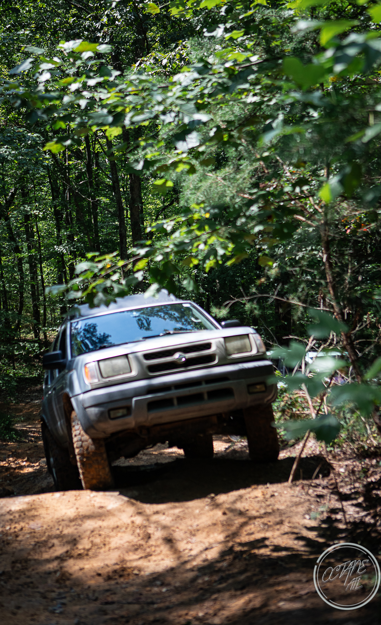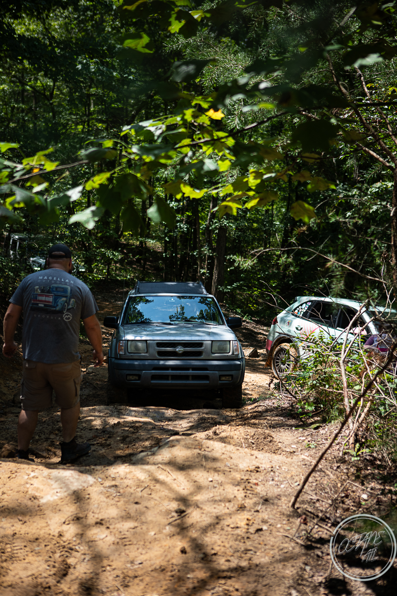 From there we headed north crossing the state line and heading just outside of Chattanooga. We started off heading to a road that, at the entrance, looks like a residential road that would be pretty simple, but the friends who had done the trail quickly reminded us they recommended airing down, which we all did and were almost immediately grateful for. The road leads in with some simple dips and small rocks to journey over but soon leads to some more technical paths. There are options to bypass the harder spaces, and a few of our group opted to bypass the more rocky, challenging spot at the beginning of the road while others gave it their best shot, navigating large climbs and drops, especially for my nearly-stock first gen Xterra.