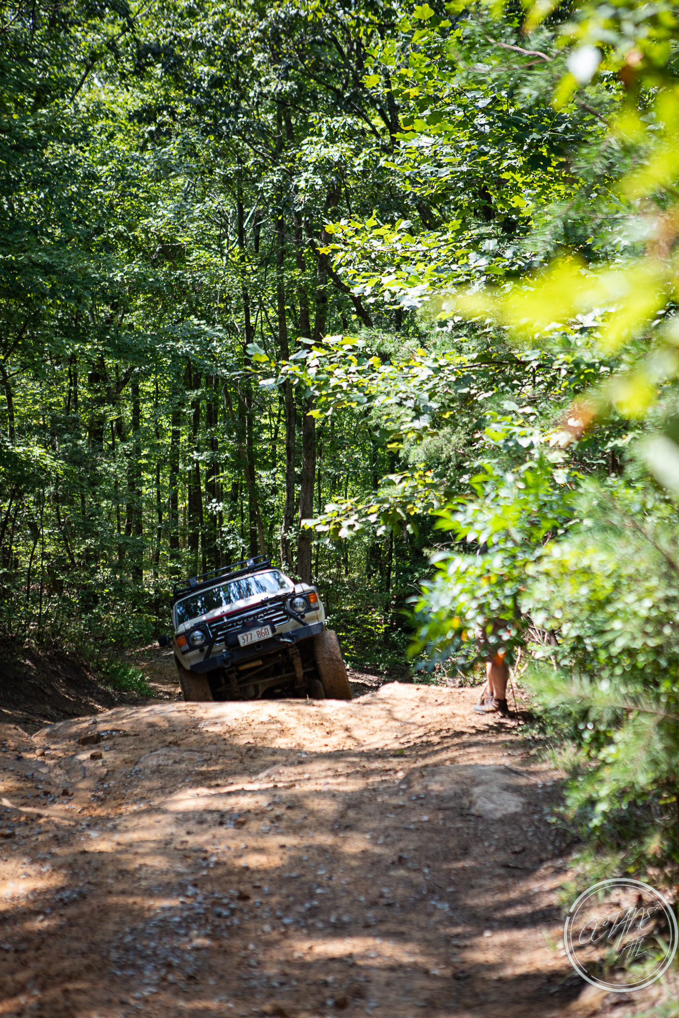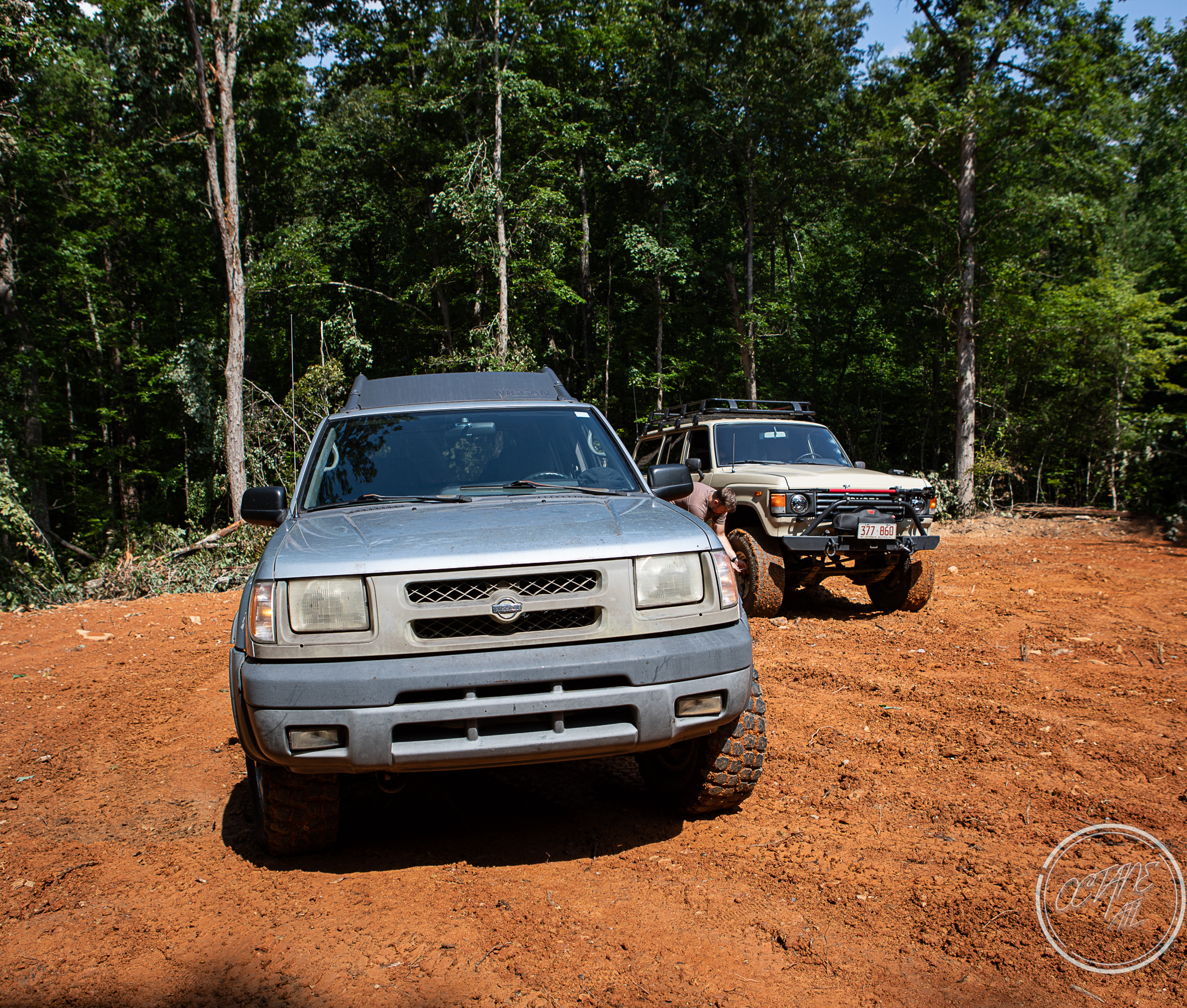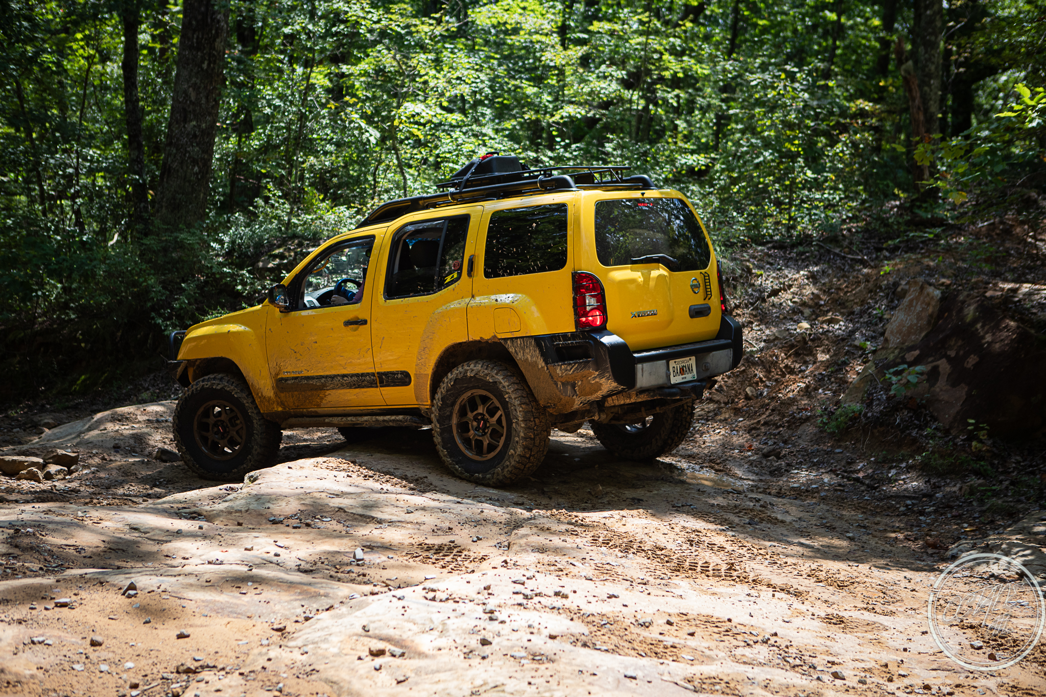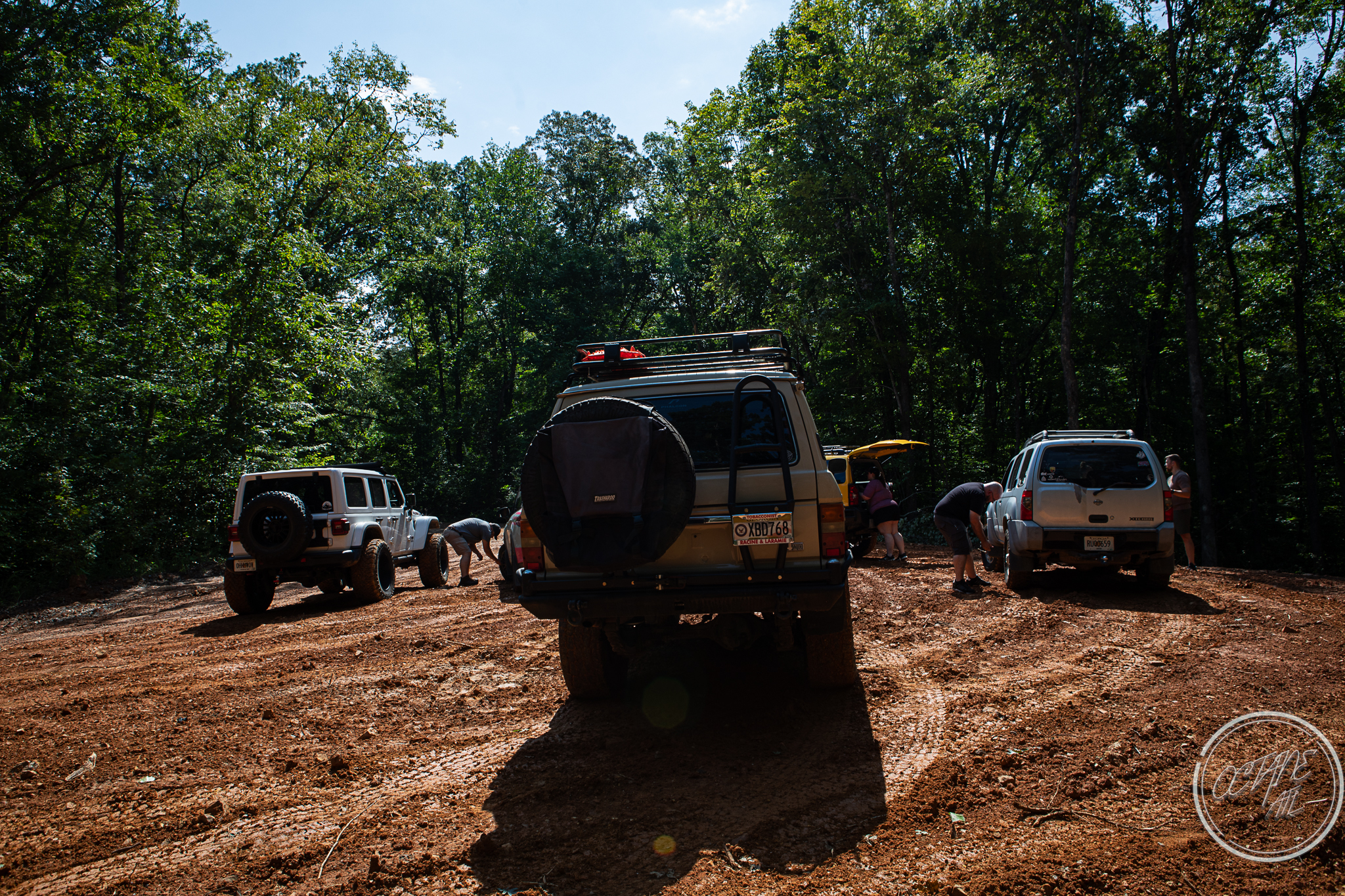 From there we headed north crossing the state line and heading just outside of Chattanooga. We started off heading to a road that, at the entrance, looks like a residential road that would be pretty simple, but the friends who had done the trail quickly reminded us they recommended airing down, which we all did and were almost immediately grateful for. The road leads in with some simple dips and small rocks to journey over but soon leads to some more technical paths. There are options to bypass the harder spaces, and a few of our group opted to bypass the more rocky, challenging spot at the beginning of the road while others gave it their best shot, navigating large climbs and drops, especially for my nearly-stock first gen Xterra.