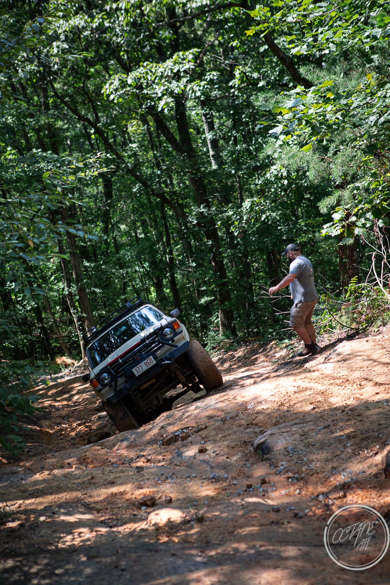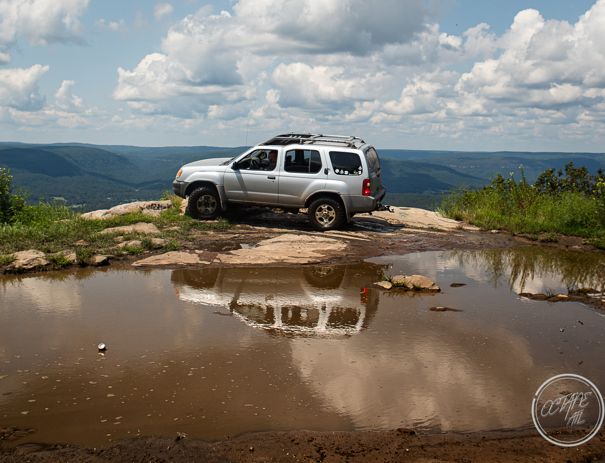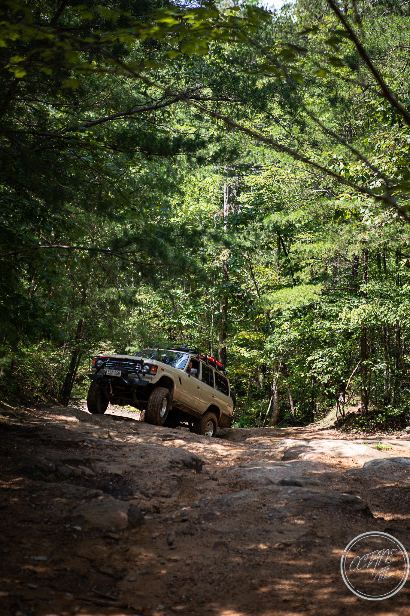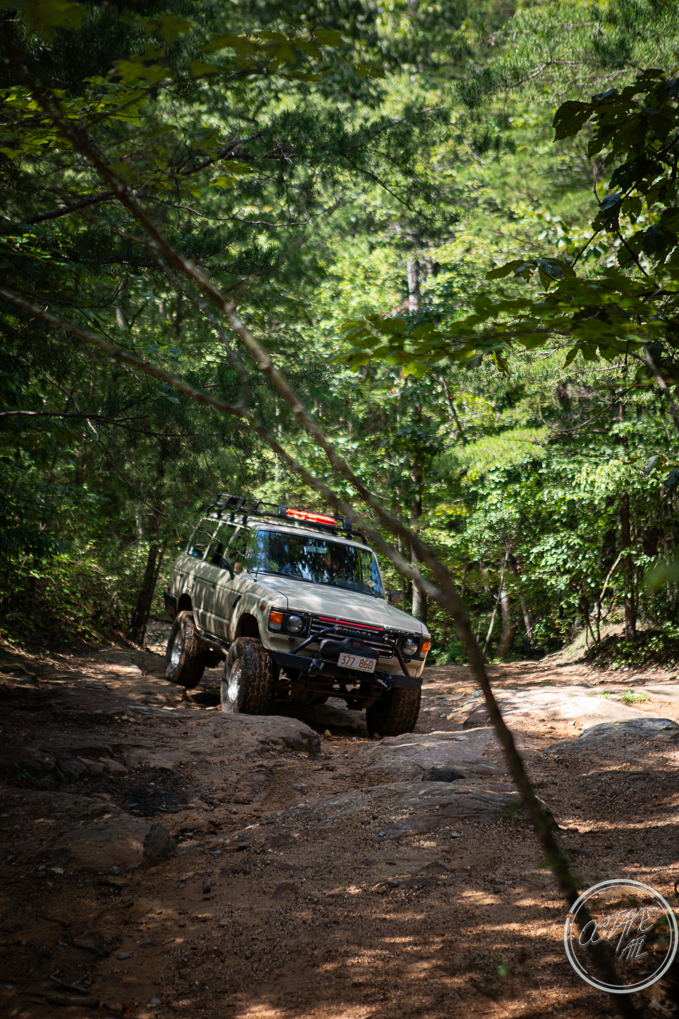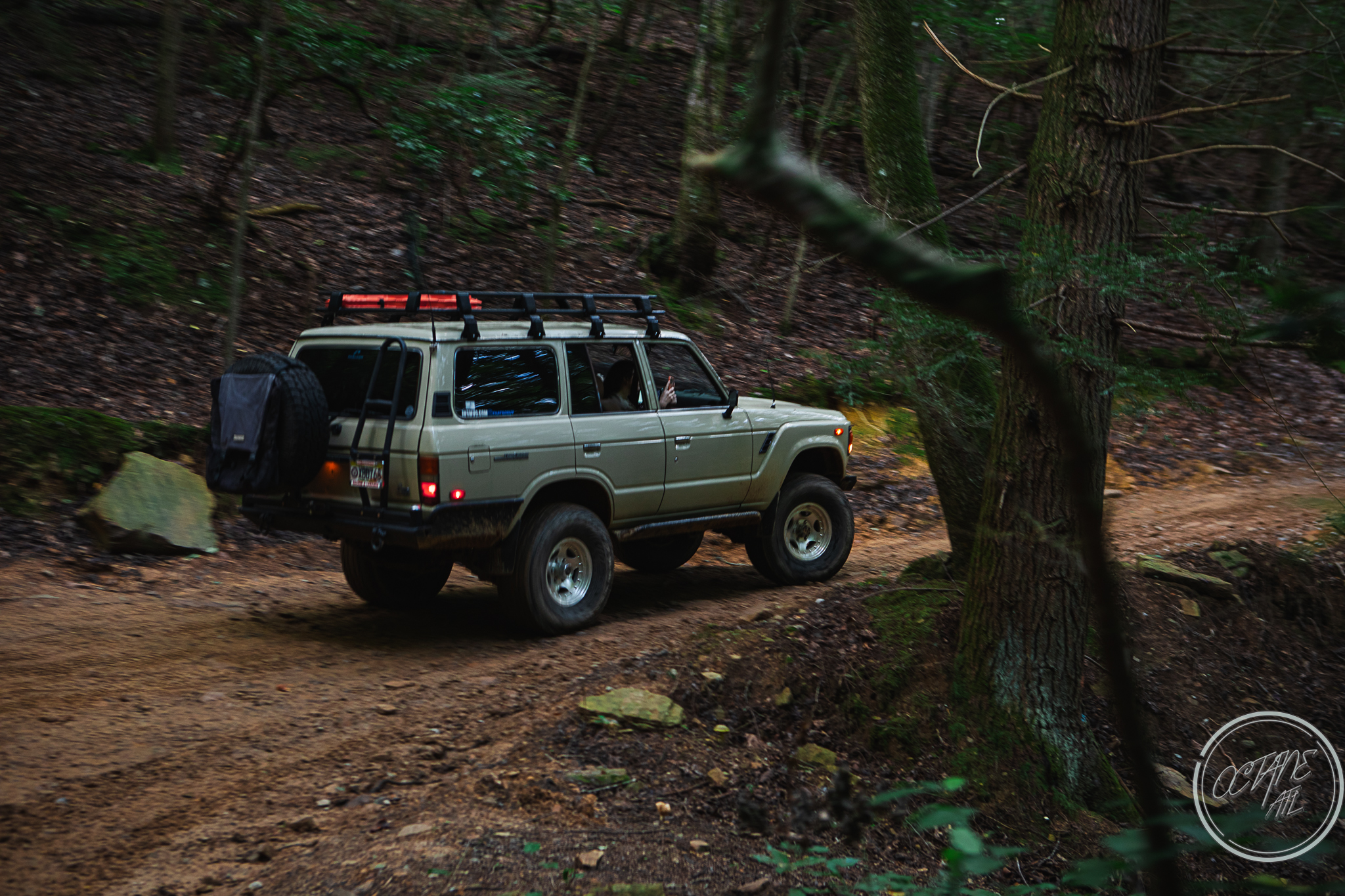 From there we headed north crossing the state line and heading just outside of Chattanooga. We started off heading to a road that, at the entrance, looks like a residential road that would be pretty simple, but the friends who had done the trail quickly reminded us they recommended airing down, which we all did and were almost immediately grateful for. The road leads in with some simple dips and small rocks to journey over but soon leads to some more technical paths. There are options to bypass the harder spaces, and a few of our group opted to bypass the more rocky, challenging spot at the beginning of the road while others gave it their best shot, navigating large climbs and drops, especially for my nearly-stock first gen Xterra.