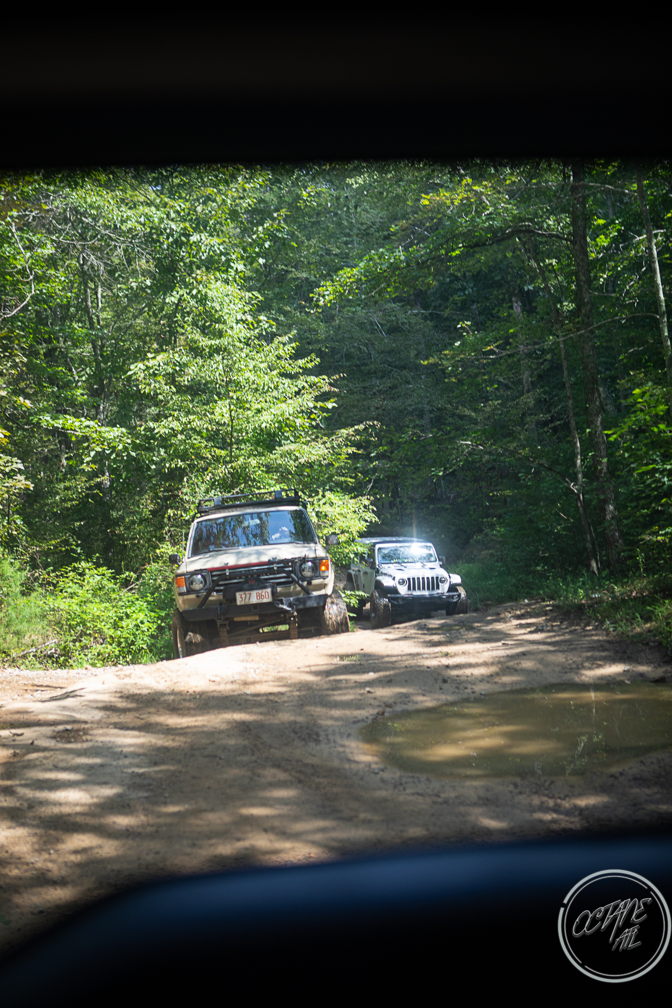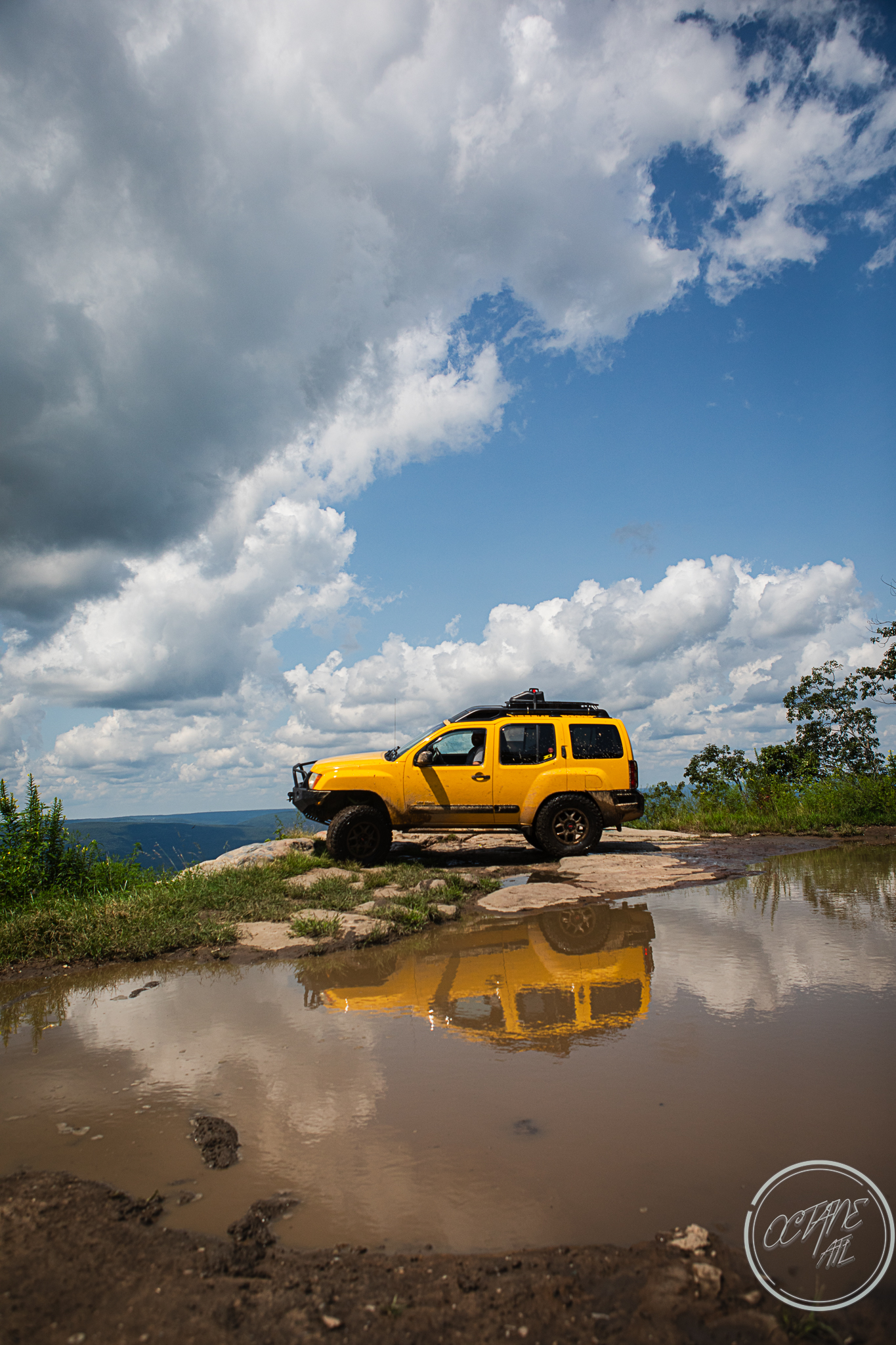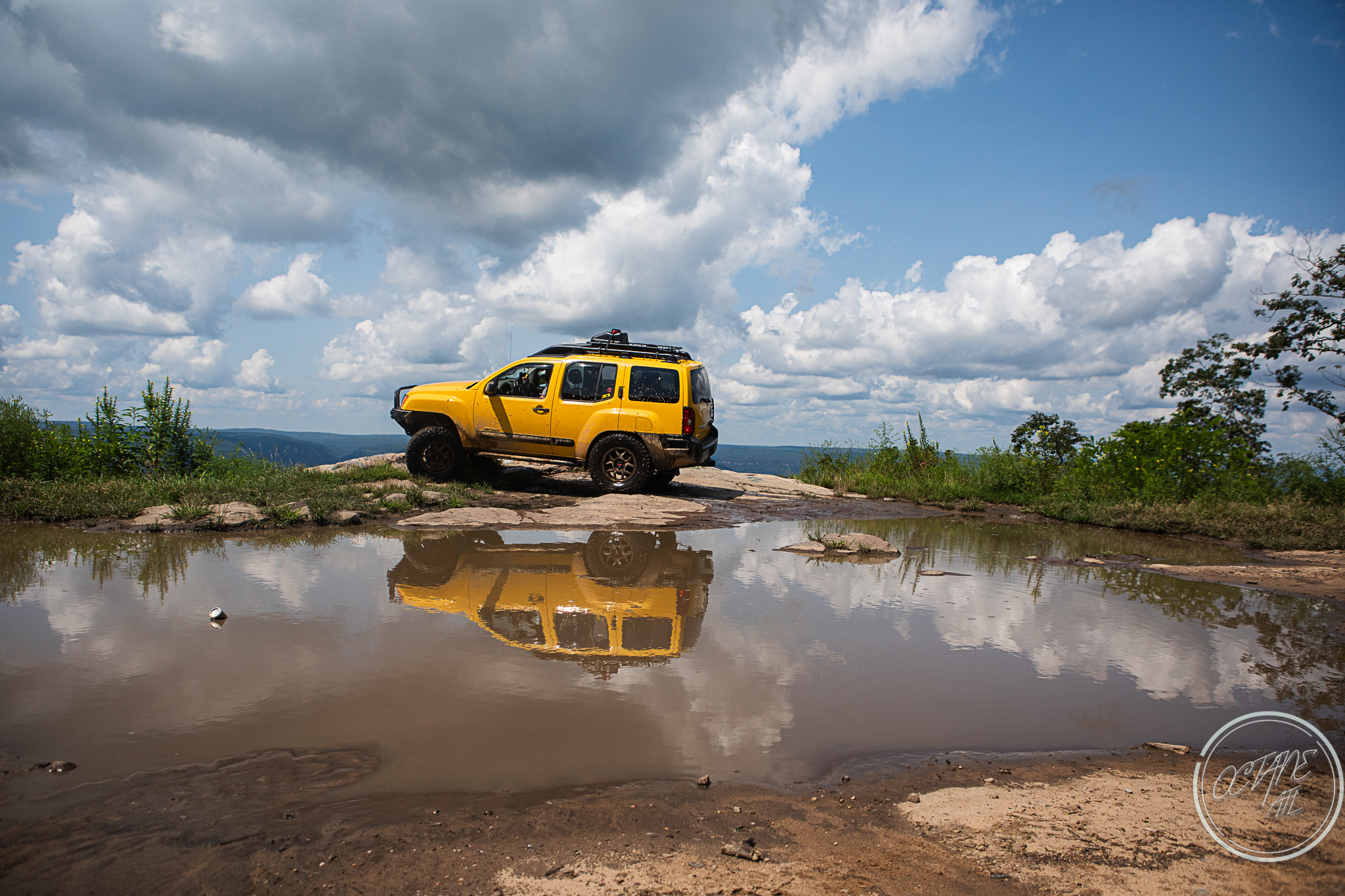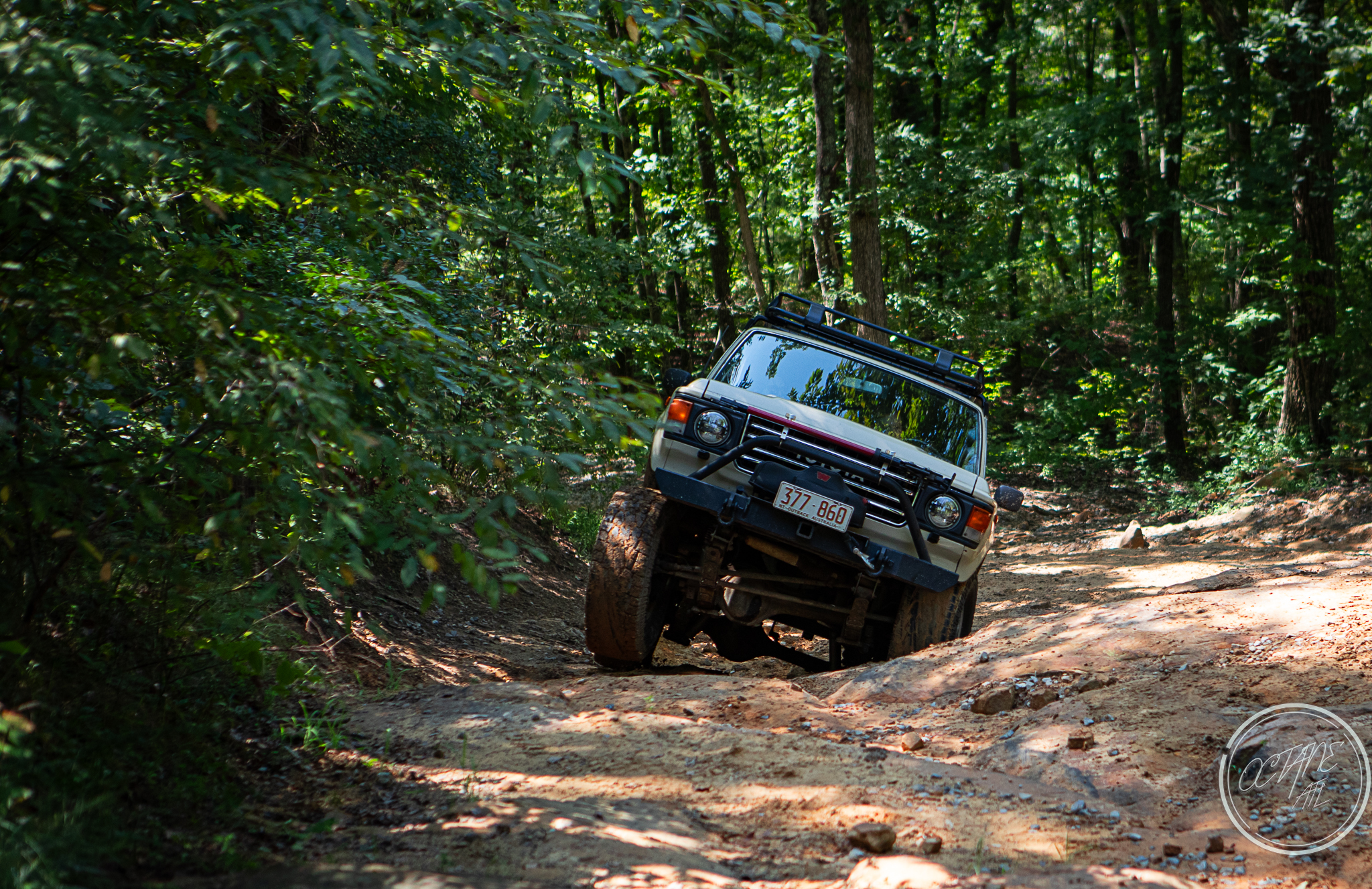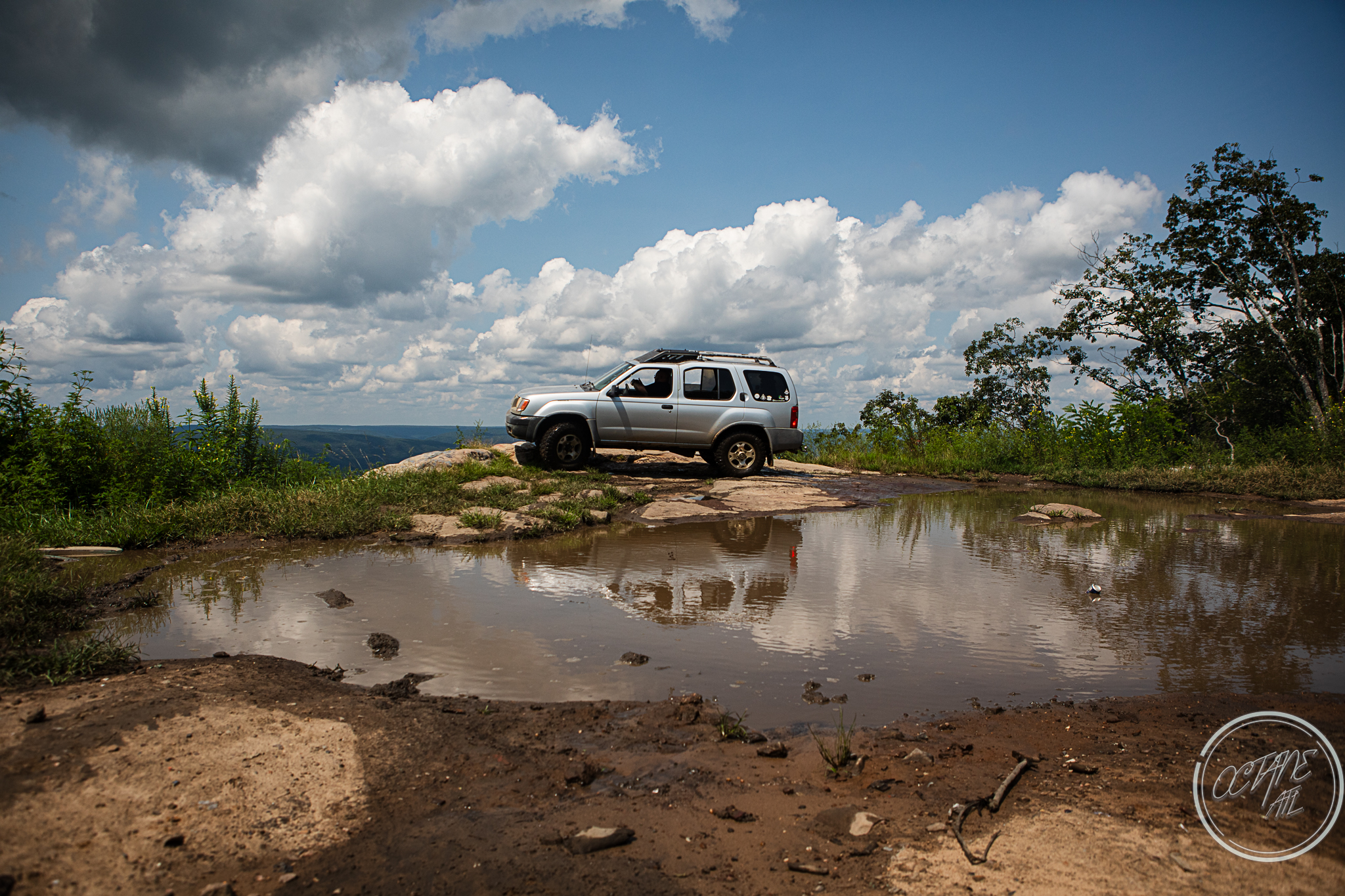 From there we headed north crossing the state line and heading just outside of Chattanooga. We started off heading to a road that, at the entrance, looks like a residential road that would be pretty simple, but the friends who had done the trail quickly reminded us they recommended airing down, which we all did and were almost immediately grateful for. The road leads in with some simple dips and small rocks to journey over but soon leads to some more technical paths. There are options to bypass the harder spaces, and a few of our group opted to bypass the more rocky, challenging spot at the beginning of the road while others gave it their best shot, navigating large climbs and drops, especially for my nearly-stock first gen Xterra.