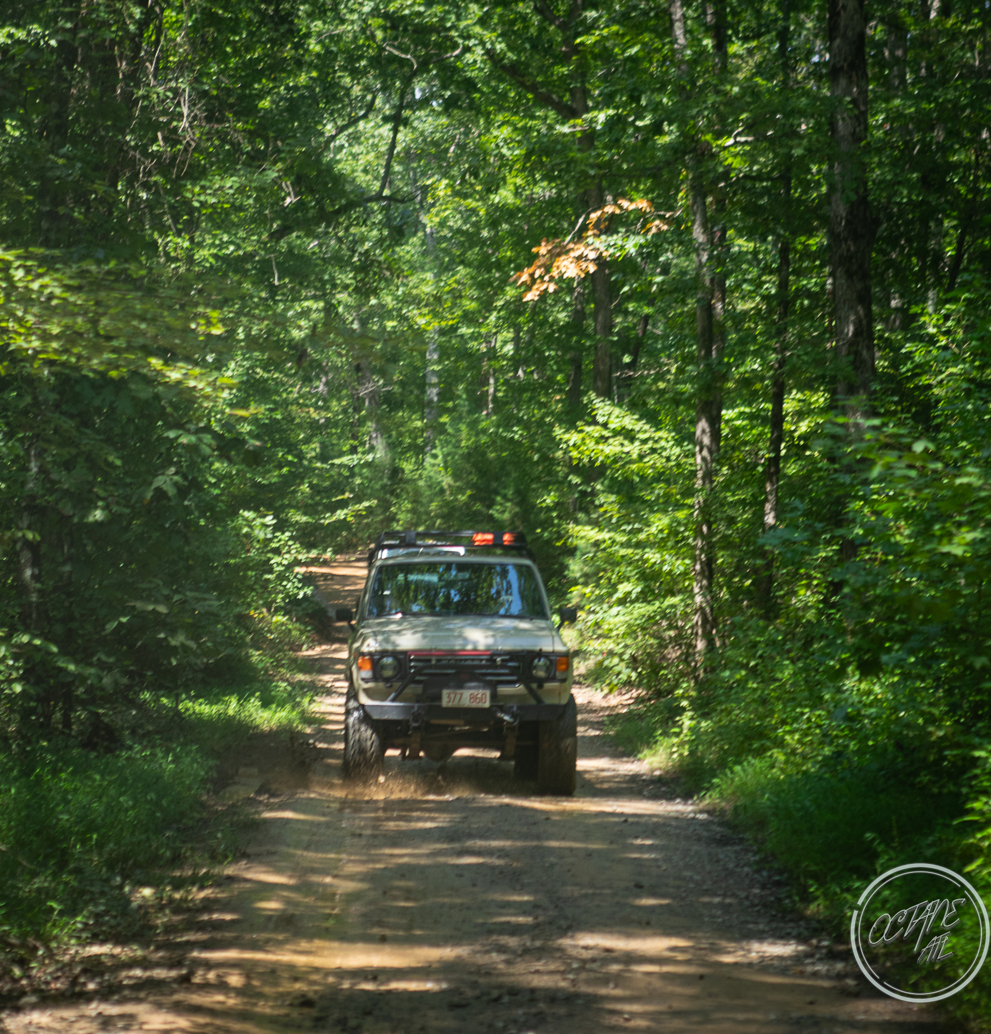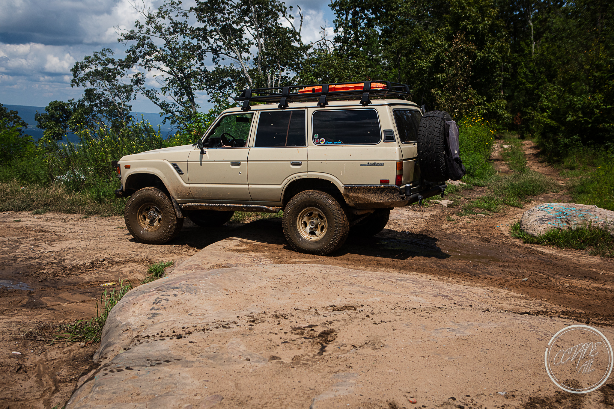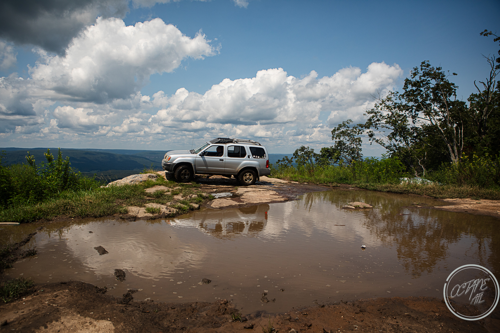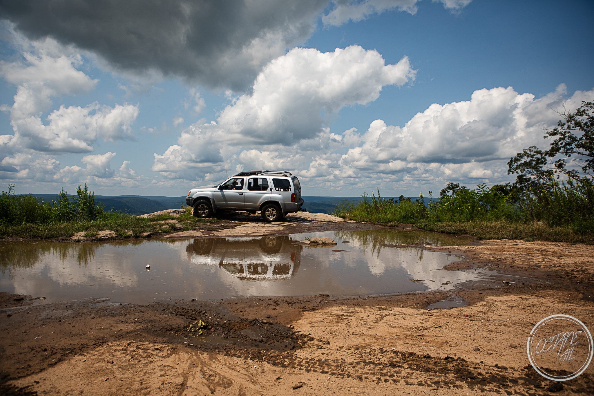 From there we headed north crossing the state line and heading just outside of Chattanooga. We started off heading to a road that, at the entrance, looks like a residential road that would be pretty simple, but the friends who had done the trail quickly reminded us they recommended airing down, which we all did and were almost immediately grateful for. The road leads in with some simple dips and small rocks to journey over but soon leads to some more technical paths. There are options to bypass the harder spaces, and a few of our group opted to bypass the more rocky, challenging spot at the beginning of the road while others gave it their best shot, navigating large climbs and drops, especially for my nearly-stock first gen Xterra.