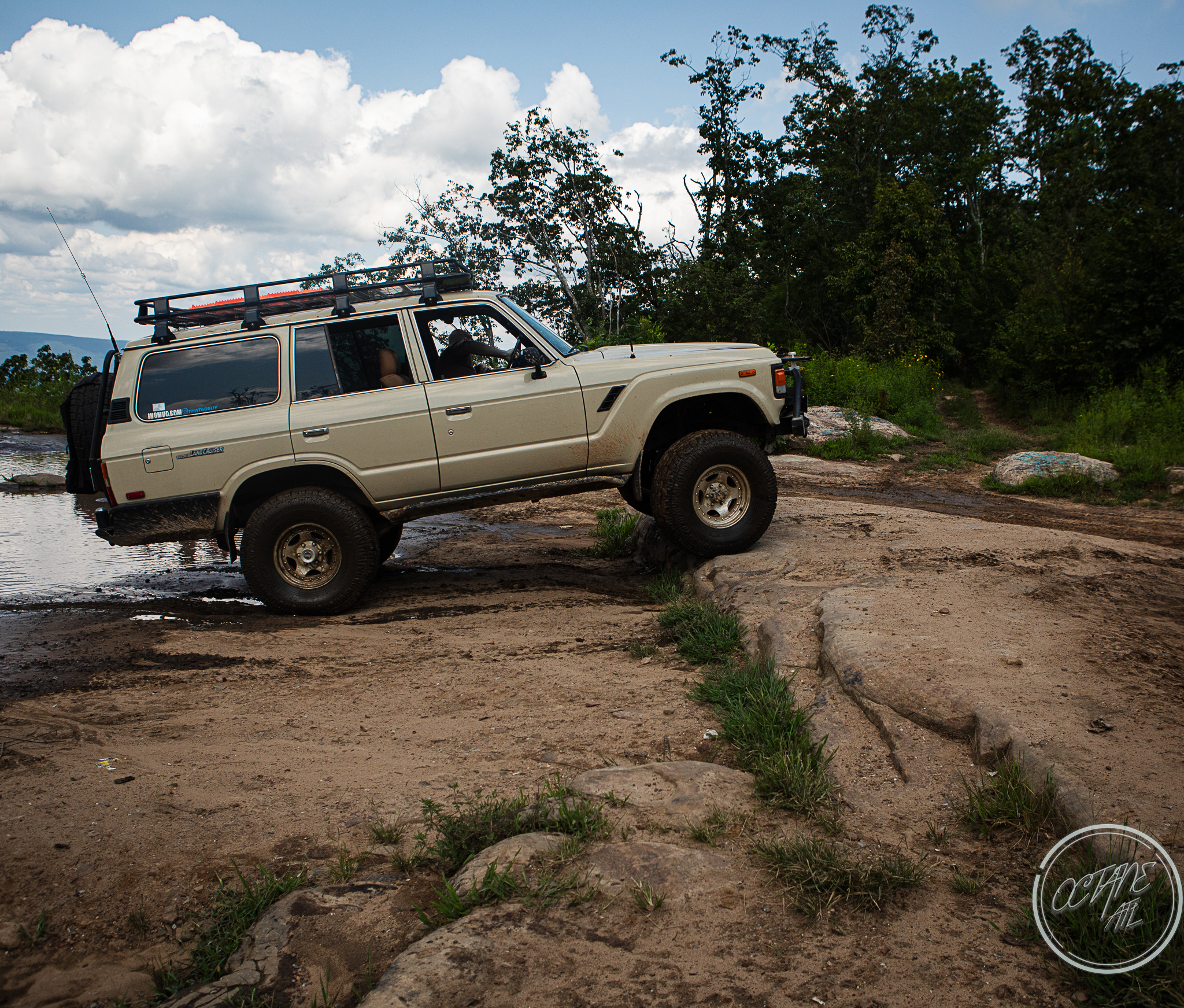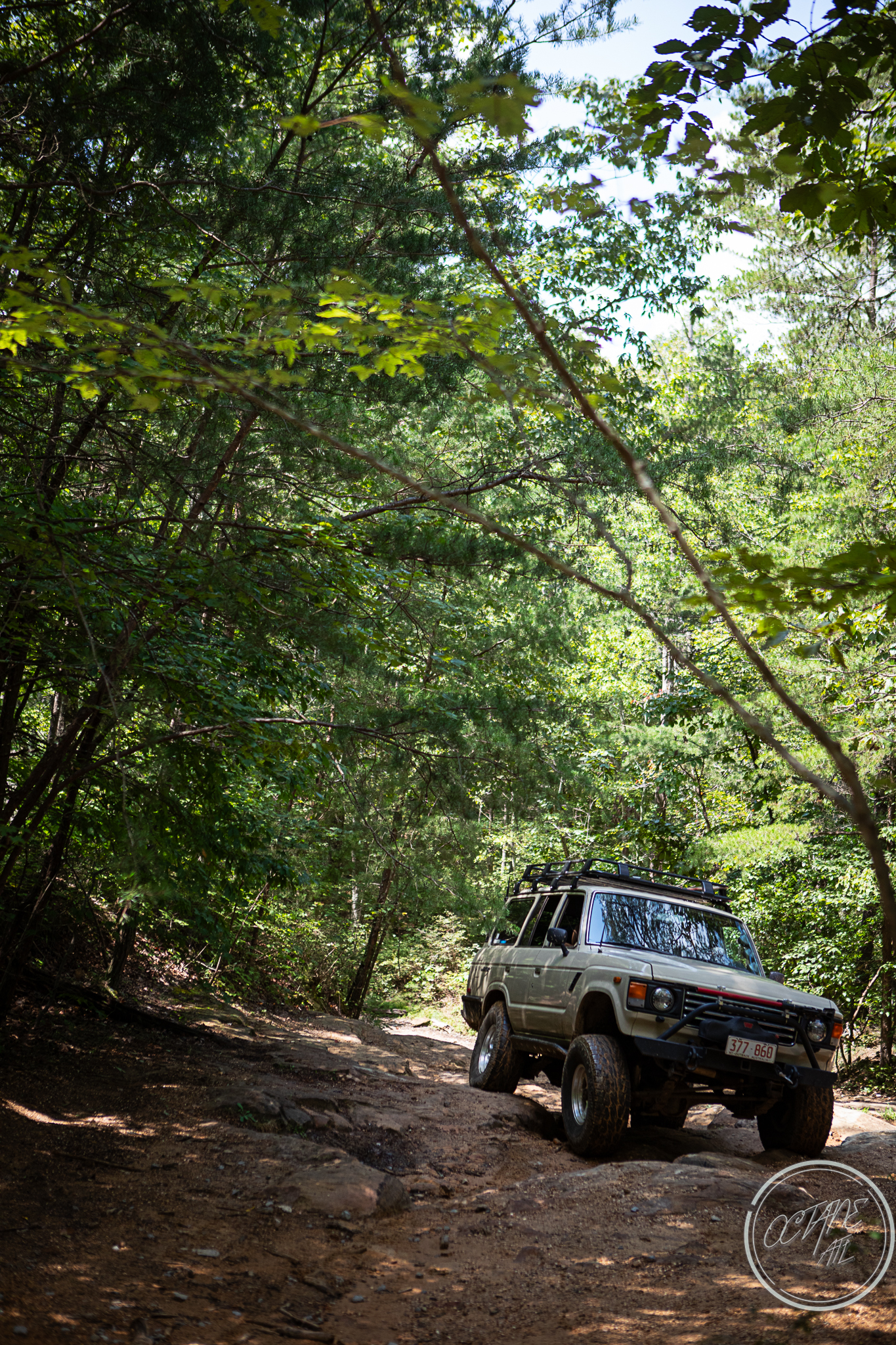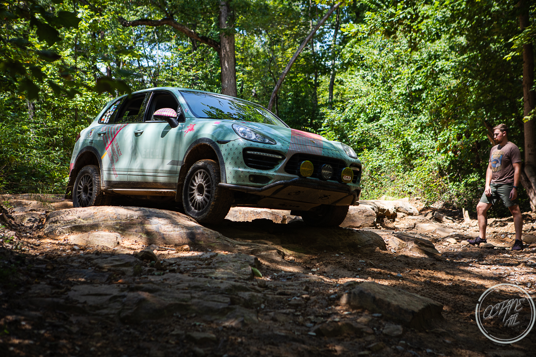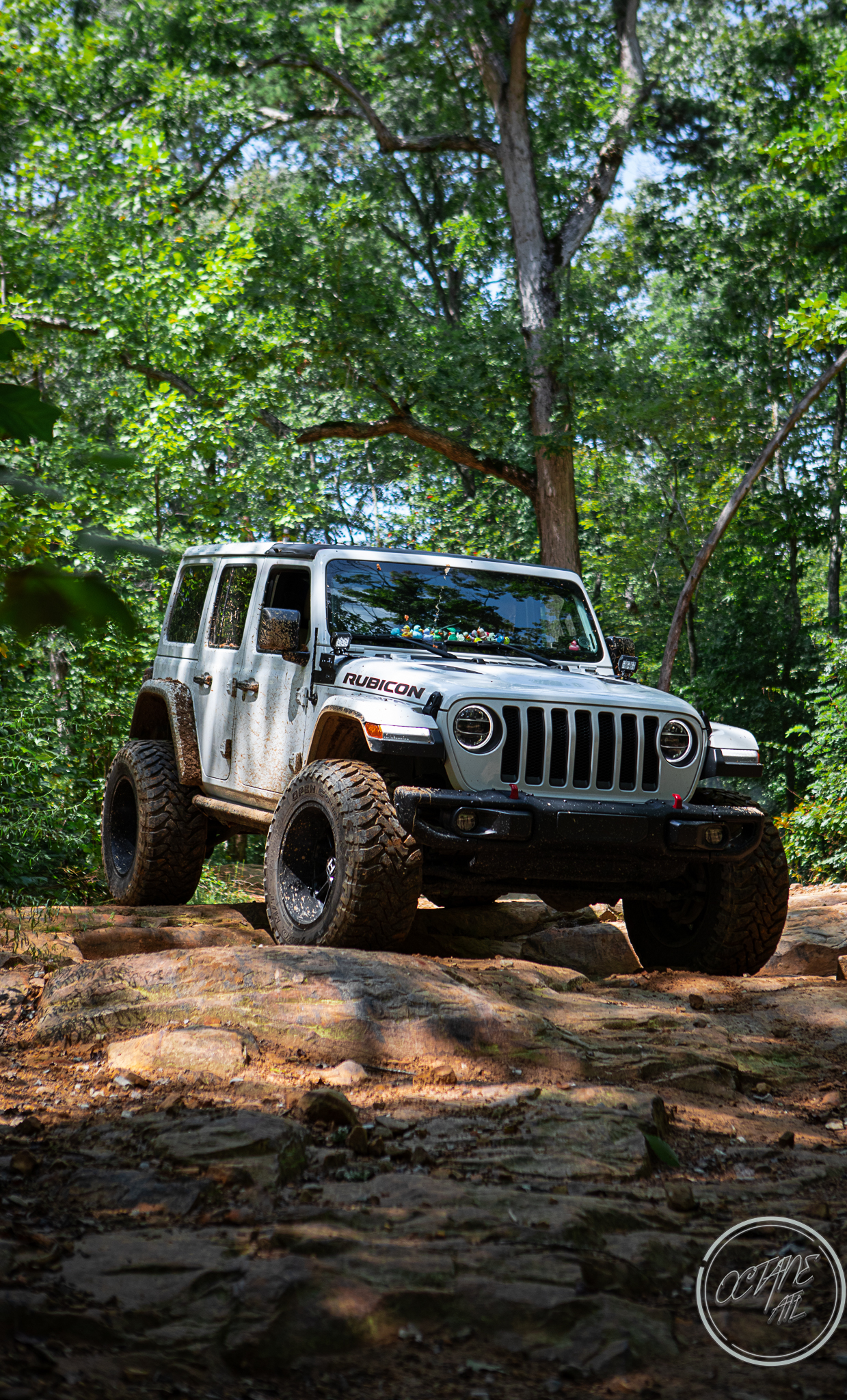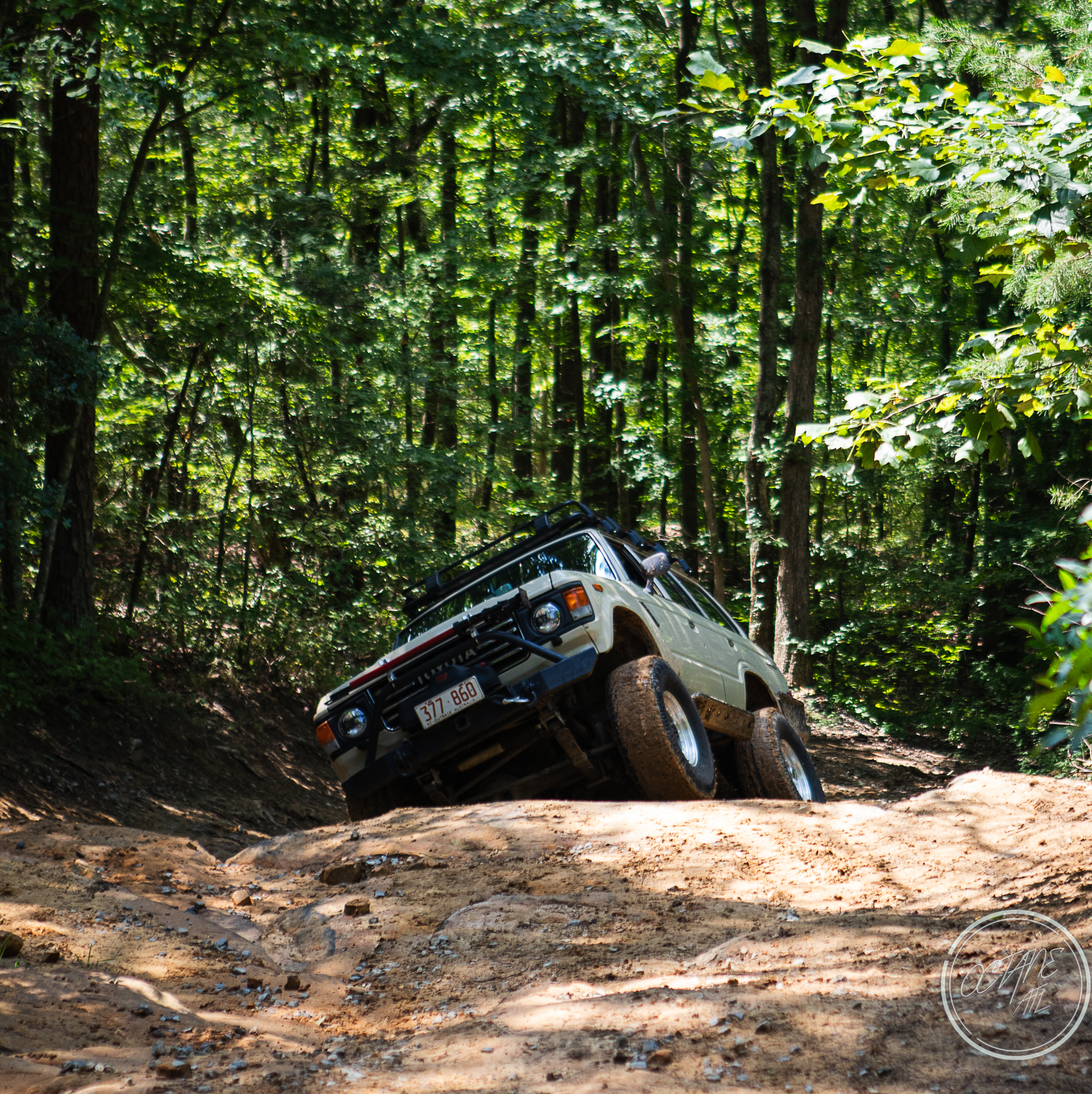 From there we headed north crossing the state line and heading just outside of Chattanooga. We started off heading to a road that, at the entrance, looks like a residential road that would be pretty simple, but the friends who had done the trail quickly reminded us they recommended airing down, which we all did and were almost immediately grateful for. The road leads in with some simple dips and small rocks to journey over but soon leads to some more technical paths. There are options to bypass the harder spaces, and a few of our group opted to bypass the more rocky, challenging spot at the beginning of the road while others gave it their best shot, navigating large climbs and drops, especially for my nearly-stock first gen Xterra.