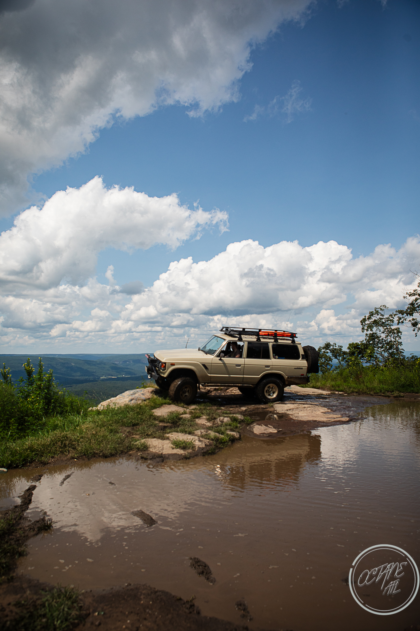 This second road was much more like a gravel road until we hit the water crossings, of which there were many. There were many less photos snapped by myself for this portion until we reached the top as I had placed myself behind the wheel for once. The top of this trail was amazing, and while I was reminded of my unease while at great heights, I was more stunned by the absolute beauty tucked away off this less-traveled road. We took turns parking near the edge of the cliff for photos before airing back up to hit the road to downtown Chattanooga. After we wrapped up the dirt and gravel portions of our drive we took our muddy cars and tired selves to Community Pie for some pizza and adult cheese sticks, which was the perfect ending to an amazing day spent getting way out with lovely friends.