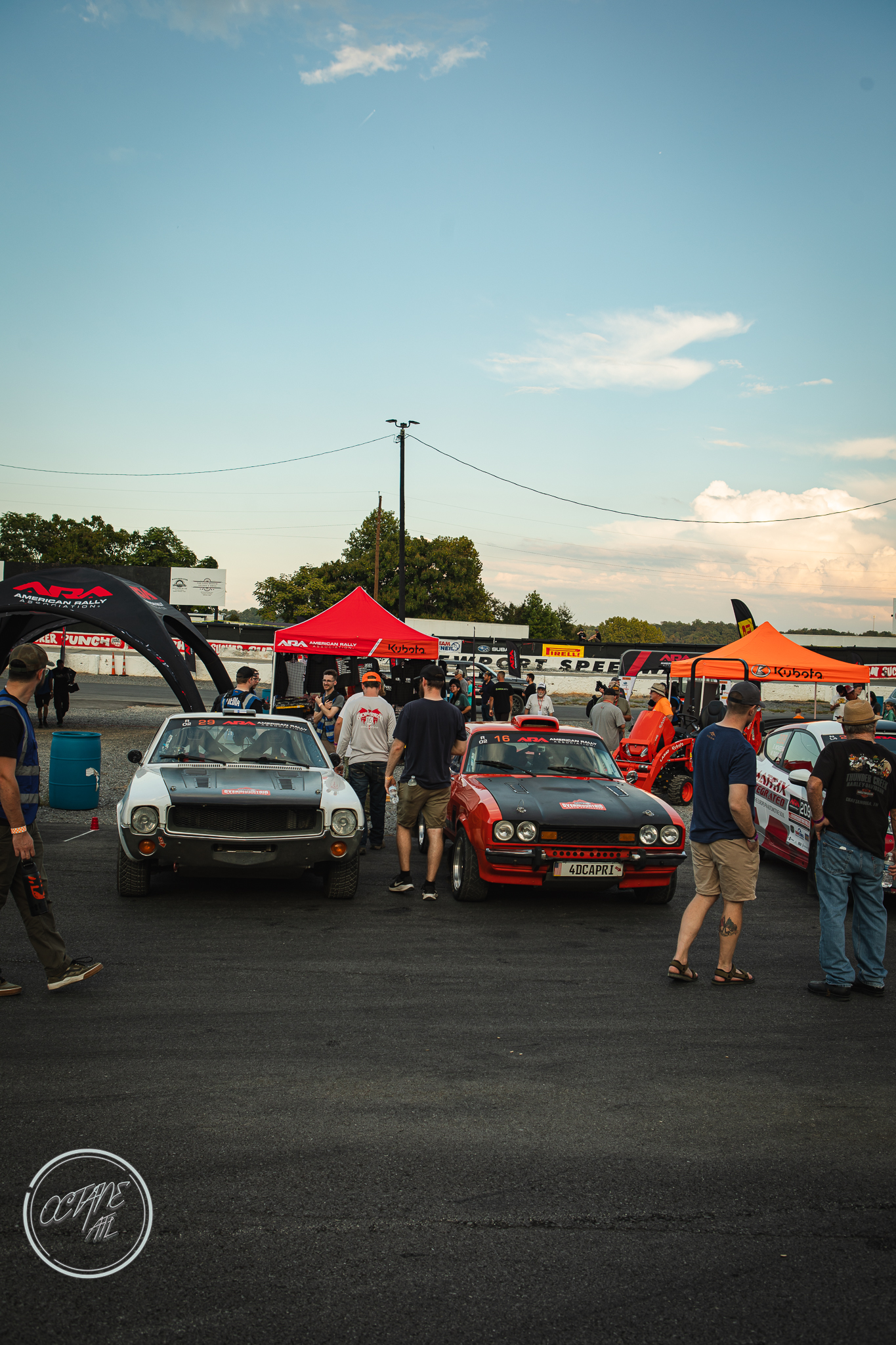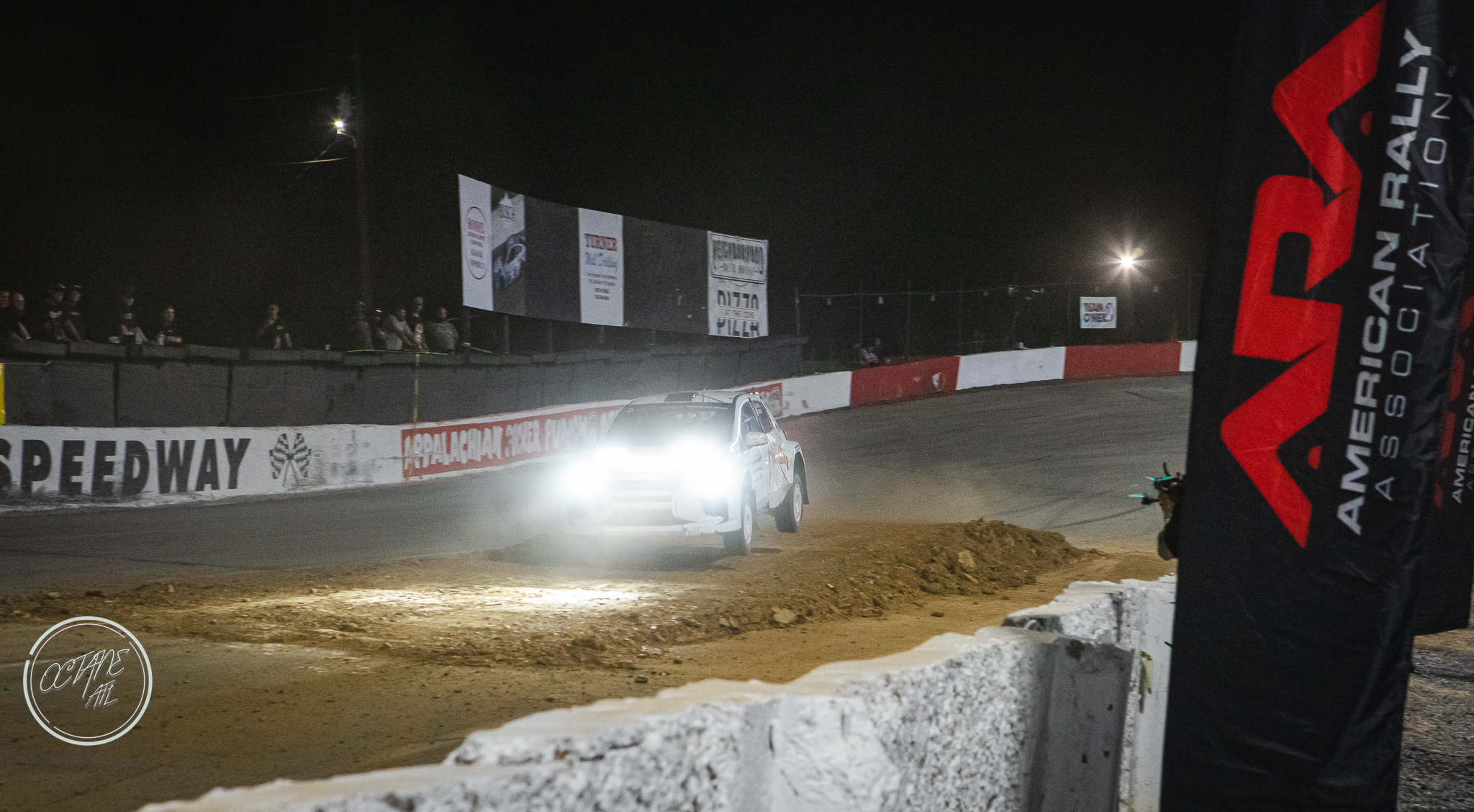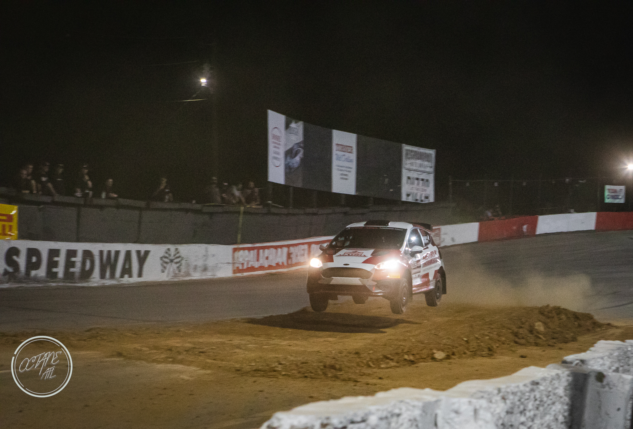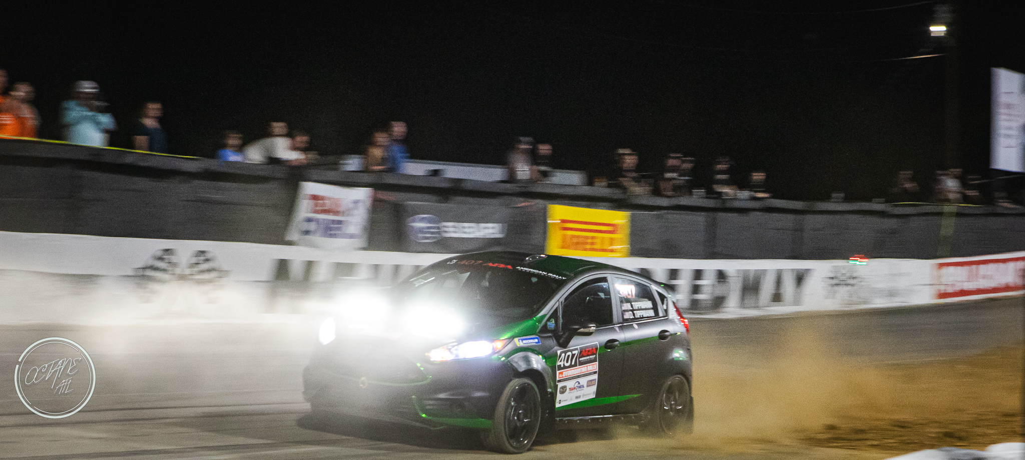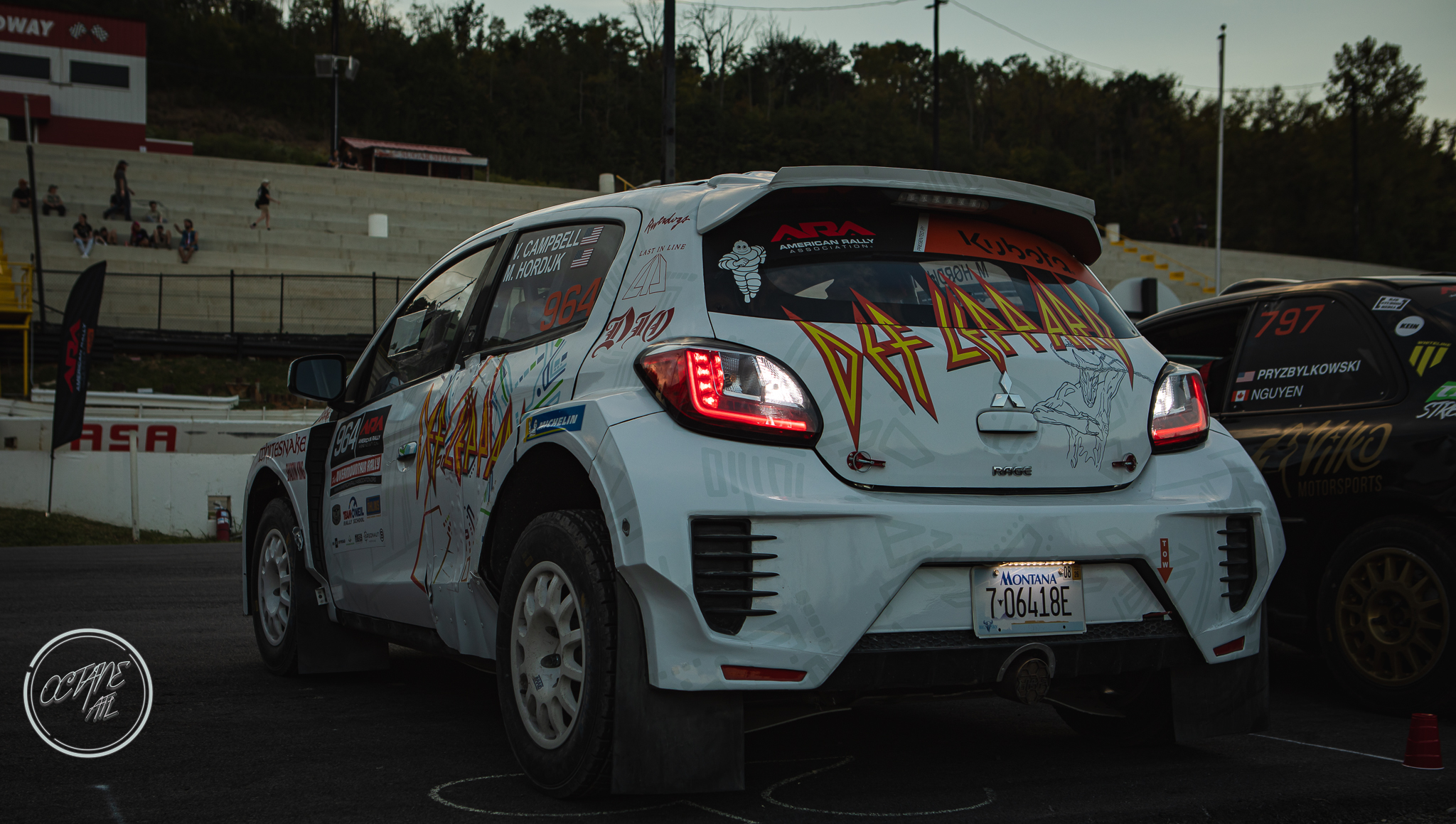 Saturday we chose a captive stage where the course shifted from gravel to pavement, which according to some of the drivers, was a bit slippery from a build up of moss. The first pass of our stage was shortened due to an off course just up the stage from us- one of the teams had missed the turn and wound up down the mountain side in the river, so we had a total of 8 cars make it through the first run. The second run there was a fuller roster, though notably more than just one car was missing. It was noted by most teams that this was one of the most technical rallies of the season, and the hills of Tennessee were proving to be harsh and challenging. By the time the third pass for our stage began the light was fading and the number of cars that passed had dwindled from a start of 50 down to a total of 36 that had made it to the last off road stage of the night. From there the teams headed back to Newport Speedway for the final event, a jump and barrels, which we missed due to helping clear our stage of spectators and cleaning up any trash as well as the tape used to mark off spectator areas.