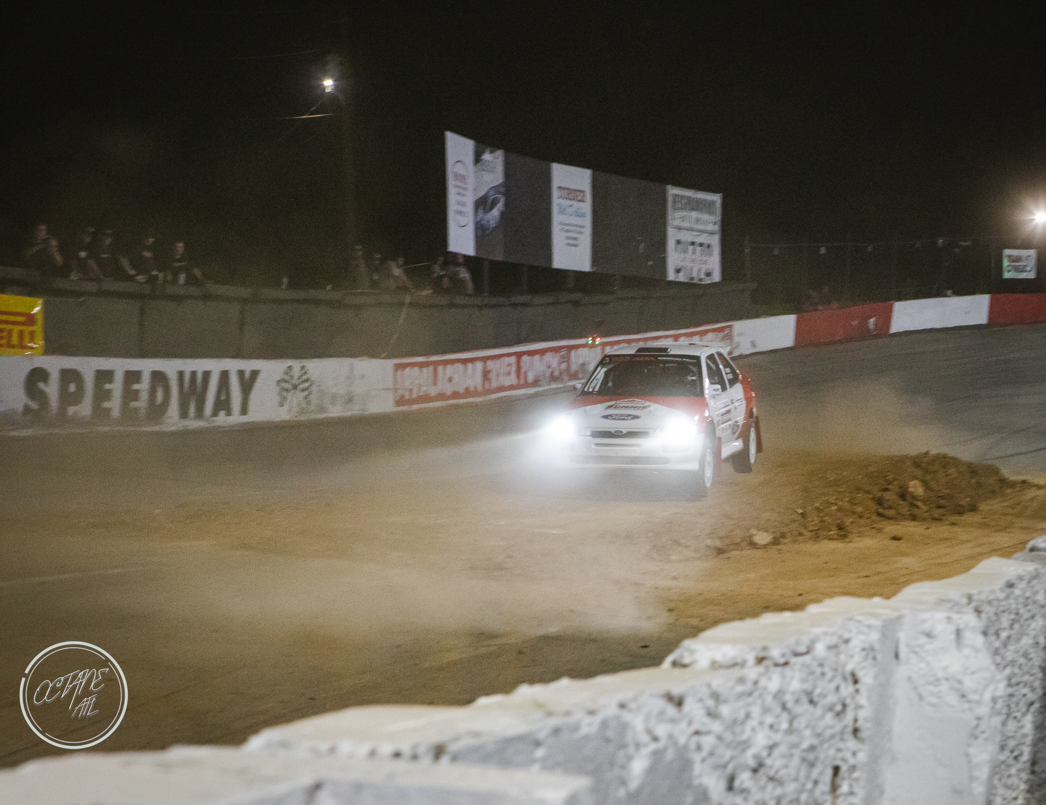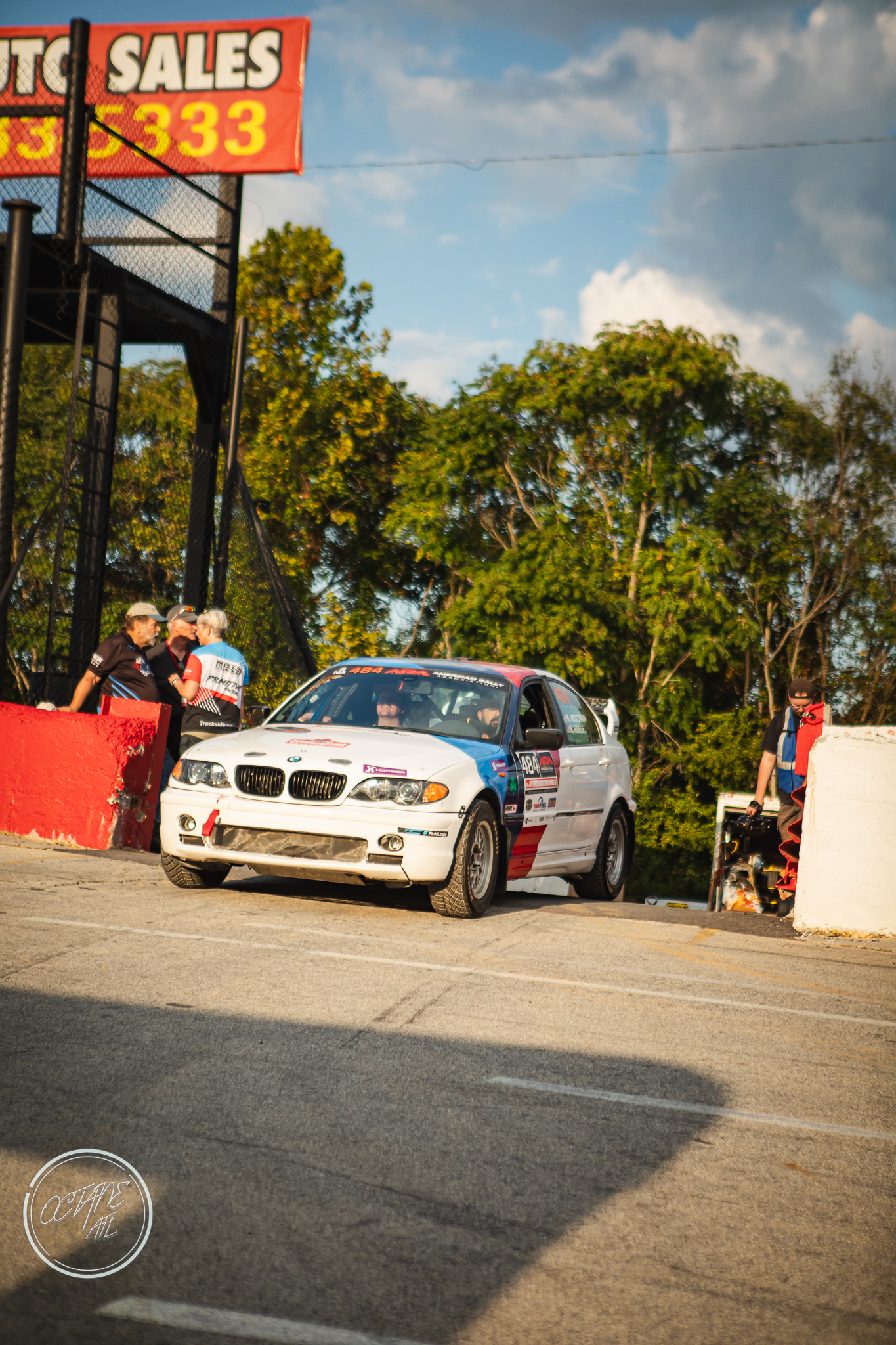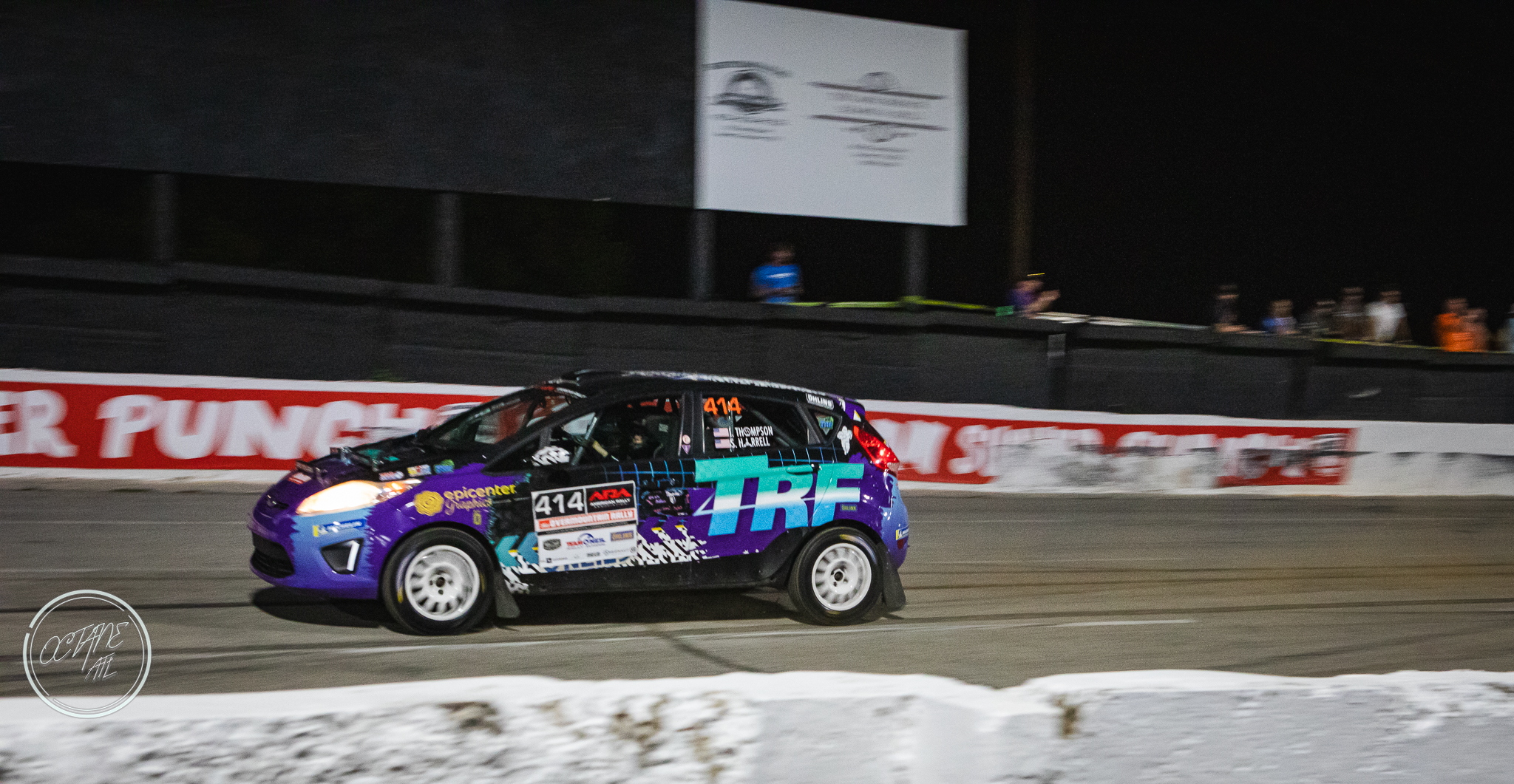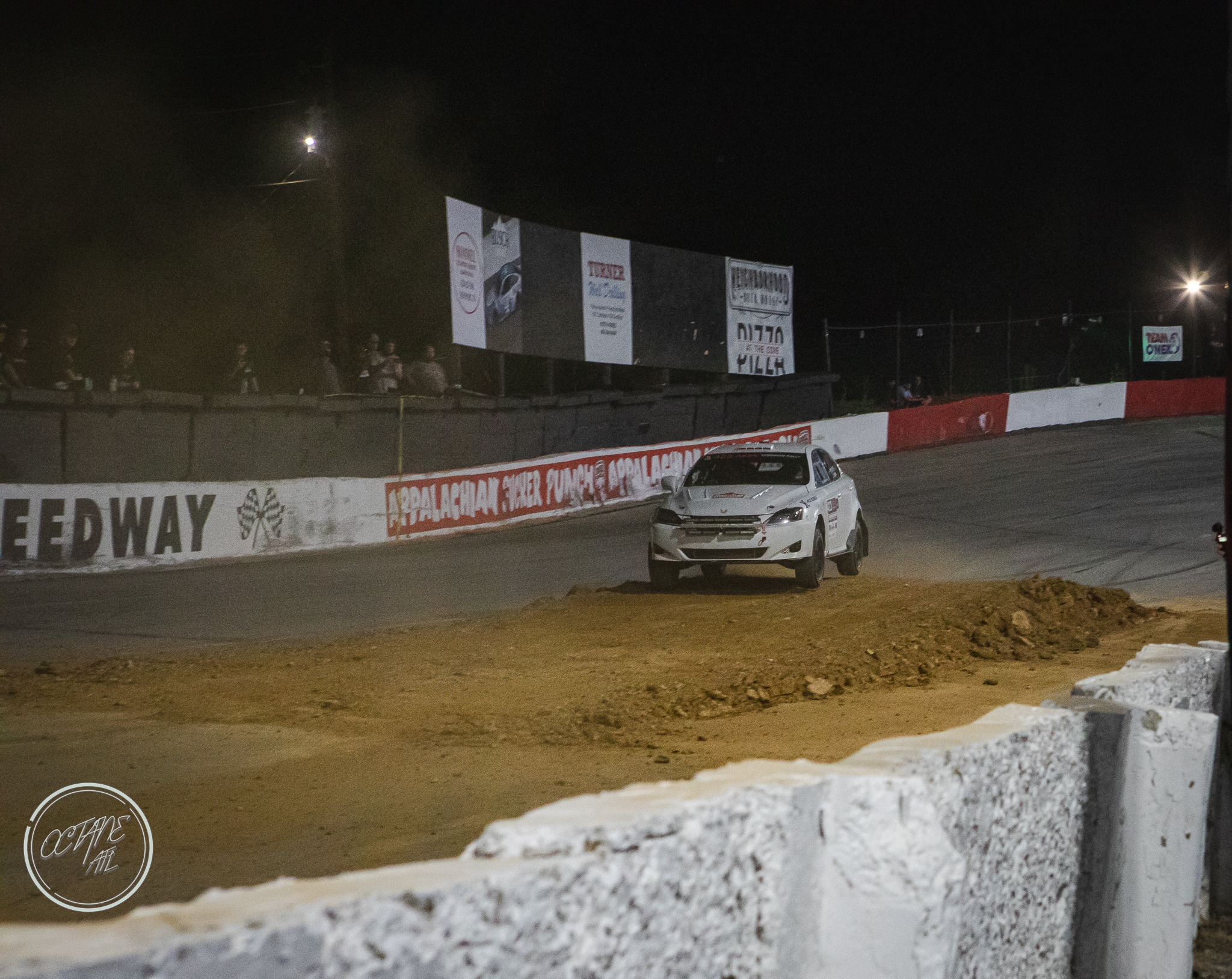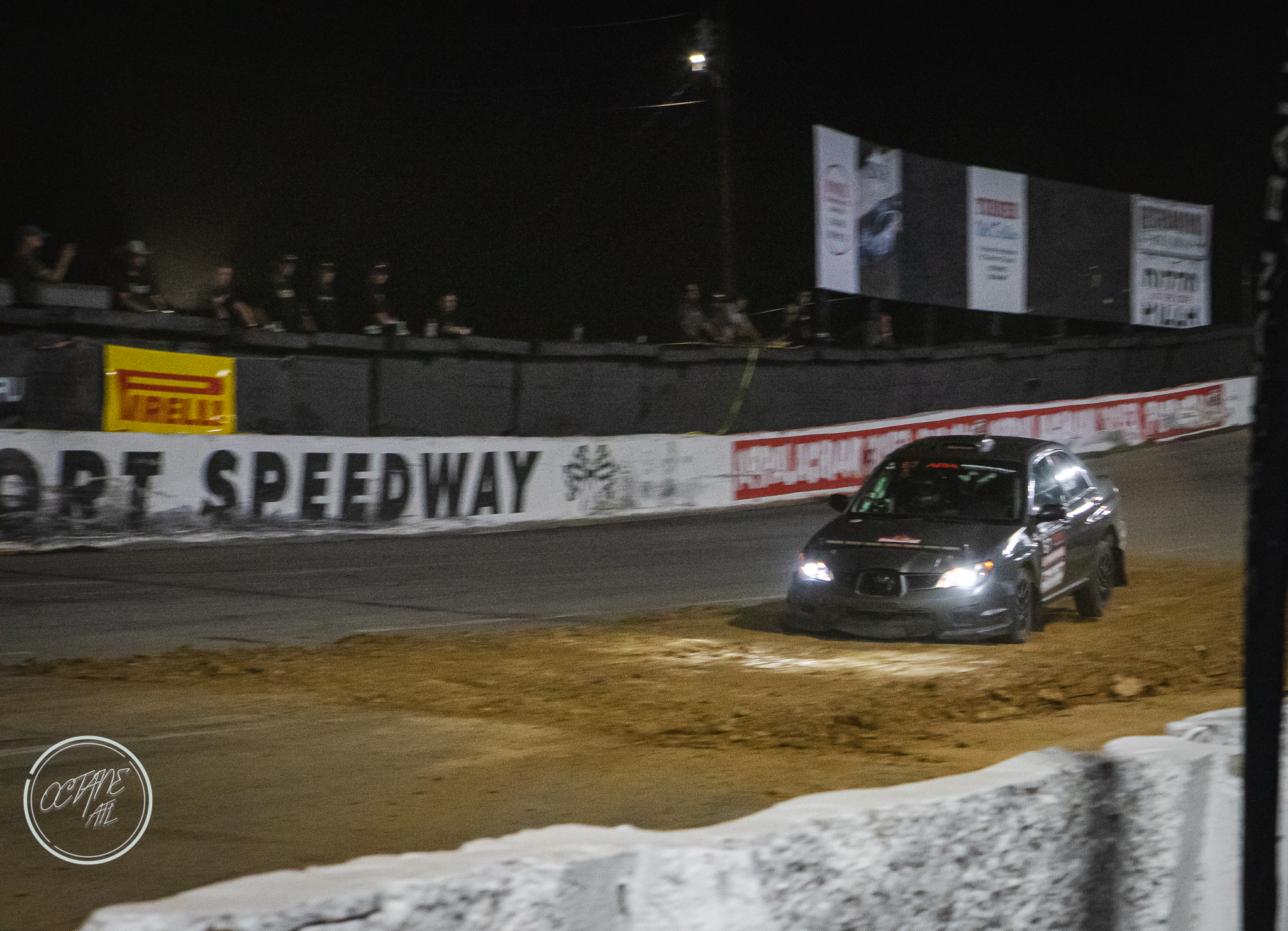 Saturday we chose a captive stage where the course shifted from gravel to pavement, which according to some of the drivers, was a bit slippery from a build up of moss. The first pass of our stage was shortened due to an off course just up the stage from us- one of the teams had missed the turn and wound up down the mountain side in the river, so we had a total of 8 cars make it through the first run. The second run there was a fuller roster, though notably more than just one car was missing. It was noted by most teams that this was one of the most technical rallies of the season, and the hills of Tennessee were proving to be harsh and challenging. By the time the third pass for our stage began the light was fading and the number of cars that passed had dwindled from a start of 50 down to a total of 36 that had made it to the last off road stage of the night. From there the teams headed back to Newport Speedway for the final event, a jump and barrels, which we missed due to helping clear our stage of spectators and cleaning up any trash as well as the tape used to mark off spectator areas.