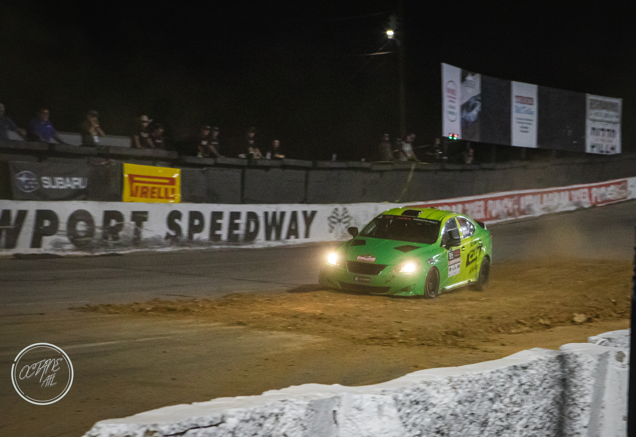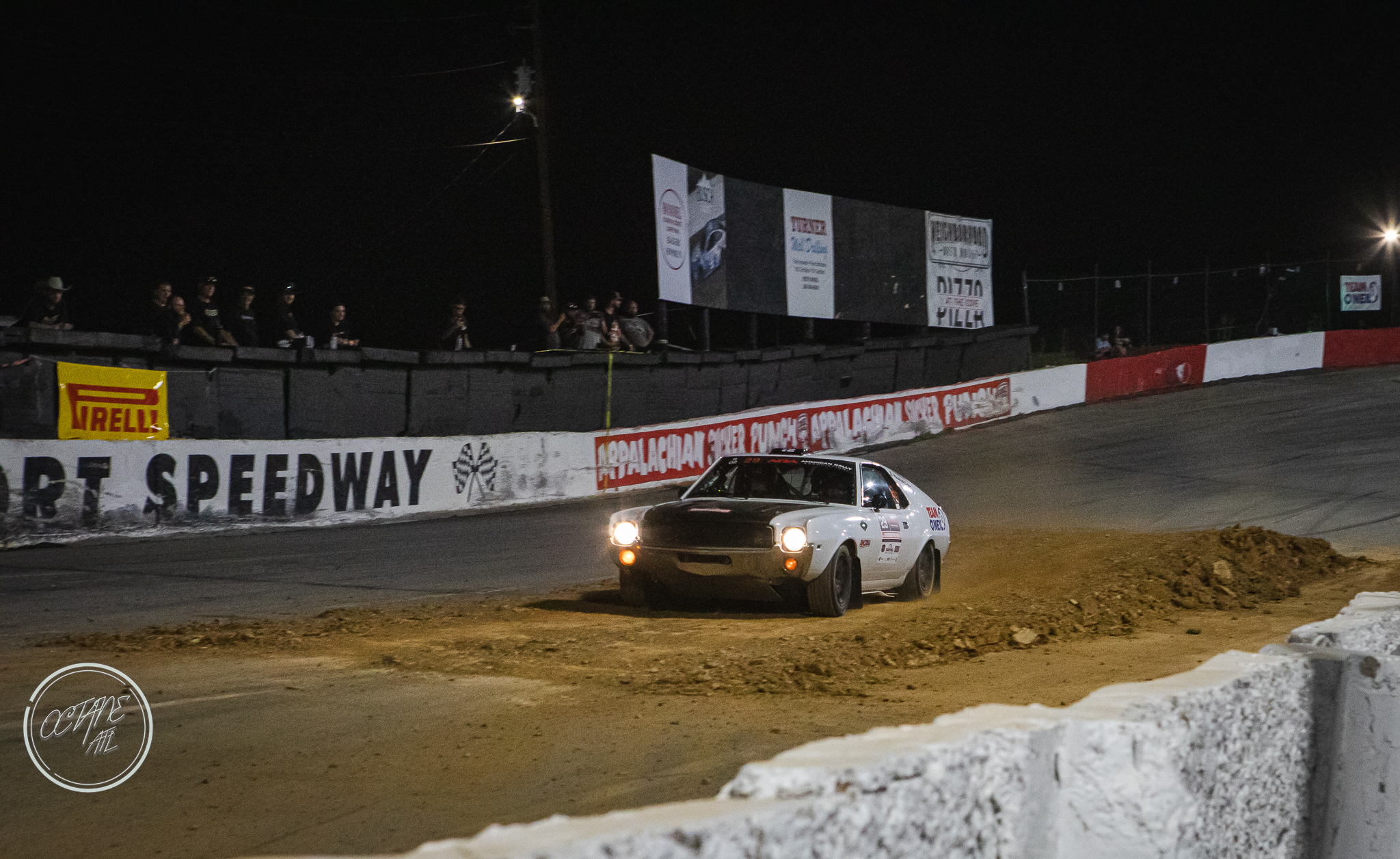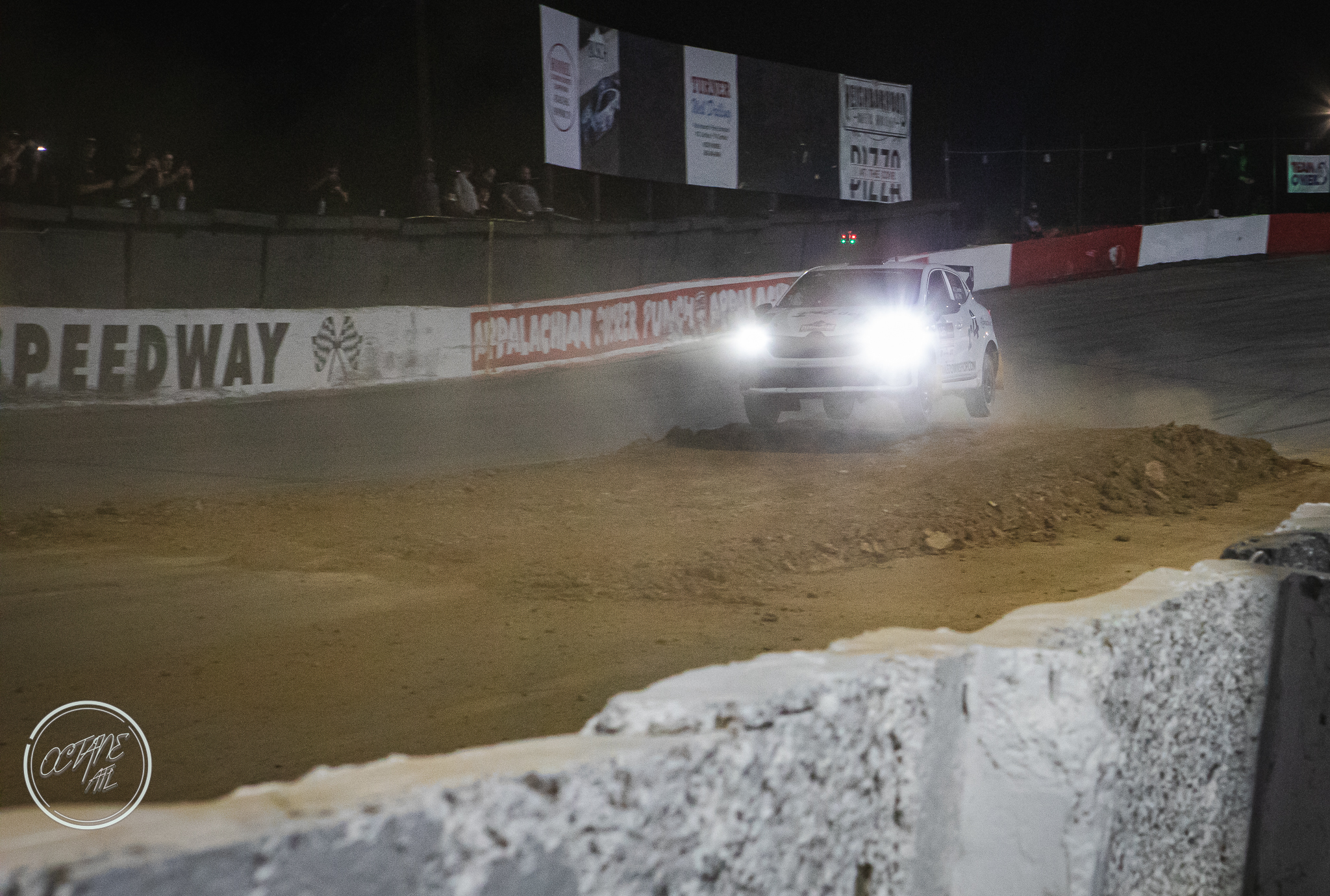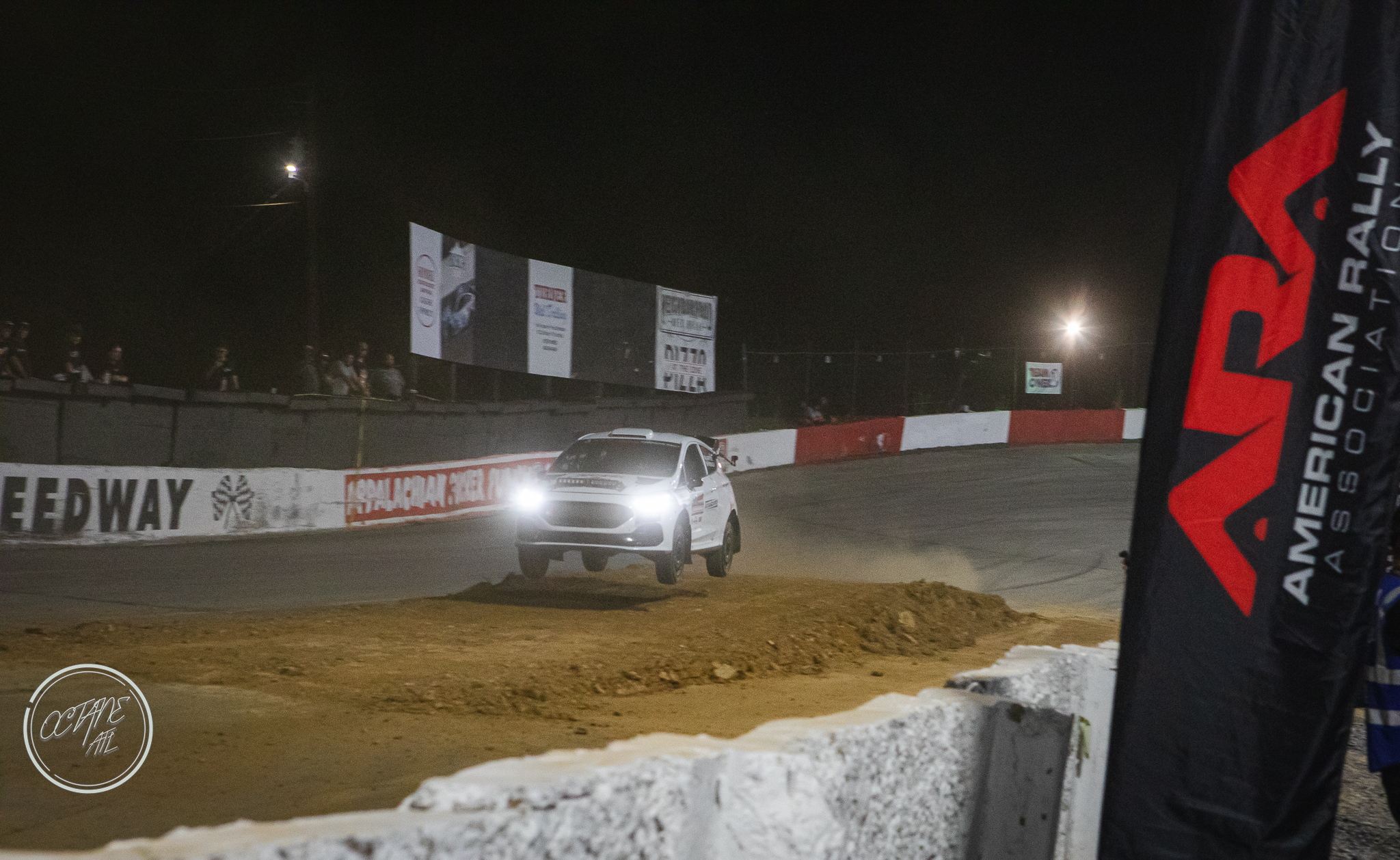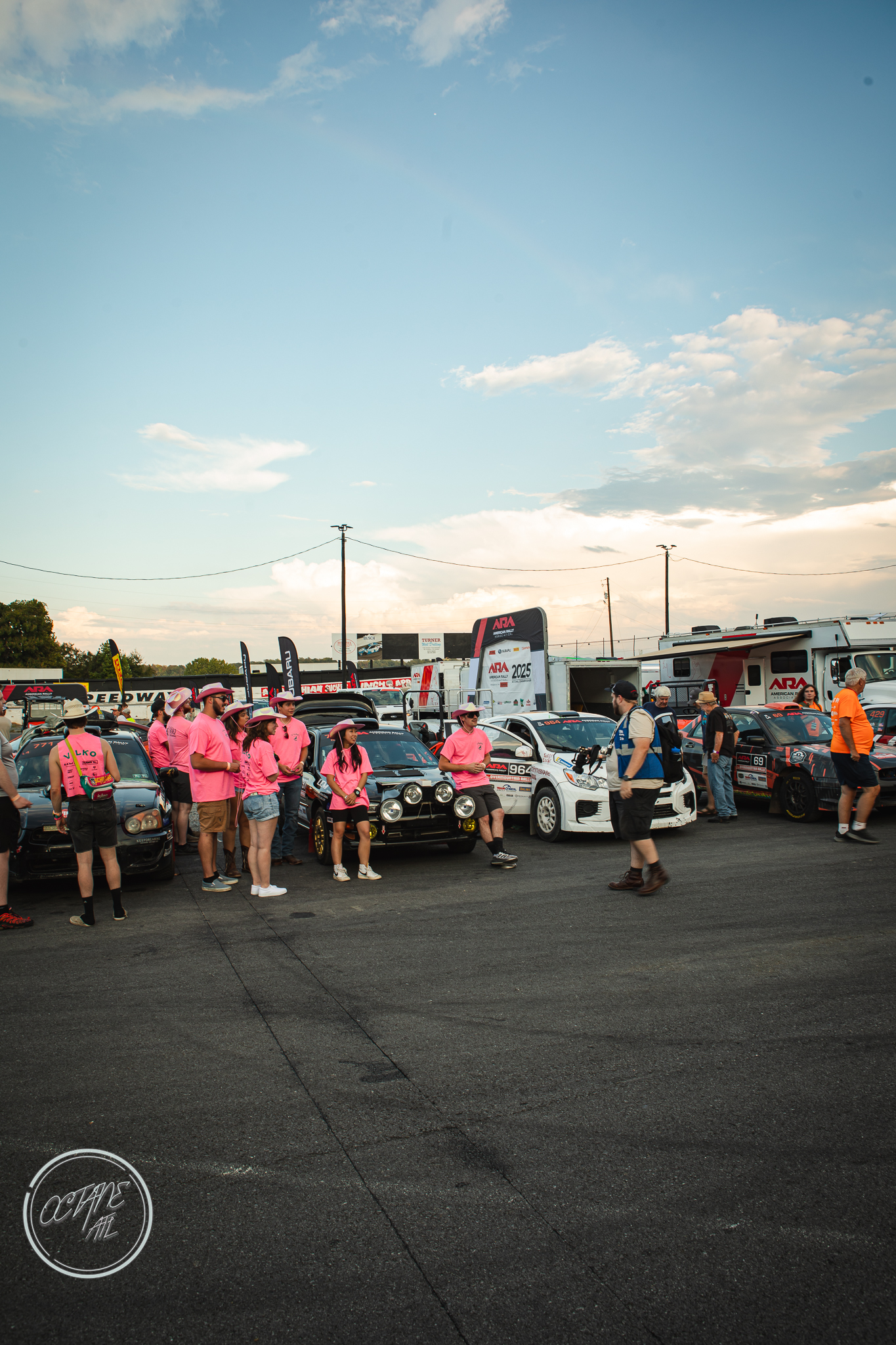 Saturday we chose a captive stage where the course shifted from gravel to pavement, which according to some of the drivers, was a bit slippery from a build up of moss. The first pass of our stage was shortened due to an off course just up the stage from us- one of the teams had missed the turn and wound up down the mountain side in the river, so we had a total of 8 cars make it through the first run. The second run there was a fuller roster, though notably more than just one car was missing. It was noted by most teams that this was one of the most technical rallies of the season, and the hills of Tennessee were proving to be harsh and challenging. By the time the third pass for our stage began the light was fading and the number of cars that passed had dwindled from a start of 50 down to a total of 36 that had made it to the last off road stage of the night. From there the teams headed back to Newport Speedway for the final event, a jump and barrels, which we missed due to helping clear our stage of spectators and cleaning up any trash as well as the tape used to mark off spectator areas.