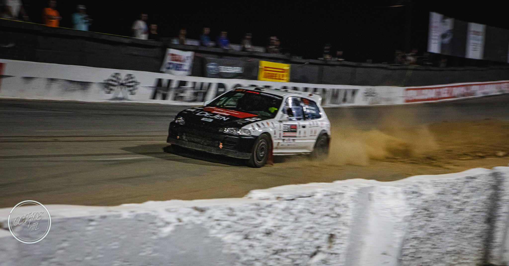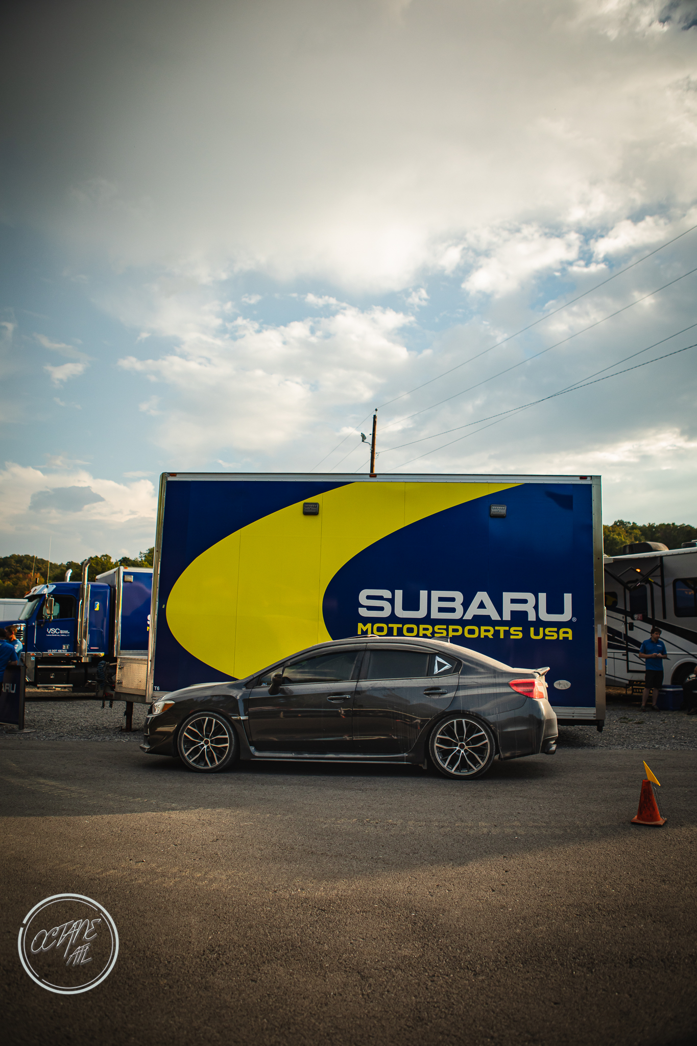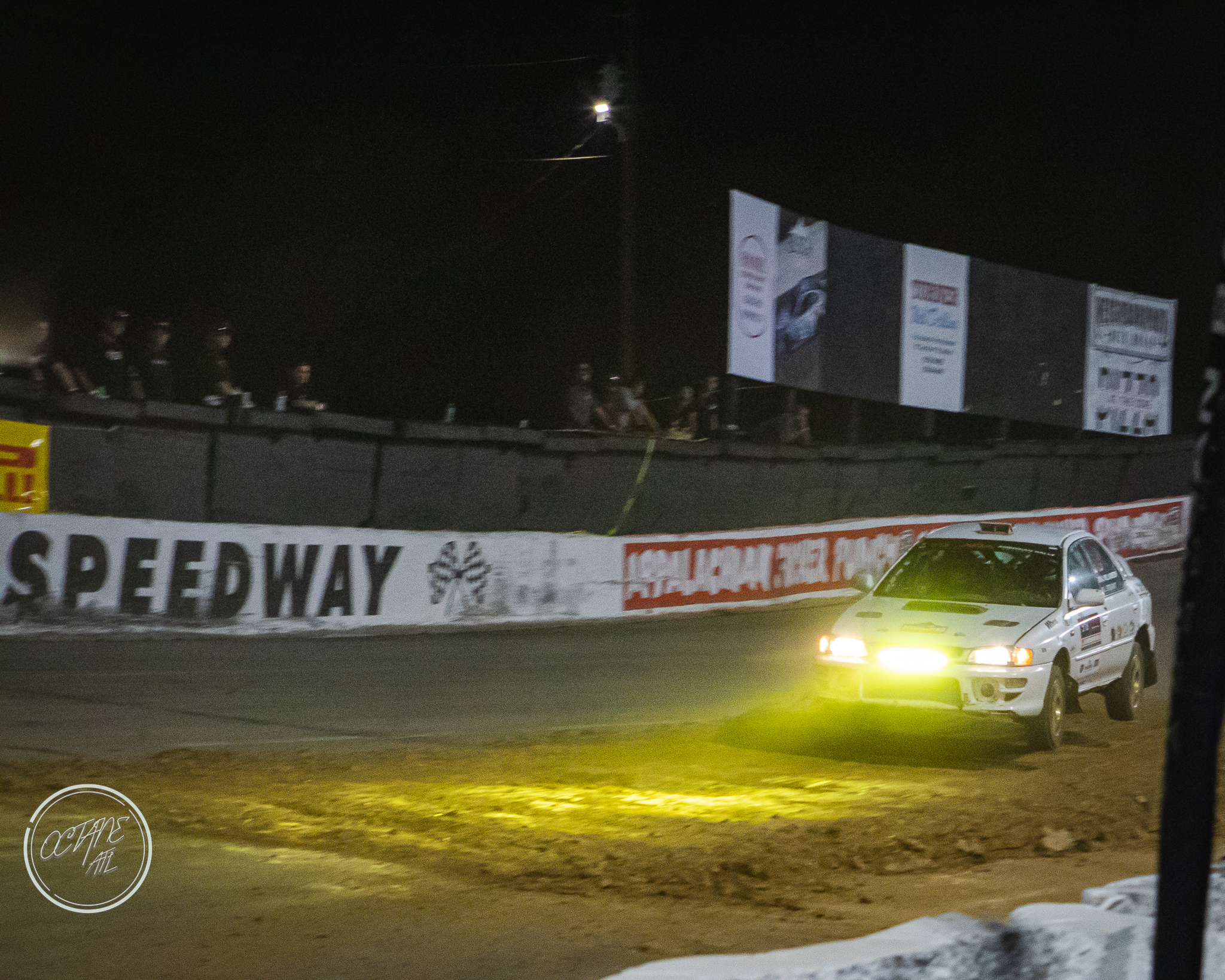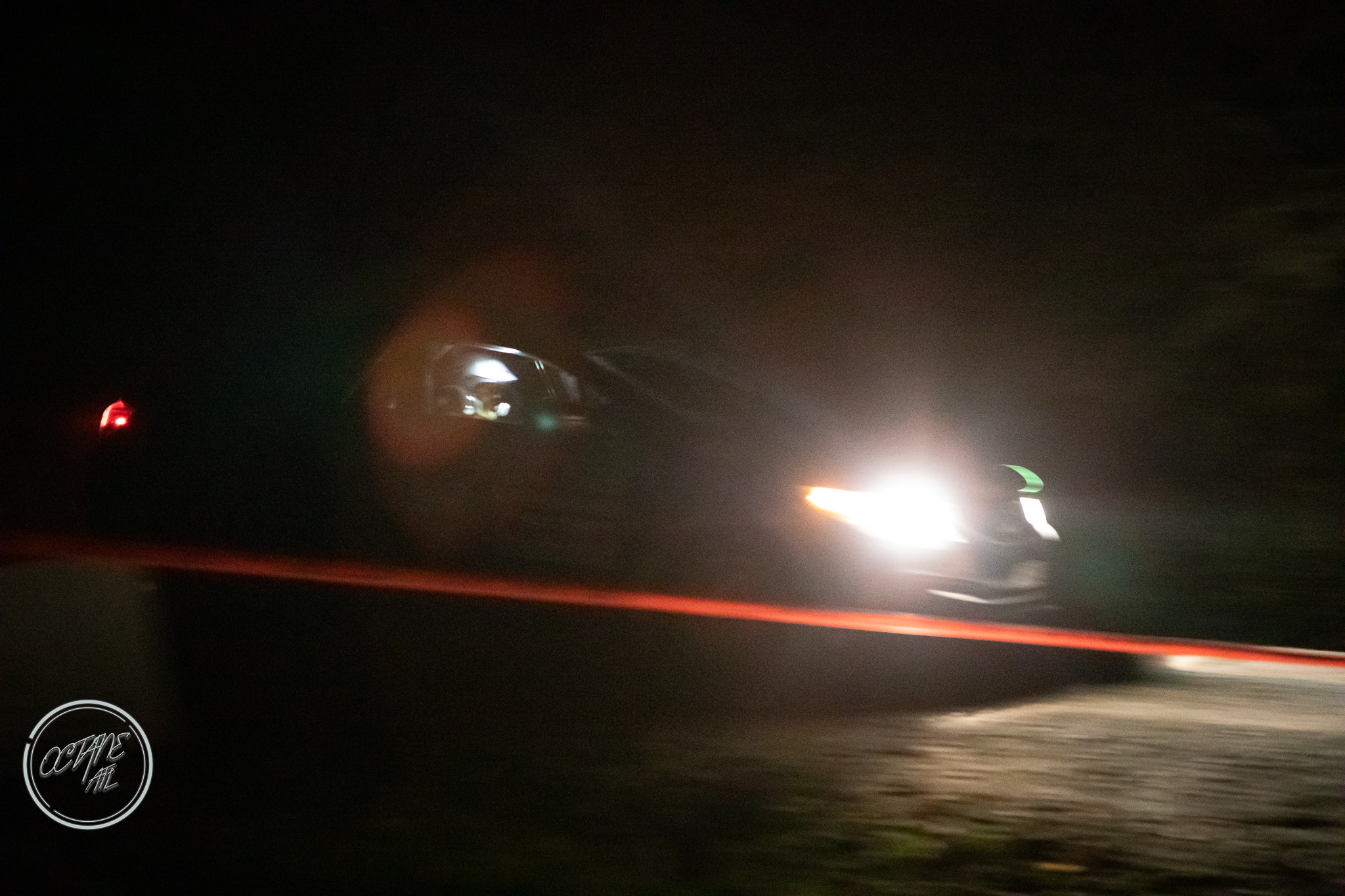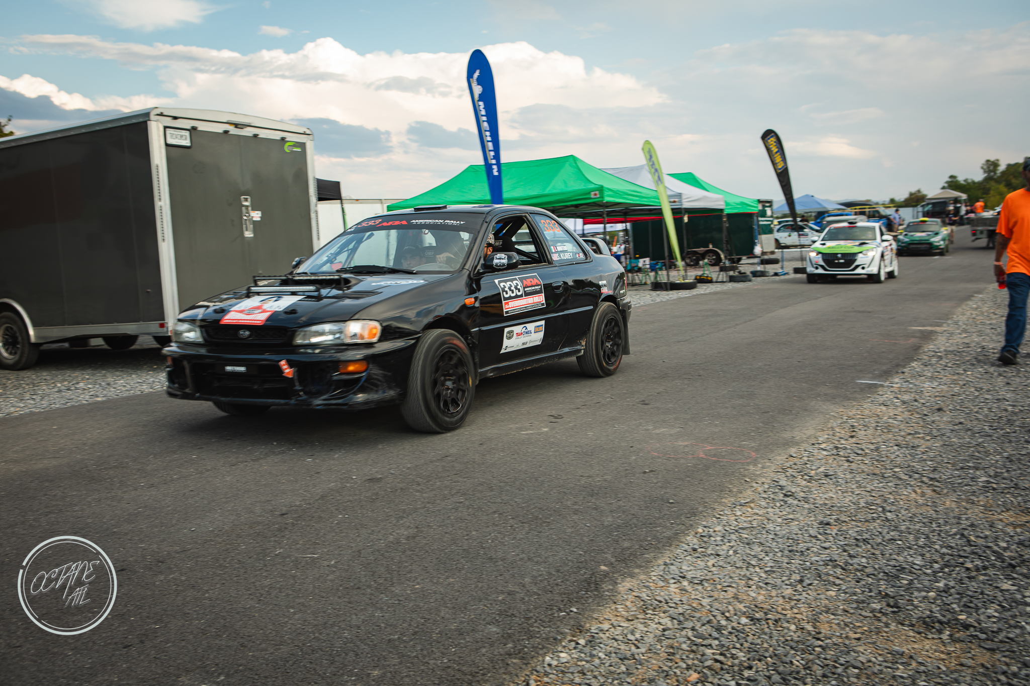 Saturday we chose a captive stage where the course shifted from gravel to pavement, which according to some of the drivers, was a bit slippery from a build up of moss. The first pass of our stage was shortened due to an off course just up the stage from us- one of the teams had missed the turn and wound up down the mountain side in the river, so we had a total of 8 cars make it through the first run. The second run there was a fuller roster, though notably more than just one car was missing. It was noted by most teams that this was one of the most technical rallies of the season, and the hills of Tennessee were proving to be harsh and challenging. By the time the third pass for our stage began the light was fading and the number of cars that passed had dwindled from a start of 50 down to a total of 36 that had made it to the last off road stage of the night. From there the teams headed back to Newport Speedway for the final event, a jump and barrels, which we missed due to helping clear our stage of spectators and cleaning up any trash as well as the tape used to mark off spectator areas.