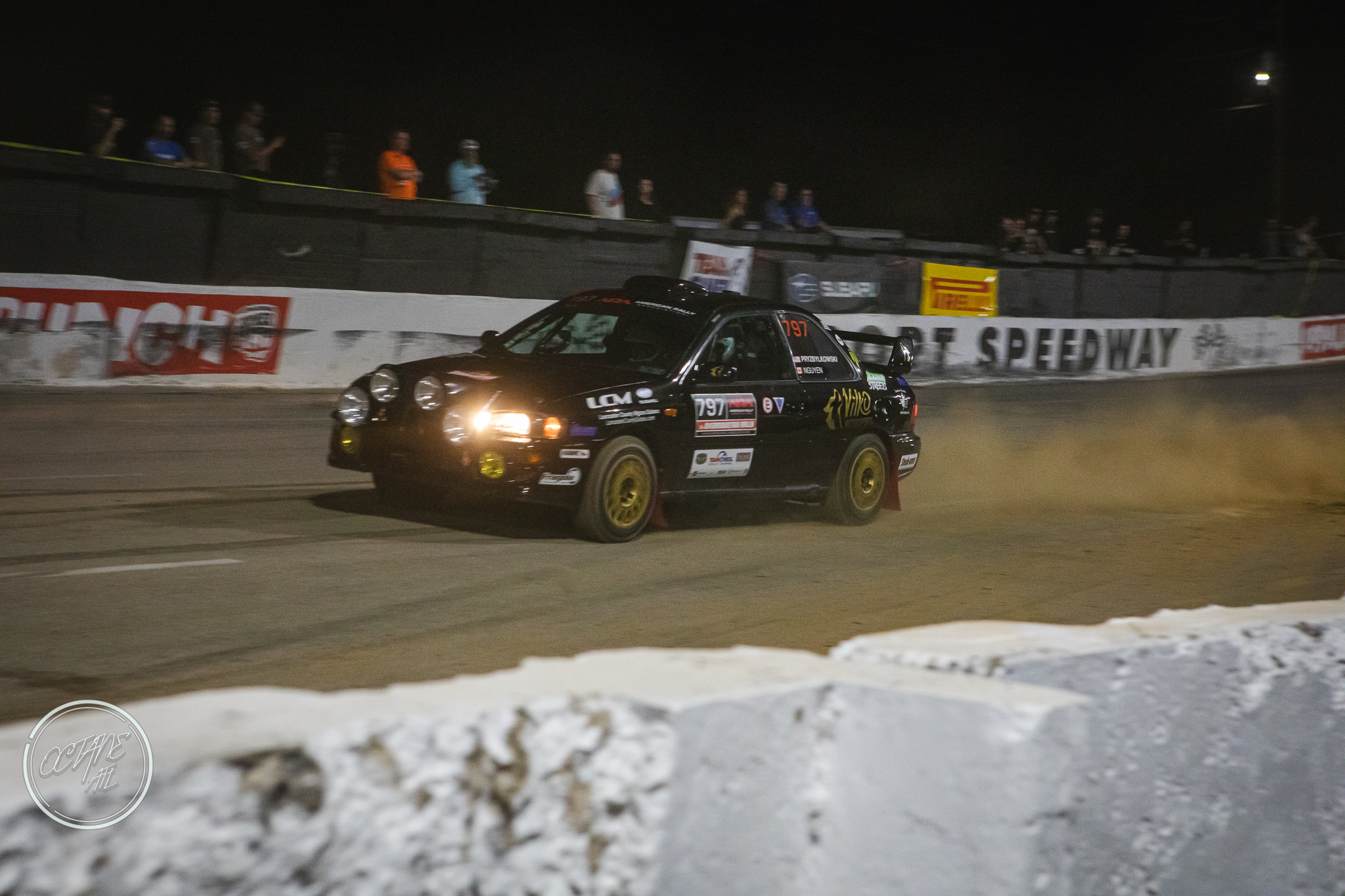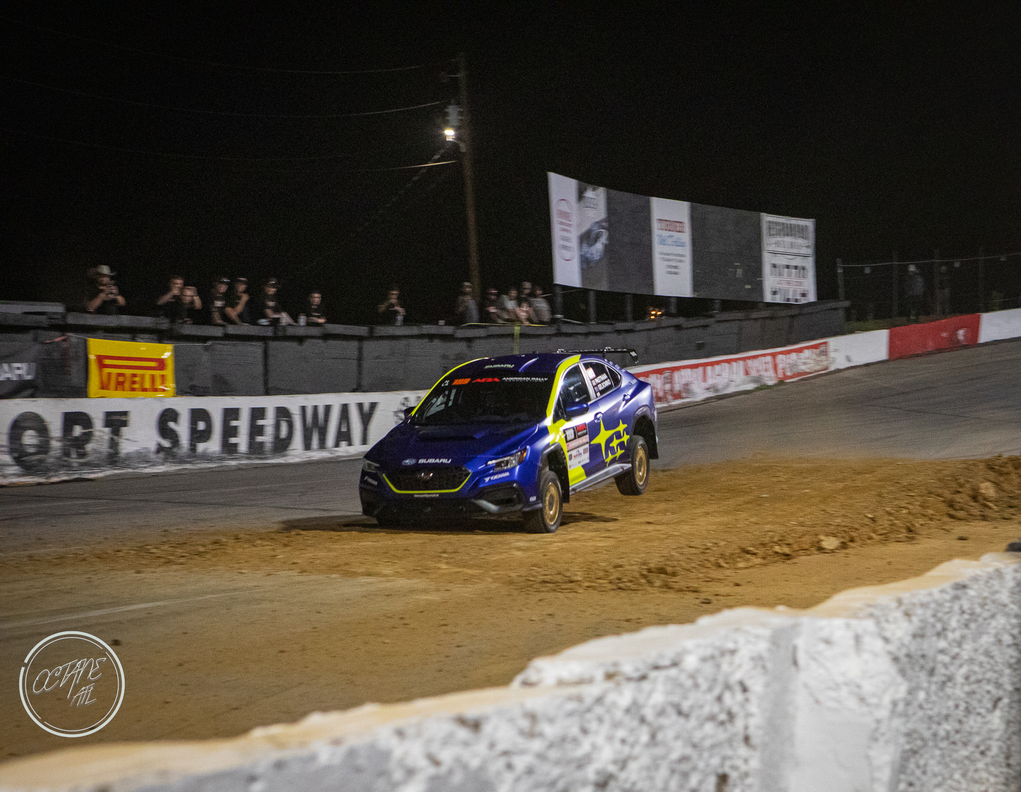 Friday night was a special stage held at Newport Speedway where 2 cars would go head to head, looping the track twice and completing 2 jumps each time. Some folks sent it hard, flat out and full send while others were more conservative in their opening night shenanigans. Before the racing started there was a lot of time for fans to meet the teams and to check out all the cars parked along the infield. Every person I spoke to was exceedingly friendly and I was thrilled to see so many women involved at every level, from driver and co-driver down to techs and crew, as well as support roles. Also check one off of the list of ‘things teenage me would think are super cool’ — meeting Travis Pastrana and since, having had conversations with his co-driver, Rhianon.