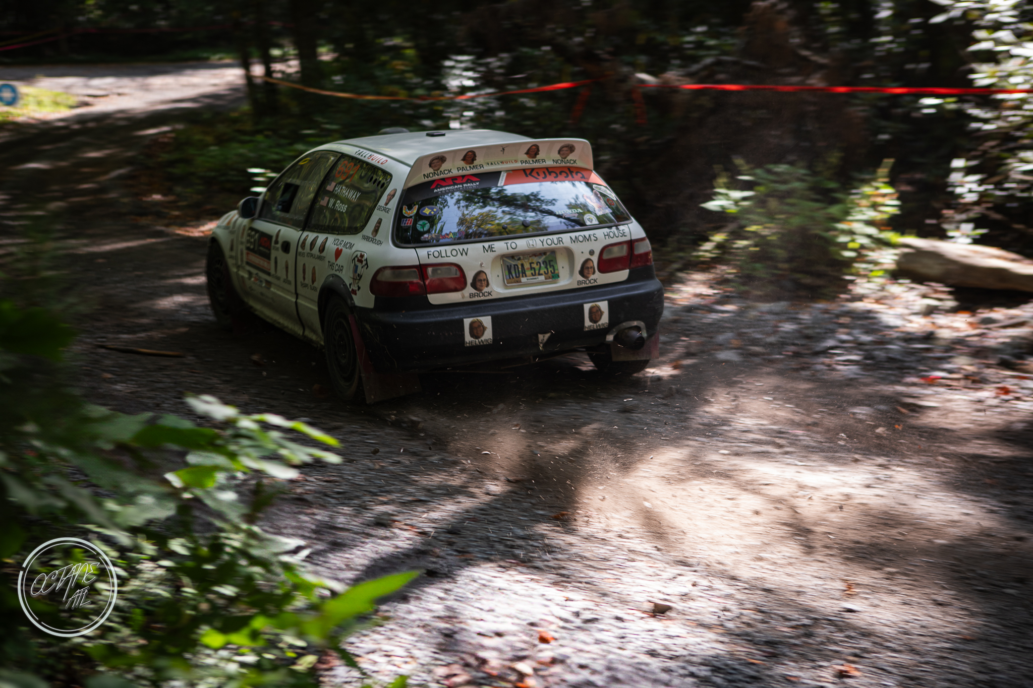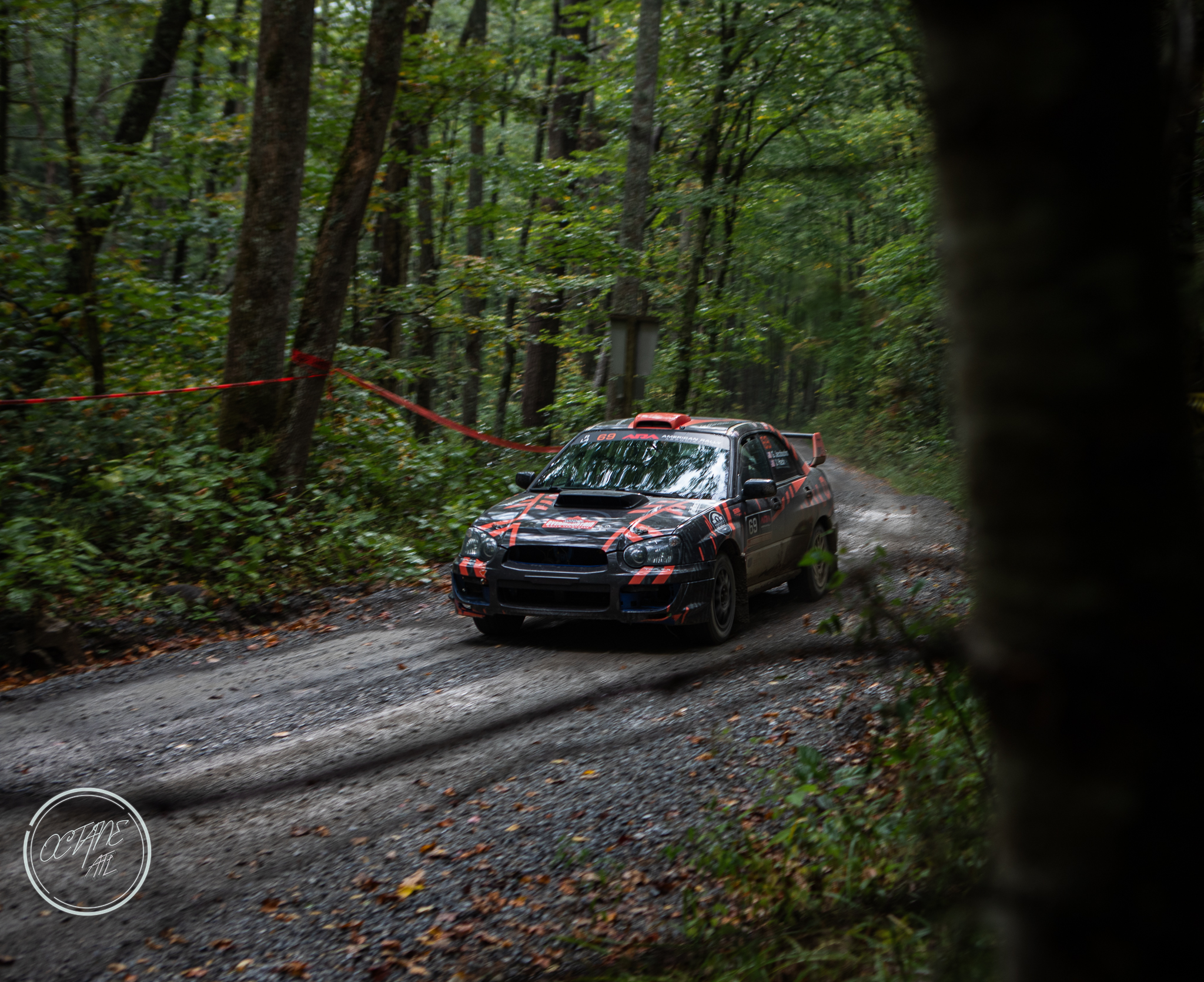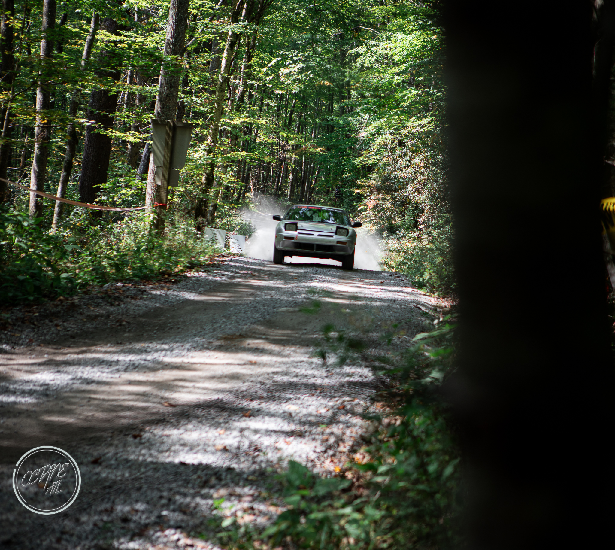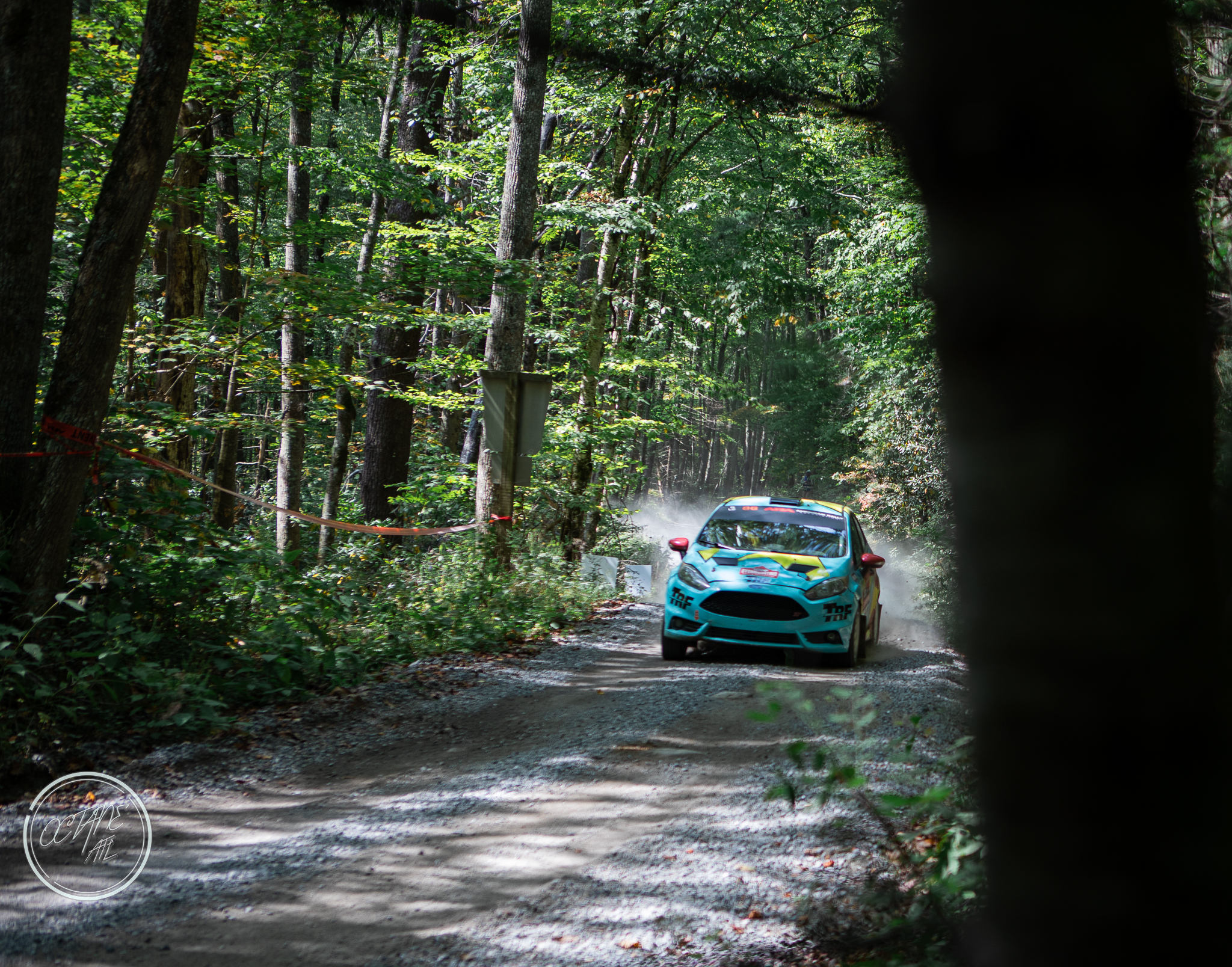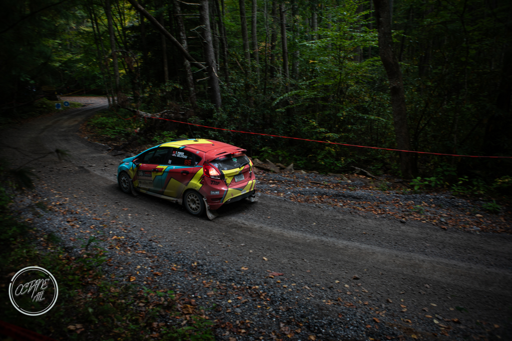 My spot Sunday was a bit easier to get great shots from, and the captain of the spectator zone had made a specific area just for media for which I was grateful, even if my shins toted home some new bruises from gravel being kicked up by a few competitors. The Sunday viewing spaces were also captive, but we were at a campground within the forest which had camp toilets, which was a nicety I was grateful for. There were only 2 passes at our location scheduled and the end of the first had 3 cars which were escorted out at travel pace due to an unhappy local at the finish who wanted to pass through despite the road being closed. The stages saw some carnage and, much like Saturday, the number of cars dwindled between passes of our stage. During the service break it began to rain in patches along the stages; some, like our area, seeing a little more than a drizzle while others saw full out downpours causing rapidly changing conditions to battle not just for competitors but also for the media crews as well. It was obvious how much muddier other stages were by the conditions of the cars as they passed by, some looking like they had attempted to drive through endless mud puddles and all coated in gravel dust and dirt as they dried out. Due to work schedules and a lengthy drive home, we didn’t stay to capture the podiums and end of the rally festivities, but I certainly know for next time to make time for this.