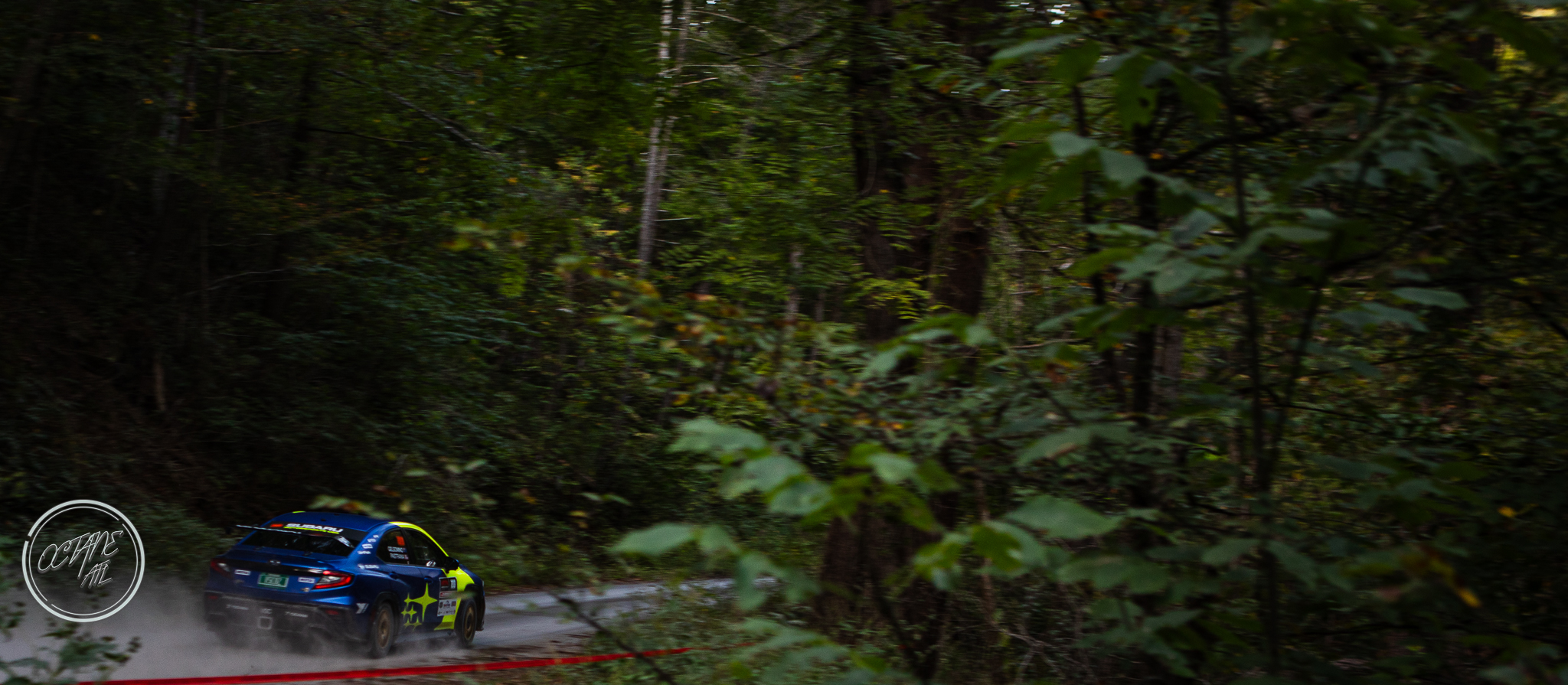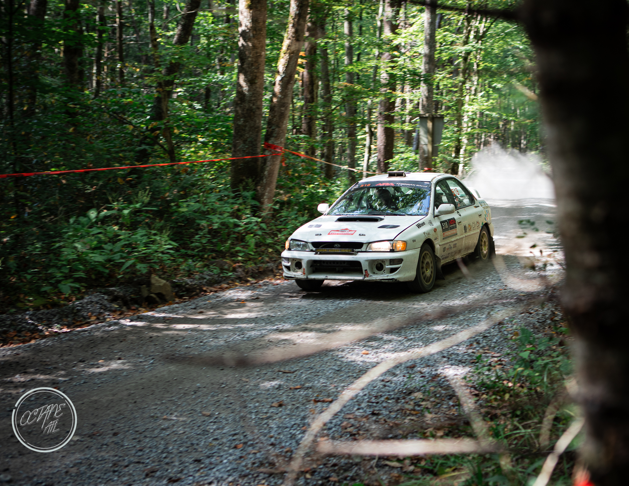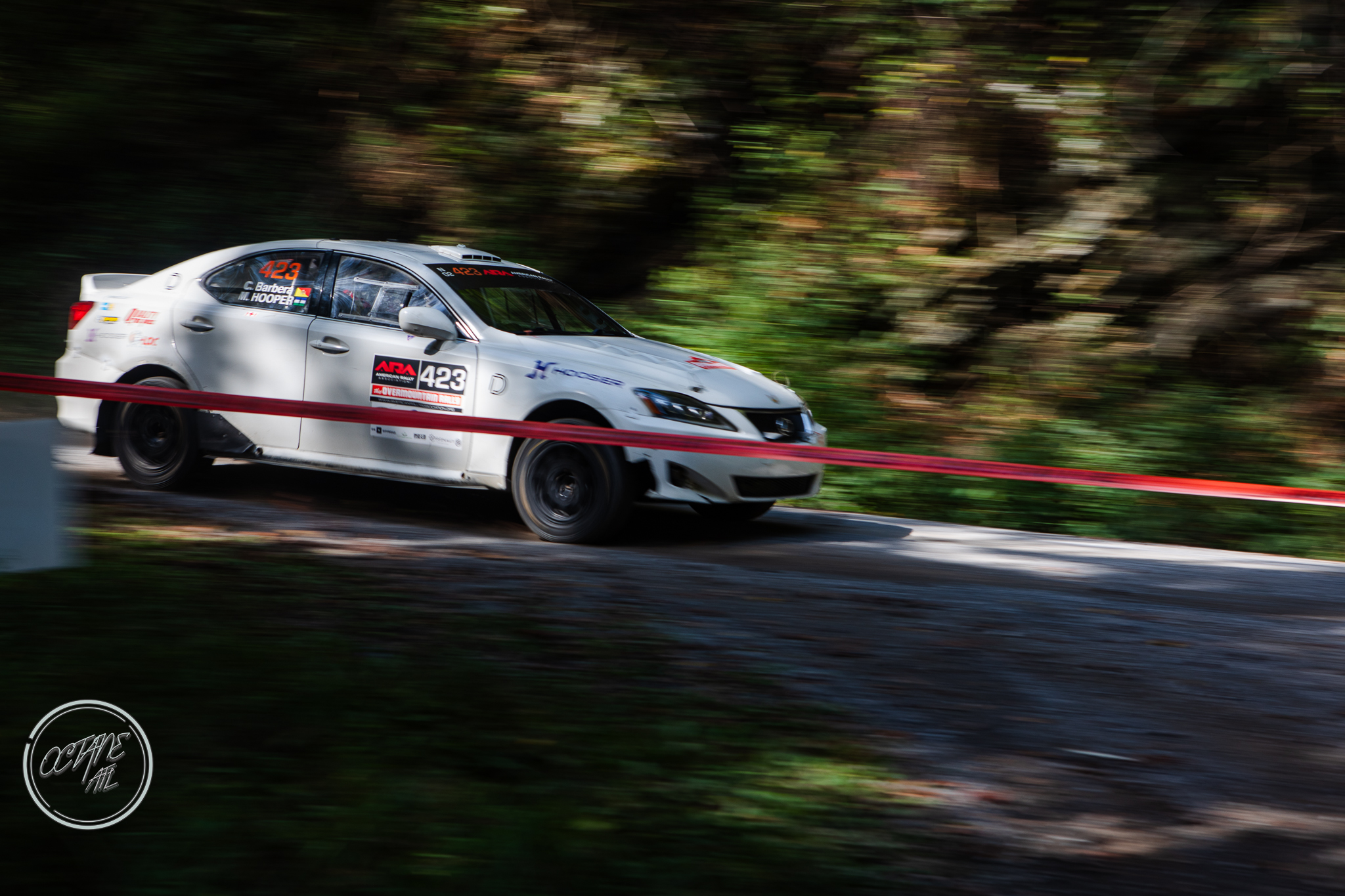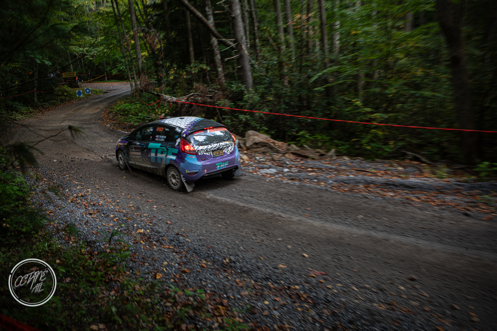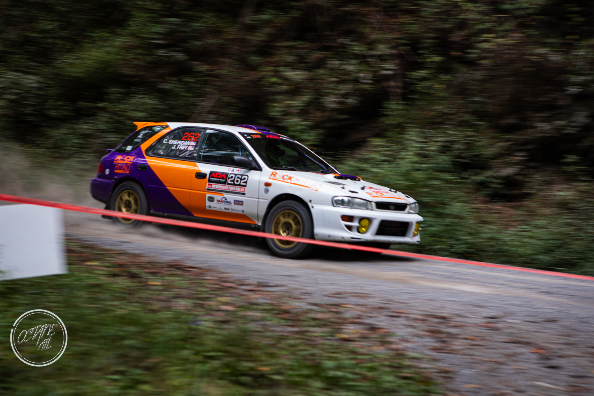 My spot Sunday was a bit easier to get great shots from, and the captain of the spectator zone had made a specific area just for media for which I was grateful, even if my shins toted home some new bruises from gravel being kicked up by a few competitors. The Sunday viewing spaces were also captive, but we were at a campground within the forest which had camp toilets, which was a nicety I was grateful for. There were only 2 passes at our location scheduled and the end of the first had 3 cars which were escorted out at travel pace due to an unhappy local at the finish who wanted to pass through despite the road being closed. The stages saw some carnage and, much like Saturday, the number of cars dwindled between passes of our stage. During the service break it began to rain in patches along the stages; some, like our area, seeing a little more than a drizzle while others saw full out downpours causing rapidly changing conditions to battle not just for competitors but also for the media crews as well. It was obvious how much muddier other stages were by the conditions of the cars as they passed by, some looking like they had attempted to drive through endless mud puddles and all coated in gravel dust and dirt as they dried out. Due to work schedules and a lengthy drive home, we didn’t stay to capture the podiums and end of the rally festivities, but I certainly know for next time to make time for this.