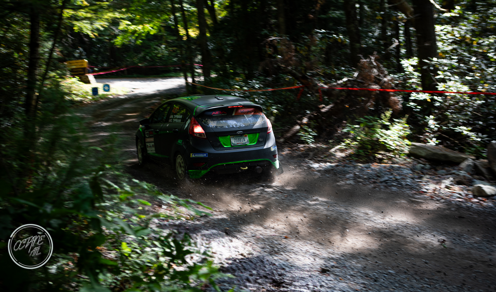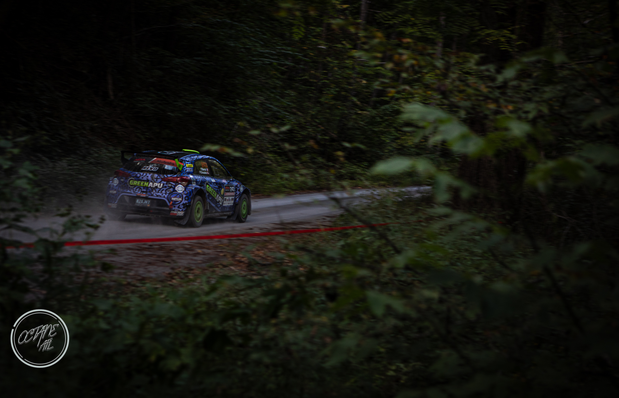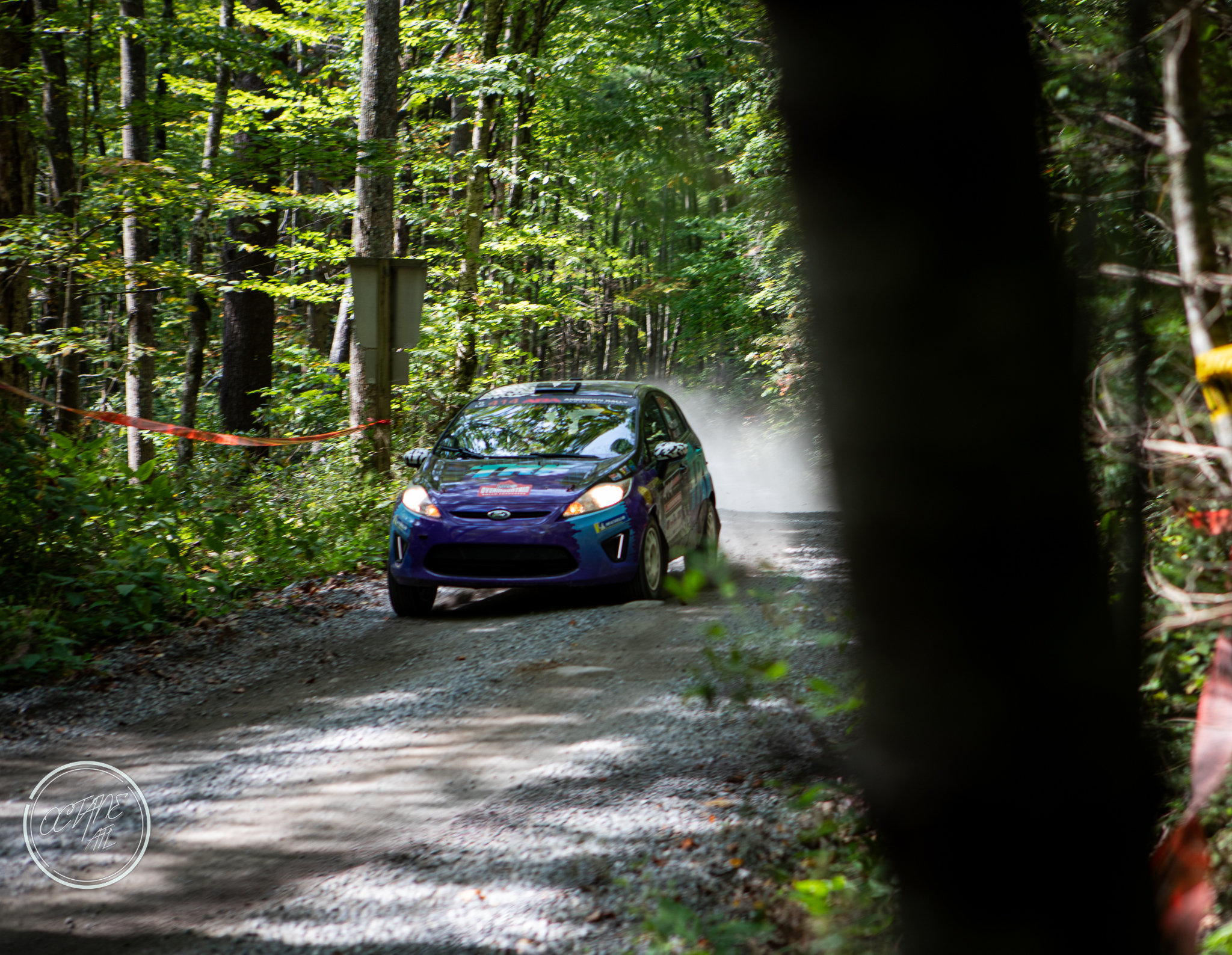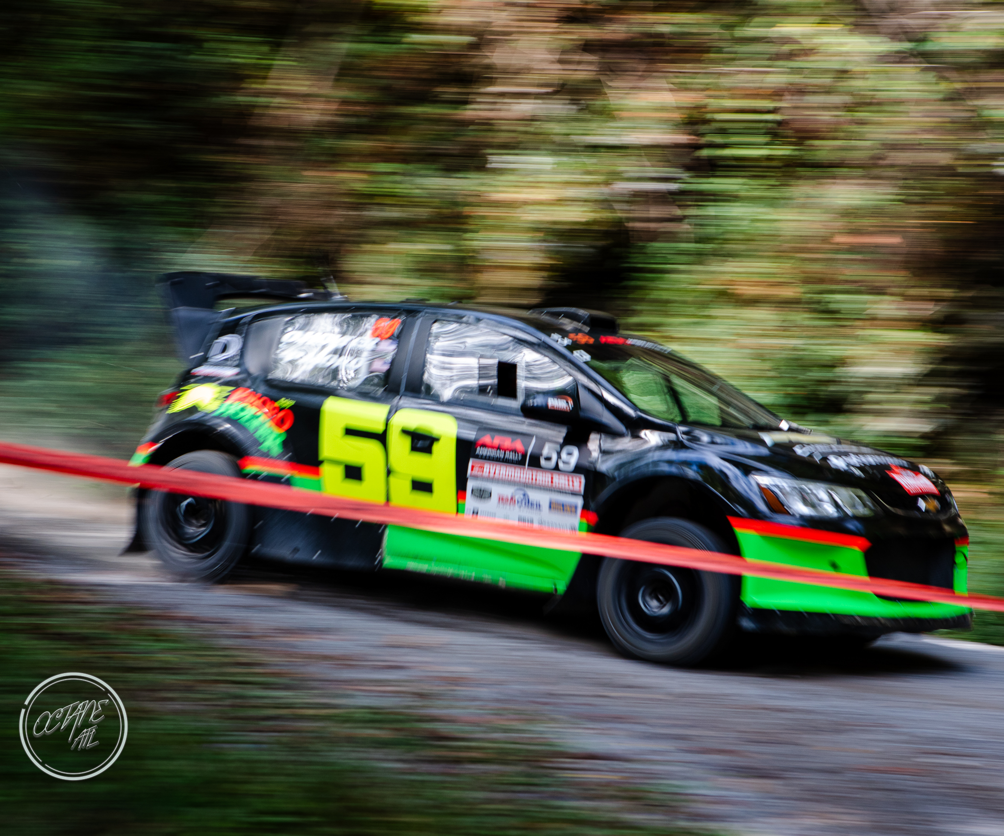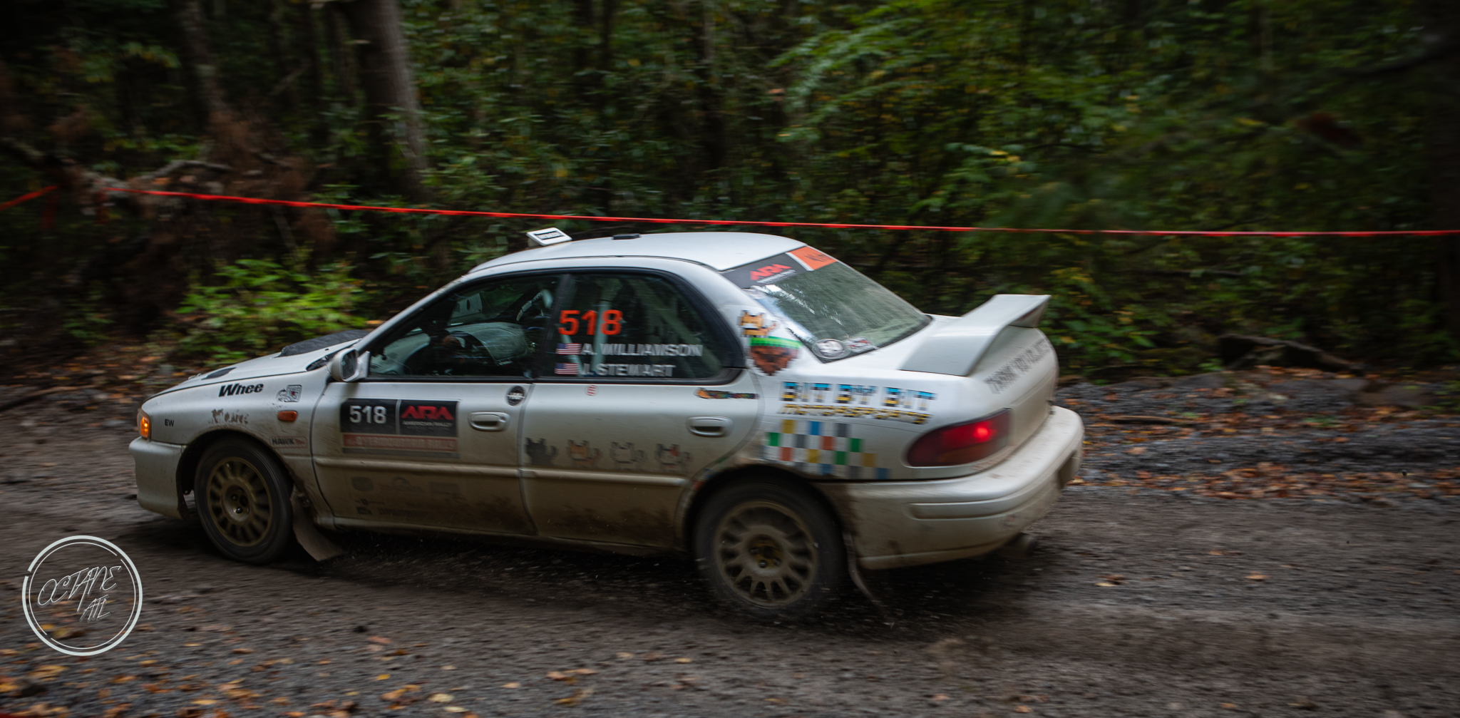 My spot Sunday was a bit easier to get great shots from, and the captain of the spectator zone had made a specific area just for media for which I was grateful, even if my shins toted home some new bruises from gravel being kicked up by a few competitors. The Sunday viewing spaces were also captive, but we were at a campground within the forest which had camp toilets, which was a nicety I was grateful for. There were only 2 passes at our location scheduled and the end of the first had 3 cars which were escorted out at travel pace due to an unhappy local at the finish who wanted to pass through despite the road being closed. The stages saw some carnage and, much like Saturday, the number of cars dwindled between passes of our stage. During the service break it began to rain in patches along the stages; some, like our area, seeing a little more than a drizzle while others saw full out downpours causing rapidly changing conditions to battle not just for competitors but also for the media crews as well. It was obvious how much muddier other stages were by the conditions of the cars as they passed by, some looking like they had attempted to drive through endless mud puddles and all coated in gravel dust and dirt as they dried out. Due to work schedules and a lengthy drive home, we didn’t stay to capture the podiums and end of the rally festivities, but I certainly know for next time to make time for this.