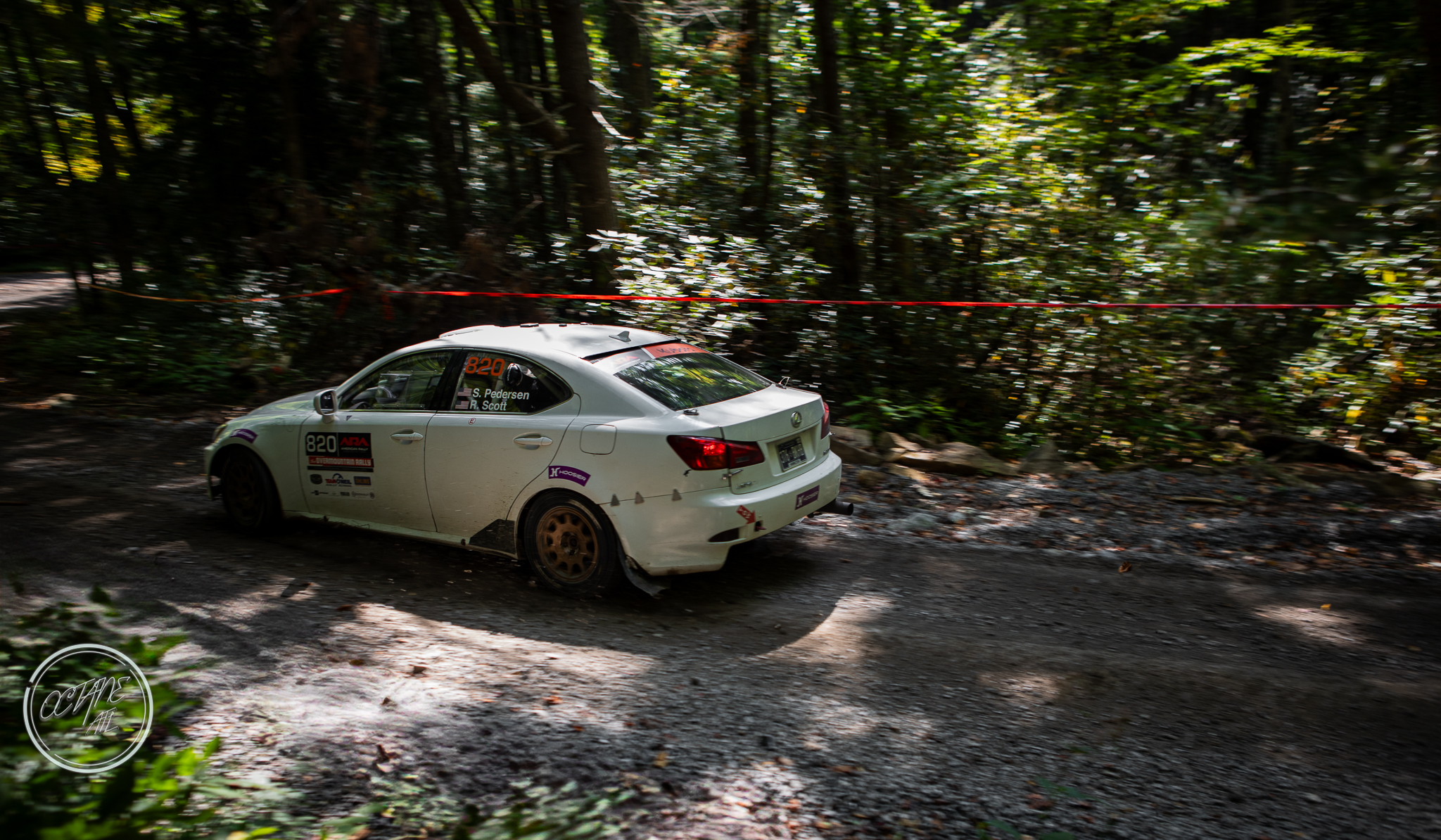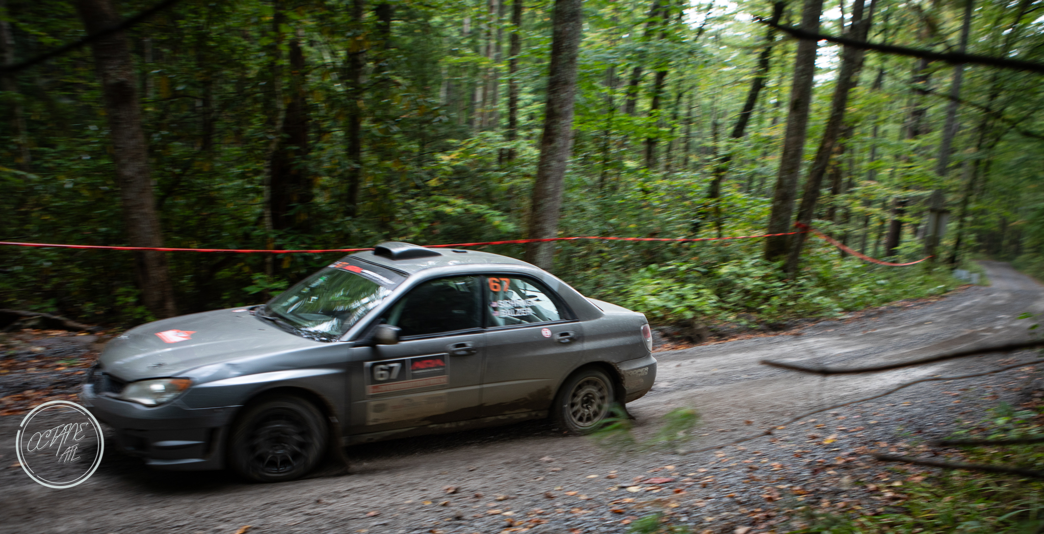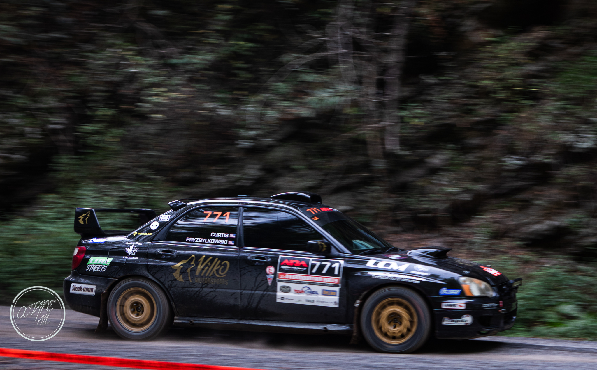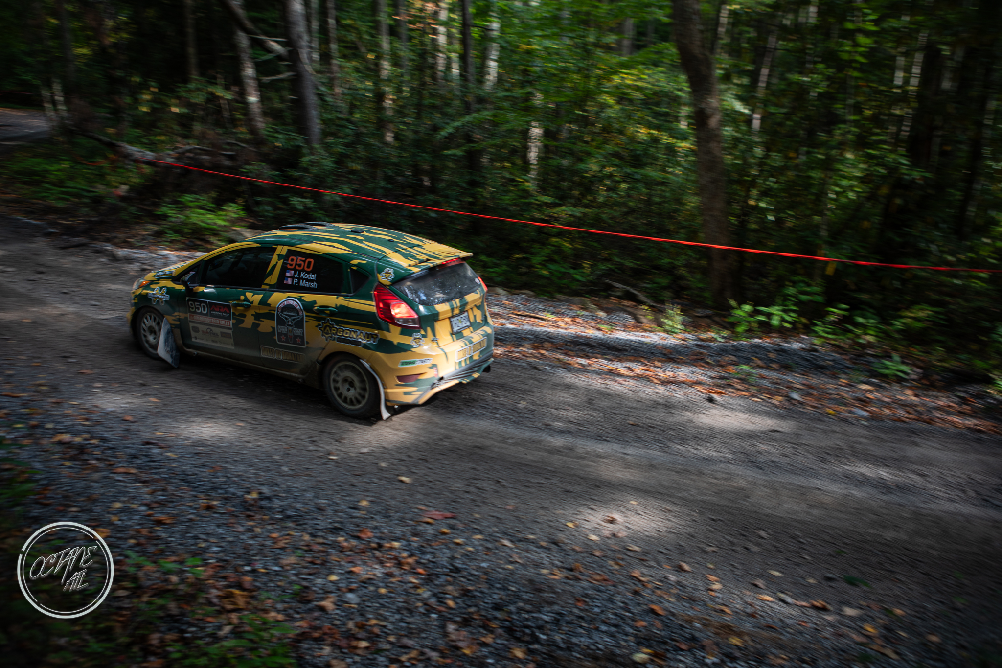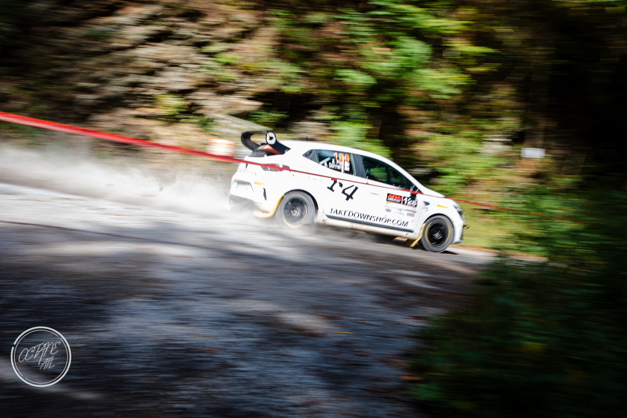 My spot Sunday was a bit easier to get great shots from, and the captain of the spectator zone had made a specific area just for media for which I was grateful, even if my shins toted home some new bruises from gravel being kicked up by a few competitors. The Sunday viewing spaces were also captive, but we were at a campground within the forest which had camp toilets, which was a nicety I was grateful for. There were only 2 passes at our location scheduled and the end of the first had 3 cars which were escorted out at travel pace due to an unhappy local at the finish who wanted to pass through despite the road being closed. The stages saw some carnage and, much like Saturday, the number of cars dwindled between passes of our stage. During the service break it began to rain in patches along the stages; some, like our area, seeing a little more than a drizzle while others saw full out downpours causing rapidly changing conditions to battle not just for competitors but also for the media crews as well. It was obvious how much muddier other stages were by the conditions of the cars as they passed by, some looking like they had attempted to drive through endless mud puddles and all coated in gravel dust and dirt as they dried out. Due to work schedules and a lengthy drive home, we didn’t stay to capture the podiums and end of the rally festivities, but I certainly know for next time to make time for this.