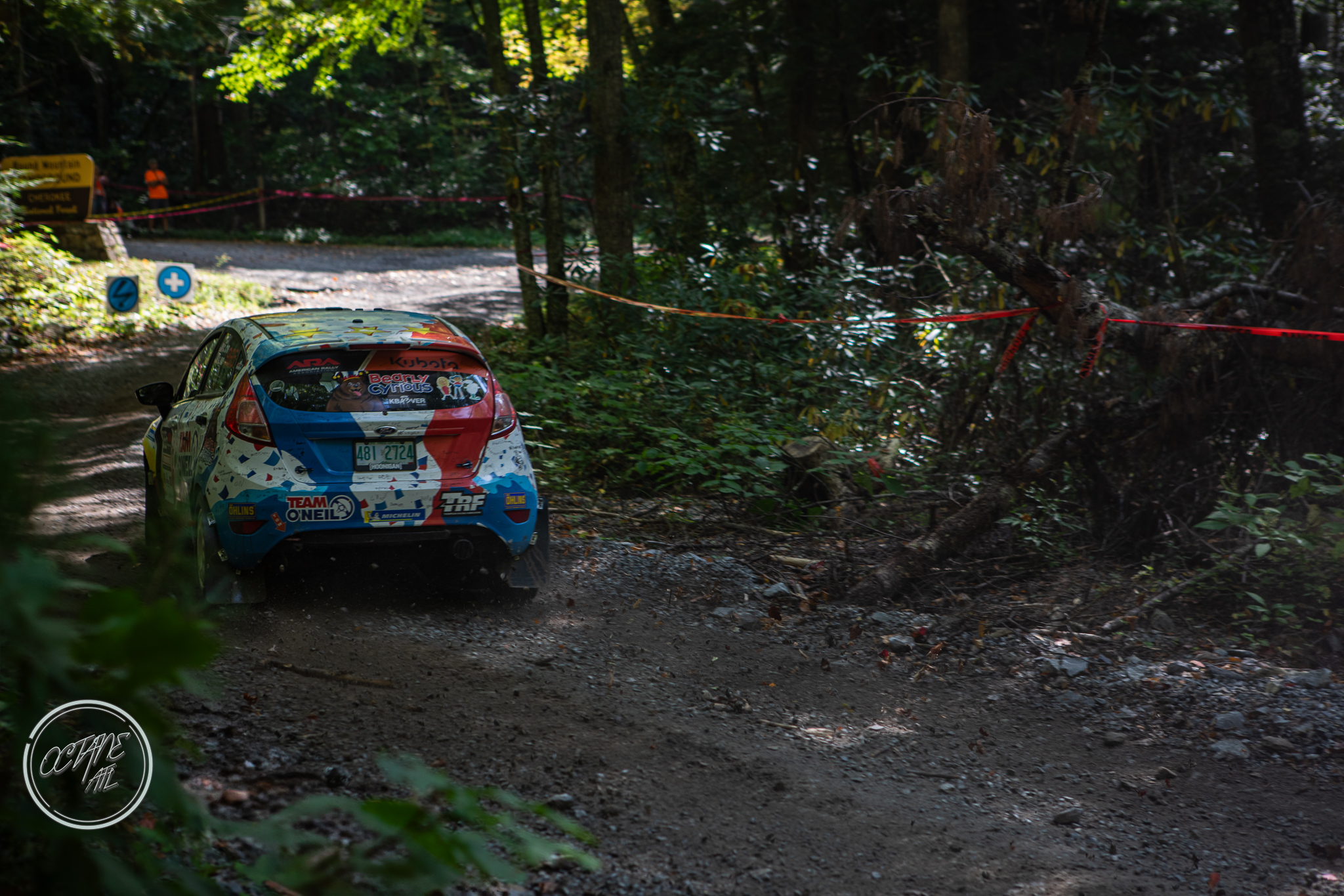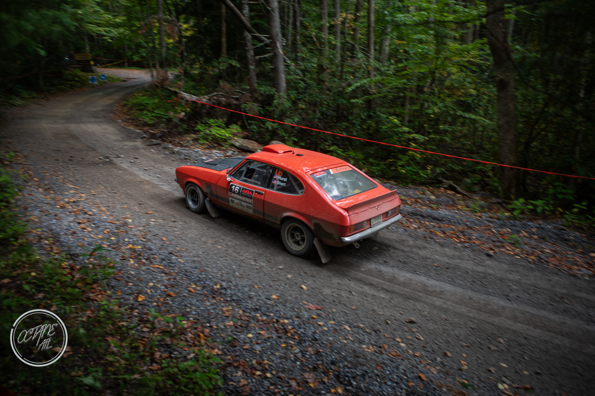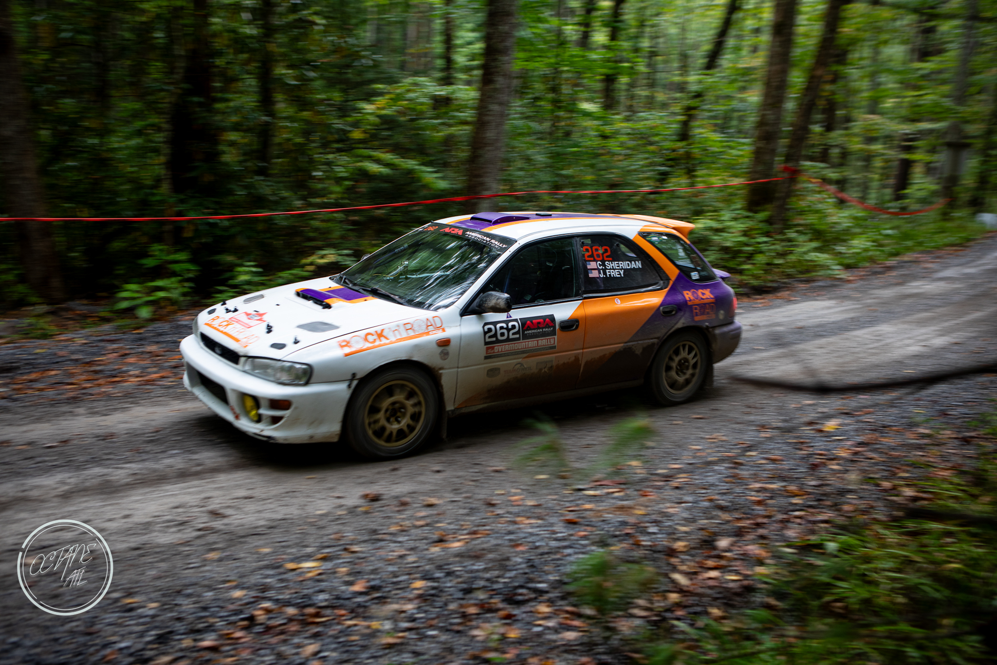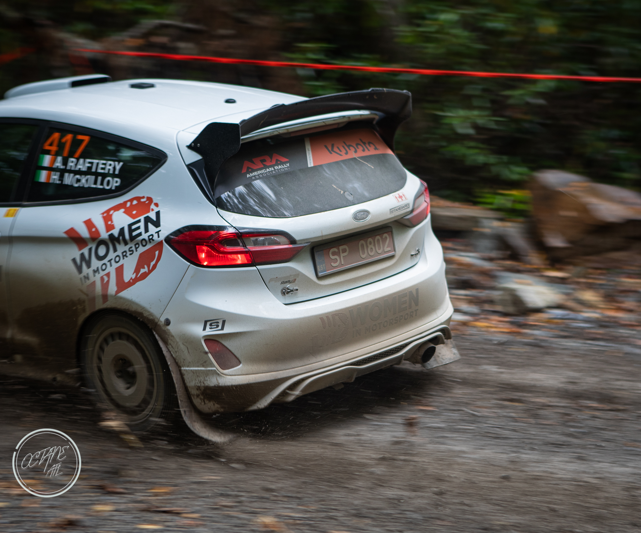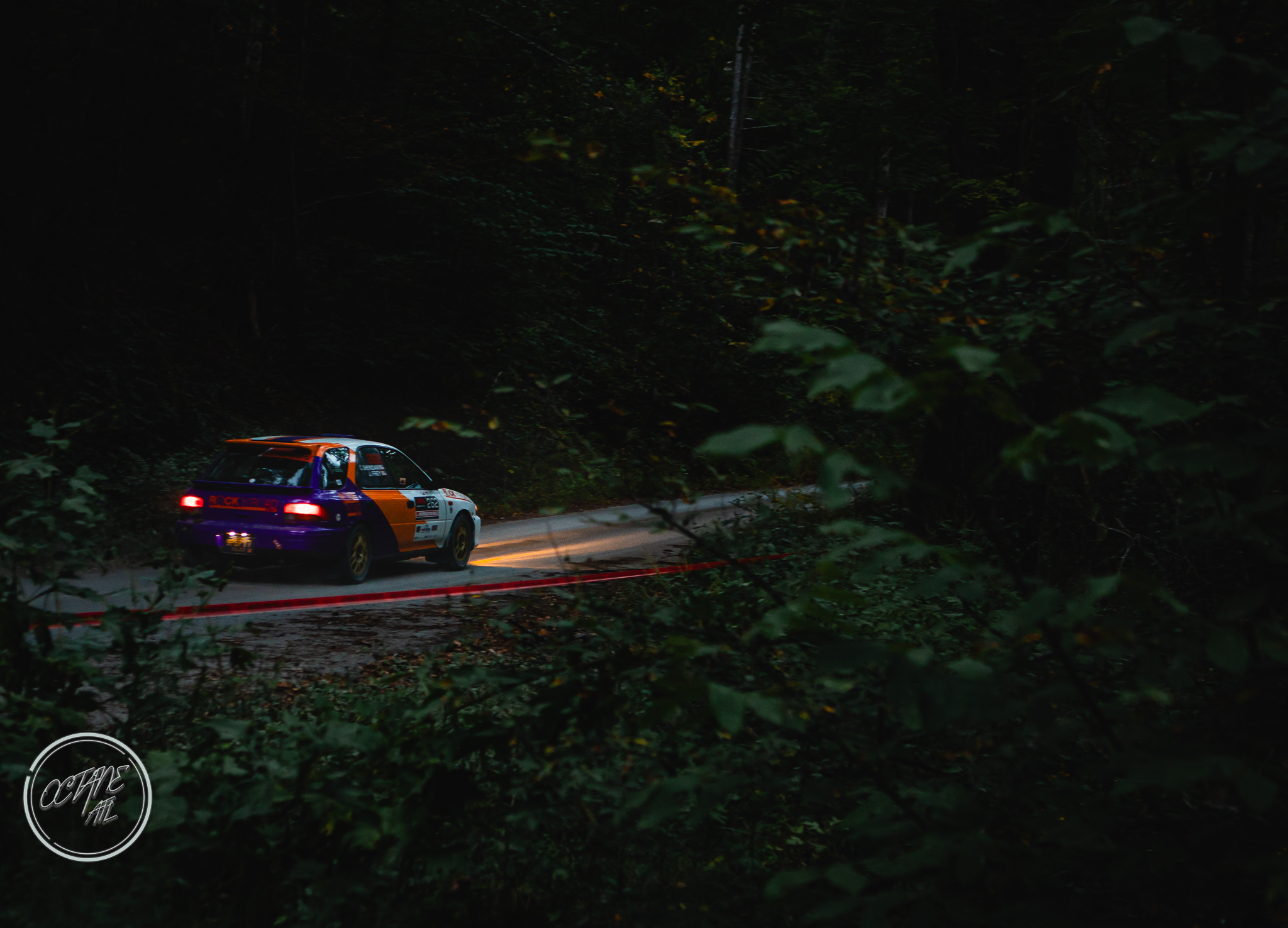 My spot Sunday was a bit easier to get great shots from, and the captain of the spectator zone had made a specific area just for media for which I was grateful, even if my shins toted home some new bruises from gravel being kicked up by a few competitors. The Sunday viewing spaces were also captive, but we were at a campground within the forest which had camp toilets, which was a nicety I was grateful for. There were only 2 passes at our location scheduled and the end of the first had 3 cars which were escorted out at travel pace due to an unhappy local at the finish who wanted to pass through despite the road being closed. The stages saw some carnage and, much like Saturday, the number of cars dwindled between passes of our stage. During the service break it began to rain in patches along the stages; some, like our area, seeing a little more than a drizzle while others saw full out downpours causing rapidly changing conditions to battle not just for competitors but also for the media crews as well. It was obvious how much muddier other stages were by the conditions of the cars as they passed by, some looking like they had attempted to drive through endless mud puddles and all coated in gravel dust and dirt as they dried out. Due to work schedules and a lengthy drive home, we didn’t stay to capture the podiums and end of the rally festivities, but I certainly know for next time to make time for this.