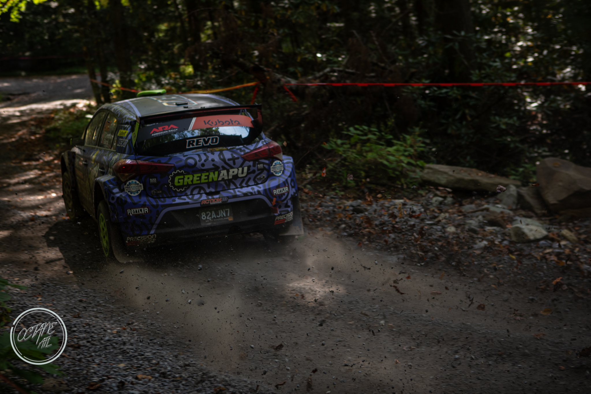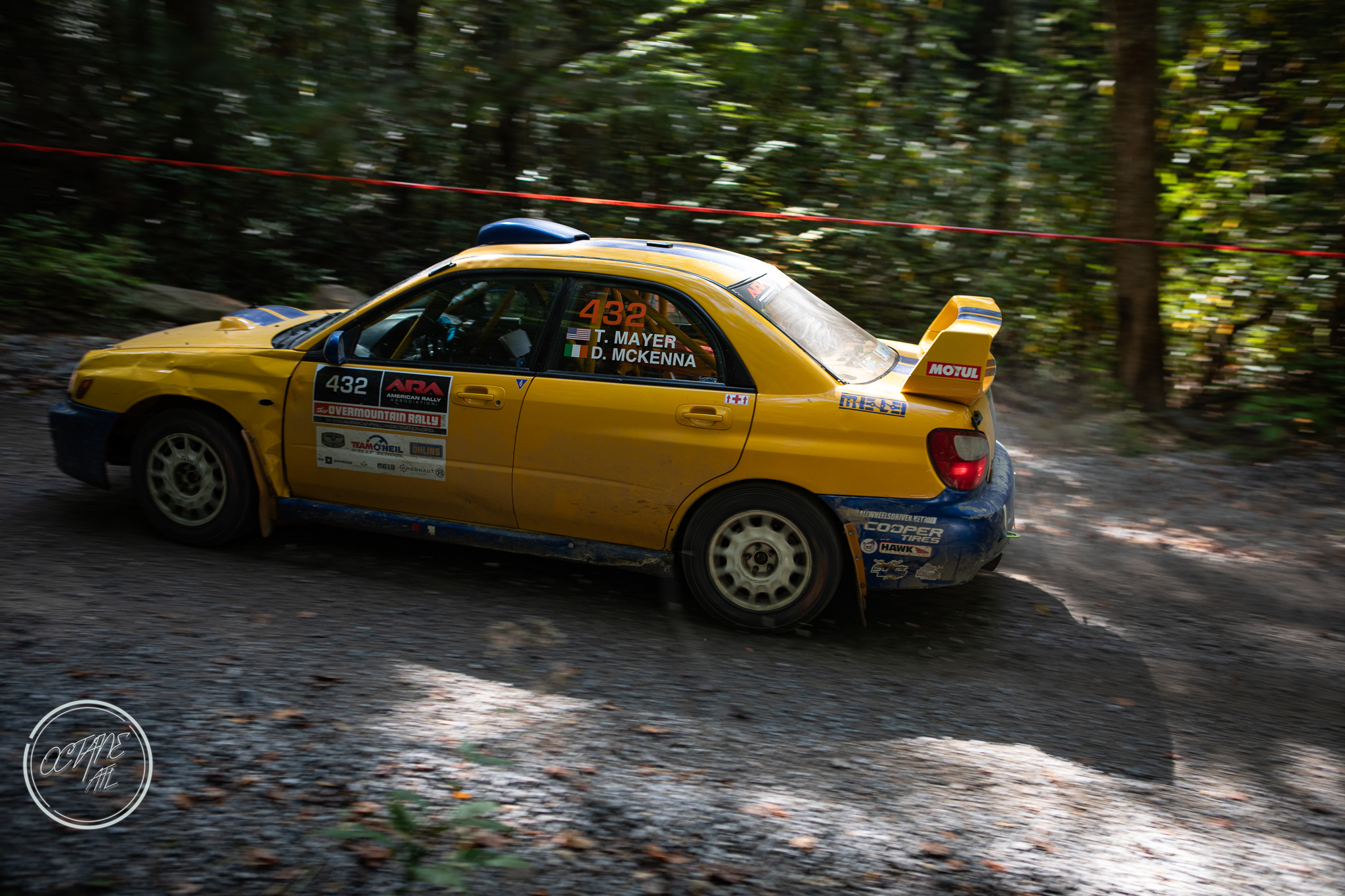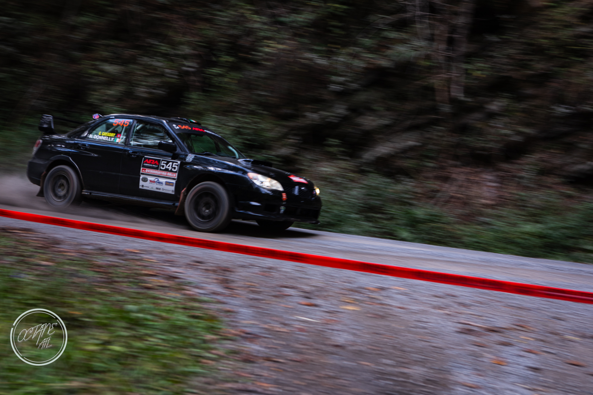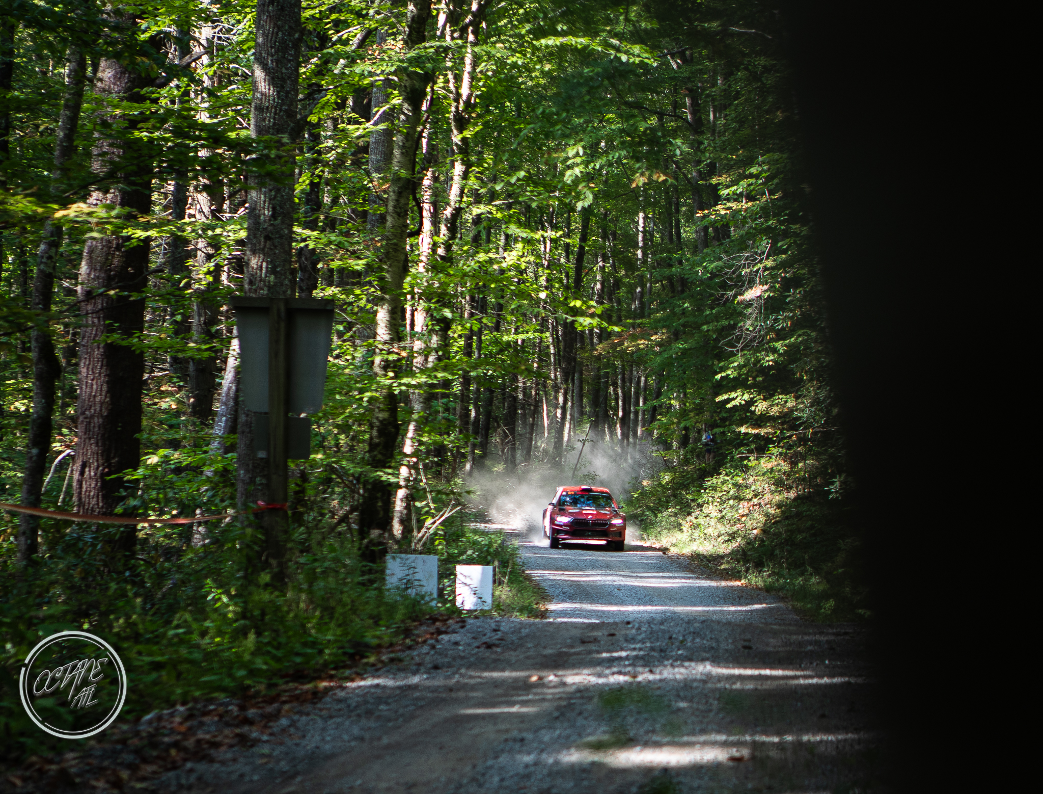 My spot Sunday was a bit easier to get great shots from, and the captain of the spectator zone had made a specific area just for media for which I was grateful, even if my shins toted home some new bruises from gravel being kicked up by a few competitors. The Sunday viewing spaces were also captive, but we were at a campground within the forest which had camp toilets, which was a nicety I was grateful for. There were only 2 passes at our location scheduled and the end of the first had 3 cars which were escorted out at travel pace due to an unhappy local at the finish who wanted to pass through despite the road being closed. The stages saw some carnage and, much like Saturday, the number of cars dwindled between passes of our stage. During the service break it began to rain in patches along the stages; some, like our area, seeing a little more than a drizzle while others saw full out downpours causing rapidly changing conditions to battle not just for competitors but also for the media crews as well. It was obvious how much muddier other stages were by the conditions of the cars as they passed by, some looking like they had attempted to drive through endless mud puddles and all coated in gravel dust and dirt as they dried out. Due to work schedules and a lengthy drive home, we didn’t stay to capture the podiums and end of the rally festivities, but I certainly know for next time to make time for this.