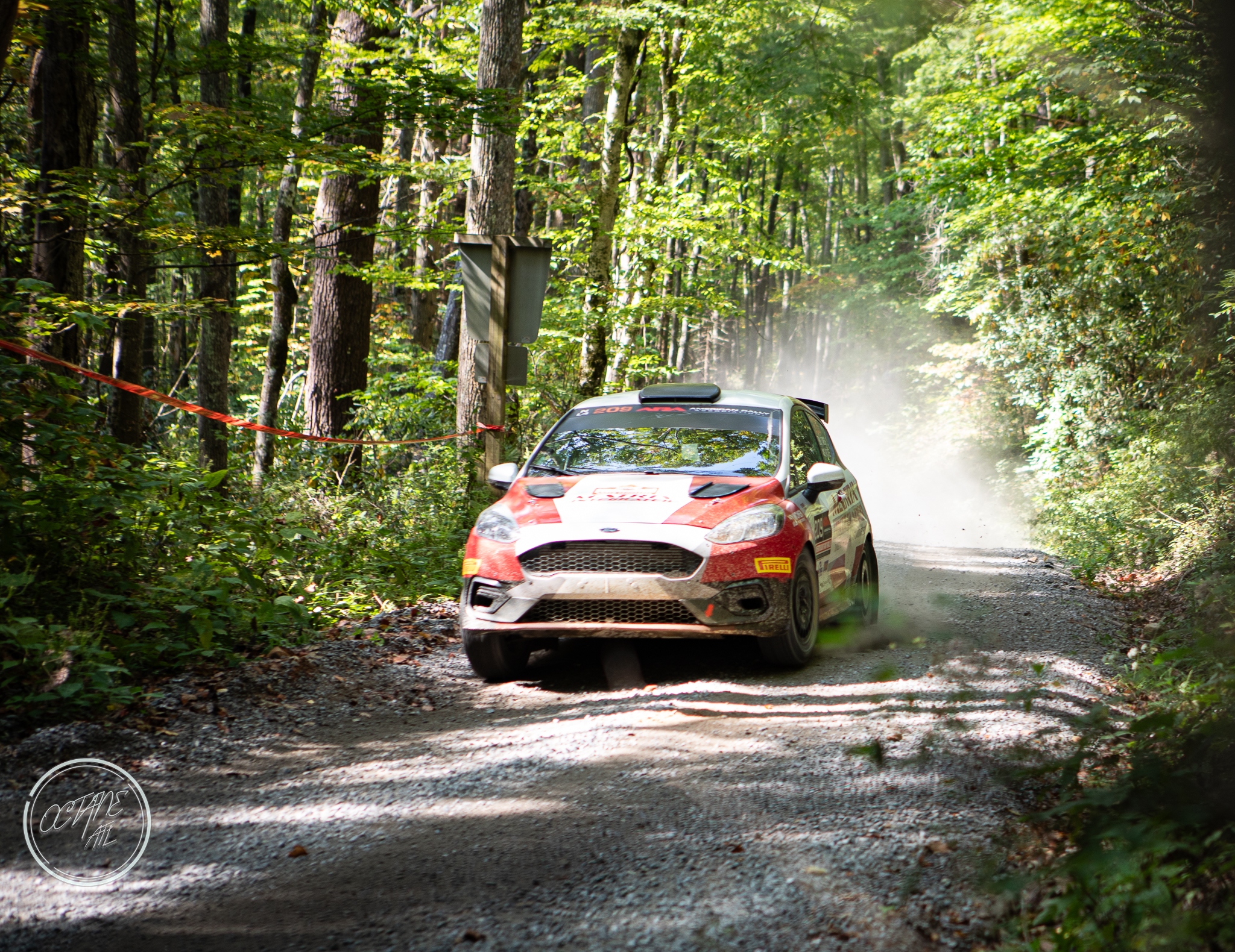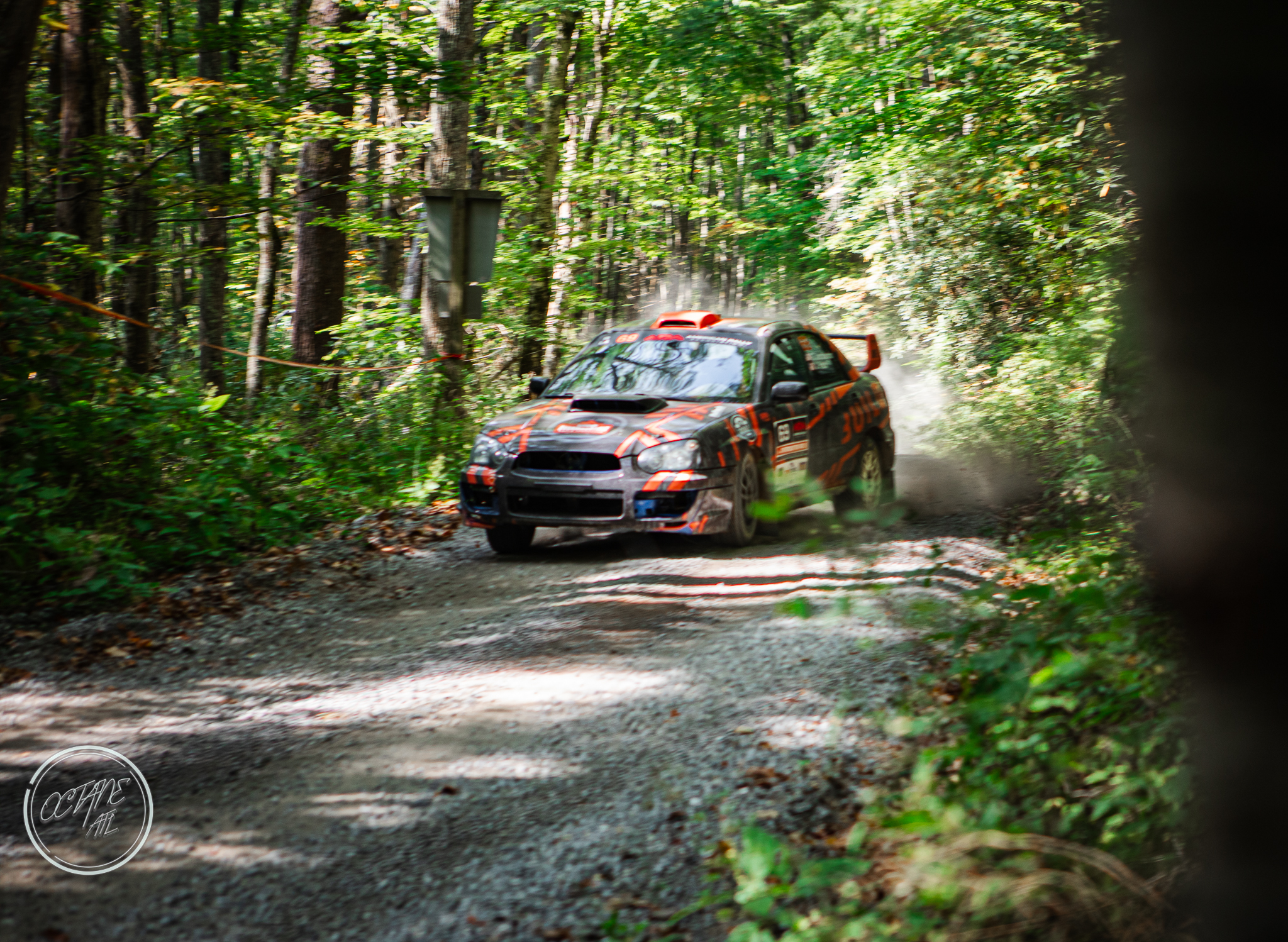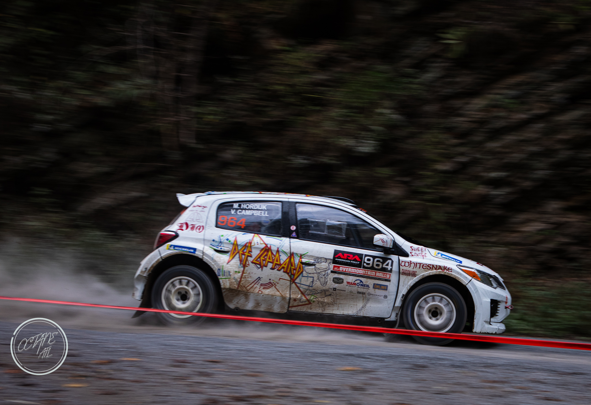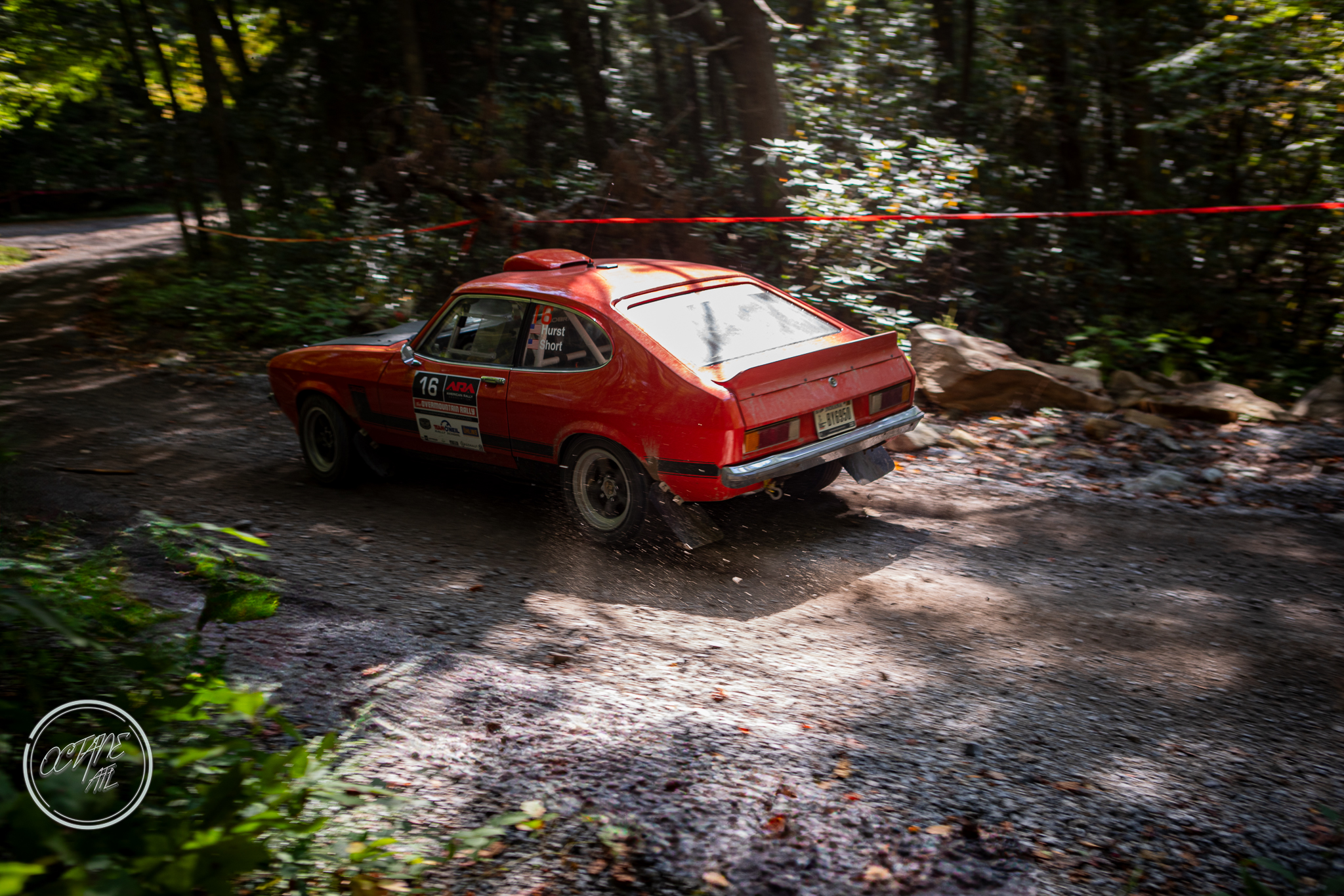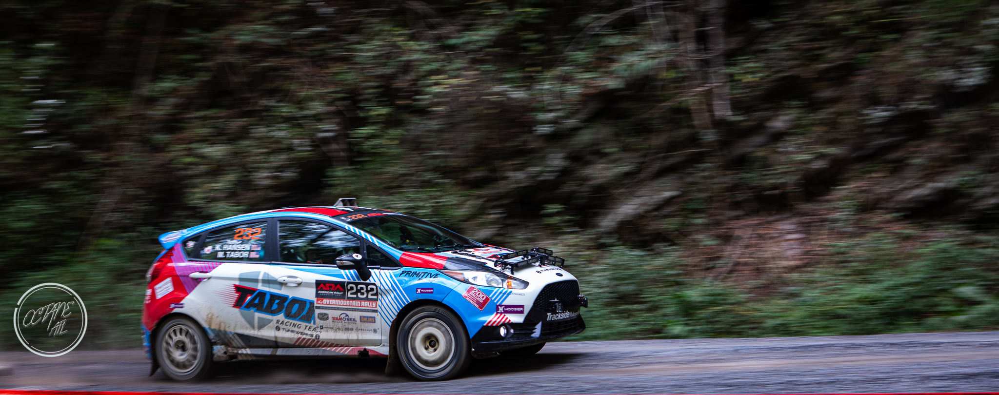 My spot Sunday was a bit easier to get great shots from, and the captain of the spectator zone had made a specific area just for media for which I was grateful, even if my shins toted home some new bruises from gravel being kicked up by a few competitors. The Sunday viewing spaces were also captive, but we were at a campground within the forest which had camp toilets, which was a nicety I was grateful for. There were only 2 passes at our location scheduled and the end of the first had 3 cars which were escorted out at travel pace due to an unhappy local at the finish who wanted to pass through despite the road being closed. The stages saw some carnage and, much like Saturday, the number of cars dwindled between passes of our stage. During the service break it began to rain in patches along the stages; some, like our area, seeing a little more than a drizzle while others saw full out downpours causing rapidly changing conditions to battle not just for competitors but also for the media crews as well. It was obvious how much muddier other stages were by the conditions of the cars as they passed by, some looking like they had attempted to drive through endless mud puddles and all coated in gravel dust and dirt as they dried out. Due to work schedules and a lengthy drive home, we didn’t stay to capture the podiums and end of the rally festivities, but I certainly know for next time to make time for this.