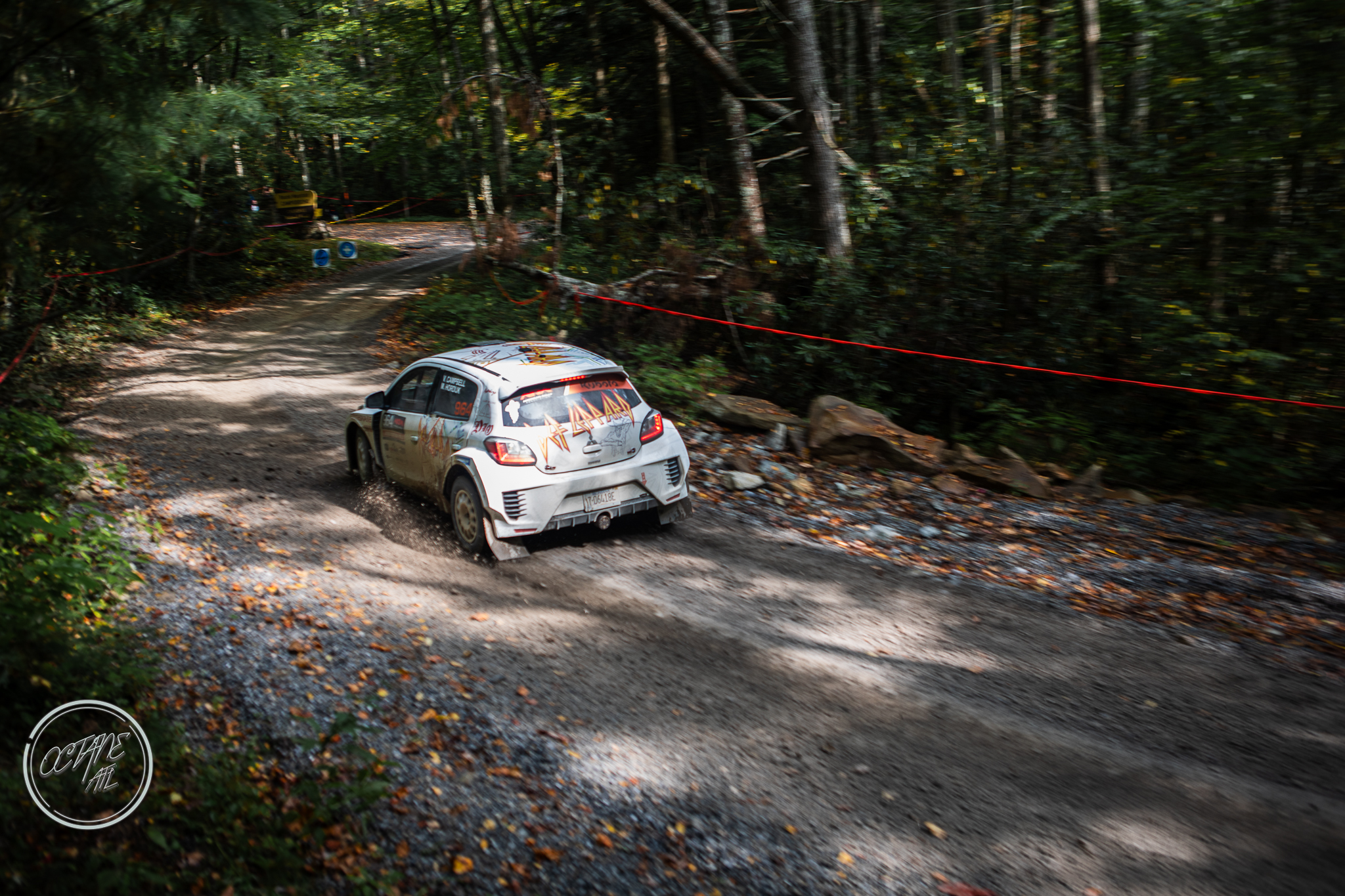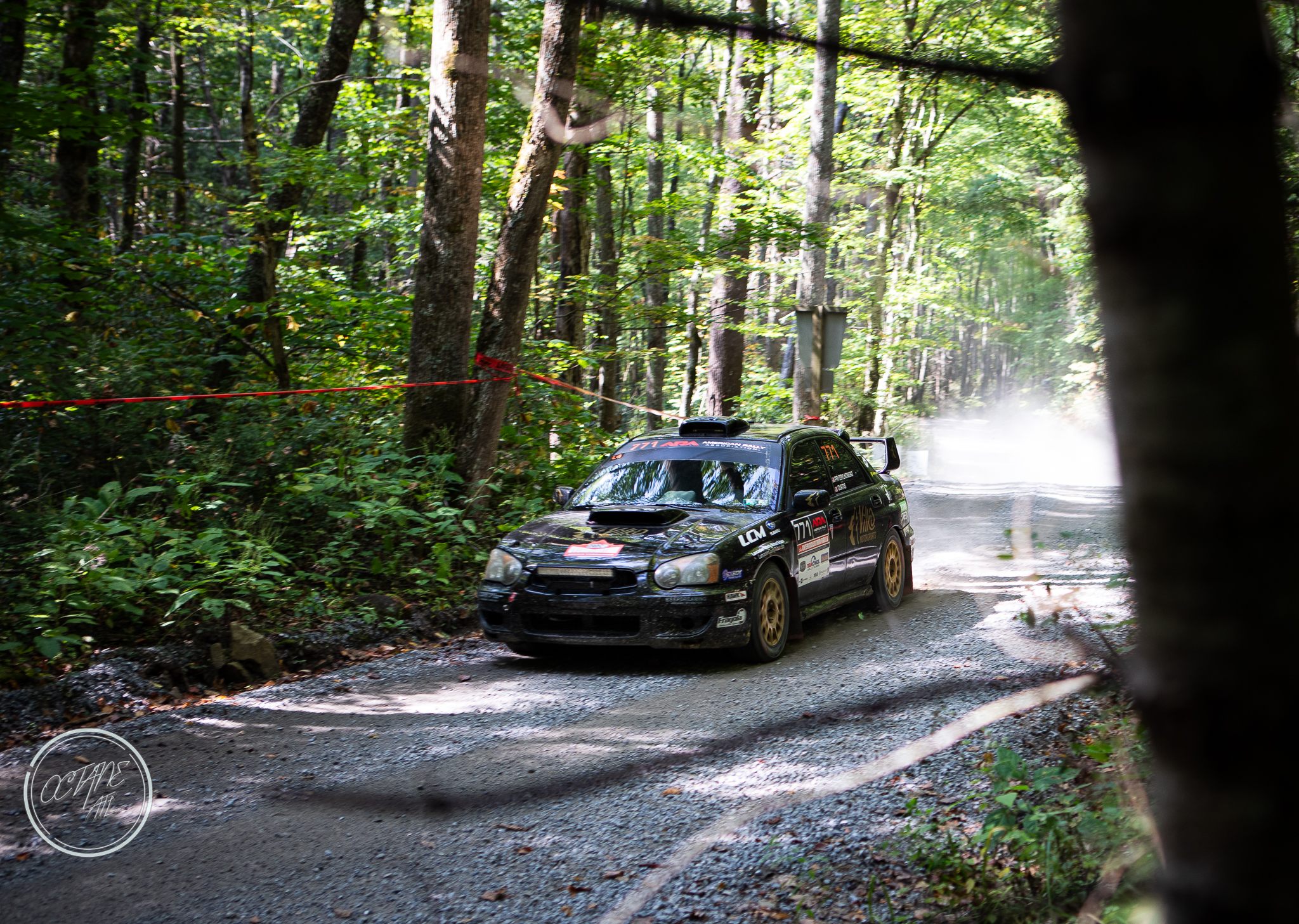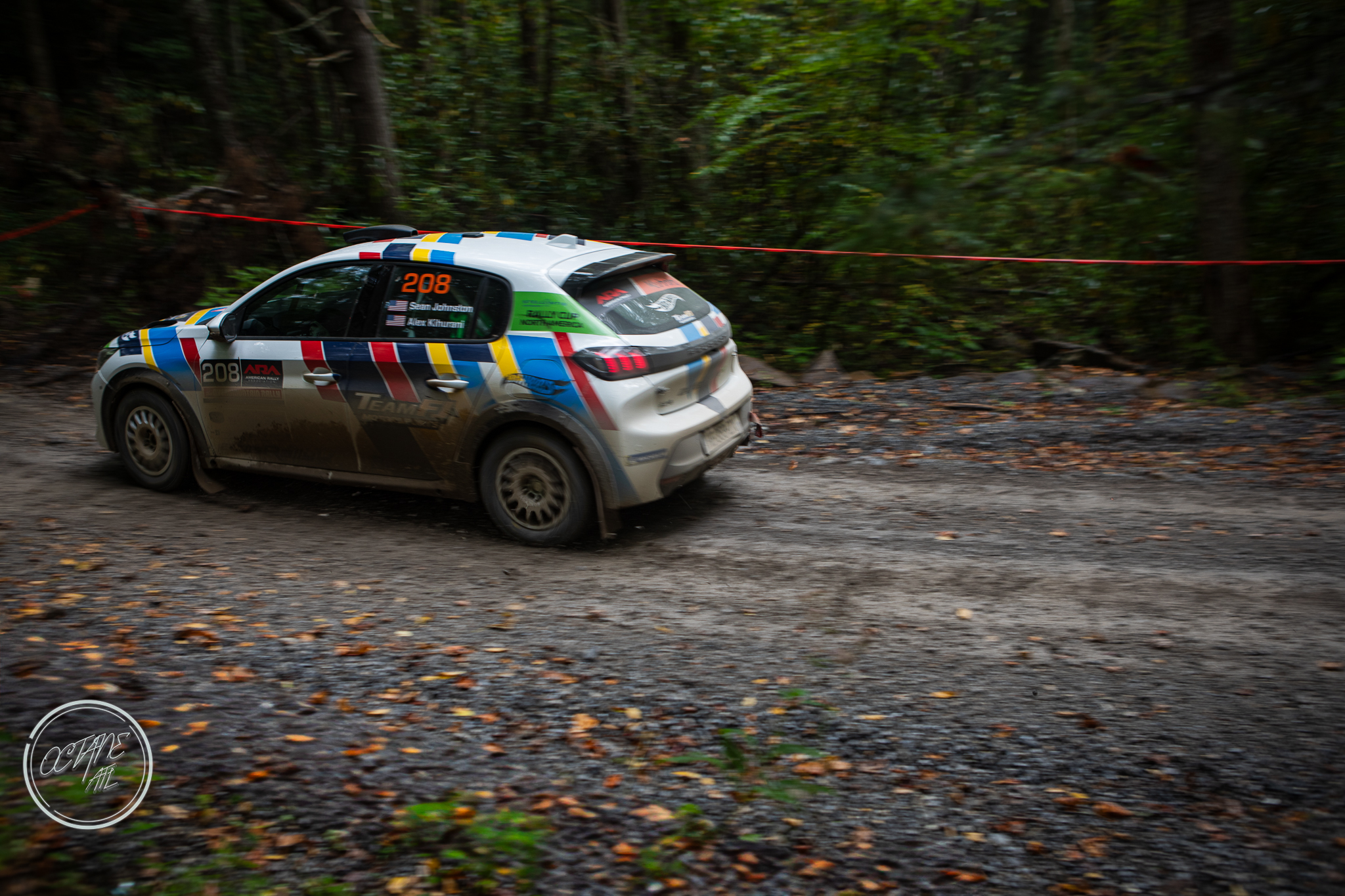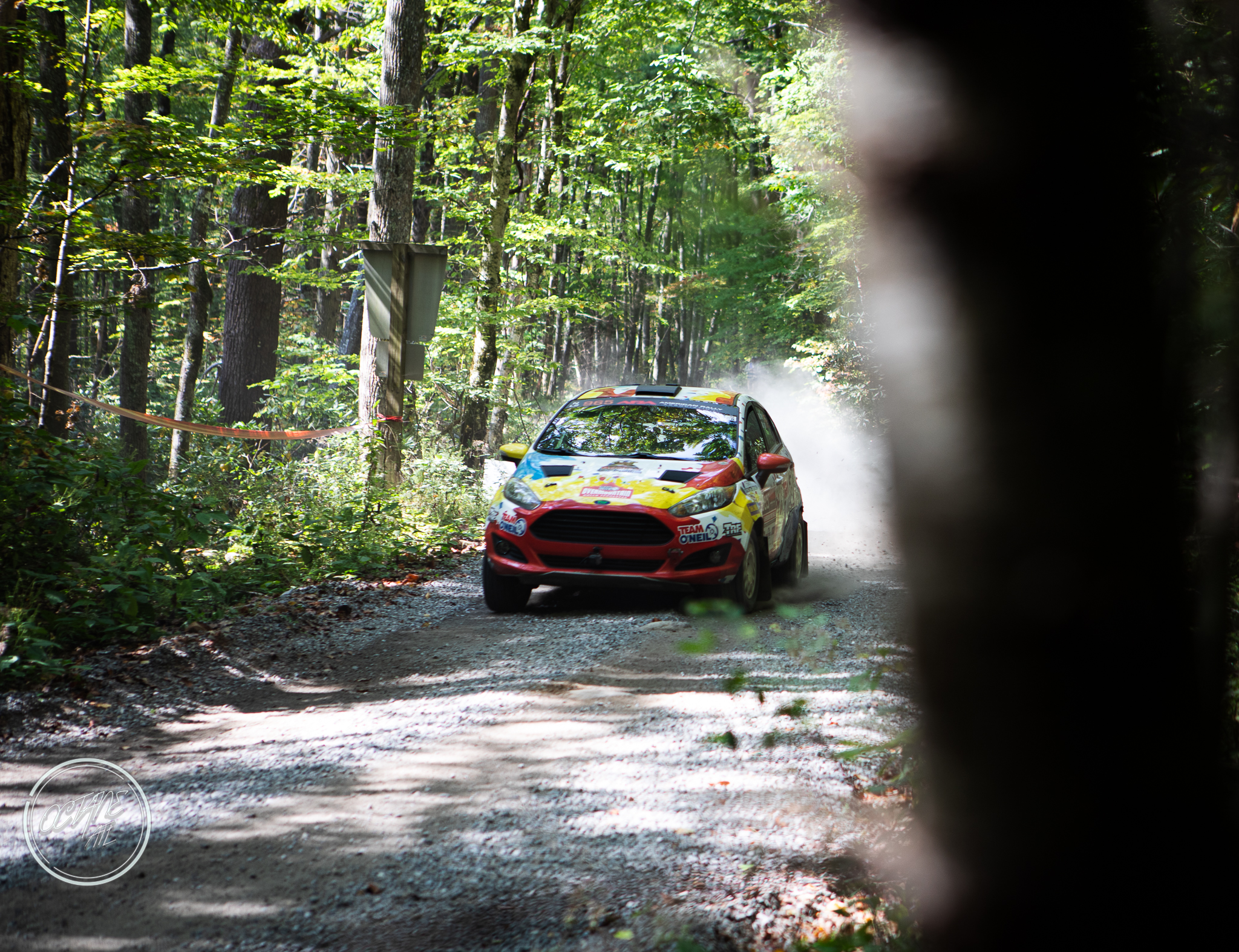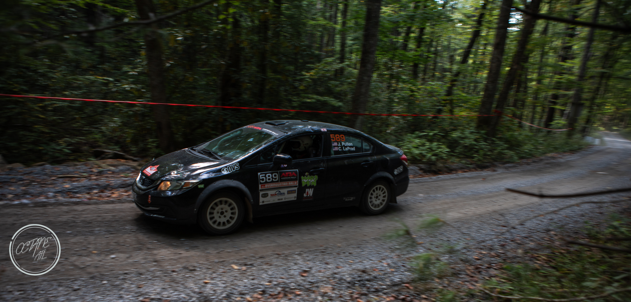 My spot Sunday was a bit easier to get great shots from, and the captain of the spectator zone had made a specific area just for media for which I was grateful, even if my shins toted home some new bruises from gravel being kicked up by a few competitors. The Sunday viewing spaces were also captive, but we were at a campground within the forest which had camp toilets, which was a nicety I was grateful for. There were only 2 passes at our location scheduled and the end of the first had 3 cars which were escorted out at travel pace due to an unhappy local at the finish who wanted to pass through despite the road being closed. The stages saw some carnage and, much like Saturday, the number of cars dwindled between passes of our stage. During the service break it began to rain in patches along the stages; some, like our area, seeing a little more than a drizzle while others saw full out downpours causing rapidly changing conditions to battle not just for competitors but also for the media crews as well. It was obvious how much muddier other stages were by the conditions of the cars as they passed by, some looking like they had attempted to drive through endless mud puddles and all coated in gravel dust and dirt as they dried out. Due to work schedules and a lengthy drive home, we didn’t stay to capture the podiums and end of the rally festivities, but I certainly know for next time to make time for this.