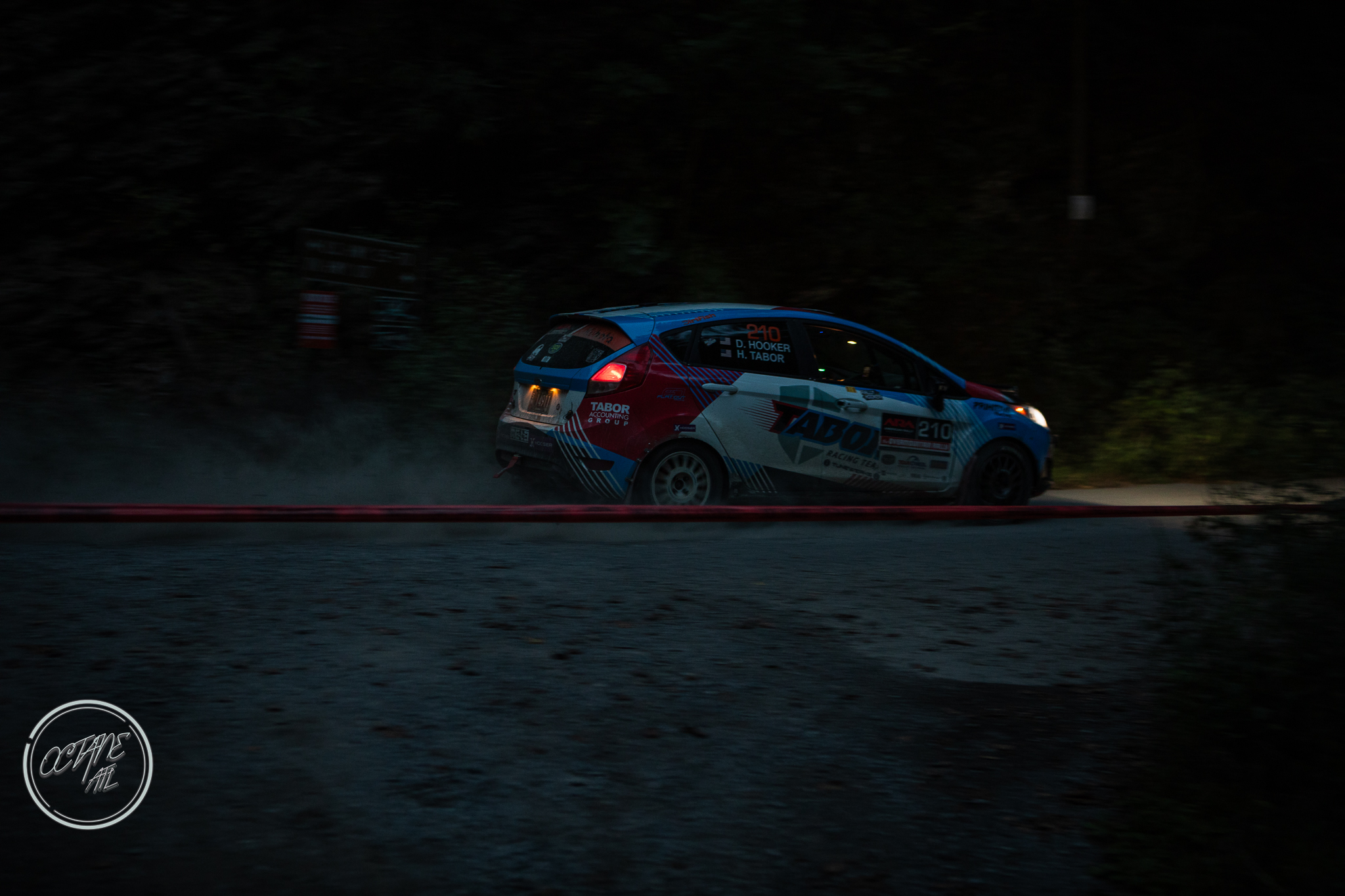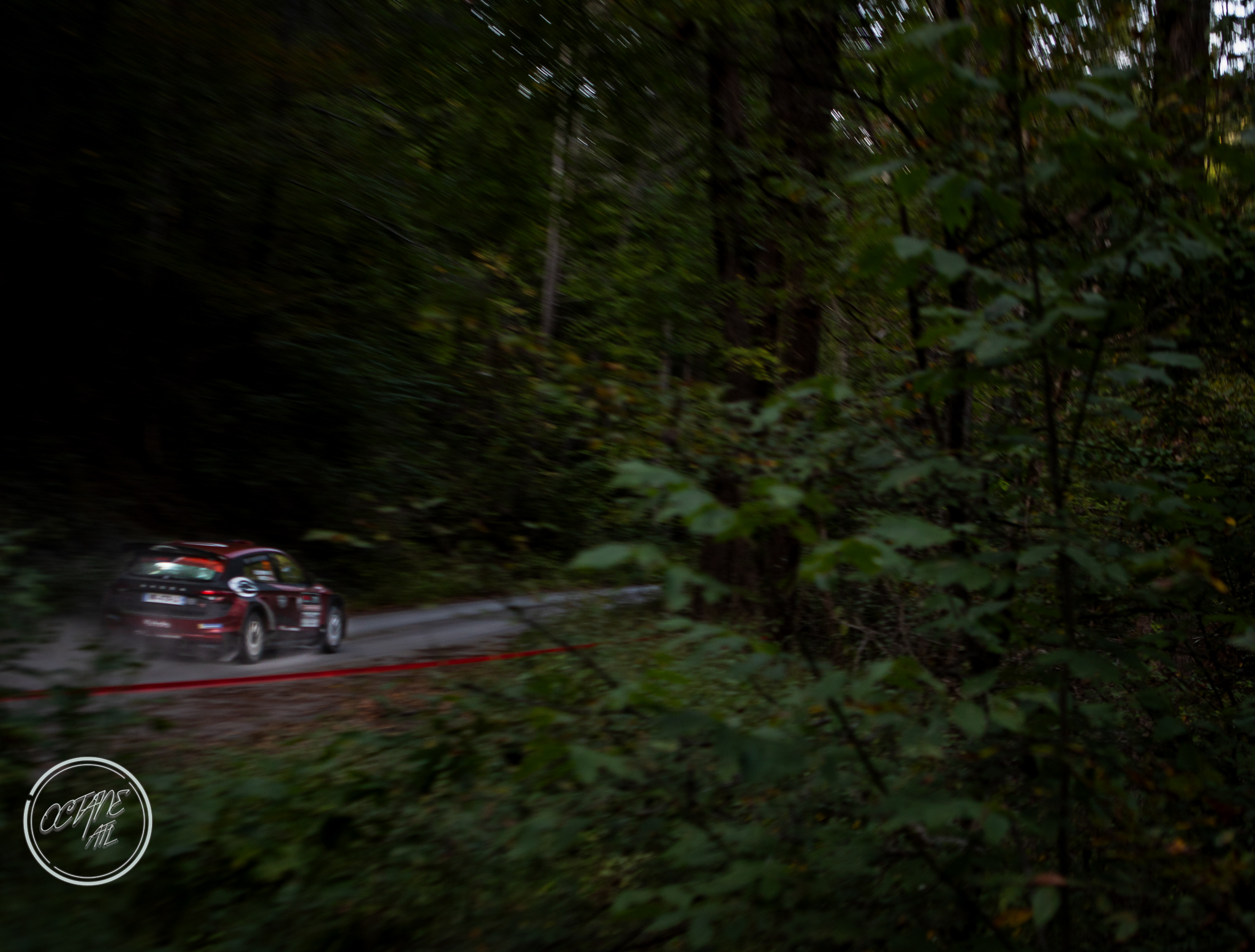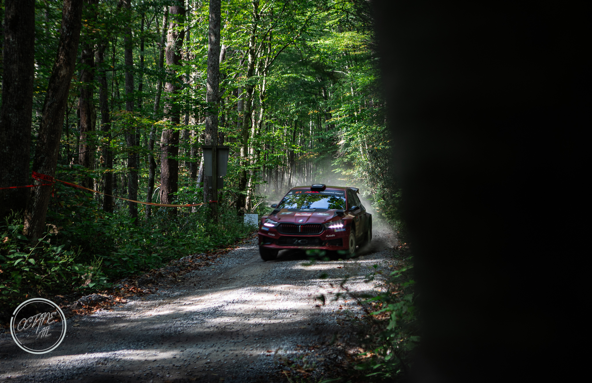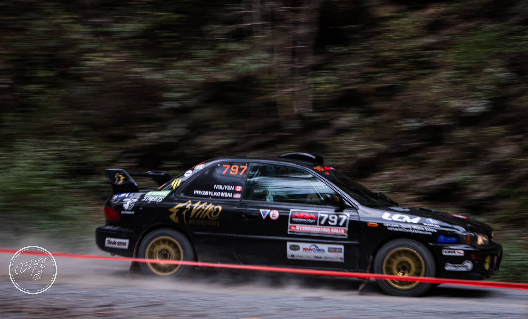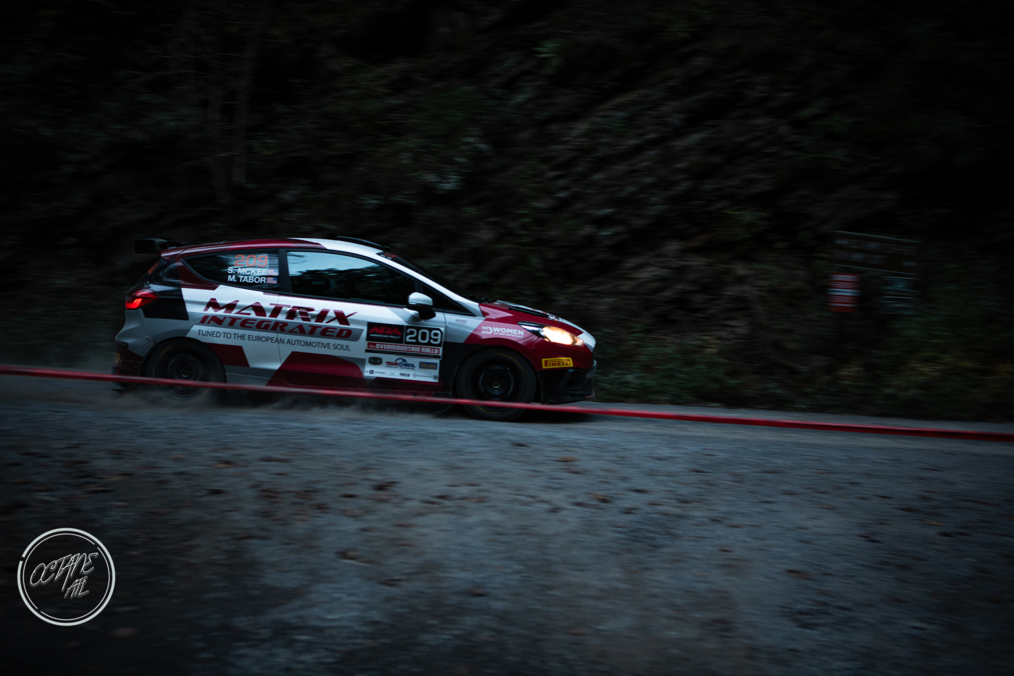 My spot Sunday was a bit easier to get great shots from, and the captain of the spectator zone had made a specific area just for media for which I was grateful, even if my shins toted home some new bruises from gravel being kicked up by a few competitors. The Sunday viewing spaces were also captive, but we were at a campground within the forest which had camp toilets, which was a nicety I was grateful for. There were only 2 passes at our location scheduled and the end of the first had 3 cars which were escorted out at travel pace due to an unhappy local at the finish who wanted to pass through despite the road being closed. The stages saw some carnage and, much like Saturday, the number of cars dwindled between passes of our stage. During the service break it began to rain in patches along the stages; some, like our area, seeing a little more than a drizzle while others saw full out downpours causing rapidly changing conditions to battle not just for competitors but also for the media crews as well. It was obvious how much muddier other stages were by the conditions of the cars as they passed by, some looking like they had attempted to drive through endless mud puddles and all coated in gravel dust and dirt as they dried out. Due to work schedules and a lengthy drive home, we didn’t stay to capture the podiums and end of the rally festivities, but I certainly know for next time to make time for this.