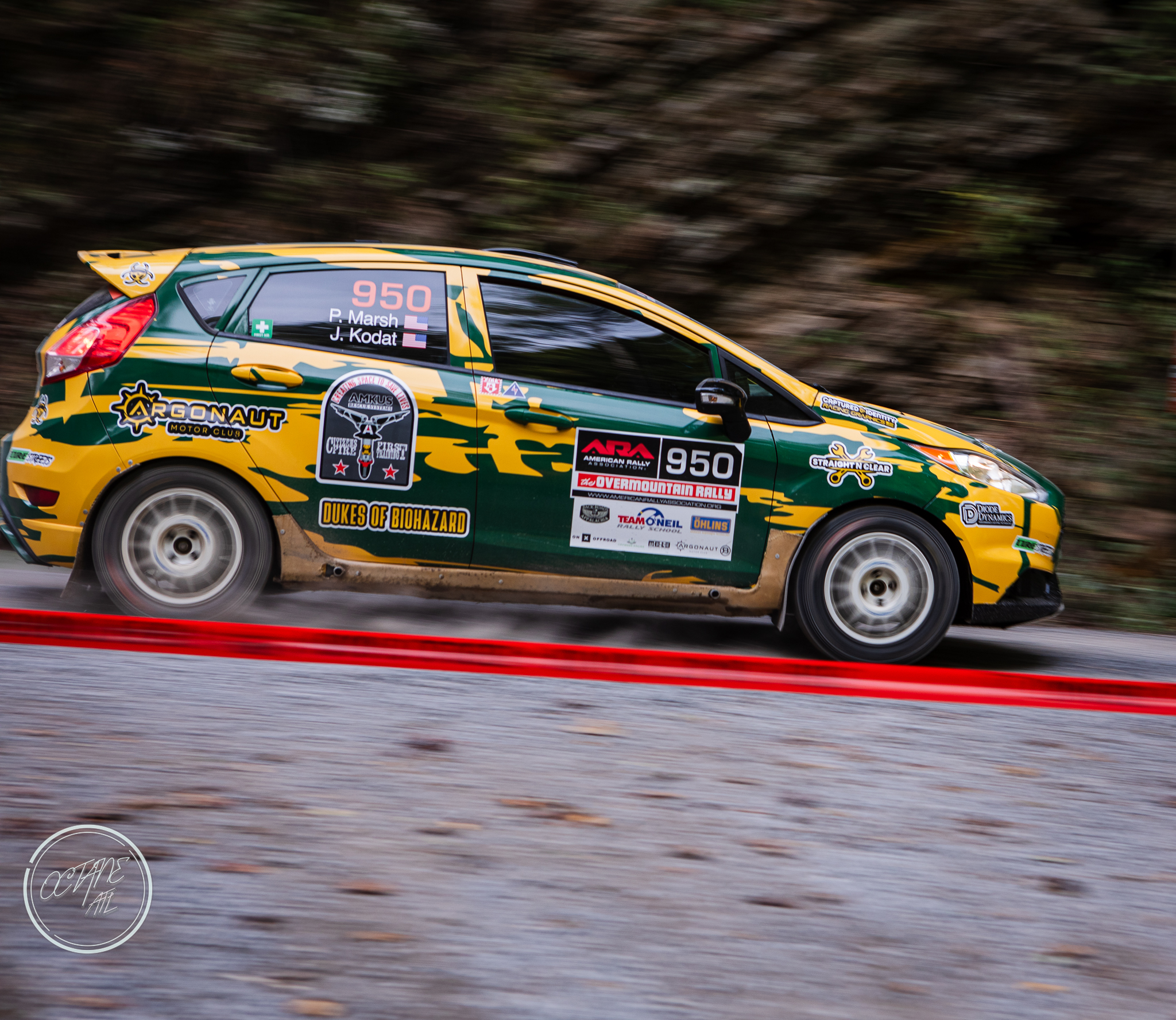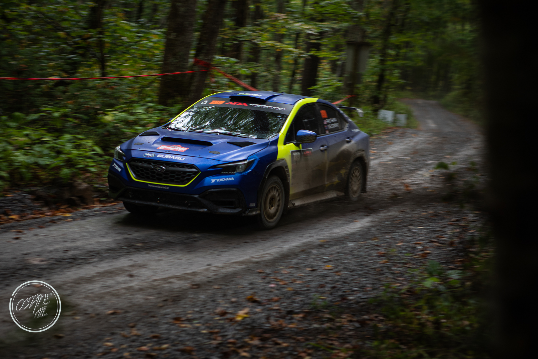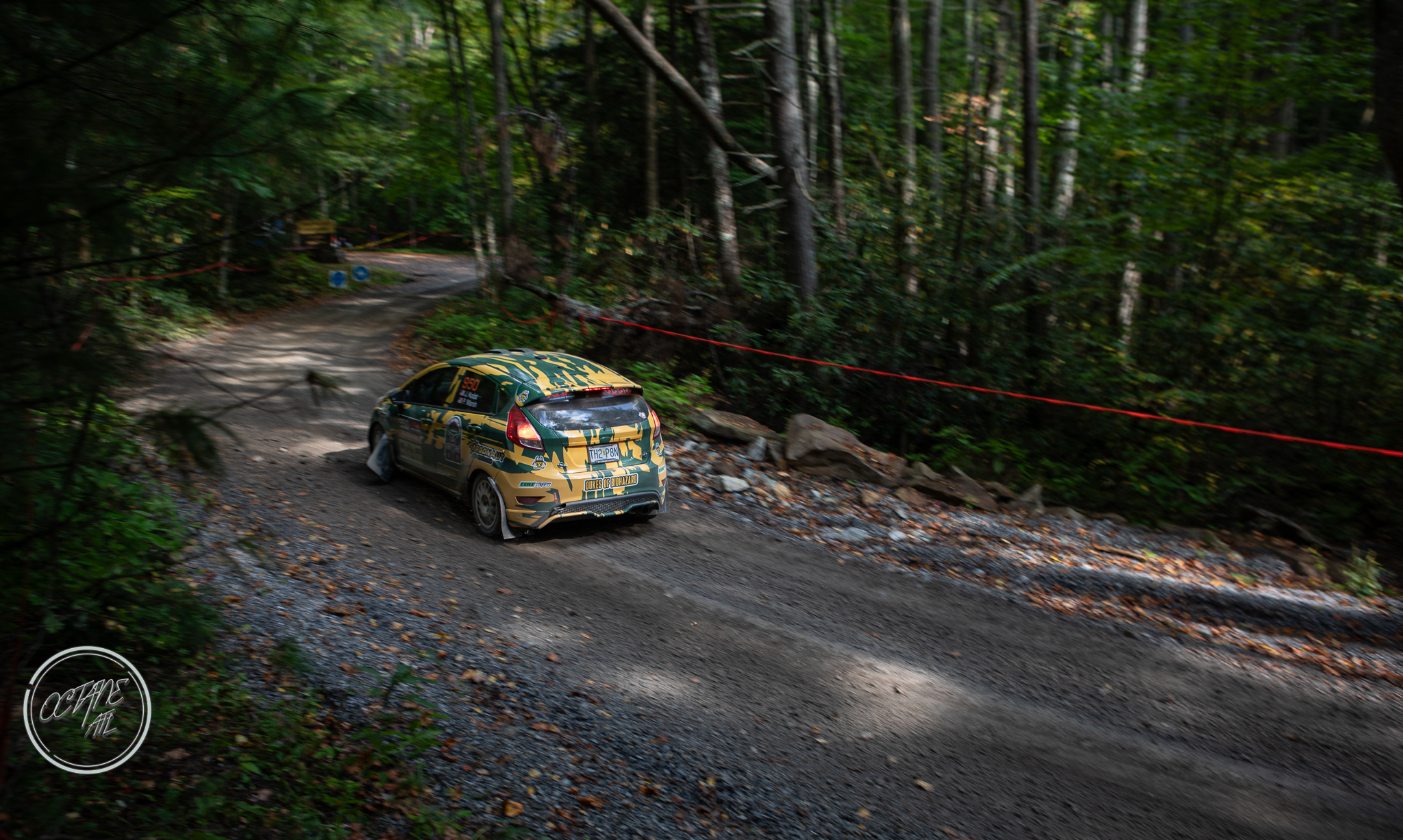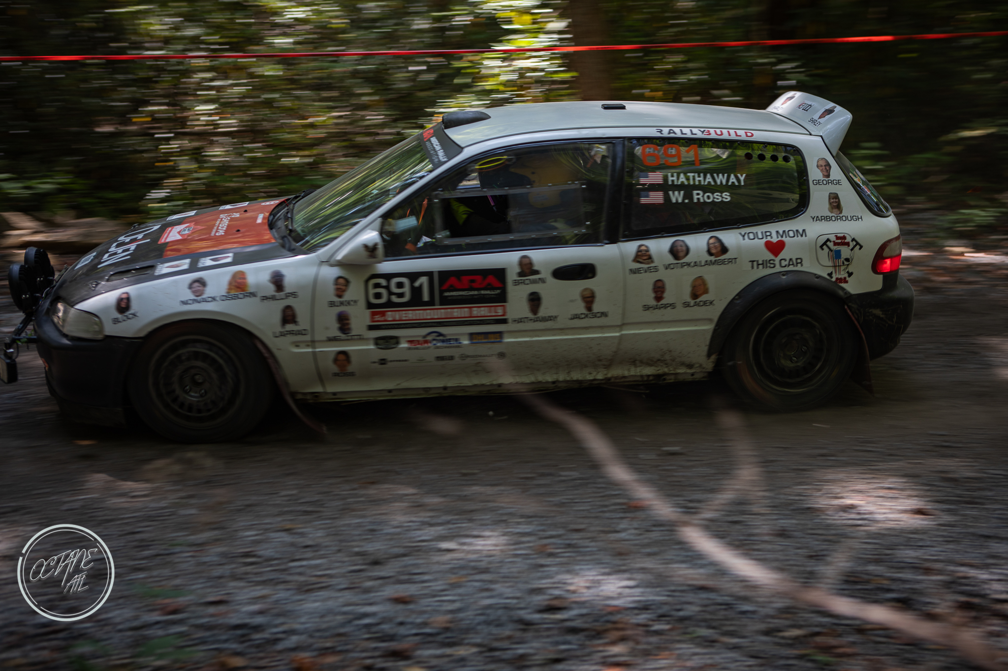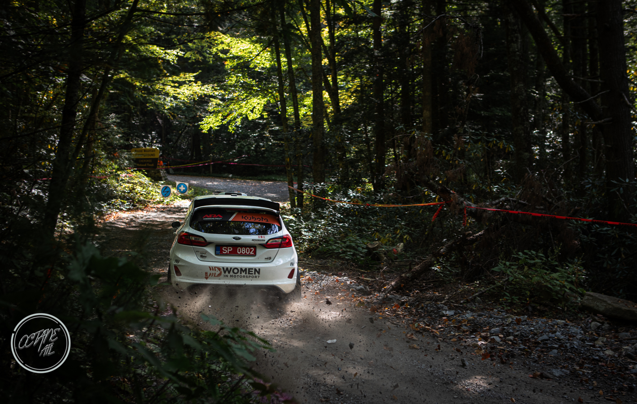 My spot Sunday was a bit easier to get great shots from, and the captain of the spectator zone had made a specific area just for media for which I was grateful, even if my shins toted home some new bruises from gravel being kicked up by a few competitors. The Sunday viewing spaces were also captive, but we were at a campground within the forest which had camp toilets, which was a nicety I was grateful for. There were only 2 passes at our location scheduled and the end of the first had 3 cars which were escorted out at travel pace due to an unhappy local at the finish who wanted to pass through despite the road being closed. The stages saw some carnage and, much like Saturday, the number of cars dwindled between passes of our stage. During the service break it began to rain in patches along the stages; some, like our area, seeing a little more than a drizzle while others saw full out downpours causing rapidly changing conditions to battle not just for competitors but also for the media crews as well. It was obvious how much muddier other stages were by the conditions of the cars as they passed by, some looking like they had attempted to drive through endless mud puddles and all coated in gravel dust and dirt as they dried out. Due to work schedules and a lengthy drive home, we didn’t stay to capture the podiums and end of the rally festivities, but I certainly know for next time to make time for this.