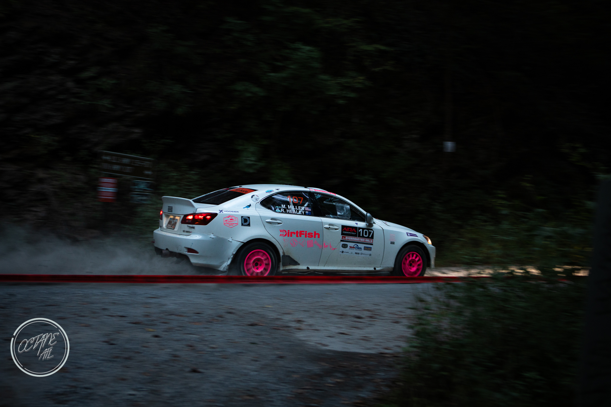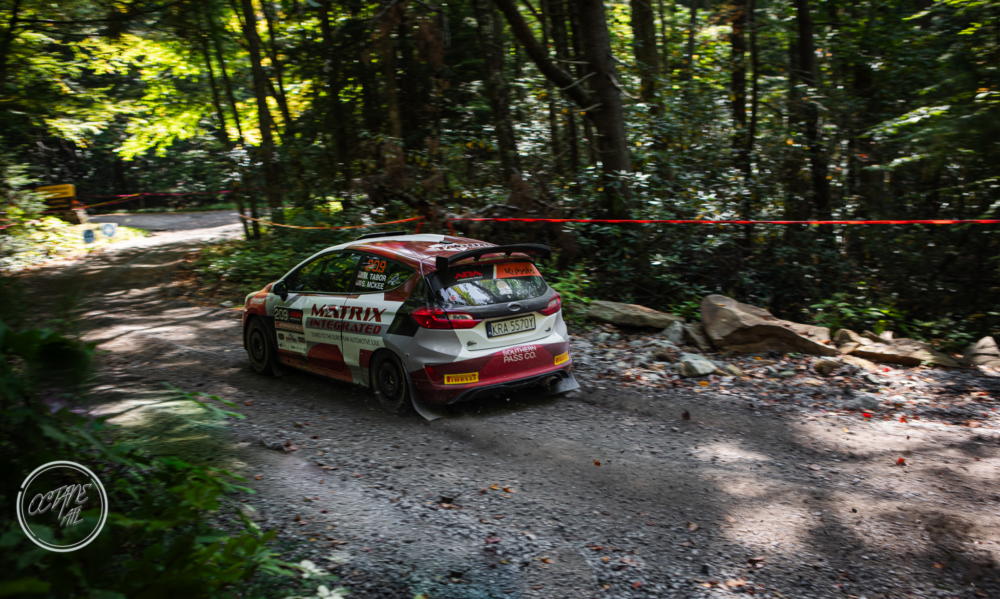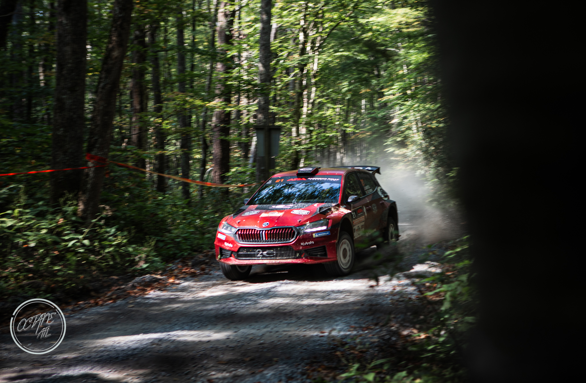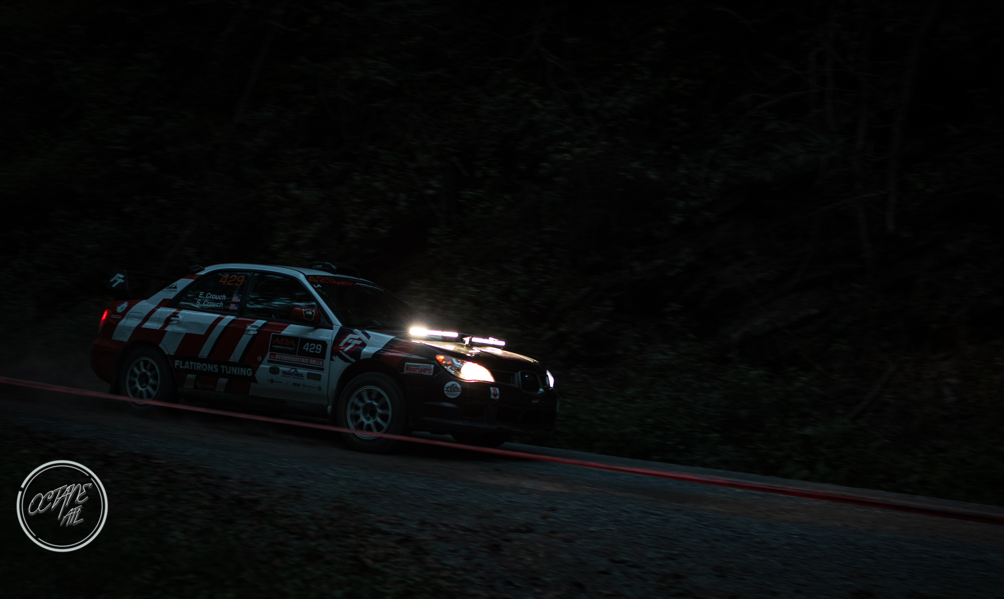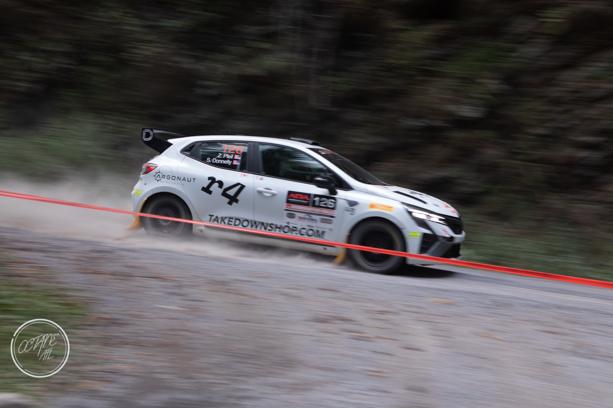 My spot Sunday was a bit easier to get great shots from, and the captain of the spectator zone had made a specific area just for media for which I was grateful, even if my shins toted home some new bruises from gravel being kicked up by a few competitors. The Sunday viewing spaces were also captive, but we were at a campground within the forest which had camp toilets, which was a nicety I was grateful for. There were only 2 passes at our location scheduled and the end of the first had 3 cars which were escorted out at travel pace due to an unhappy local at the finish who wanted to pass through despite the road being closed. The stages saw some carnage and, much like Saturday, the number of cars dwindled between passes of our stage. During the service break it began to rain in patches along the stages; some, like our area, seeing a little more than a drizzle while others saw full out downpours causing rapidly changing conditions to battle not just for competitors but also for the media crews as well. It was obvious how much muddier other stages were by the conditions of the cars as they passed by, some looking like they had attempted to drive through endless mud puddles and all coated in gravel dust and dirt as they dried out. Due to work schedules and a lengthy drive home, we didn’t stay to capture the podiums and end of the rally festivities, but I certainly know for next time to make time for this.