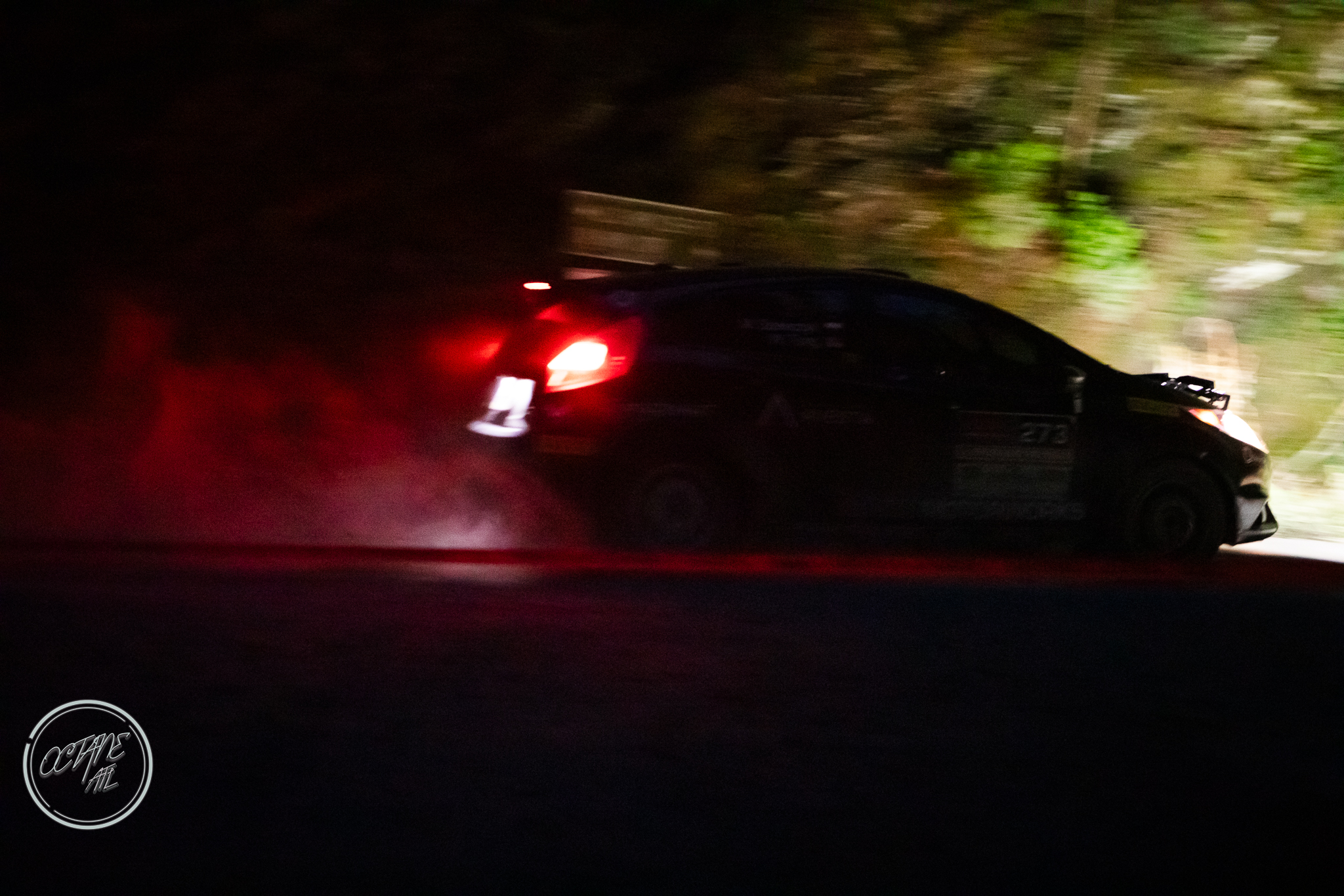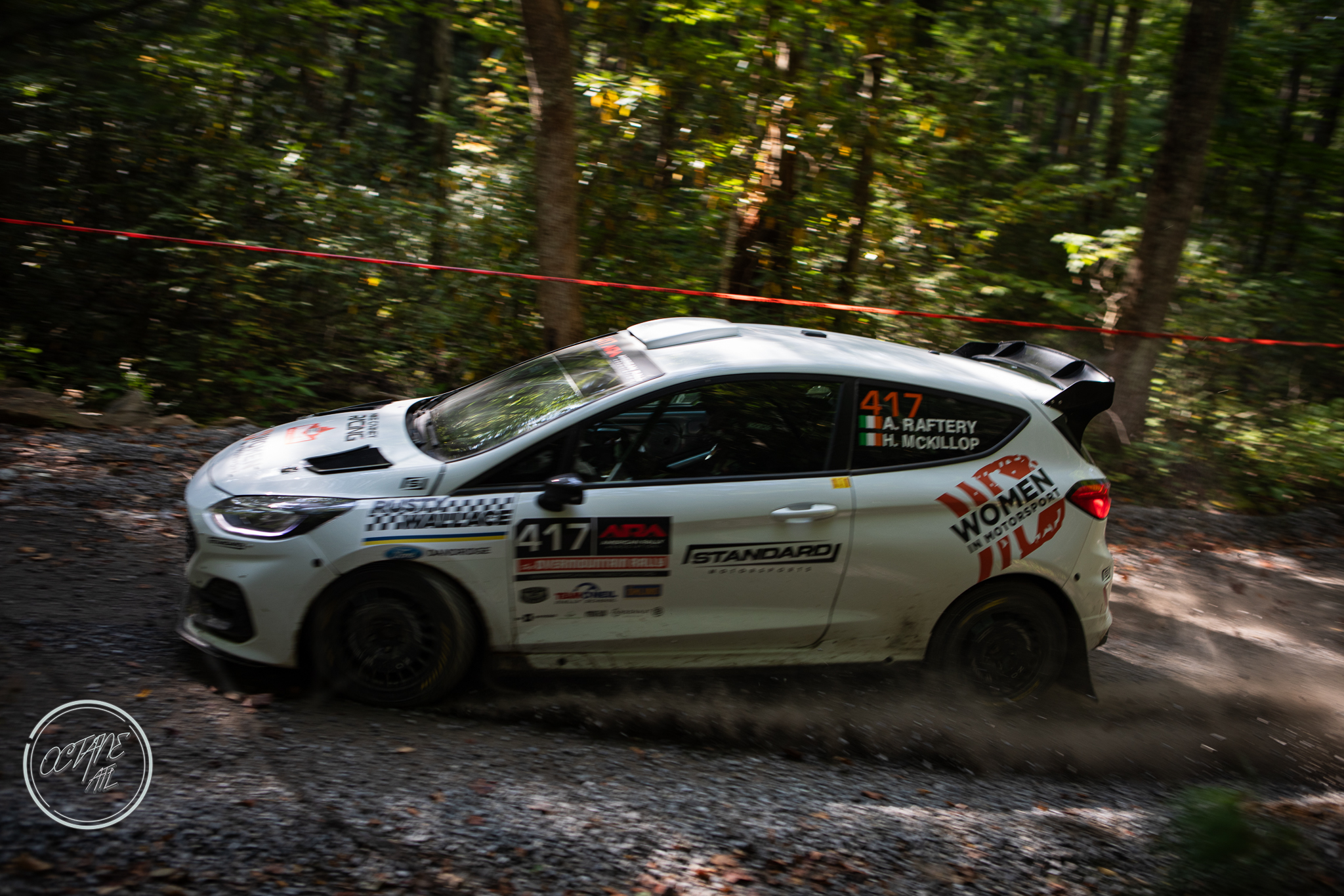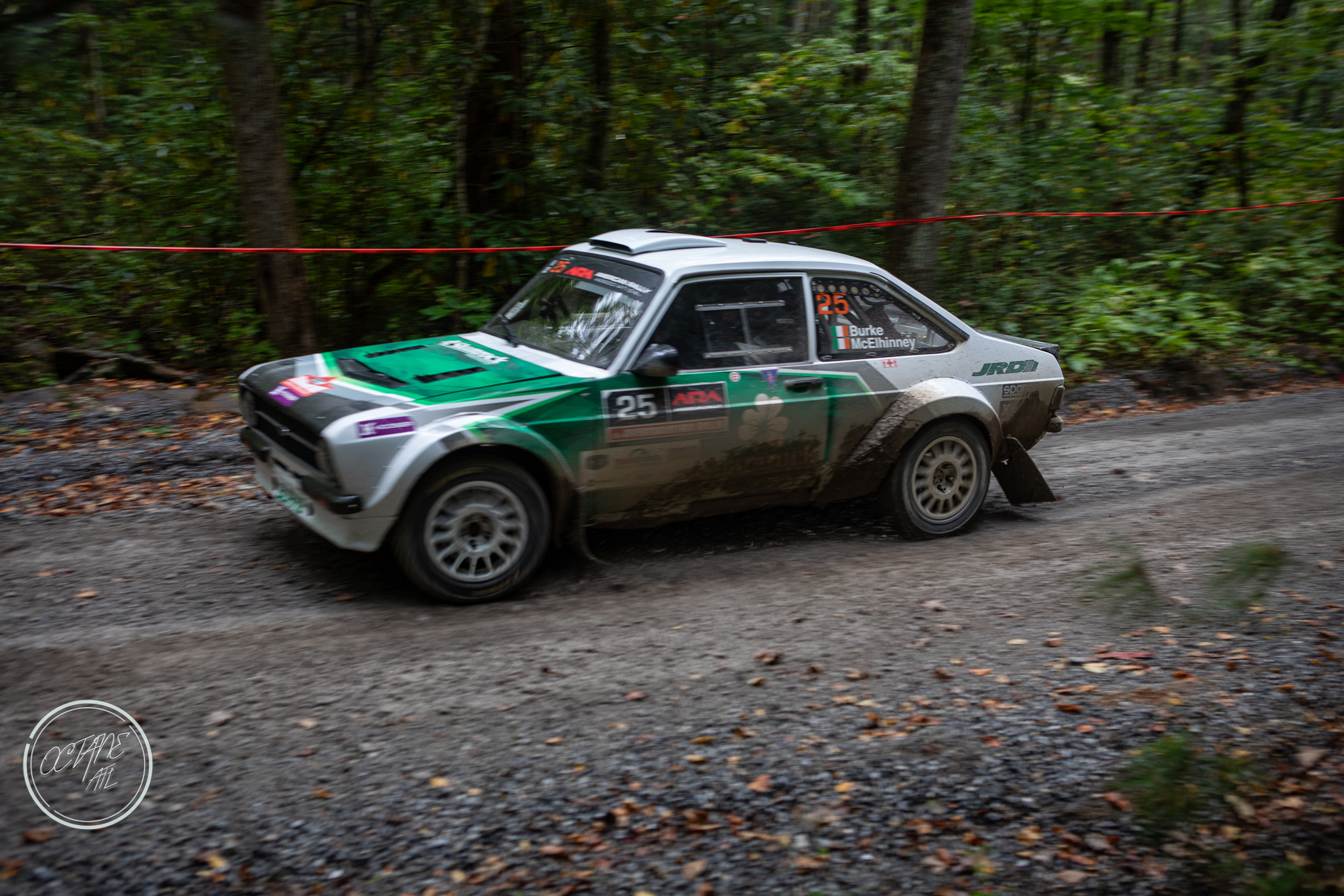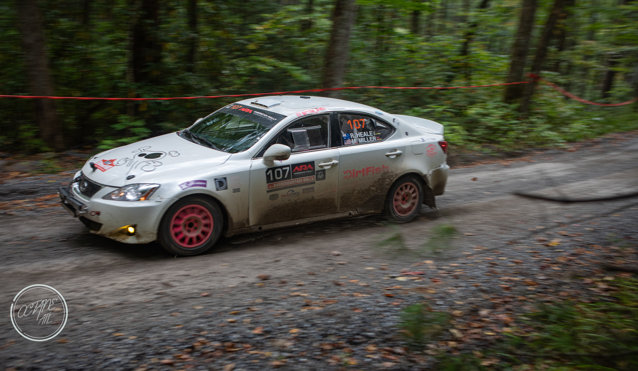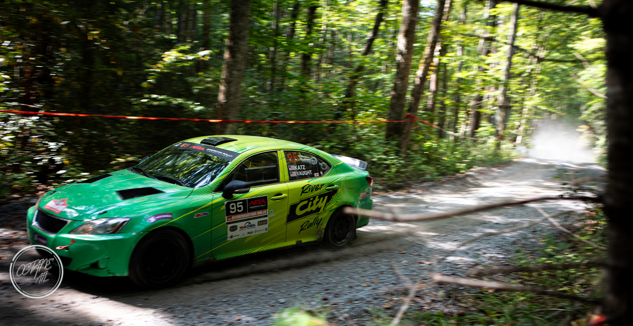 My spot Sunday was a bit easier to get great shots from, and the captain of the spectator zone had made a specific area just for media for which I was grateful, even if my shins toted home some new bruises from gravel being kicked up by a few competitors. The Sunday viewing spaces were also captive, but we were at a campground within the forest which had camp toilets, which was a nicety I was grateful for. There were only 2 passes at our location scheduled and the end of the first had 3 cars which were escorted out at travel pace due to an unhappy local at the finish who wanted to pass through despite the road being closed. The stages saw some carnage and, much like Saturday, the number of cars dwindled between passes of our stage. During the service break it began to rain in patches along the stages; some, like our area, seeing a little more than a drizzle while others saw full out downpours causing rapidly changing conditions to battle not just for competitors but also for the media crews as well. It was obvious how much muddier other stages were by the conditions of the cars as they passed by, some looking like they had attempted to drive through endless mud puddles and all coated in gravel dust and dirt as they dried out. Due to work schedules and a lengthy drive home, we didn’t stay to capture the podiums and end of the rally festivities, but I certainly know for next time to make time for this.