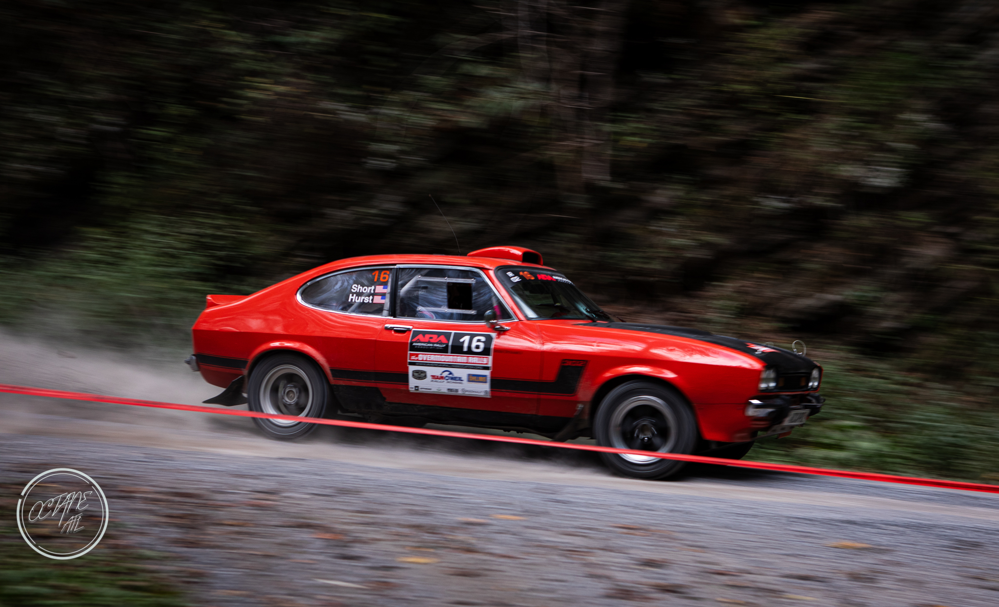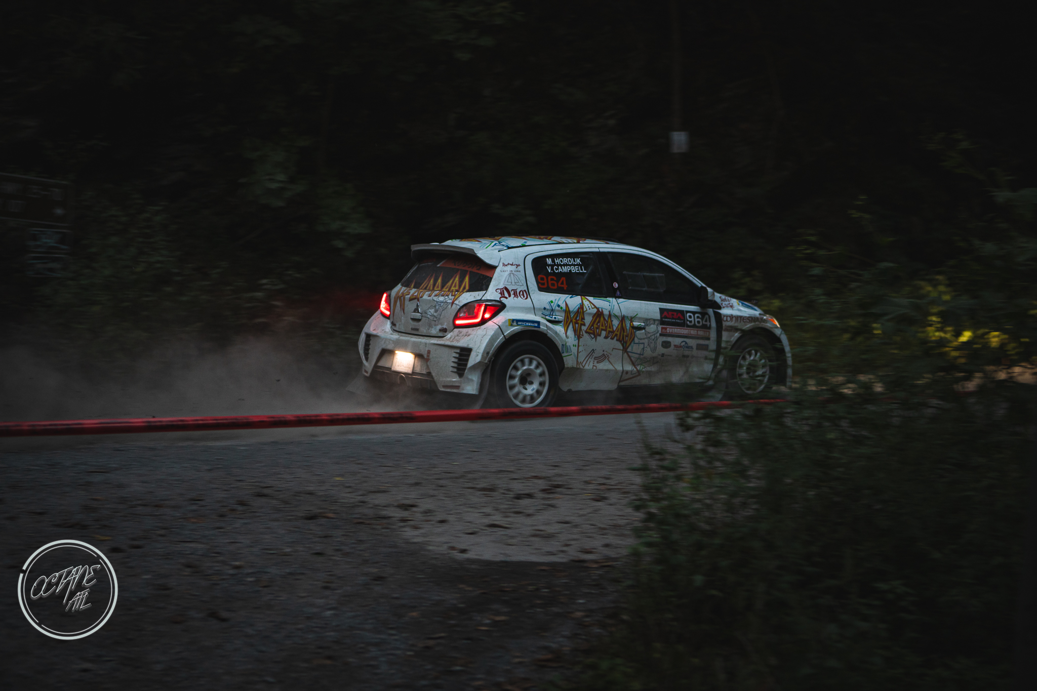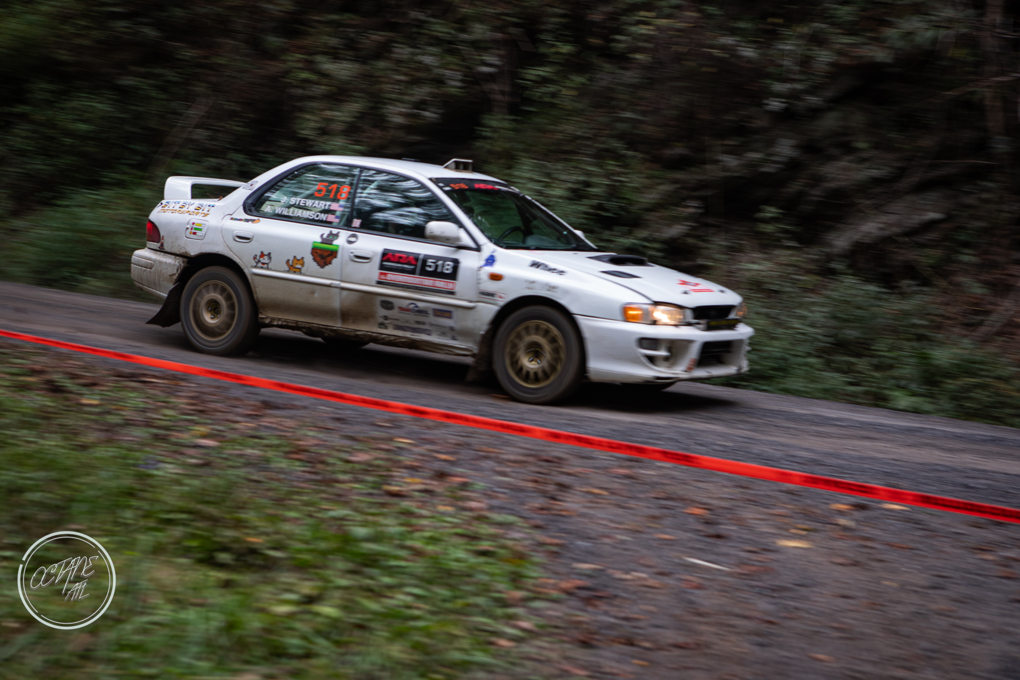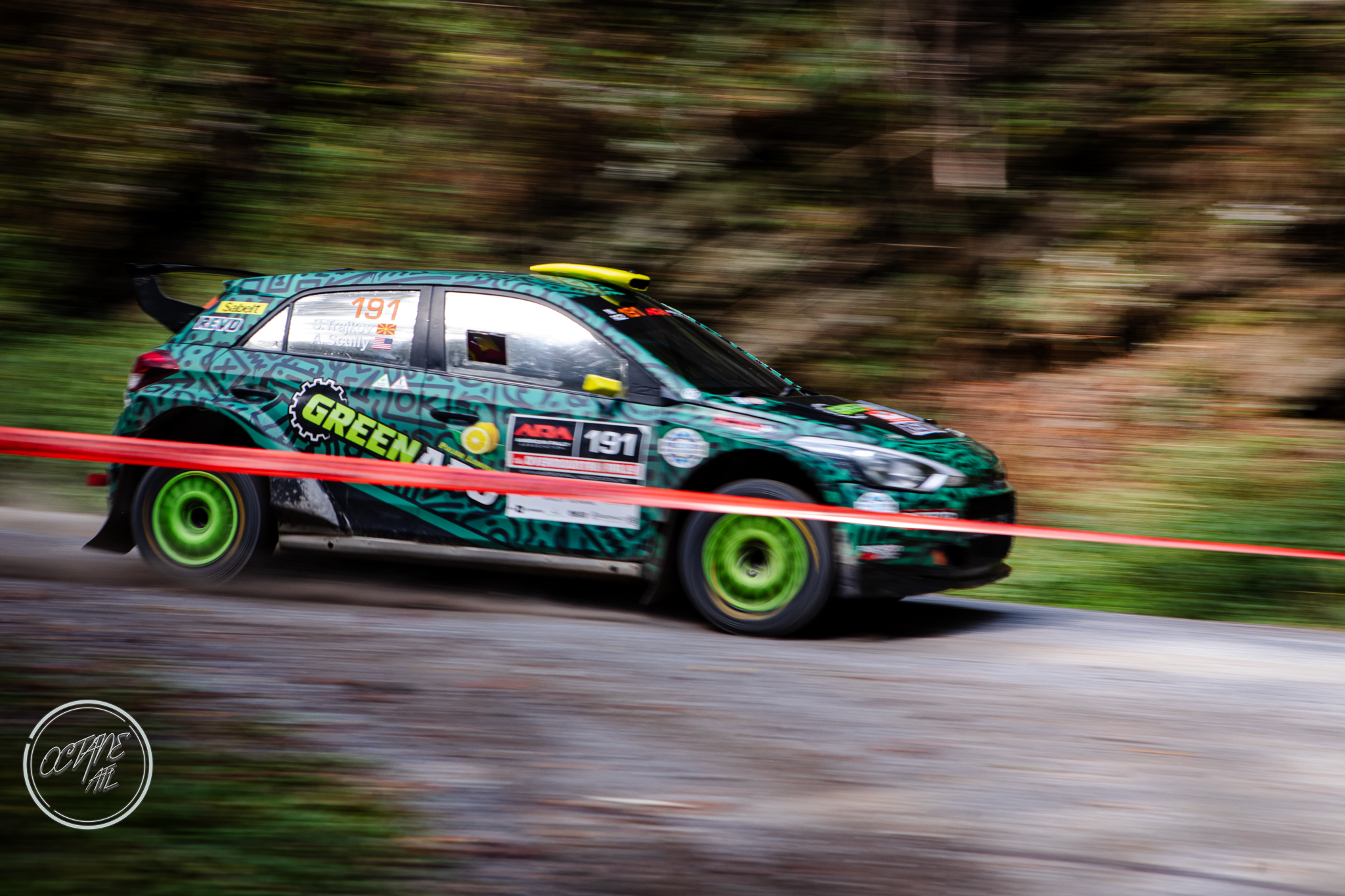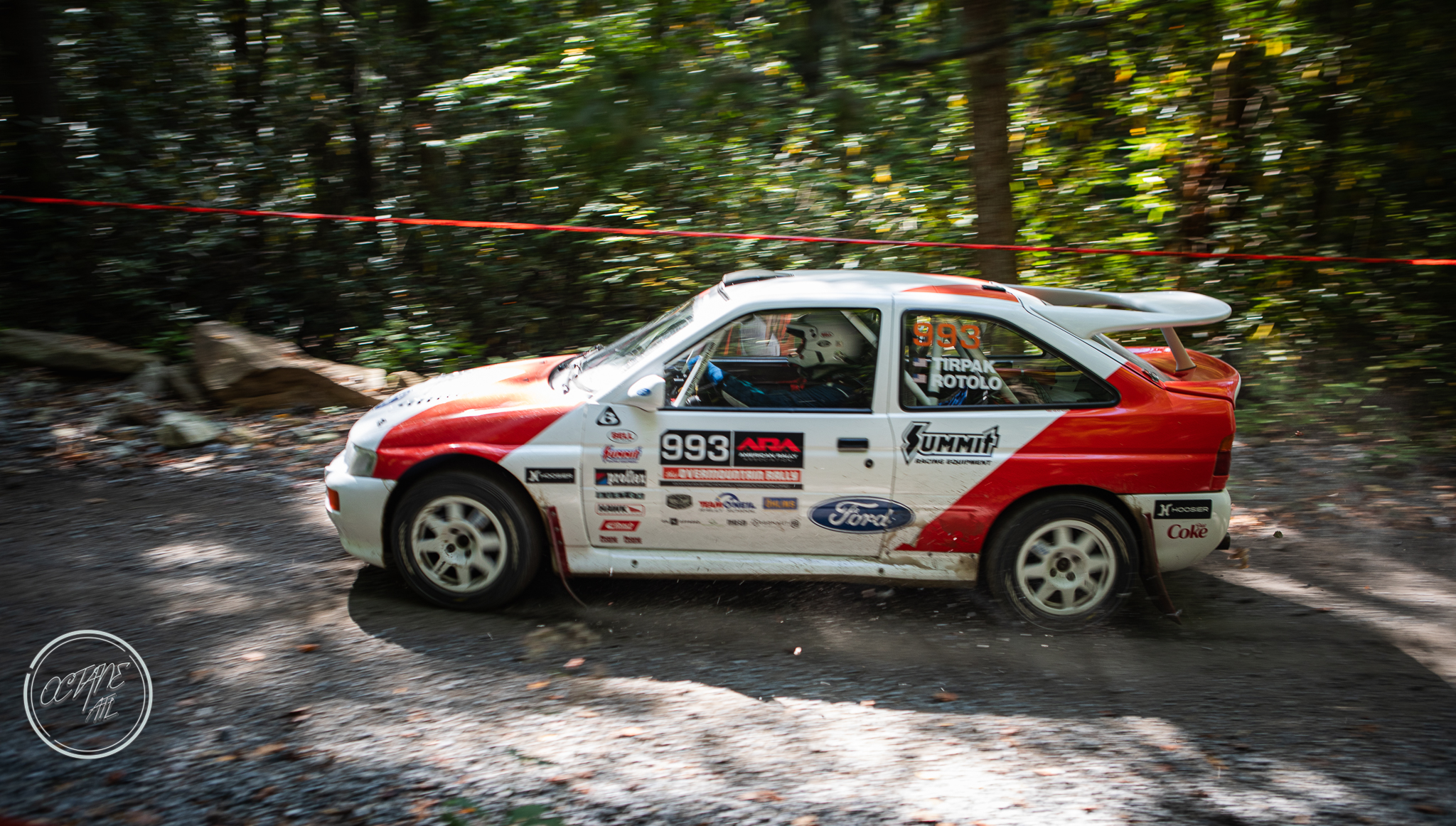 My spot Sunday was a bit easier to get great shots from, and the captain of the spectator zone had made a specific area just for media for which I was grateful, even if my shins toted home some new bruises from gravel being kicked up by a few competitors. The Sunday viewing spaces were also captive, but we were at a campground within the forest which had camp toilets, which was a nicety I was grateful for. There were only 2 passes at our location scheduled and the end of the first had 3 cars which were escorted out at travel pace due to an unhappy local at the finish who wanted to pass through despite the road being closed. The stages saw some carnage and, much like Saturday, the number of cars dwindled between passes of our stage. During the service break it began to rain in patches along the stages; some, like our area, seeing a little more than a drizzle while others saw full out downpours causing rapidly changing conditions to battle not just for competitors but also for the media crews as well. It was obvious how much muddier other stages were by the conditions of the cars as they passed by, some looking like they had attempted to drive through endless mud puddles and all coated in gravel dust and dirt as they dried out. Due to work schedules and a lengthy drive home, we didn’t stay to capture the podiums and end of the rally festivities, but I certainly know for next time to make time for this.