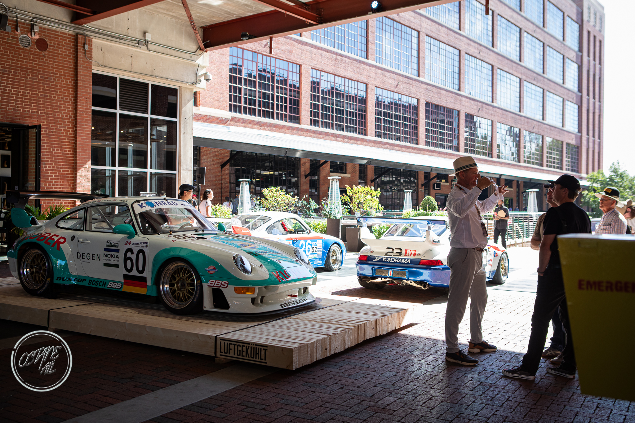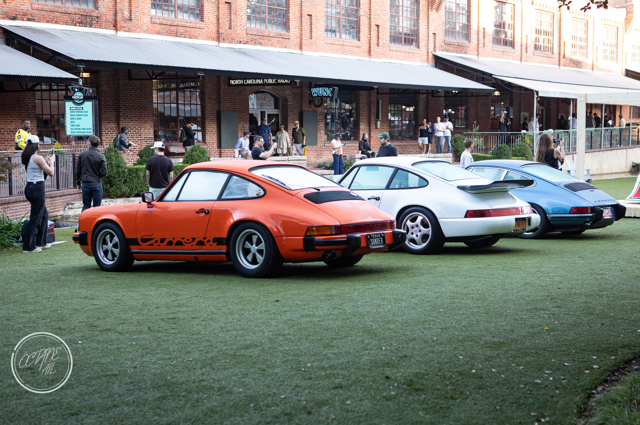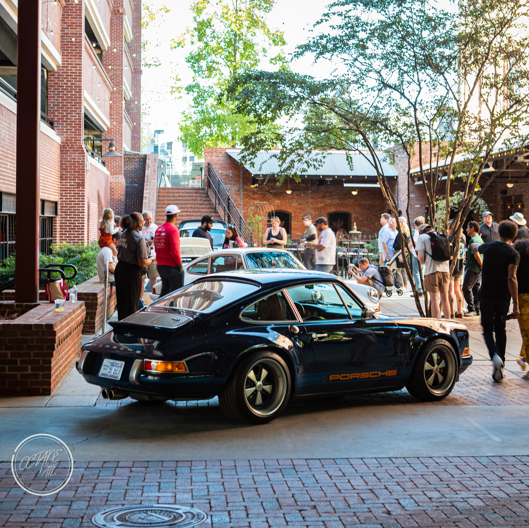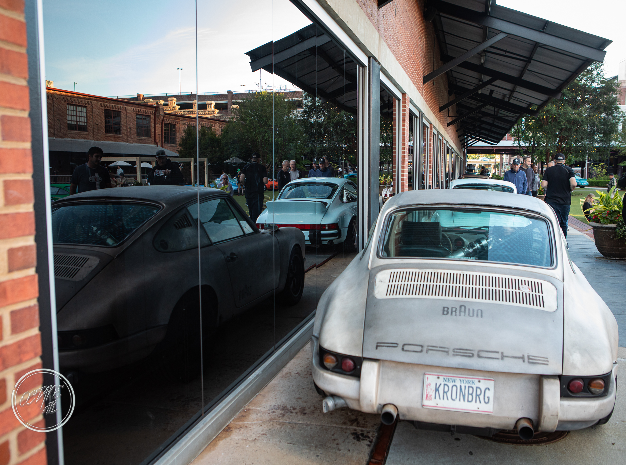 The American Tobacco Campus was the perfect location for this event, providing history of it’s own as well as lovely green spaces, wood floors that creaked with stories of their own and brick walls that felt as if they had stood the test of time and lived to tell the tale. The campus allowed for great use of all of the outdoor spaces with Porsches parked along sidewalks, on turf tucked in among planters, along the water and covering the streets with cars representing every era of air cooled Porsche, including examples from bespoke restomod companies like Gunther Werks and Singer. Moreover, the campus also allowed for some stunning indoor displays with cars nestled in neatly between stairwells, in transition spaces and lobbies of buildings, some with lighting that made it feel as though the cars were sculptures crafted out of marble by masters of bygone eras, displayed for marveling and studying.