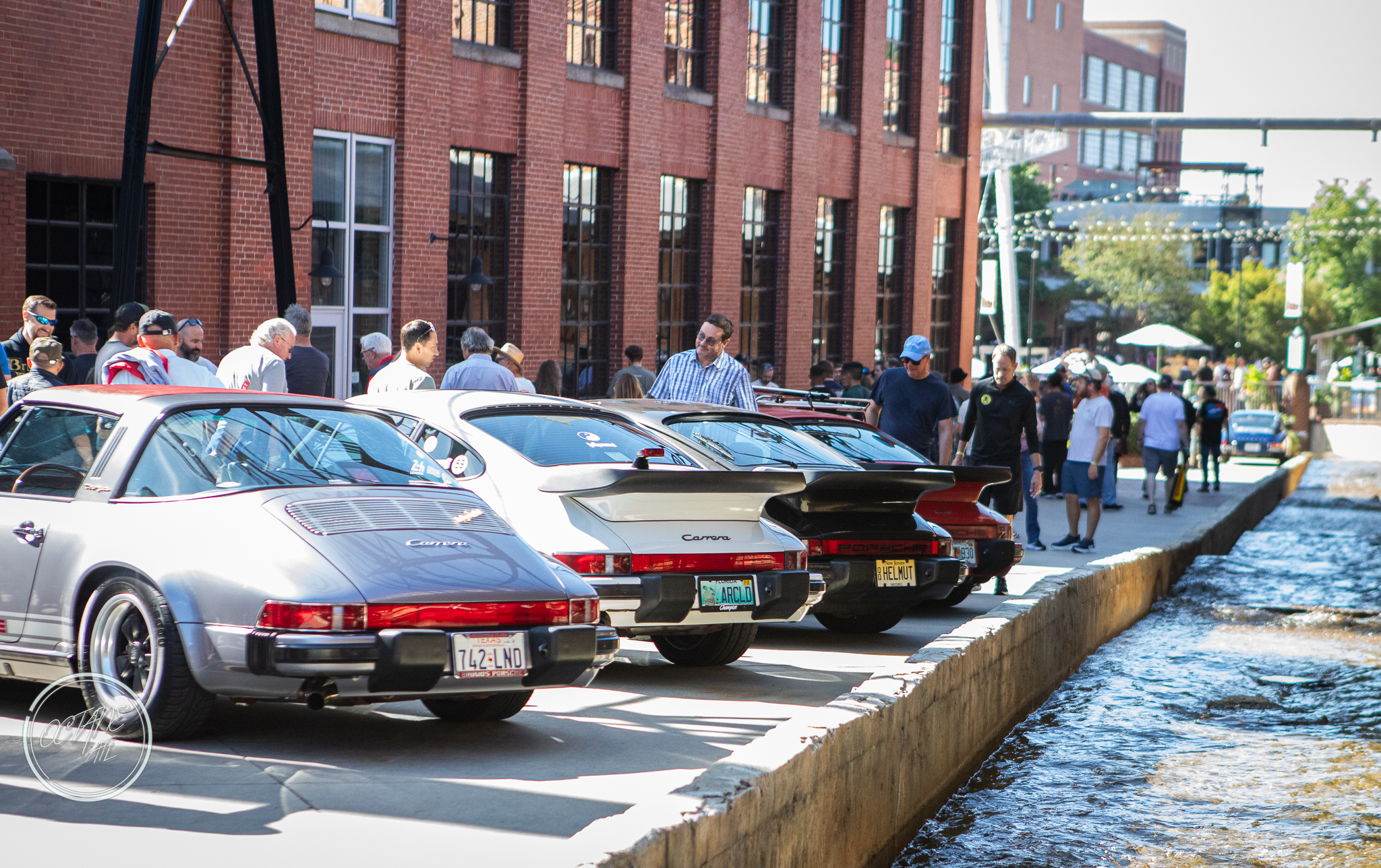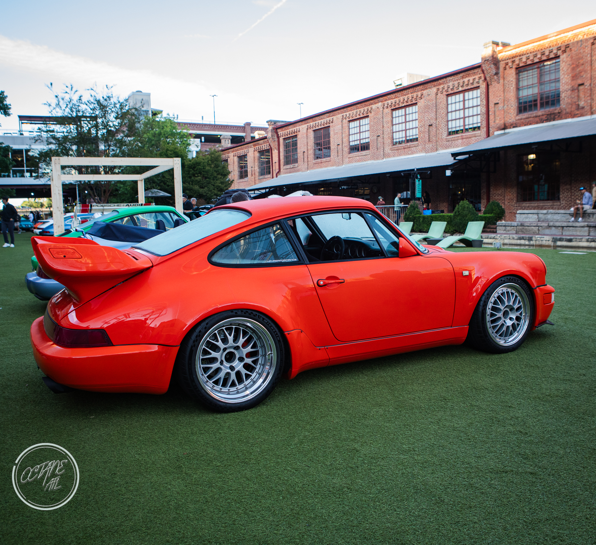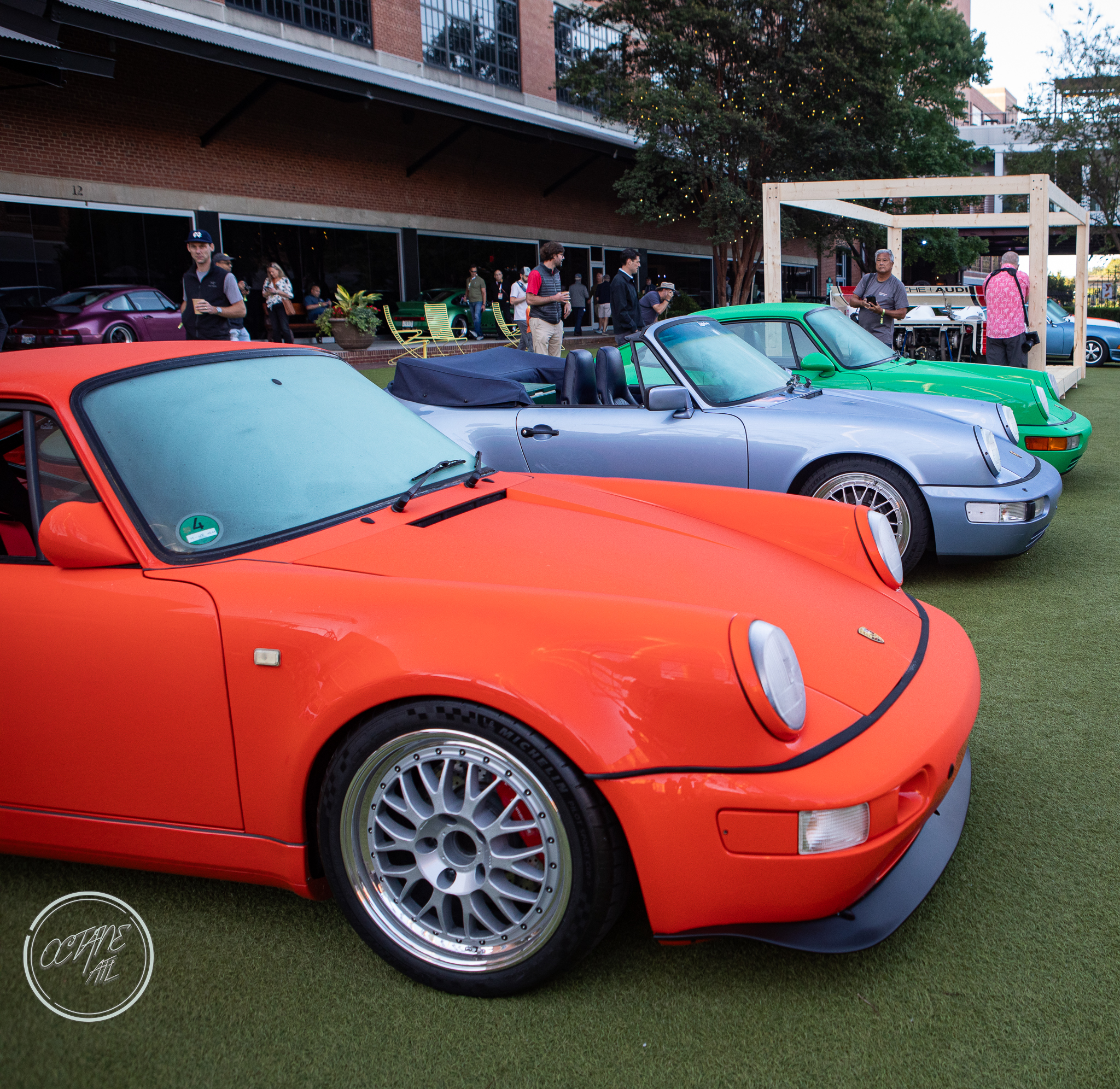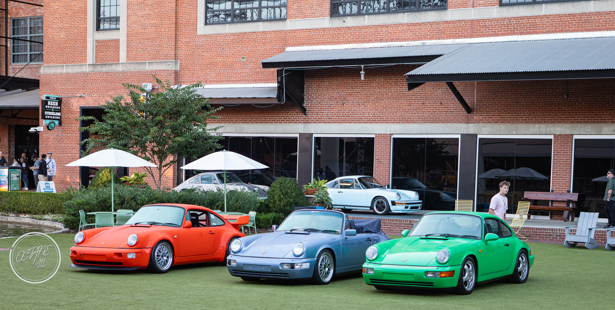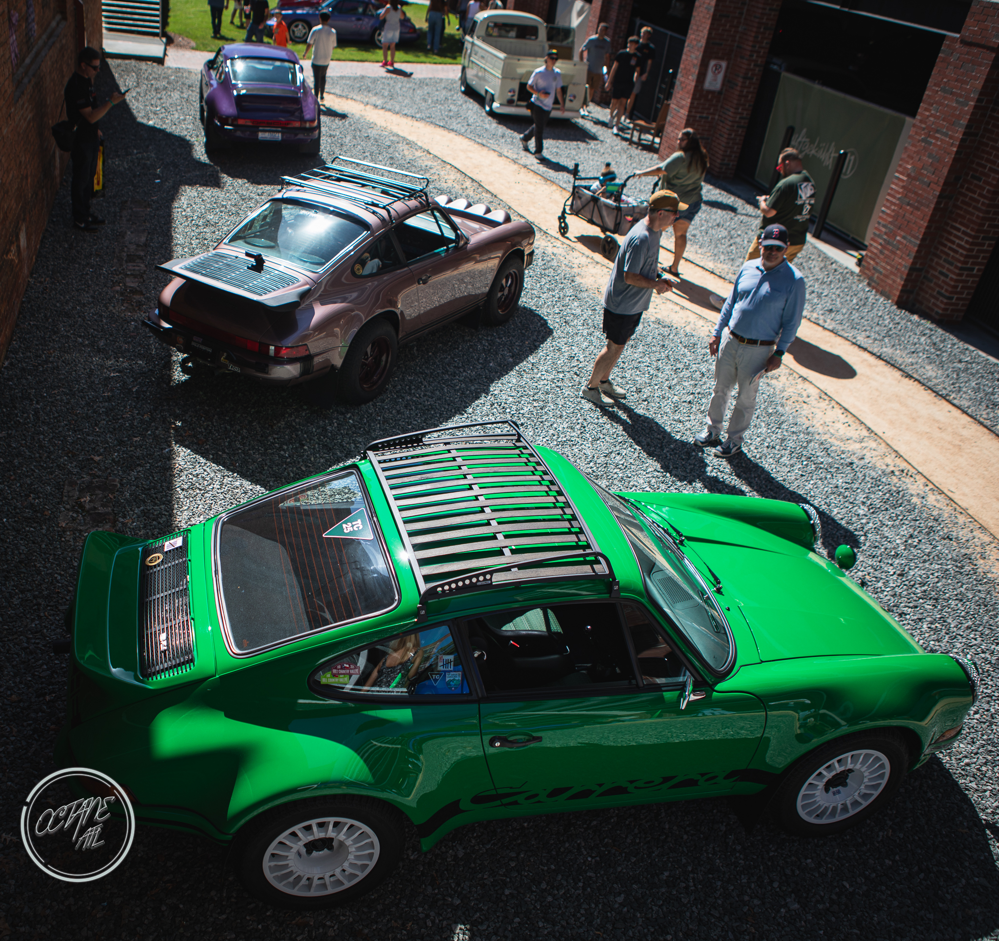 The American Tobacco Campus was the perfect location for this event, providing history of it’s own as well as lovely green spaces, wood floors that creaked with stories of their own and brick walls that felt as if they had stood the test of time and lived to tell the tale. The campus allowed for great use of all of the outdoor spaces with Porsches parked along sidewalks, on turf tucked in among planters, along the water and covering the streets with cars representing every era of air cooled Porsche, including examples from bespoke restomod companies like Gunther Werks and Singer. Moreover, the campus also allowed for some stunning indoor displays with cars nestled in neatly between stairwells, in transition spaces and lobbies of buildings, some with lighting that made it feel as though the cars were sculptures crafted out of marble by masters of bygone eras, displayed for marveling and studying.