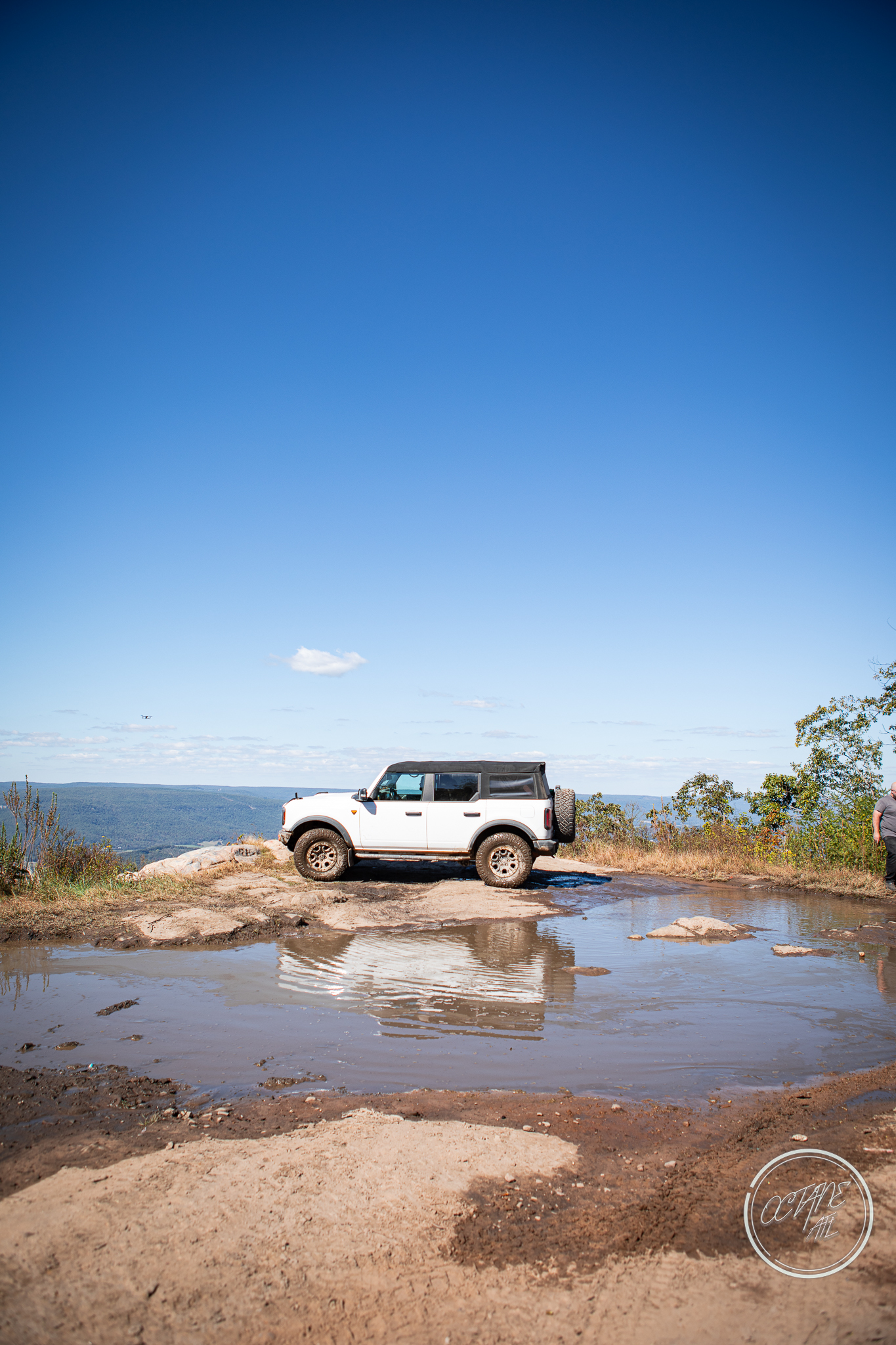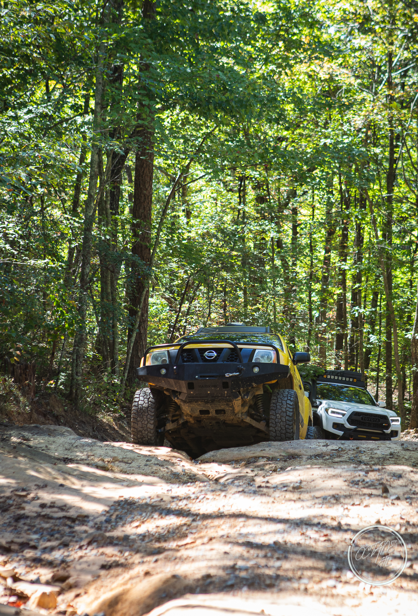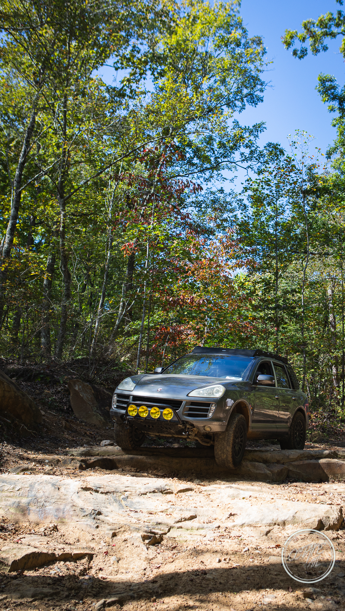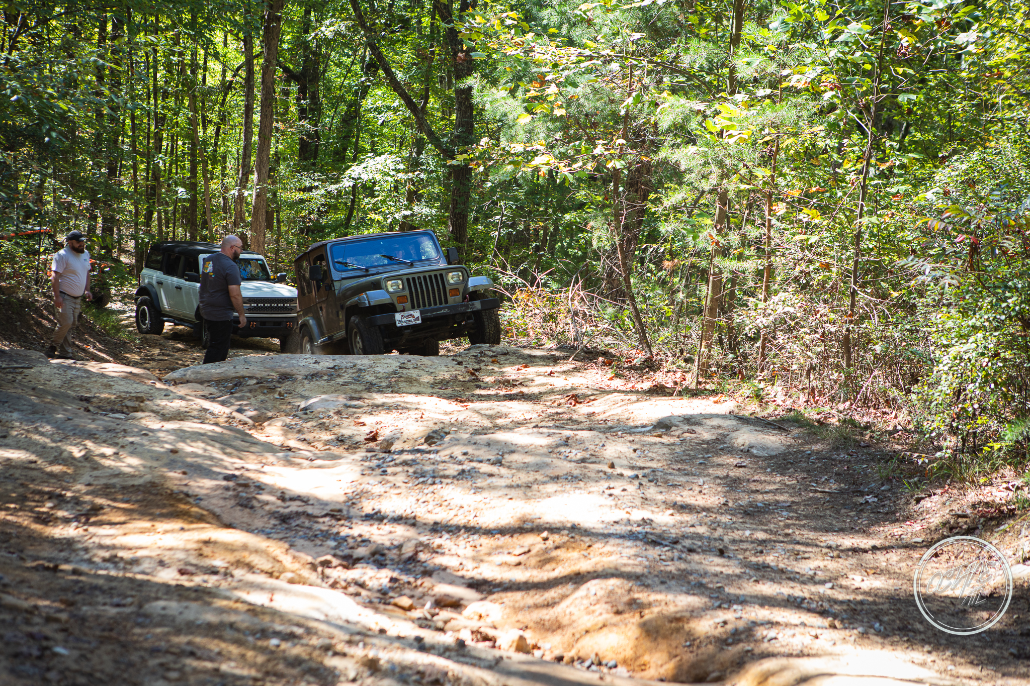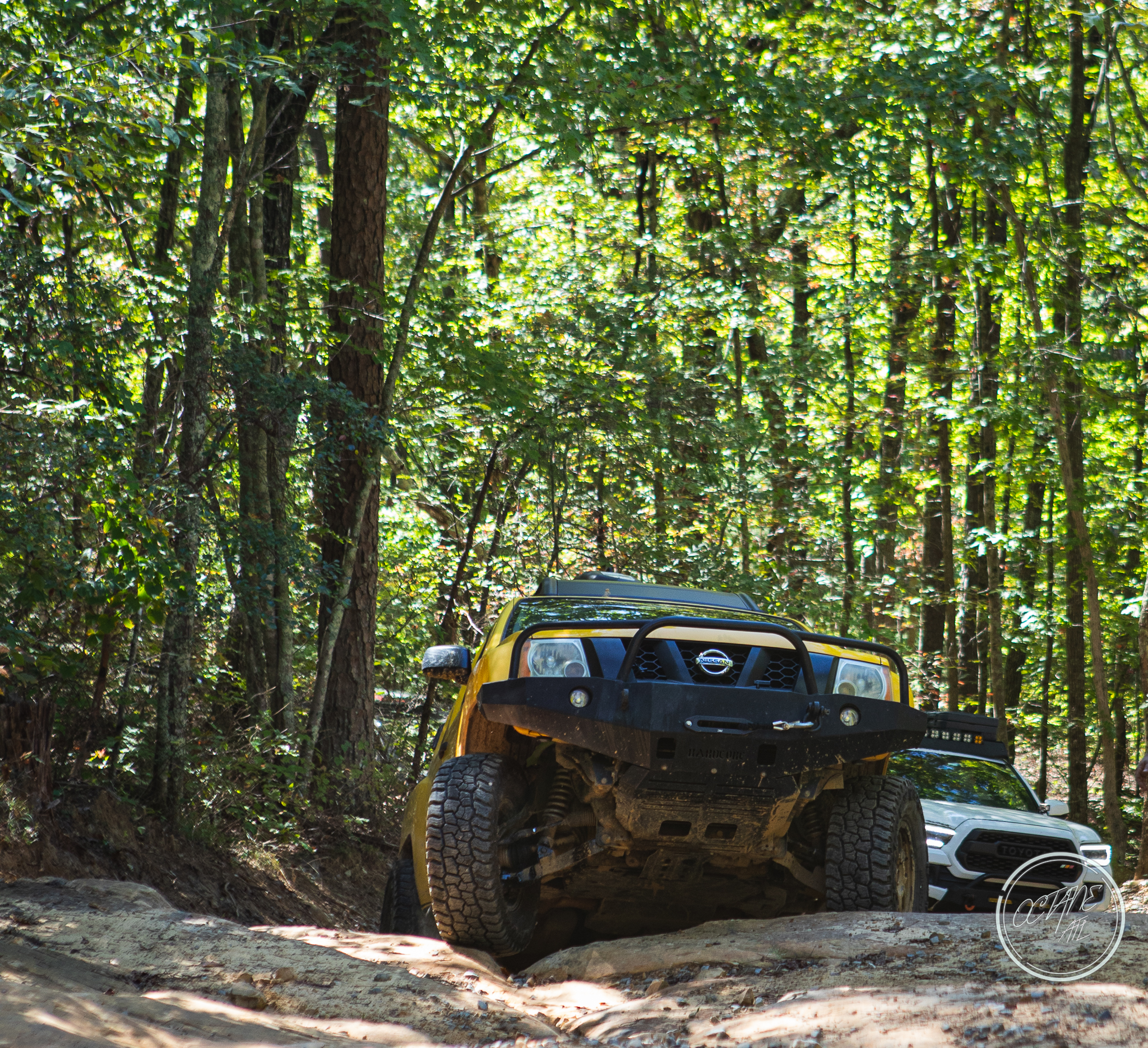 From here we worked our way to the second off-road portion which had quite a few water features, mainly stinky puddles, for us all to create some mud in, as well as a downed tree that, if you’re lifted a good bit, could be problematic but for most of us it was just choosing the correct line. This portion is well worth it, as there’s a stunning overlook to take in the rolling foothills that make up the Chattanooga area beneath Signal Mountain. This overlook also makes for some fun photo opportunities if you’re willing to park your rig near the edge. We lingered here for a bit in the warm early fall sun and spent time chatting while folks took their turn on the edge for the photos.