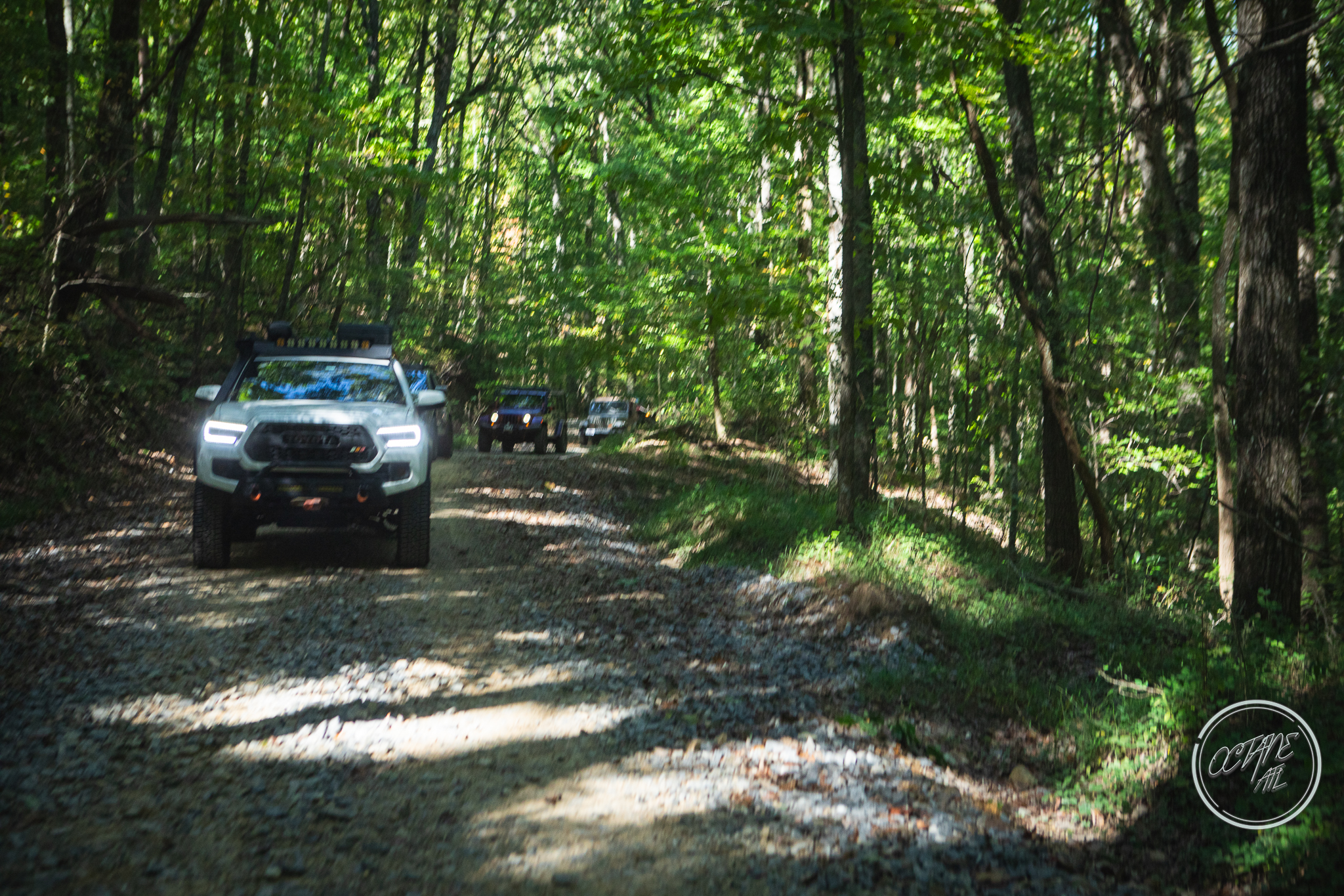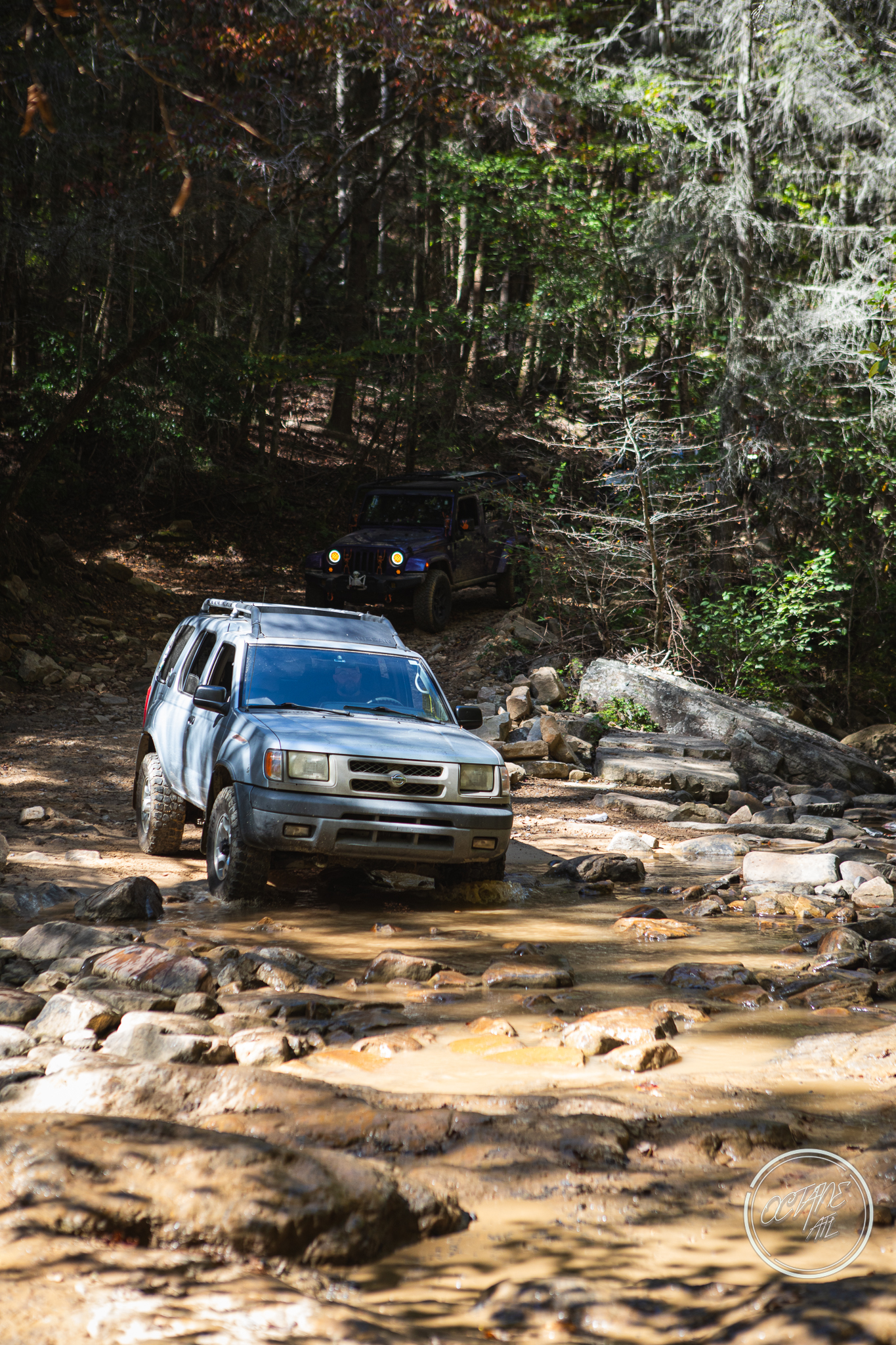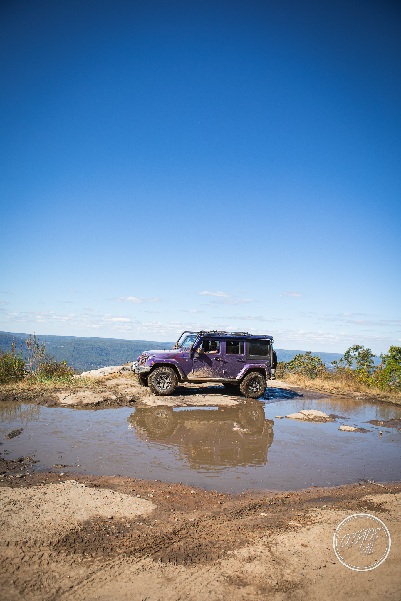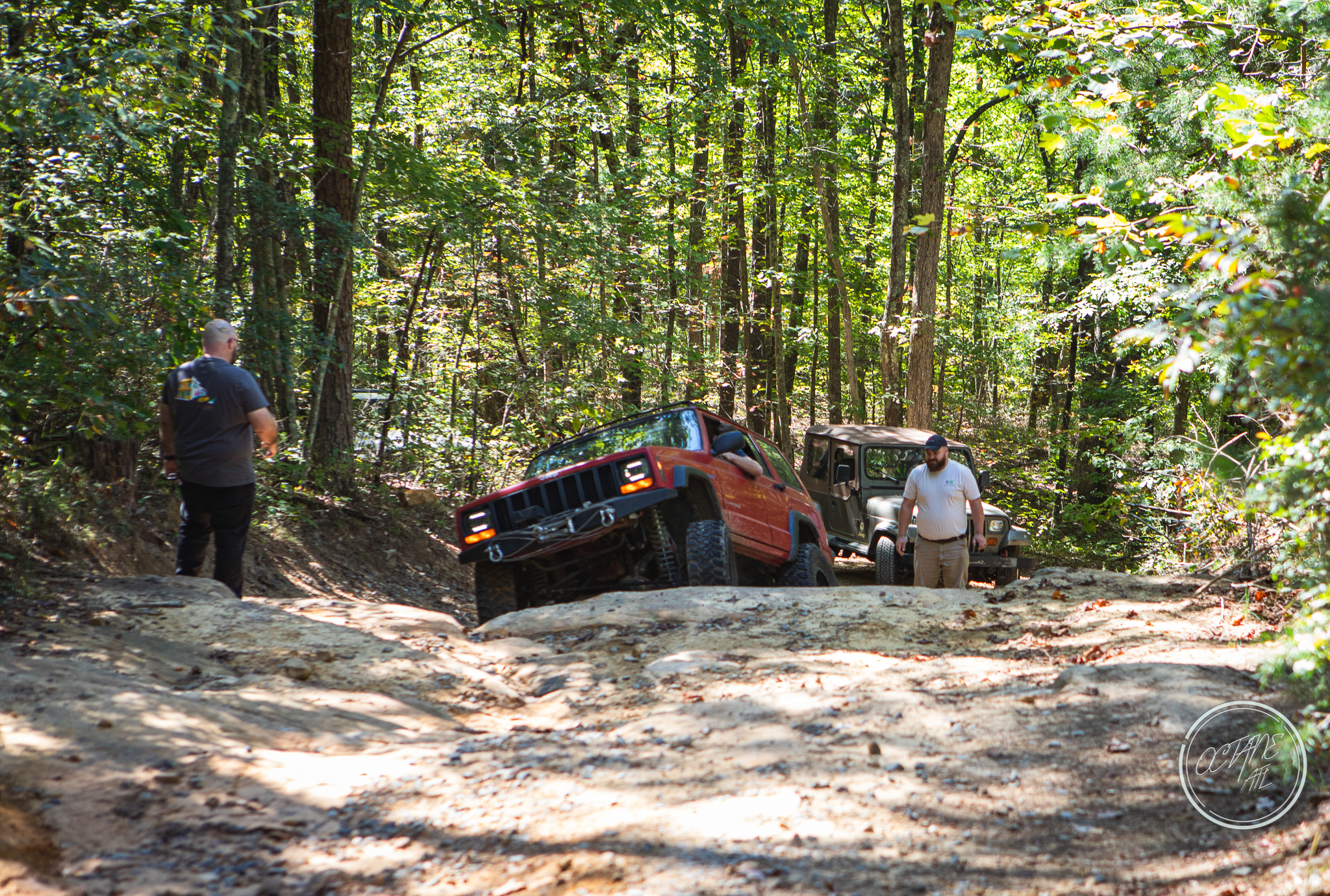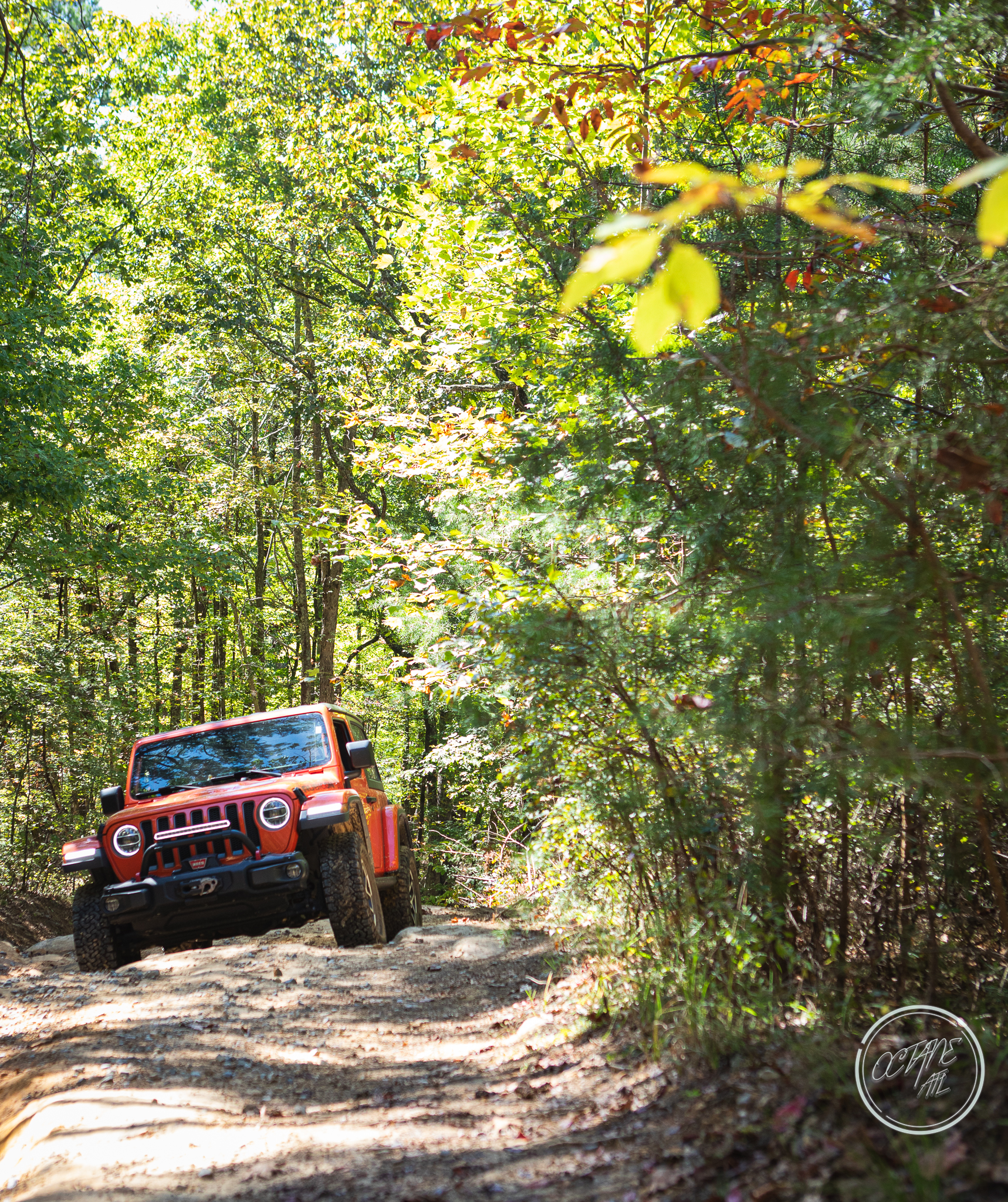 From here we worked our way to the second off-road portion which had quite a few water features, mainly stinky puddles, for us all to create some mud in, as well as a downed tree that, if you’re lifted a good bit, could be problematic but for most of us it was just choosing the correct line. This portion is well worth it, as there’s a stunning overlook to take in the rolling foothills that make up the Chattanooga area beneath Signal Mountain. This overlook also makes for some fun photo opportunities if you’re willing to park your rig near the edge. We lingered here for a bit in the warm early fall sun and spent time chatting while folks took their turn on the edge for the photos.