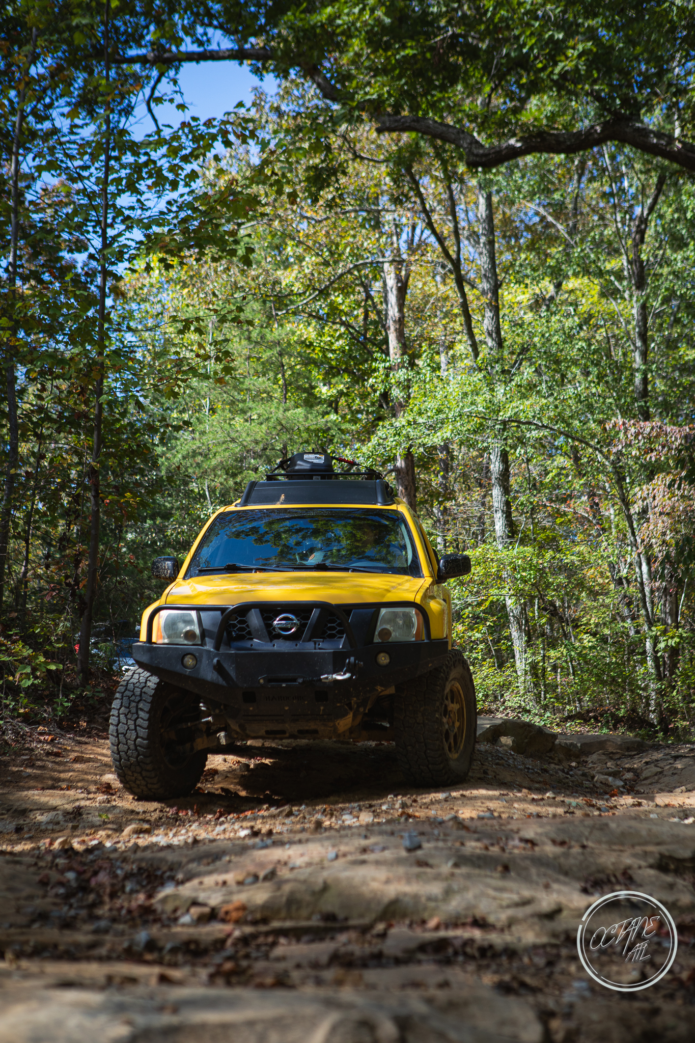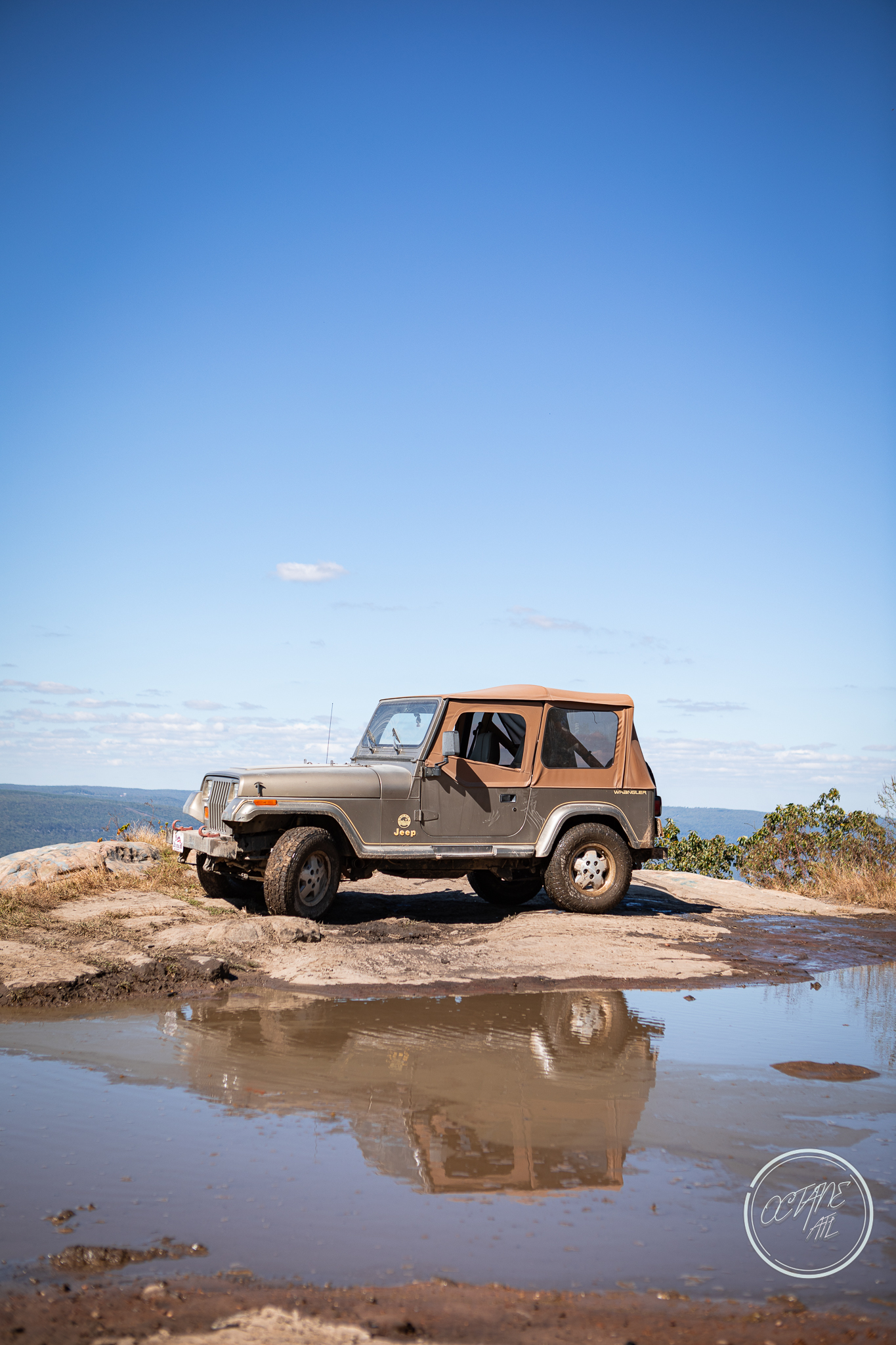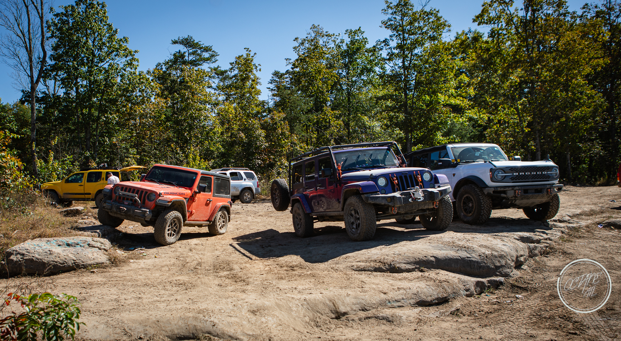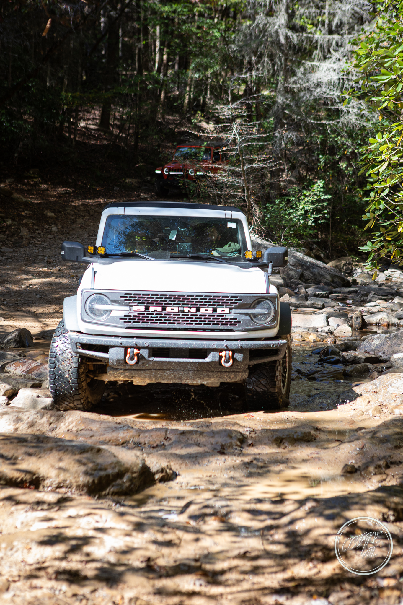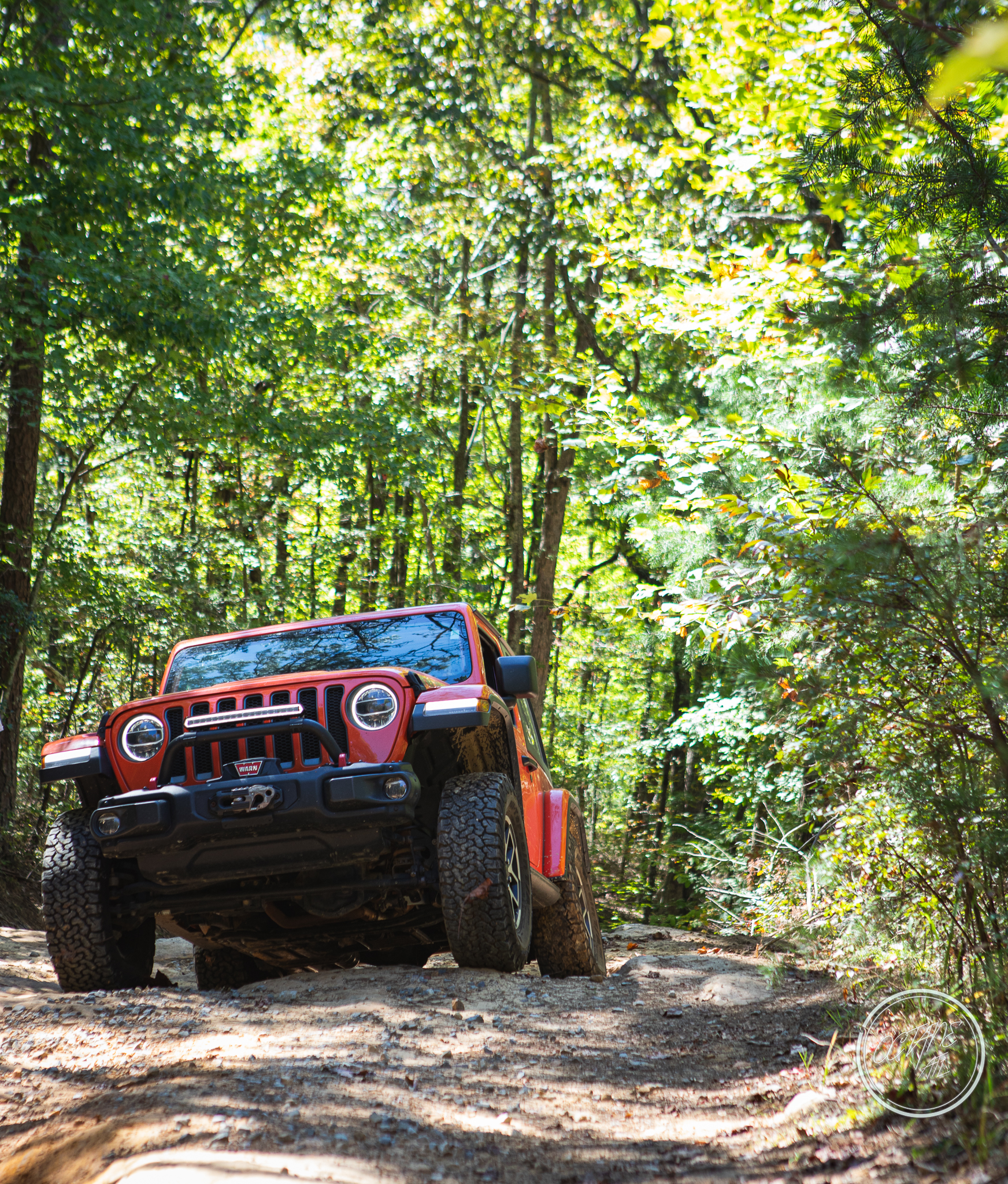 From here we worked our way to the second off-road portion which had quite a few water features, mainly stinky puddles, for us all to create some mud in, as well as a downed tree that, if you’re lifted a good bit, could be problematic but for most of us it was just choosing the correct line. This portion is well worth it, as there’s a stunning overlook to take in the rolling foothills that make up the Chattanooga area beneath Signal Mountain. This overlook also makes for some fun photo opportunities if you’re willing to park your rig near the edge. We lingered here for a bit in the warm early fall sun and spent time chatting while folks took their turn on the edge for the photos.
