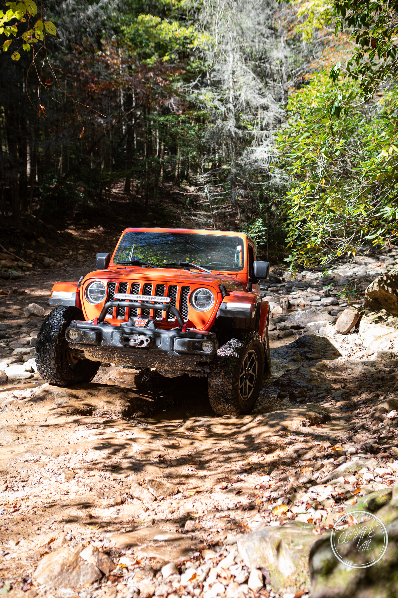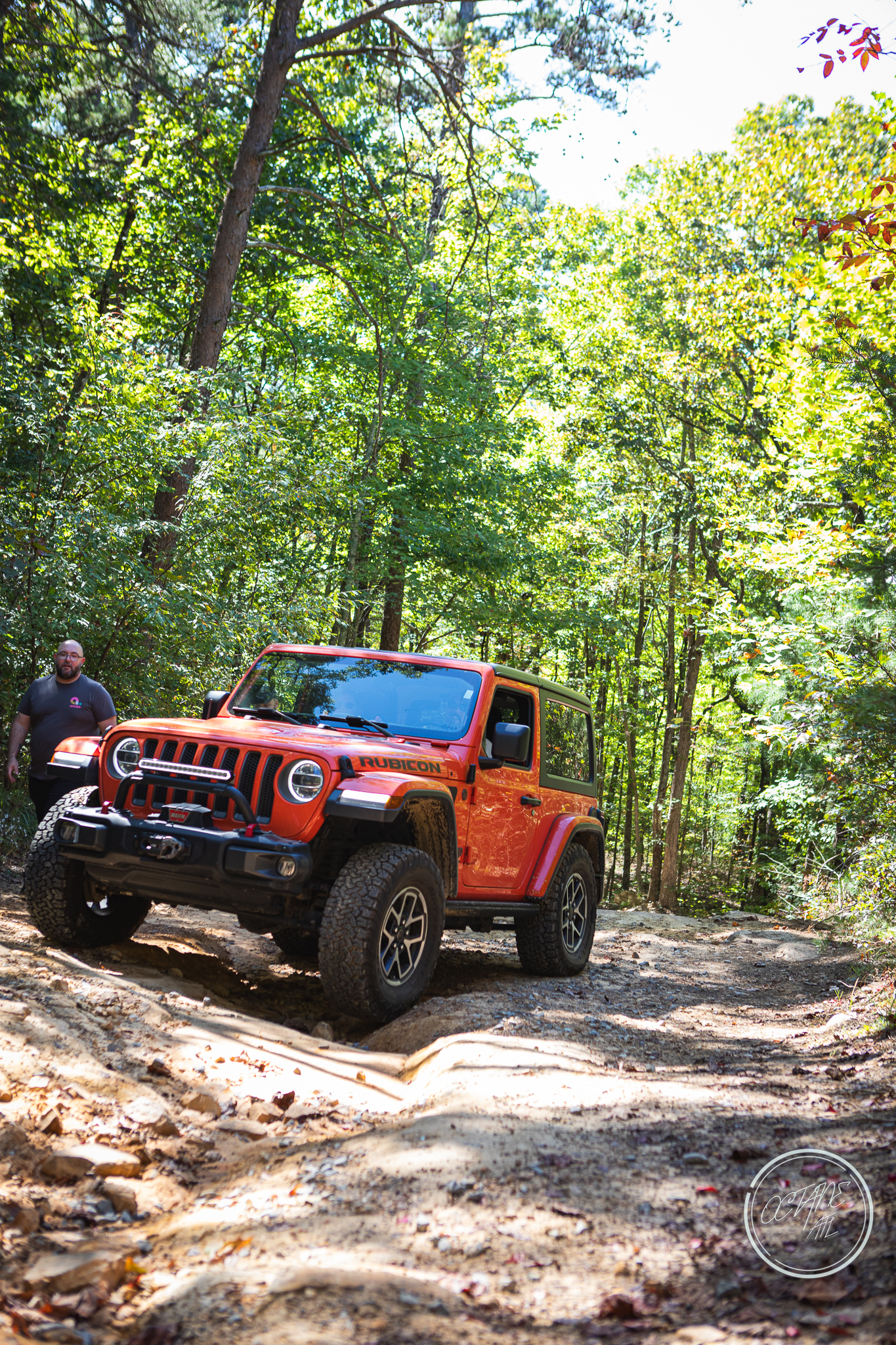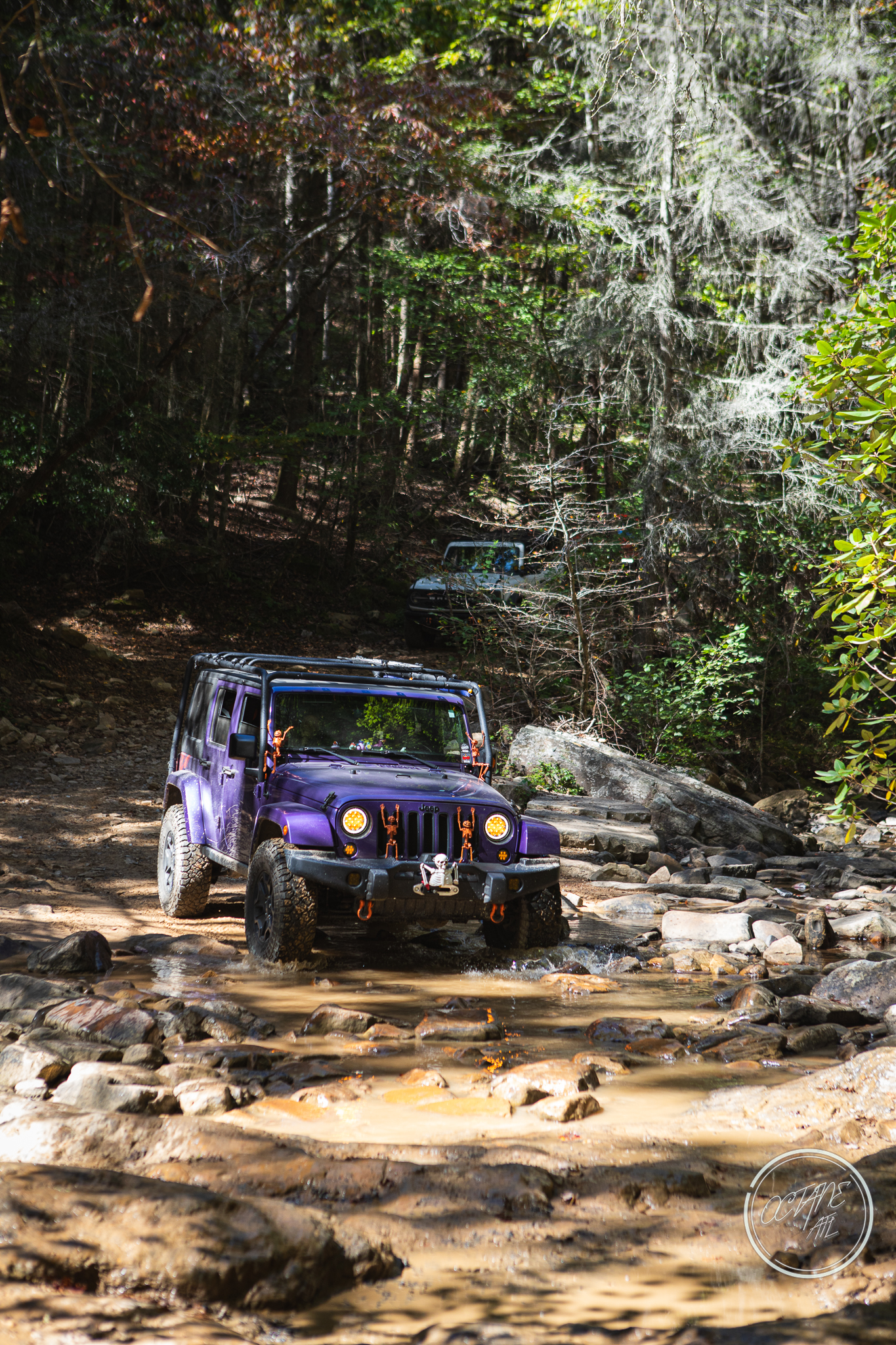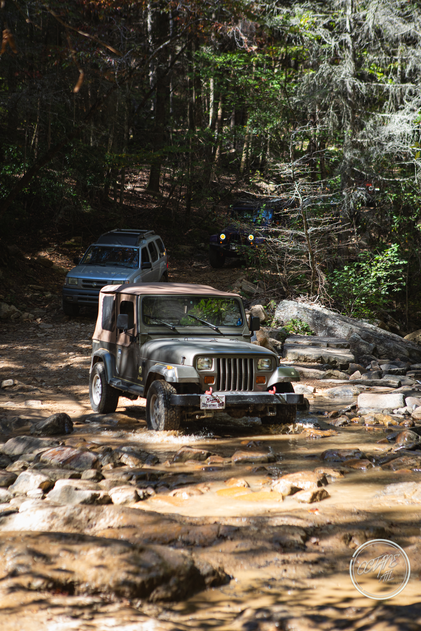 From here we worked our way to the second off-road portion which had quite a few water features, mainly stinky puddles, for us all to create some mud in, as well as a downed tree that, if you’re lifted a good bit, could be problematic but for most of us it was just choosing the correct line. This portion is well worth it, as there’s a stunning overlook to take in the rolling foothills that make up the Chattanooga area beneath Signal Mountain. This overlook also makes for some fun photo opportunities if you’re willing to park your rig near the edge. We lingered here for a bit in the warm early fall sun and spent time chatting while folks took their turn on the edge for the photos.