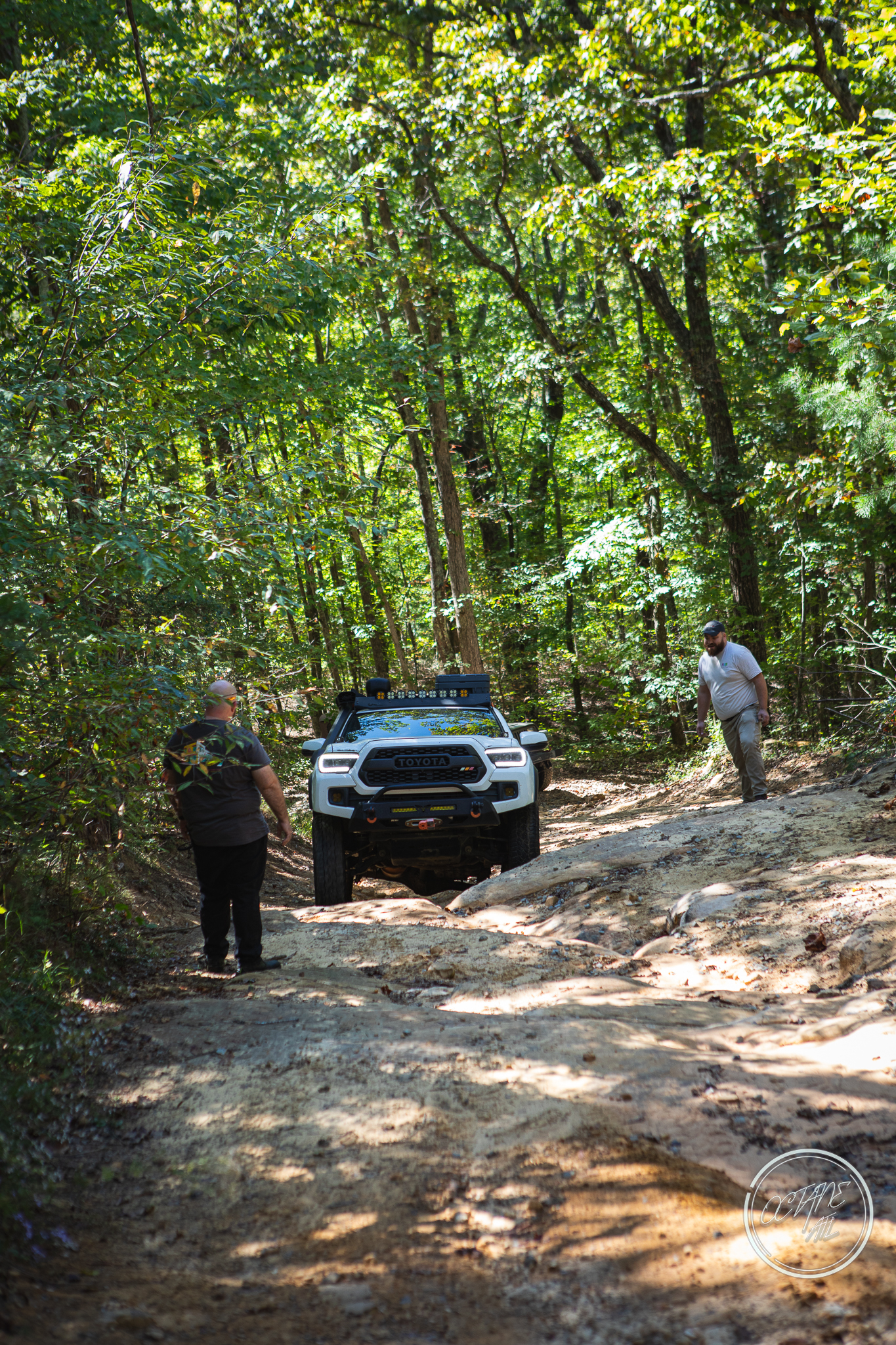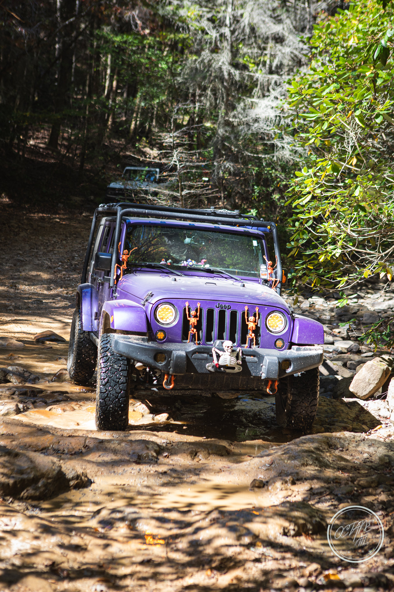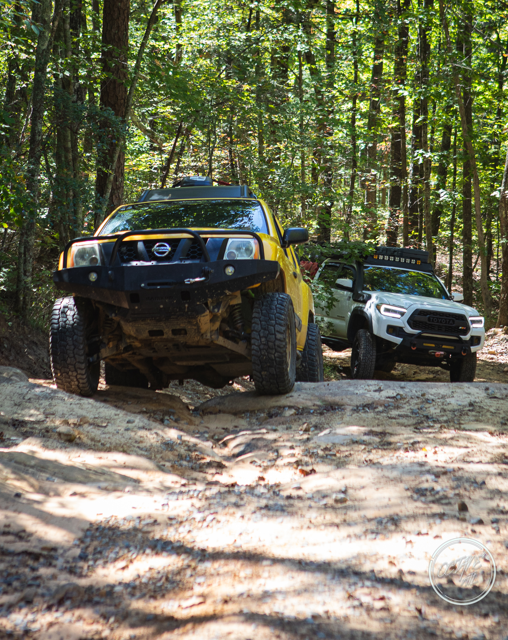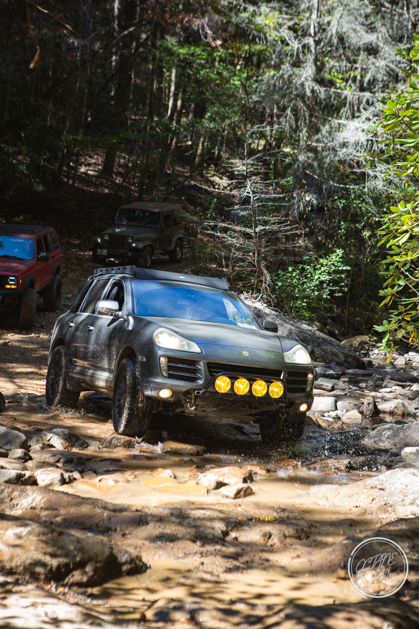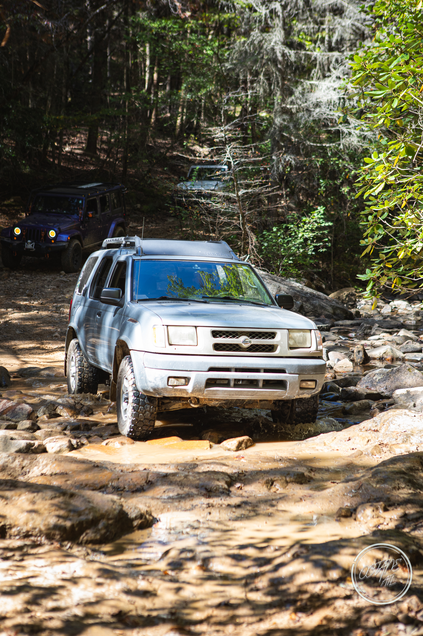 From here we worked our way to the second off-road portion which had quite a few water features, mainly stinky puddles, for us all to create some mud in, as well as a downed tree that, if you’re lifted a good bit, could be problematic but for most of us it was just choosing the correct line. This portion is well worth it, as there’s a stunning overlook to take in the rolling foothills that make up the Chattanooga area beneath Signal Mountain. This overlook also makes for some fun photo opportunities if you’re willing to park your rig near the edge. We lingered here for a bit in the warm early fall sun and spent time chatting while folks took their turn on the edge for the photos.