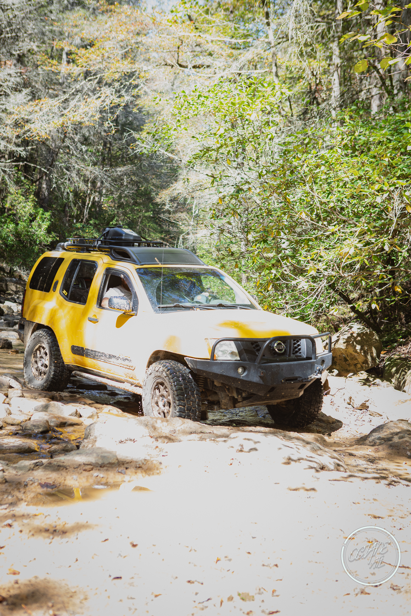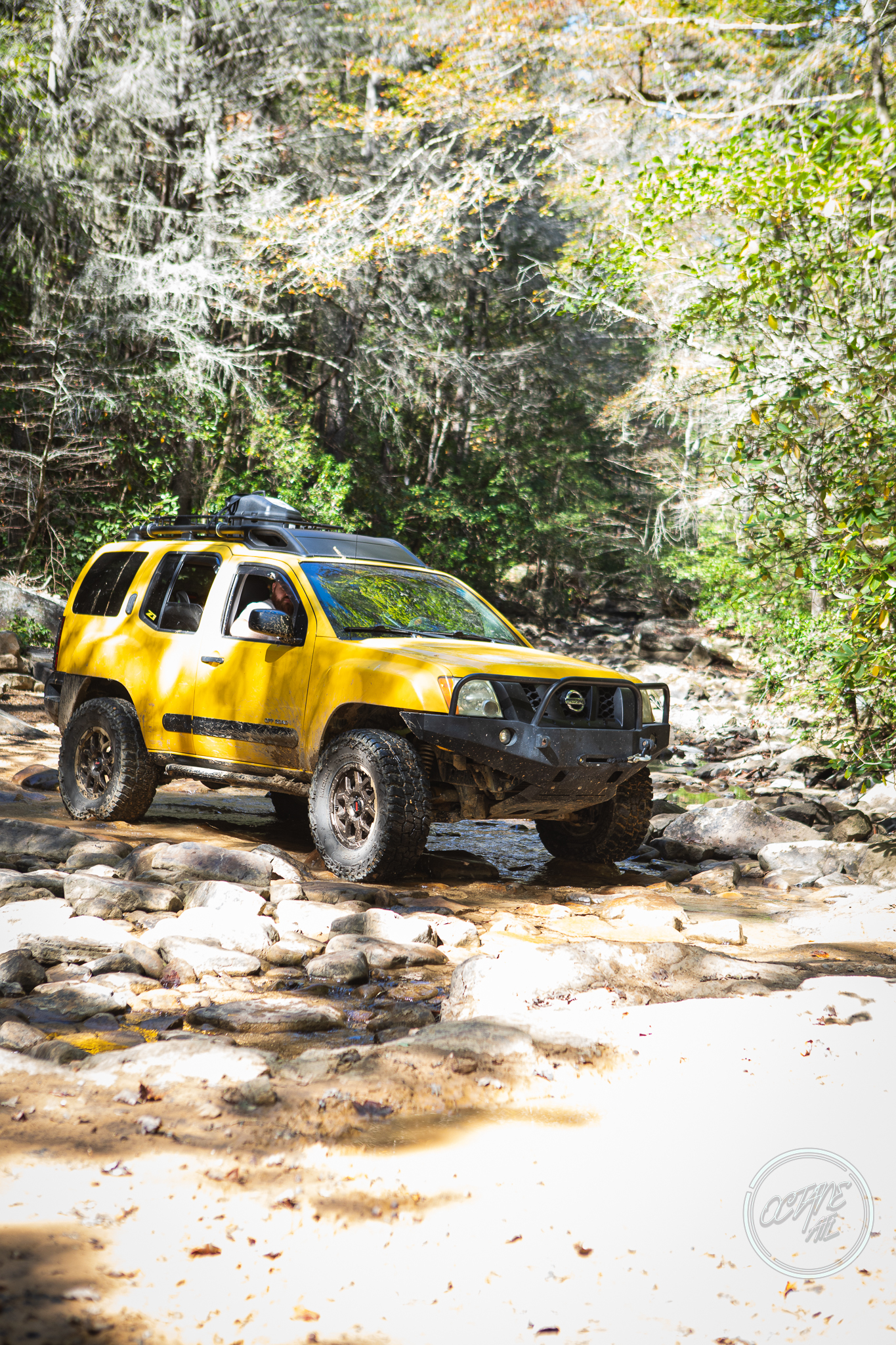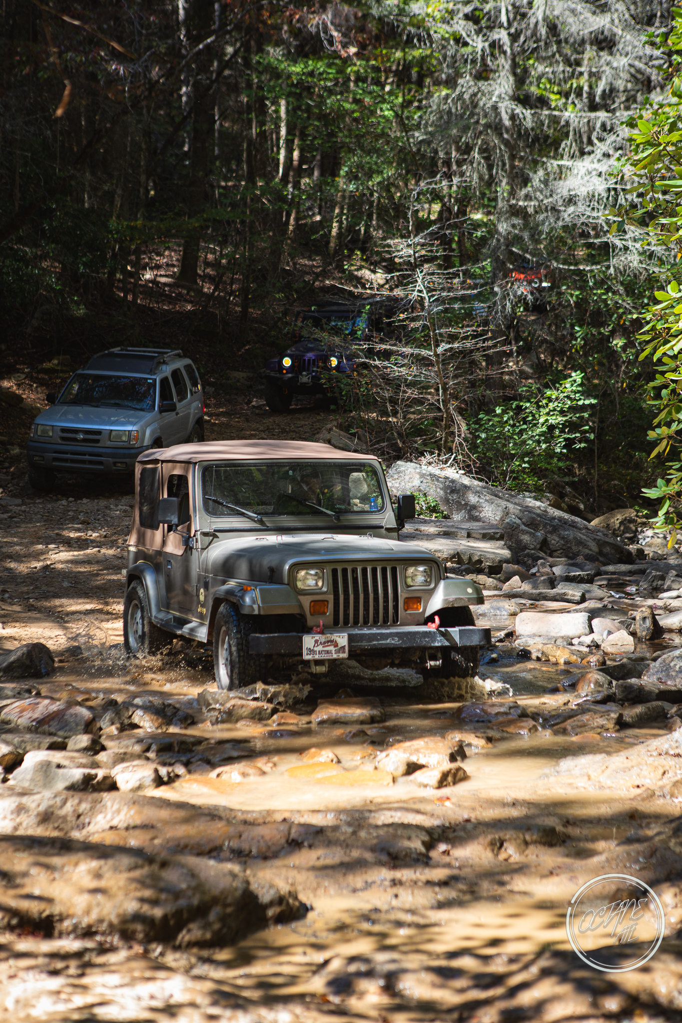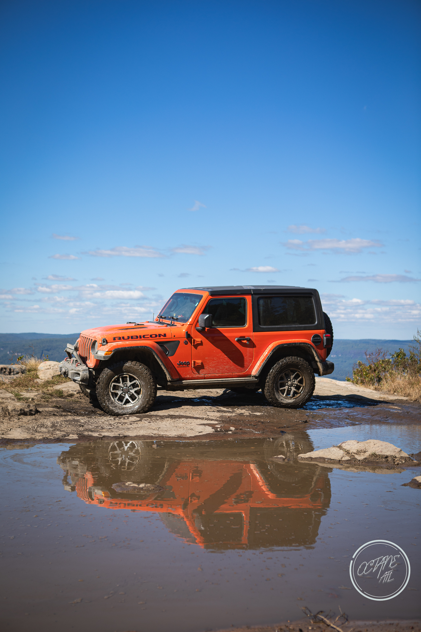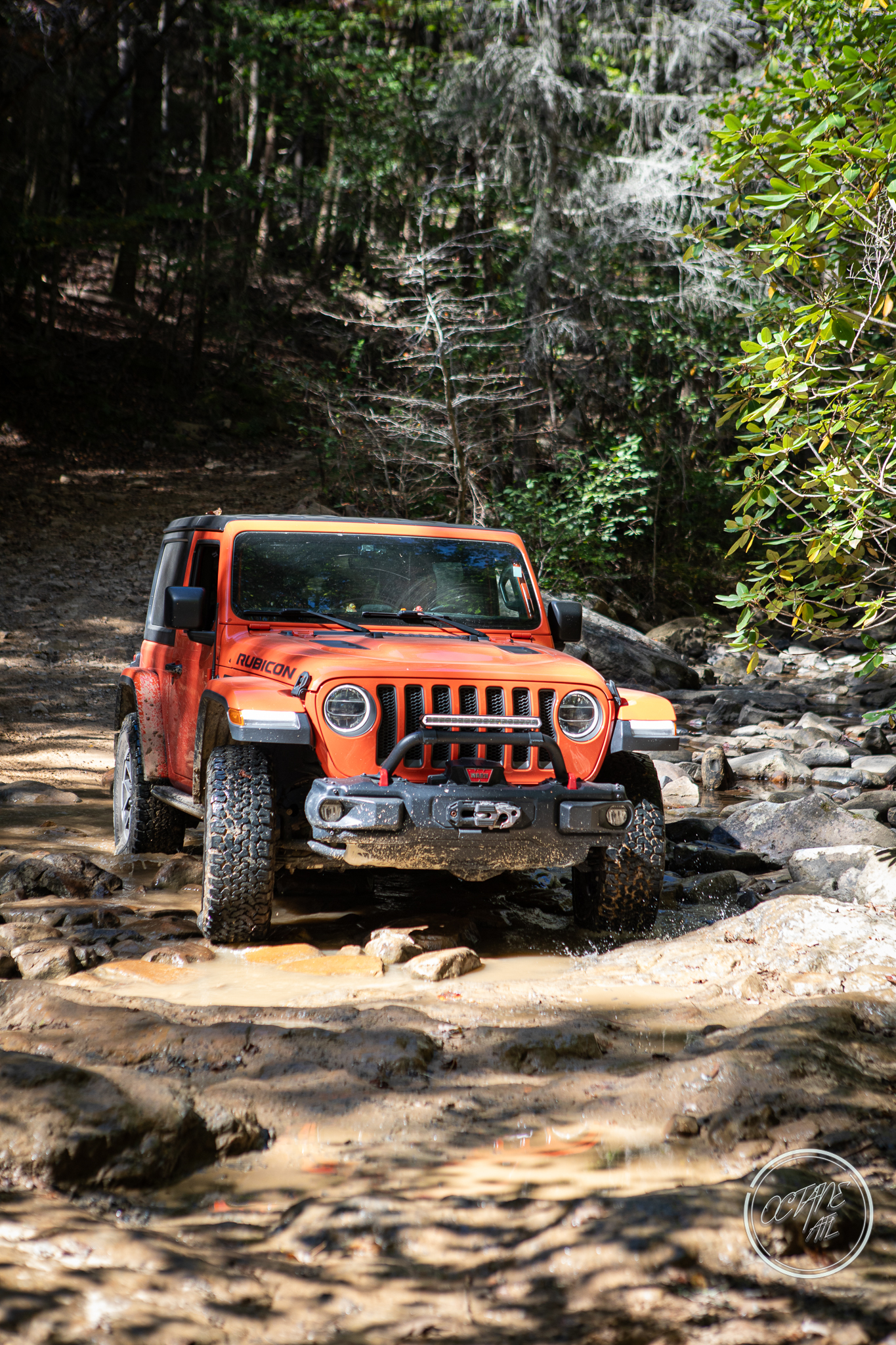 From here we worked our way to the second off-road portion which had quite a few water features, mainly stinky puddles, for us all to create some mud in, as well as a downed tree that, if you’re lifted a good bit, could be problematic but for most of us it was just choosing the correct line. This portion is well worth it, as there’s a stunning overlook to take in the rolling foothills that make up the Chattanooga area beneath Signal Mountain. This overlook also makes for some fun photo opportunities if you’re willing to park your rig near the edge. We lingered here for a bit in the warm early fall sun and spent time chatting while folks took their turn on the edge for the photos.